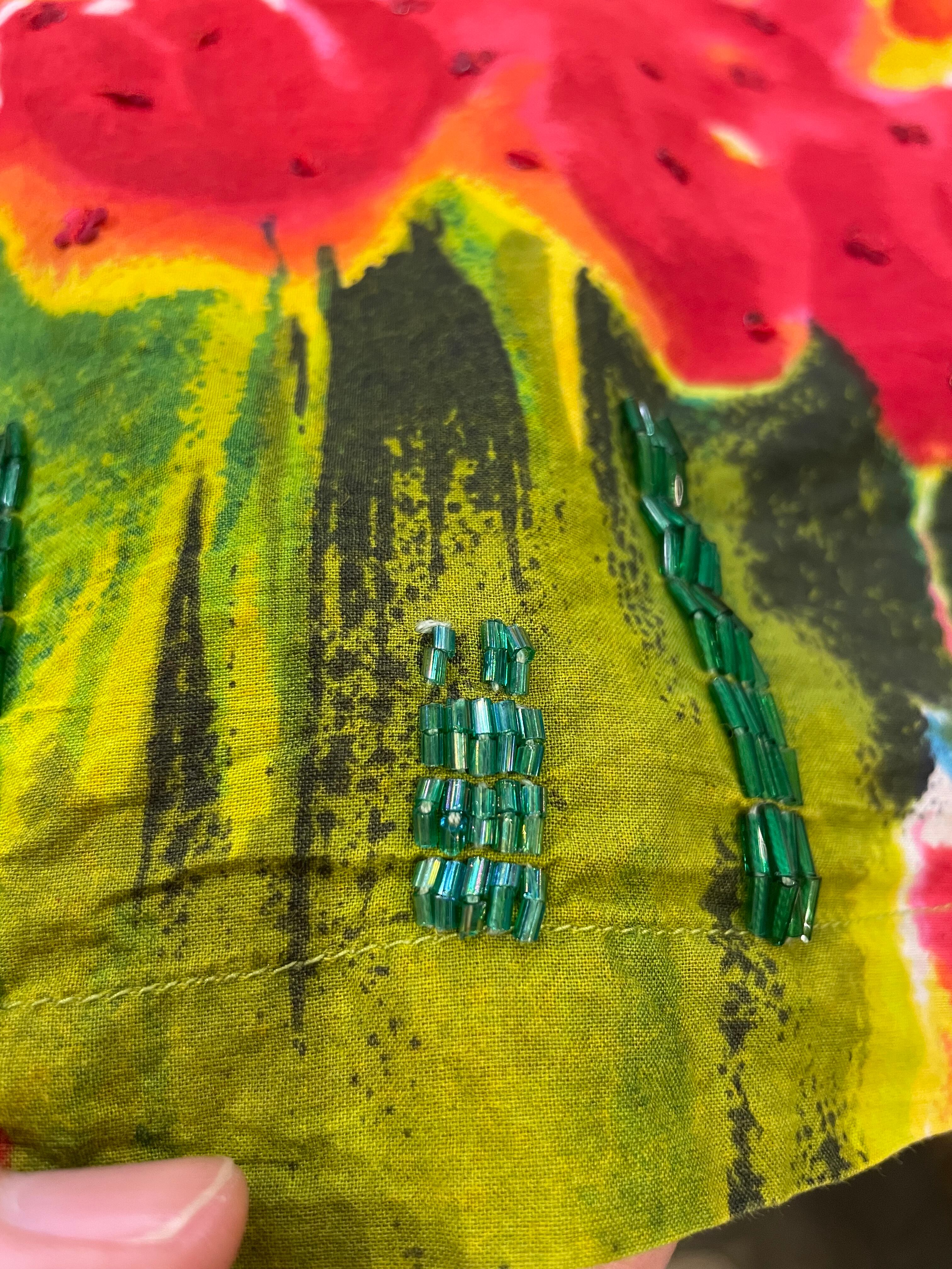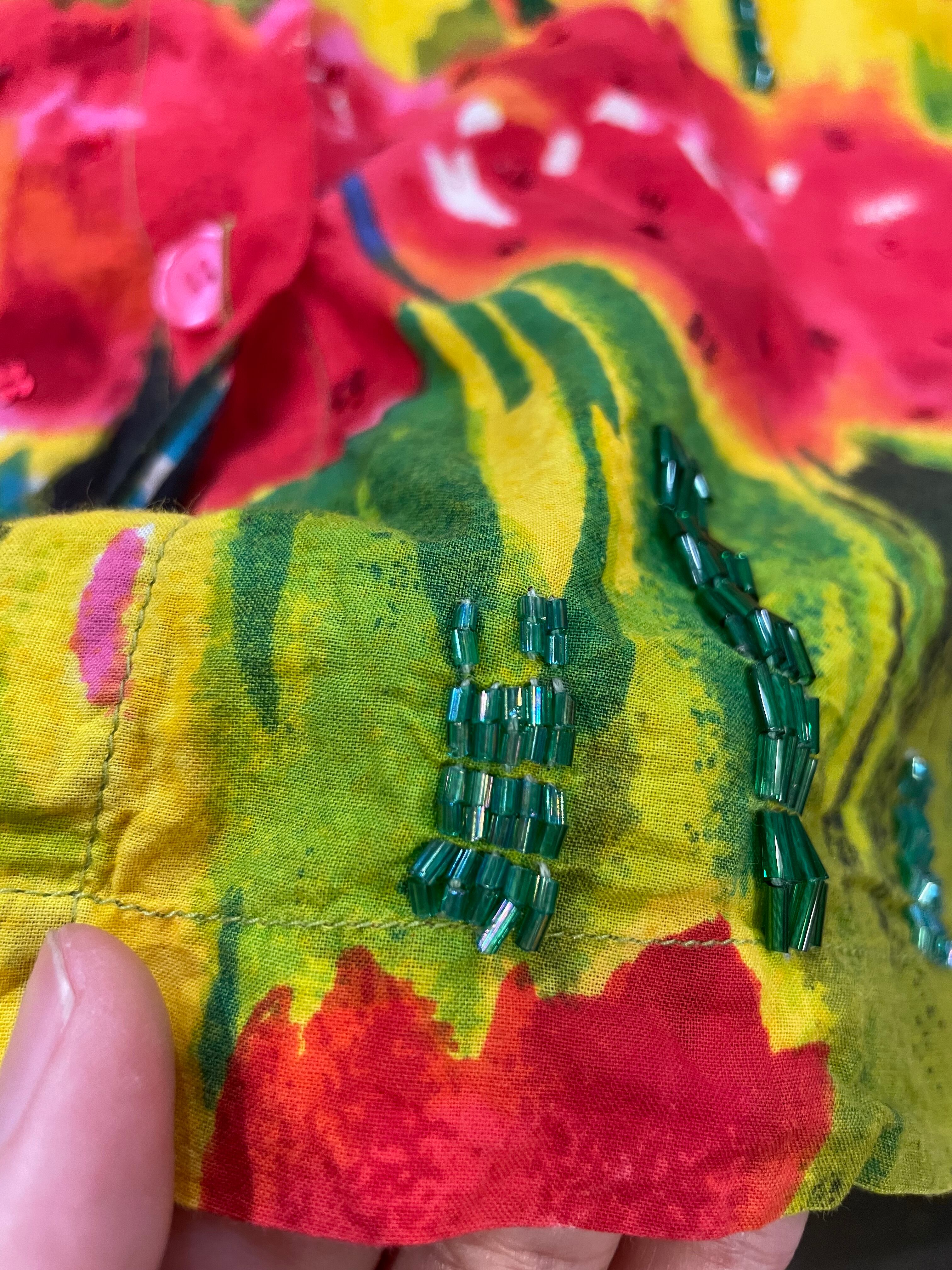 元々なのか、前の持ち主が付け足したのかわかりませんがビーズが前裾の方にたくさん付いていて、キラキラしてかわいいです。