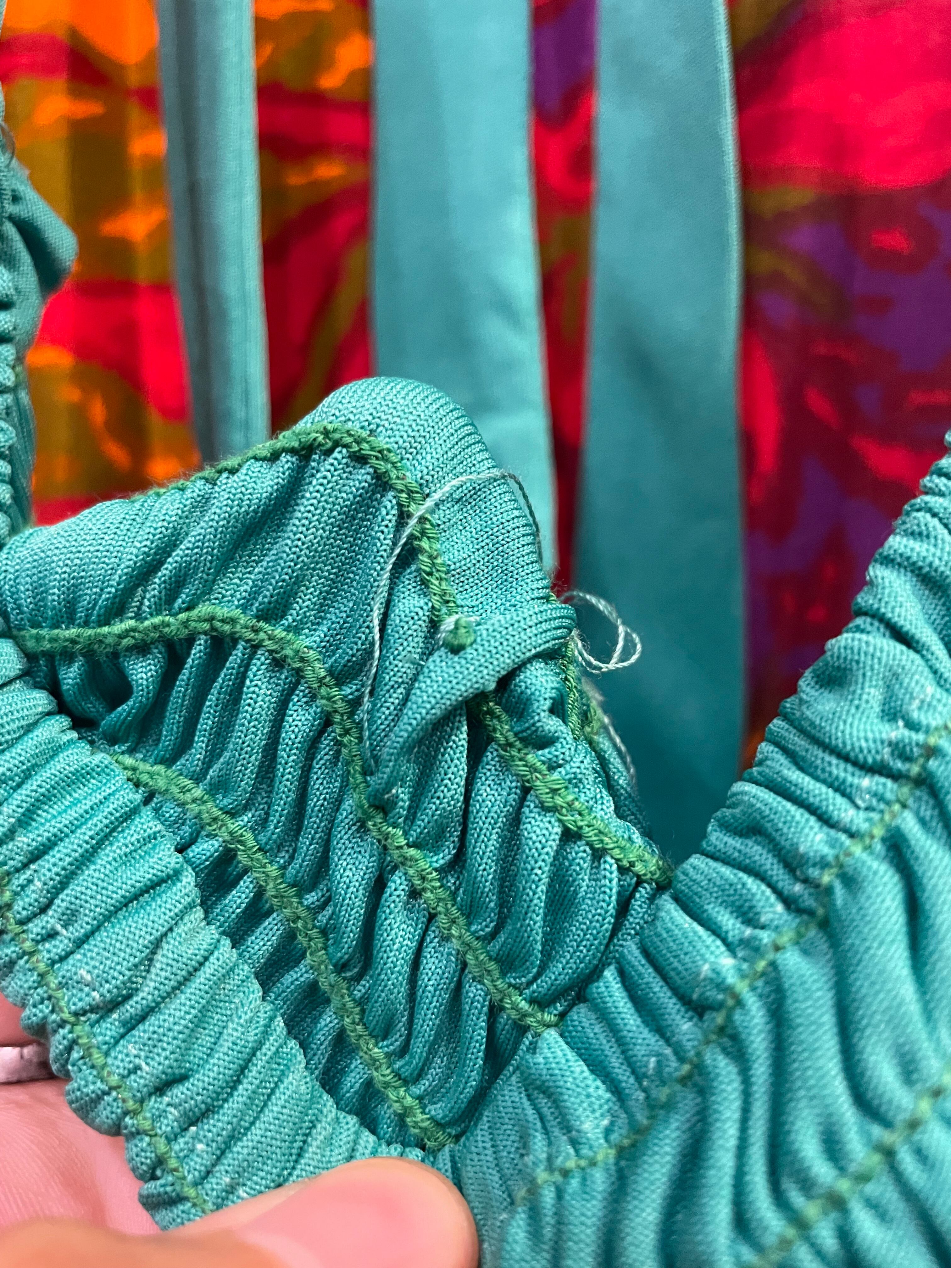 胸元シャーリングからのきれいなAラインシルエットですし、キャミソールからさらにホルターネックのように結べるリボン付きで後ろ姿もかわいいですね。