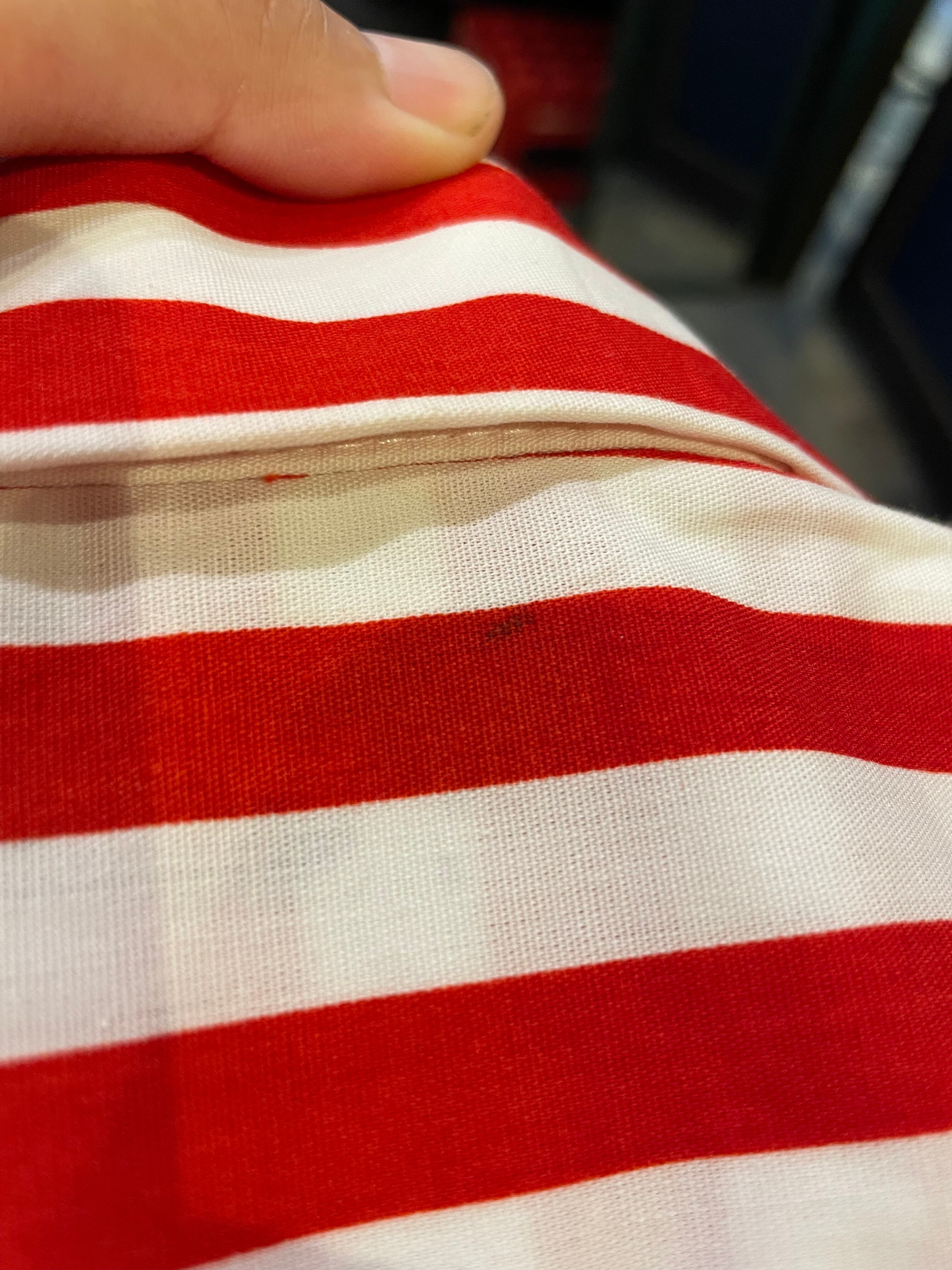 メンズ開きでゆったりめなサイズ感も良い雰囲気で、胸ポケットもしっかり柄合わせしてあり作りの良さを感じられます。