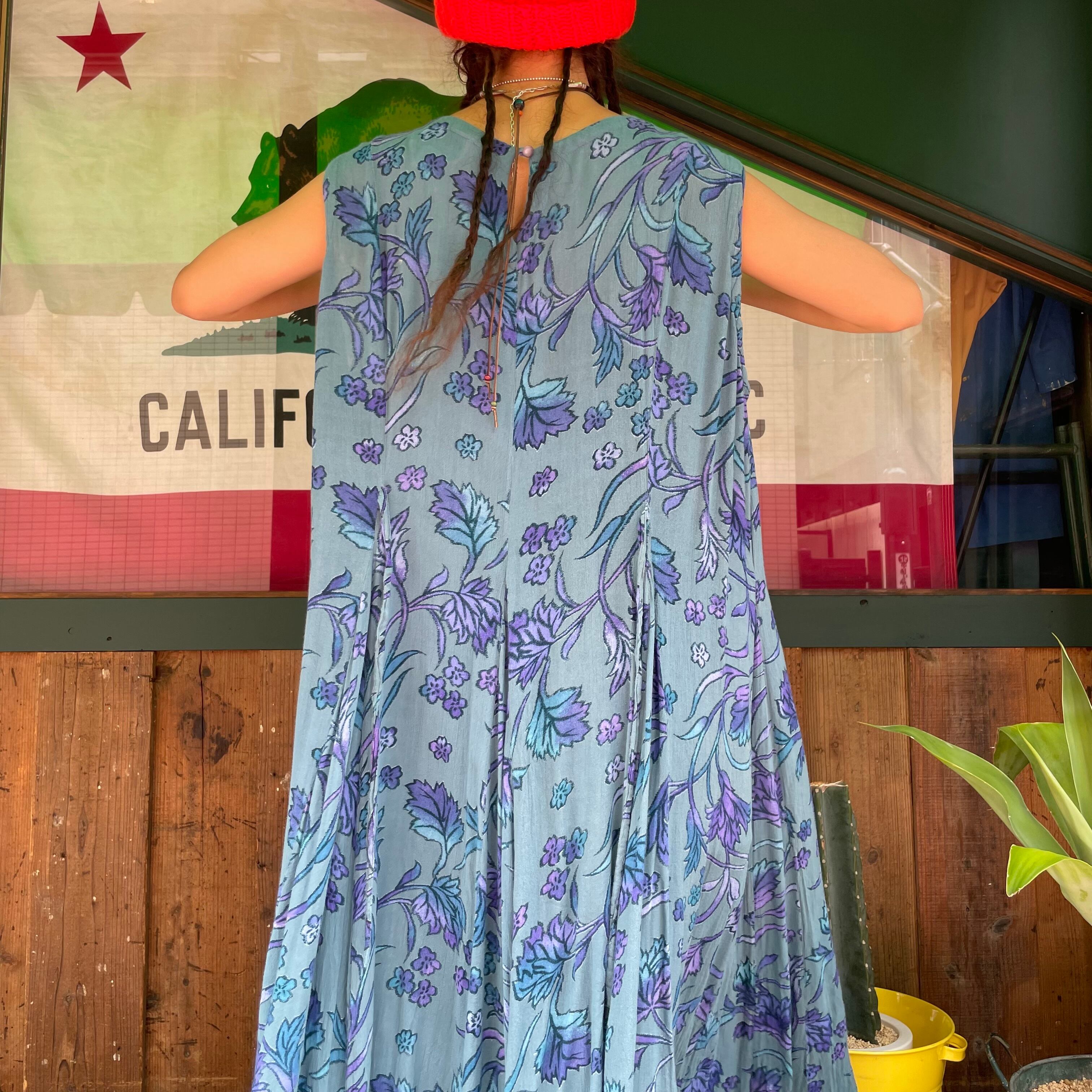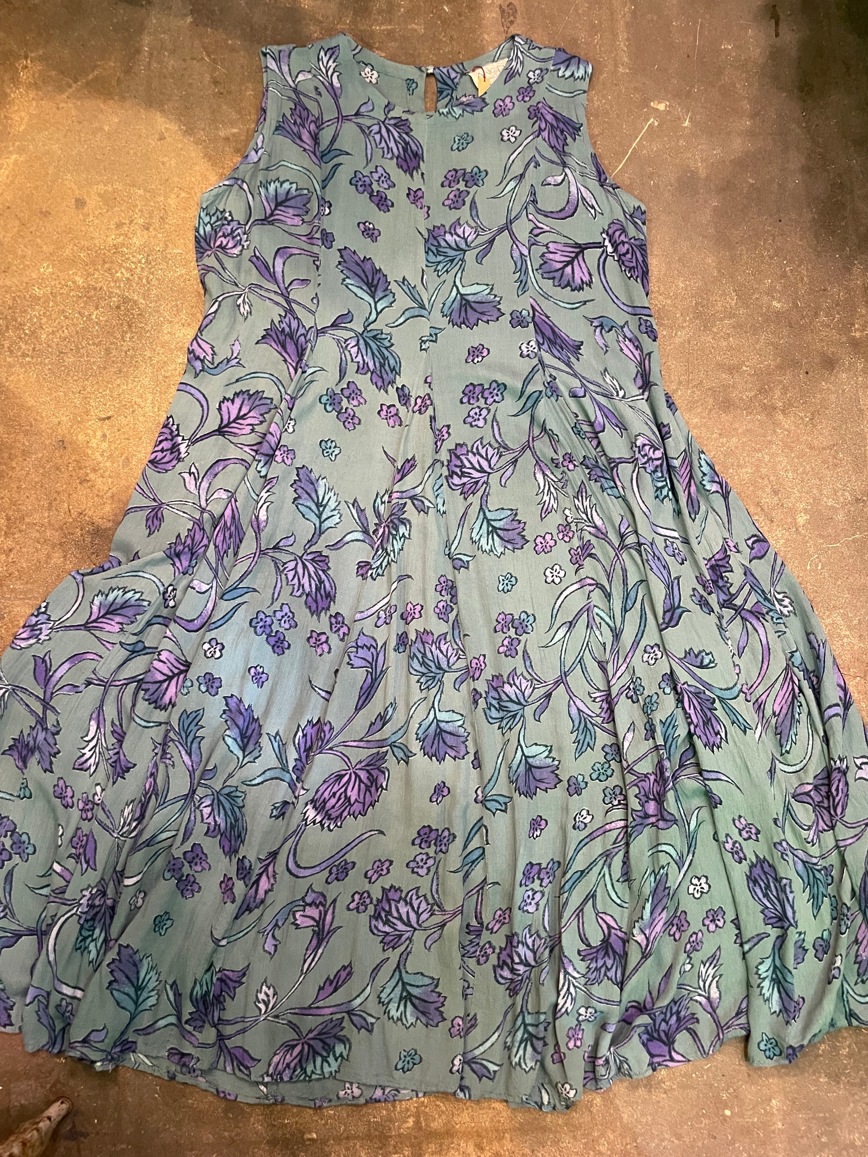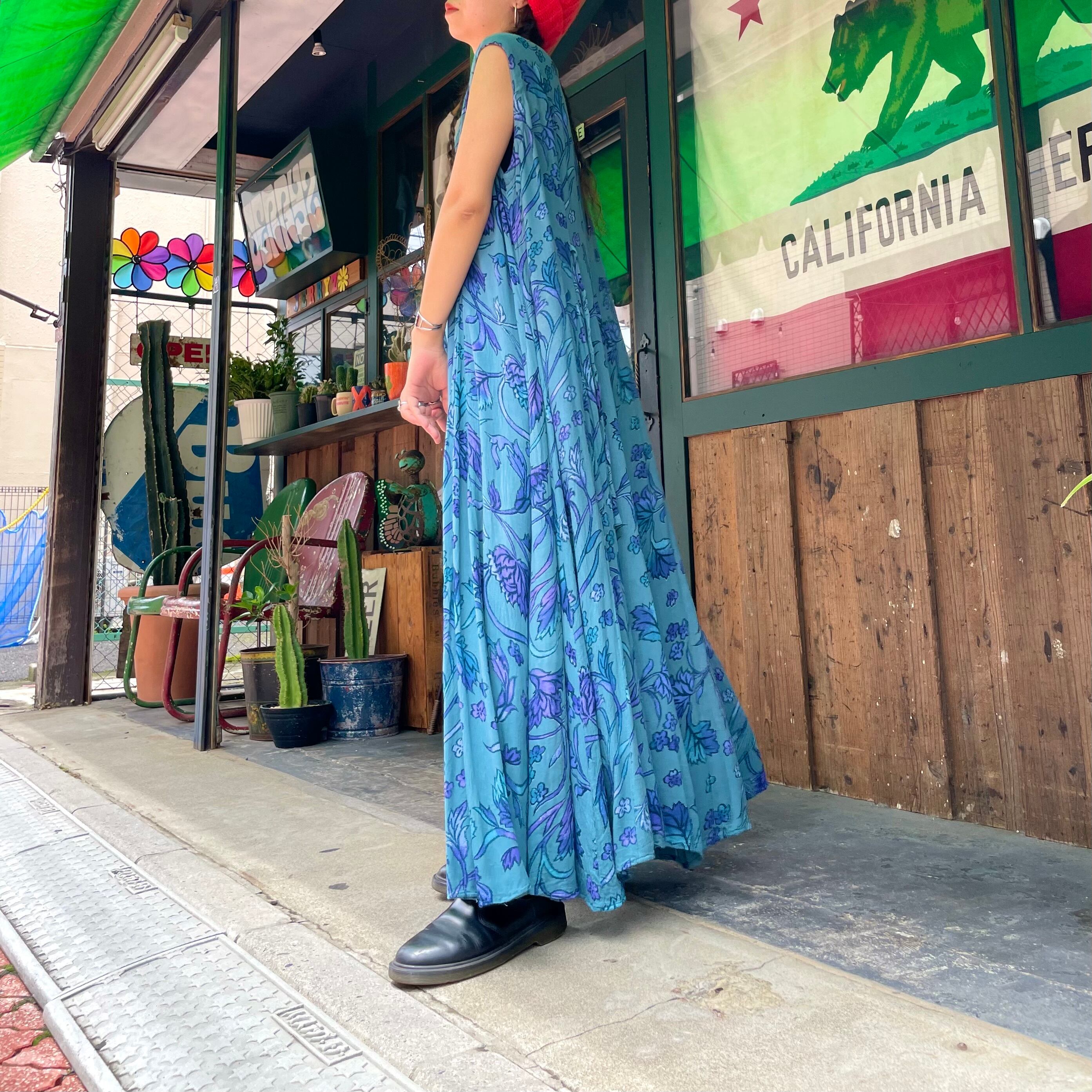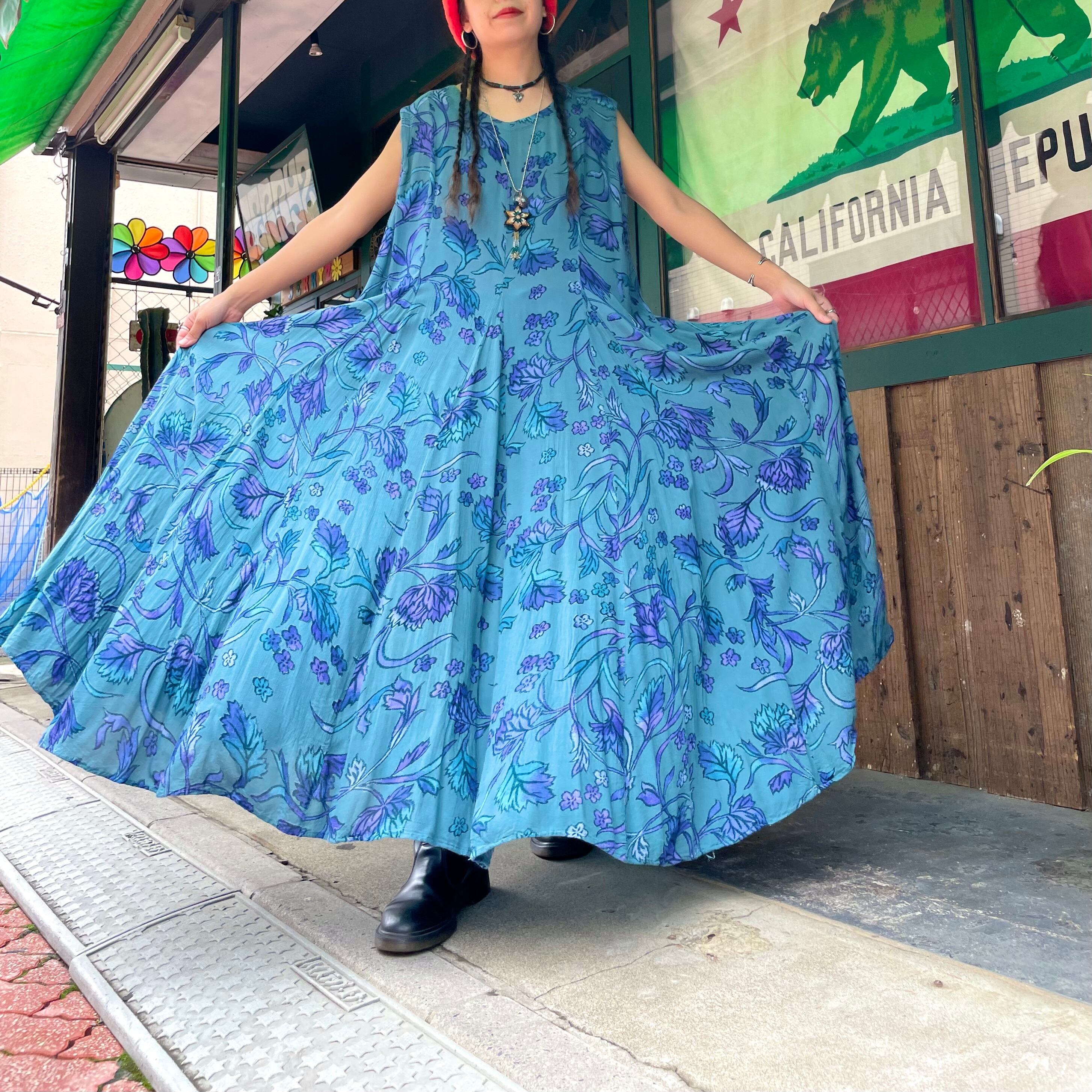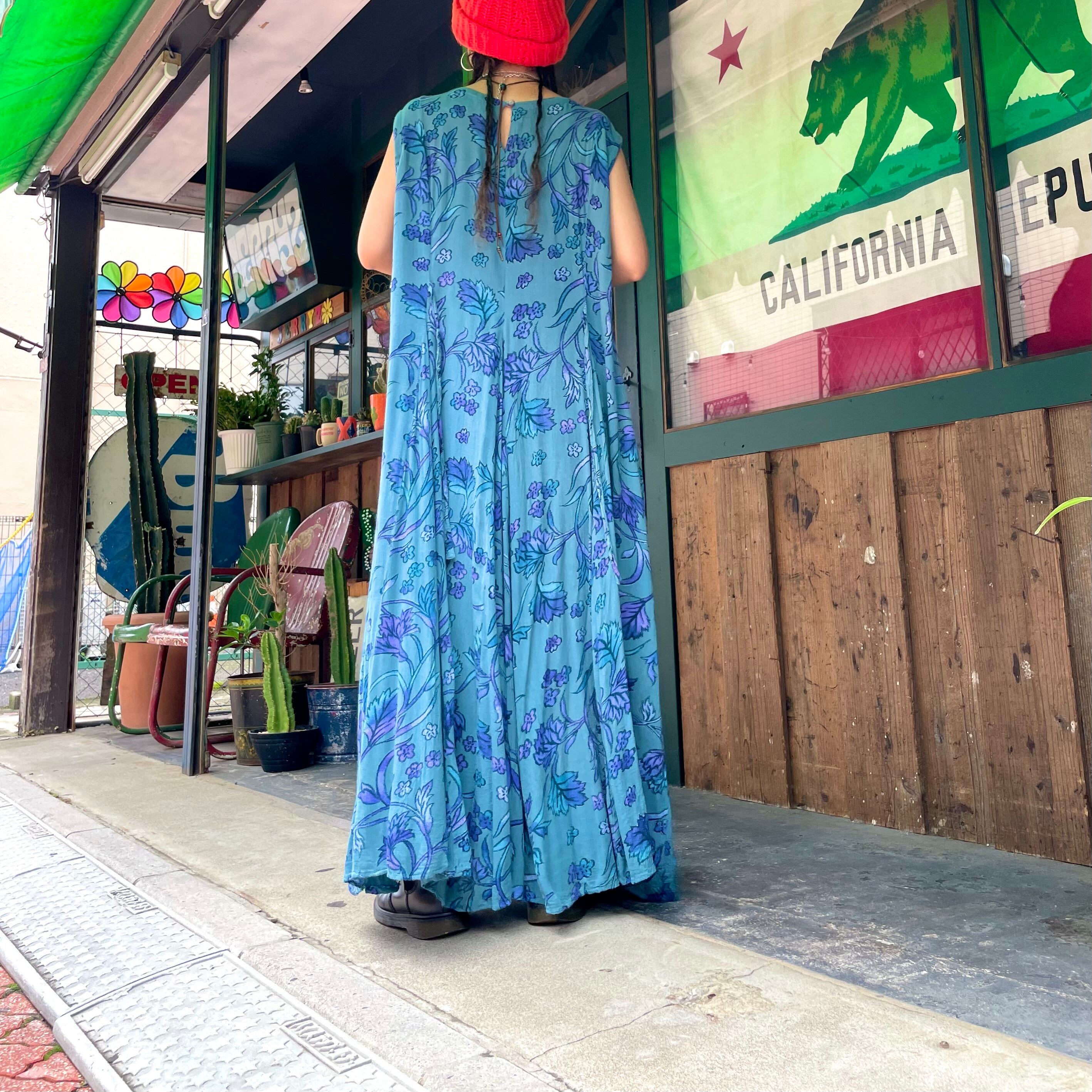 きれいな色味の葉っぱやお花がかわいい、レーヨン素材のワンピースです。