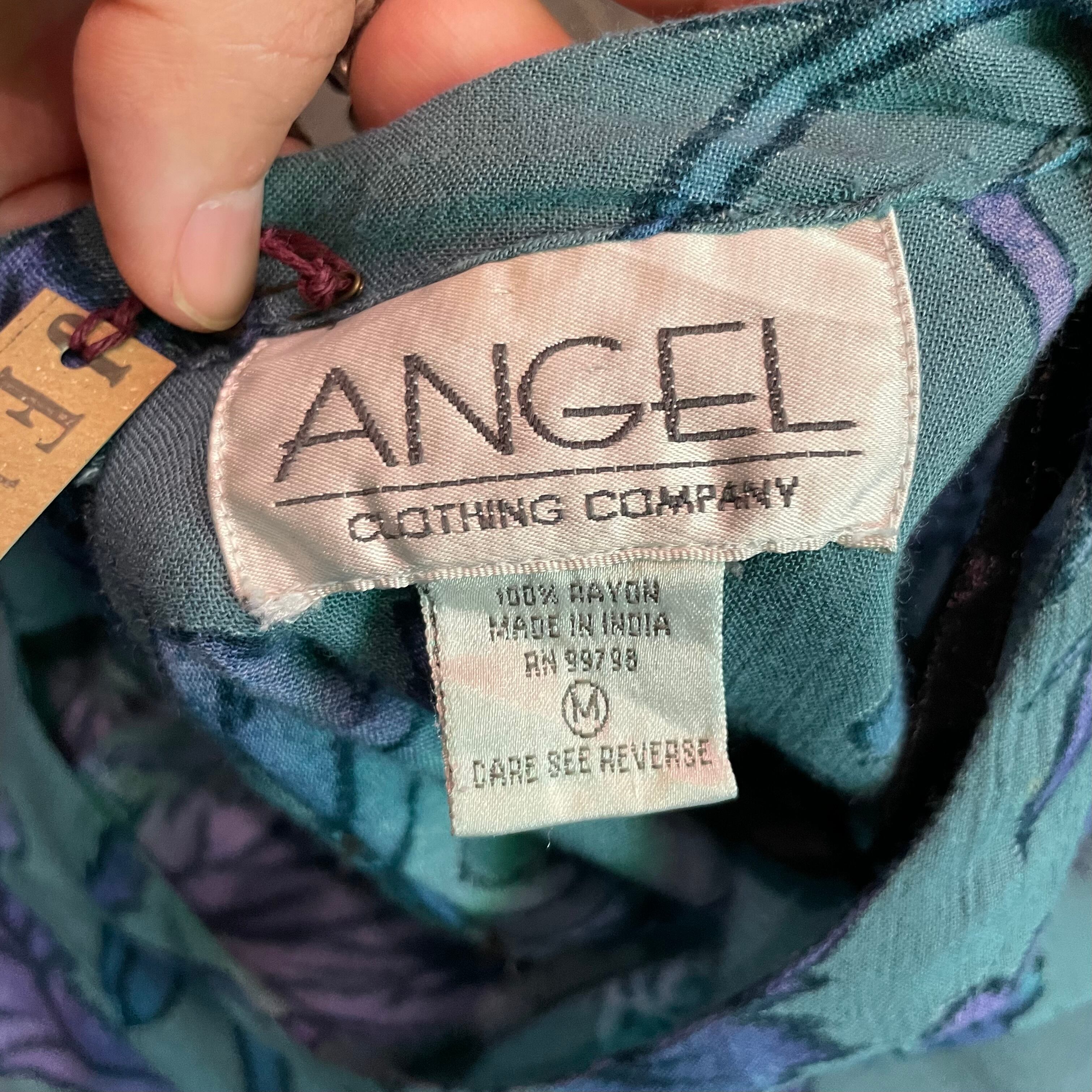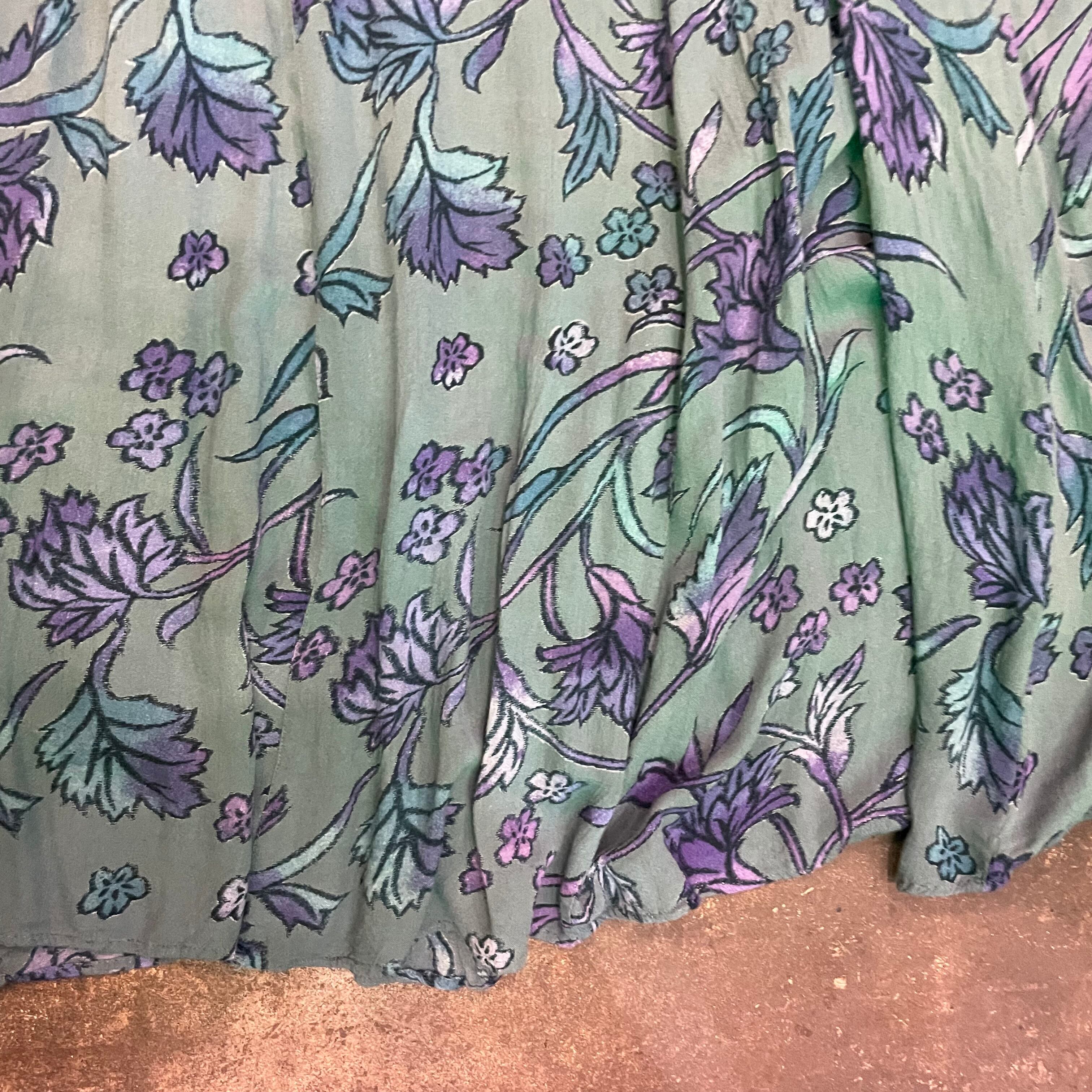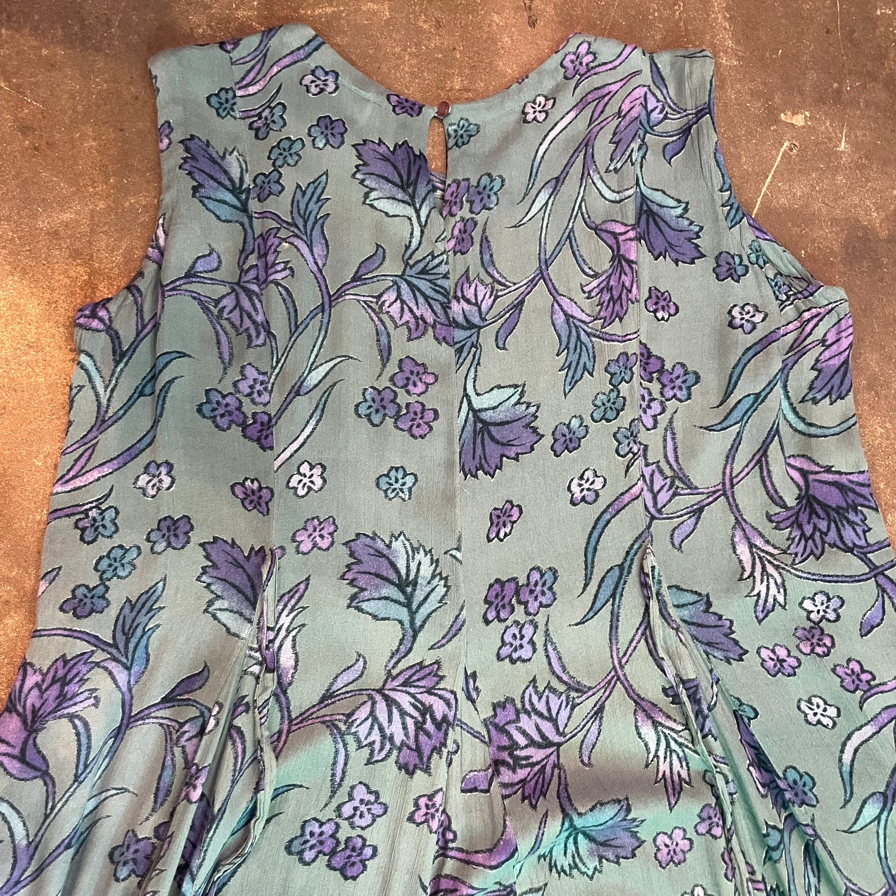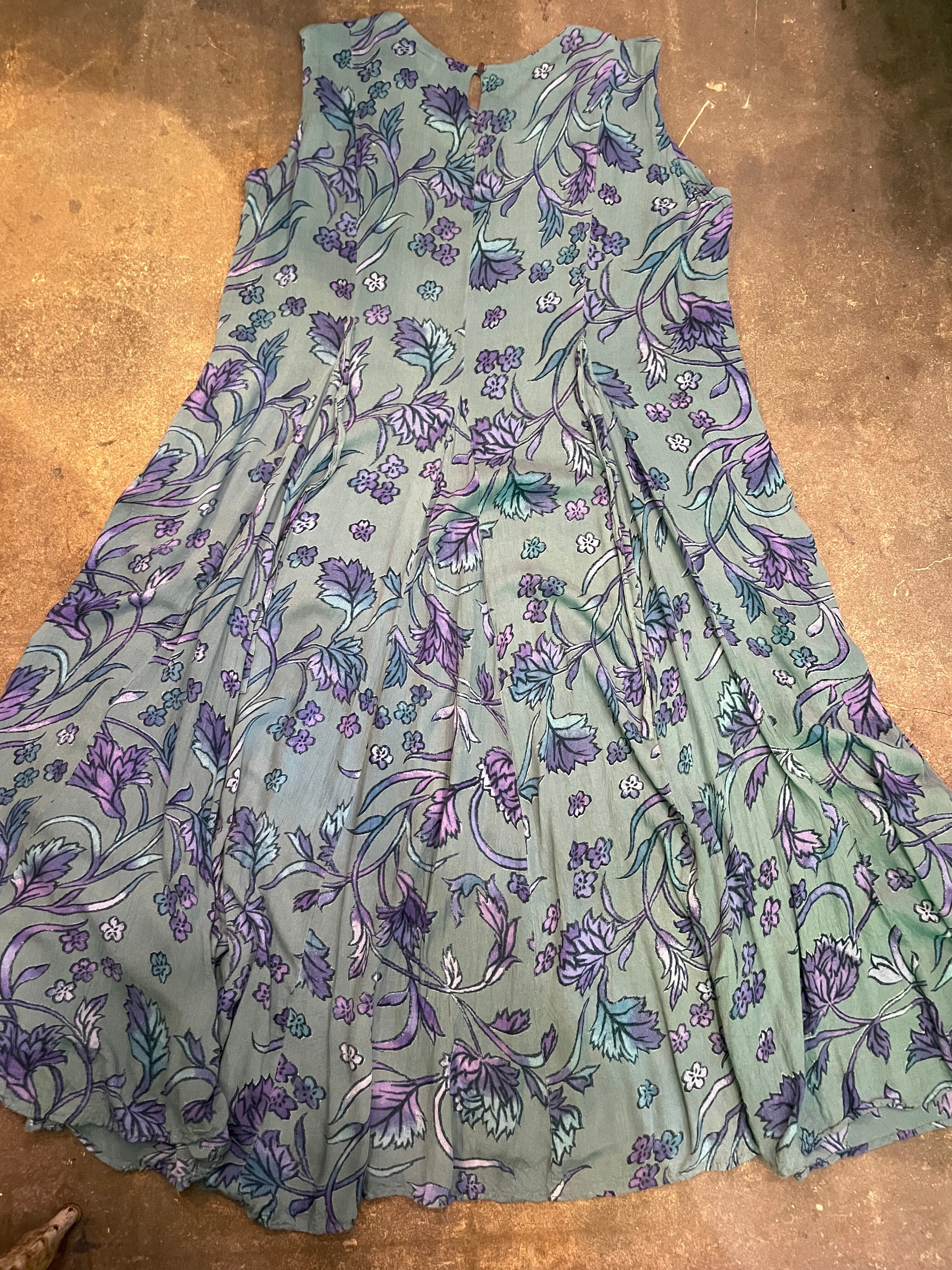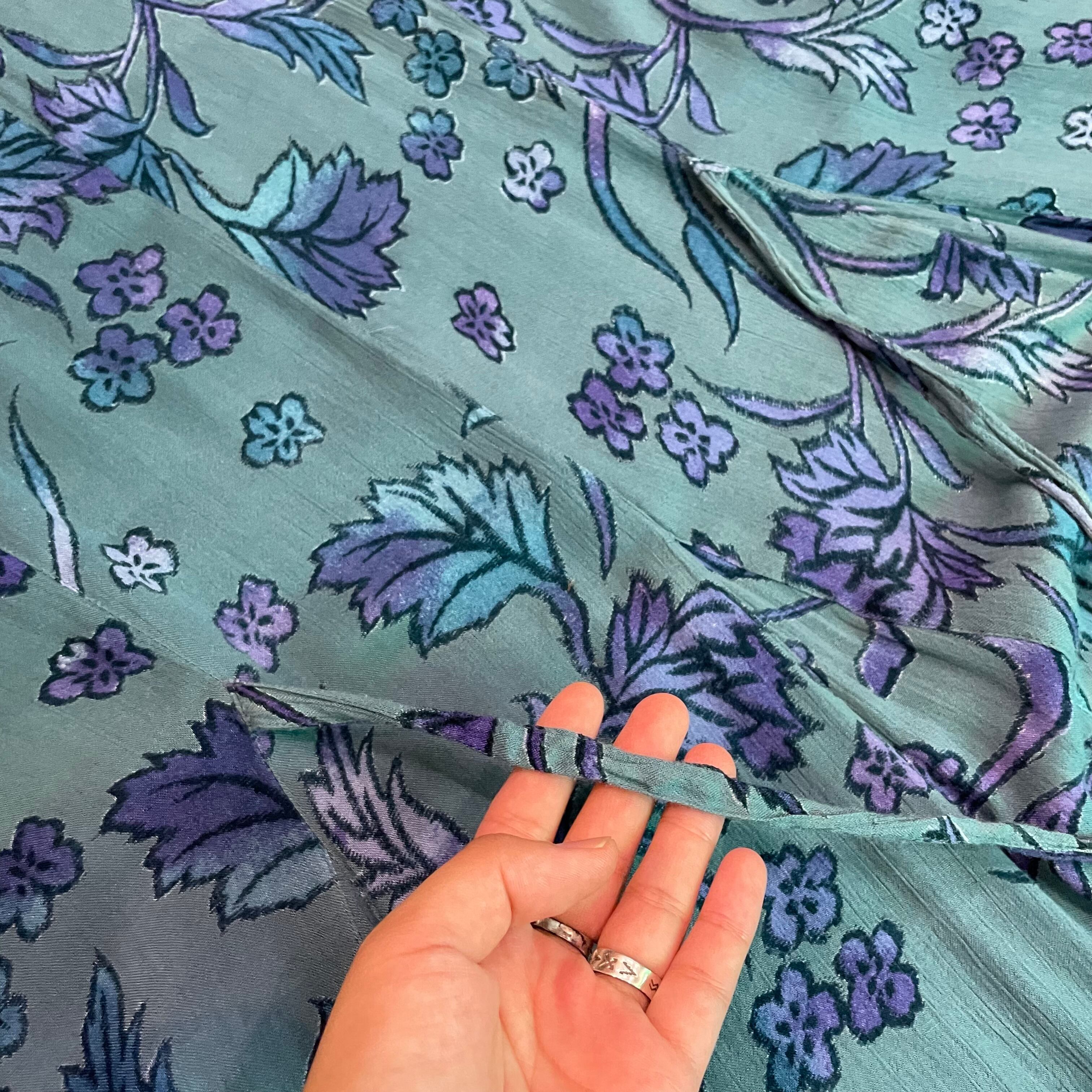 きれいな色味の葉っぱやお花がかわいい、レーヨン素材のワンピースです。