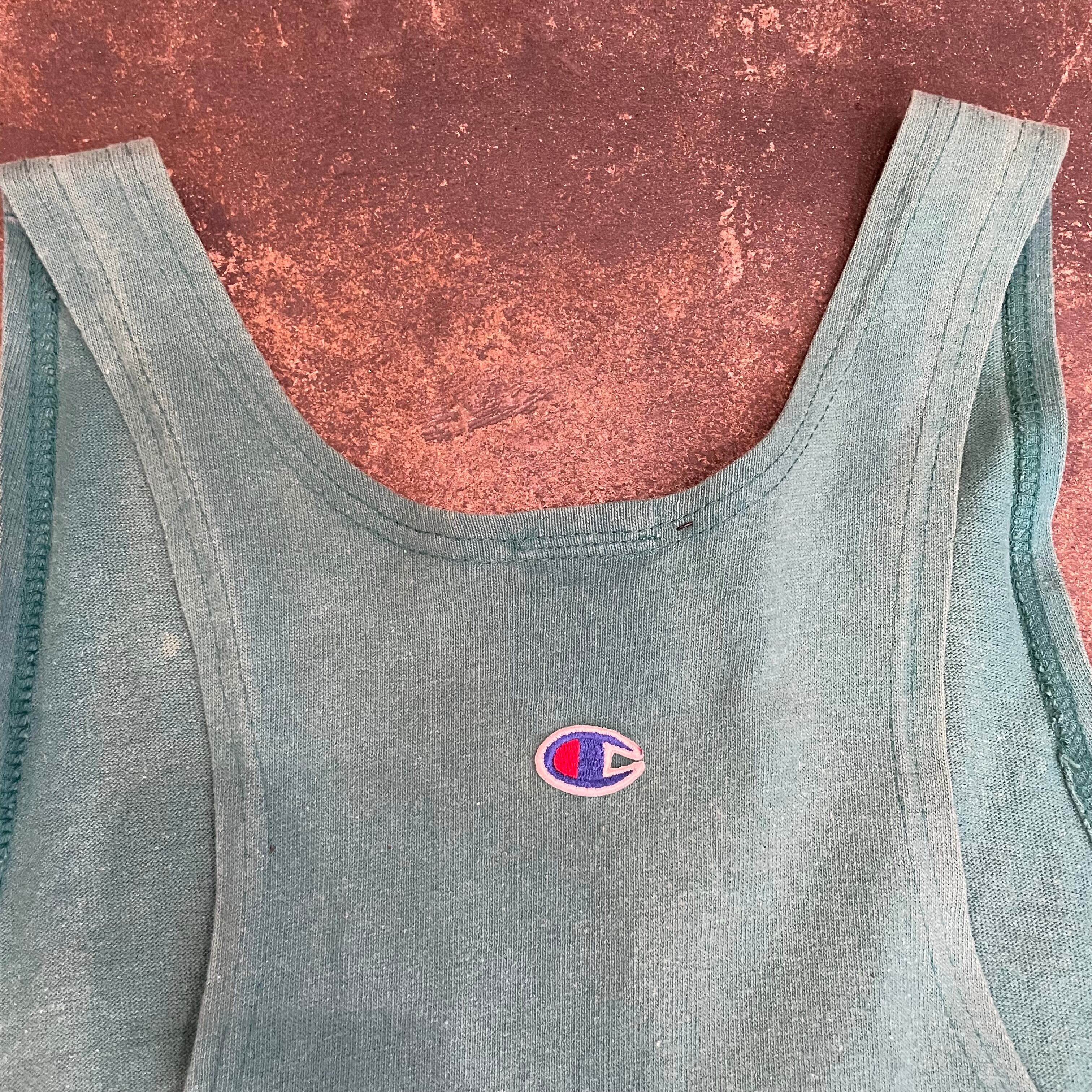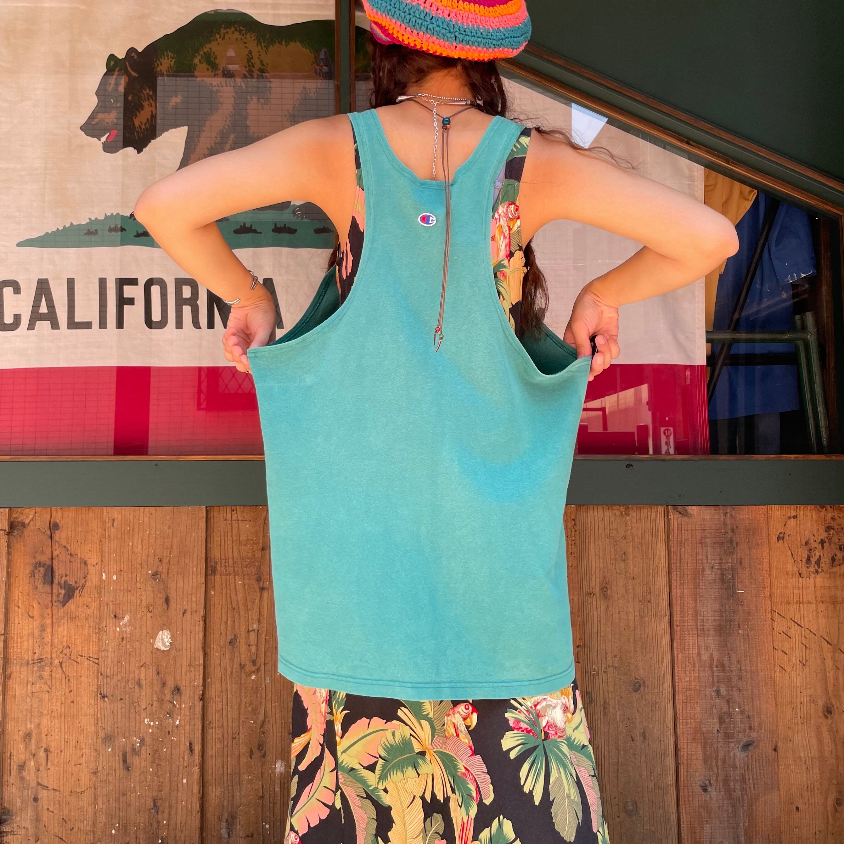青緑っぽい色味がかわいい90年代USA製Championのタンクトップです。