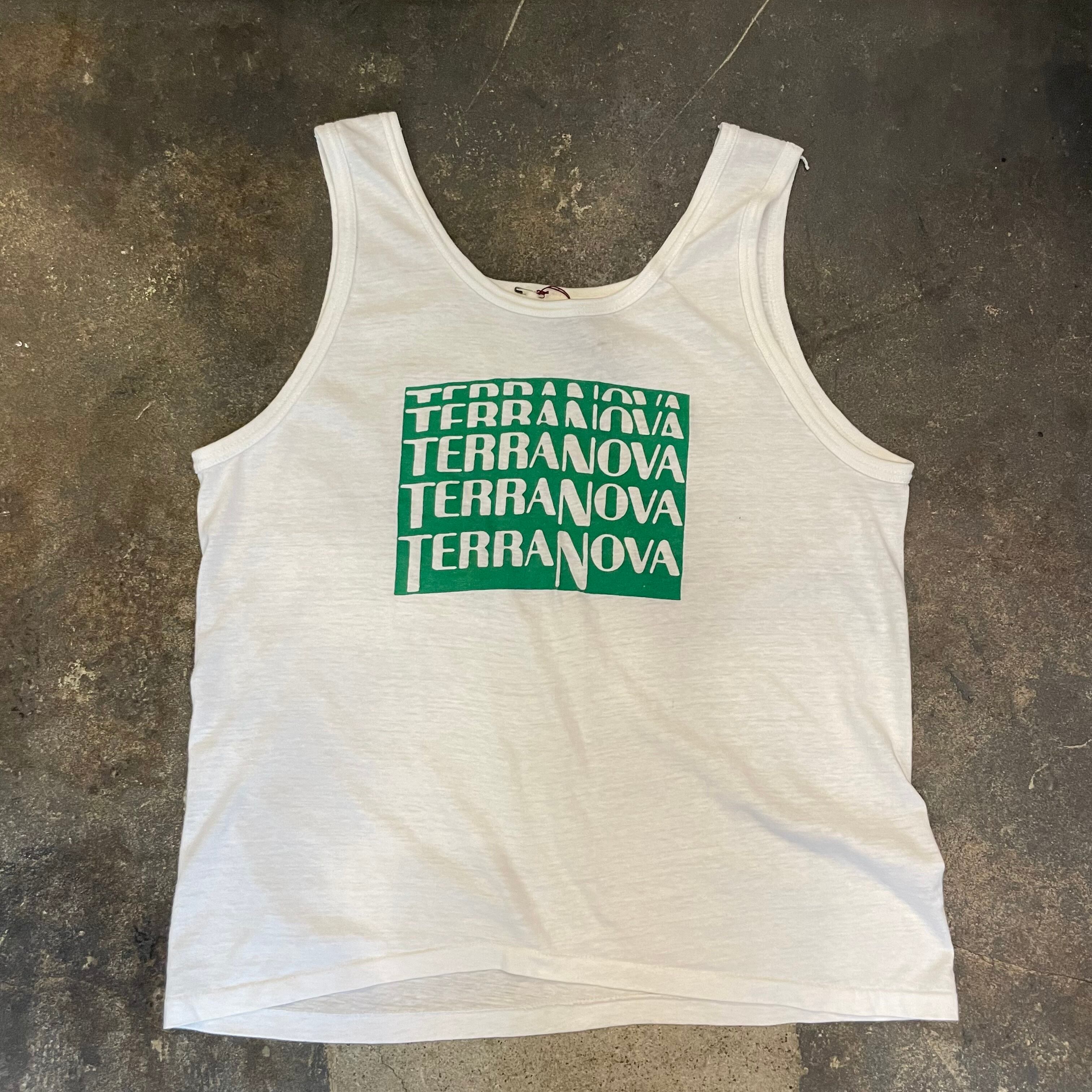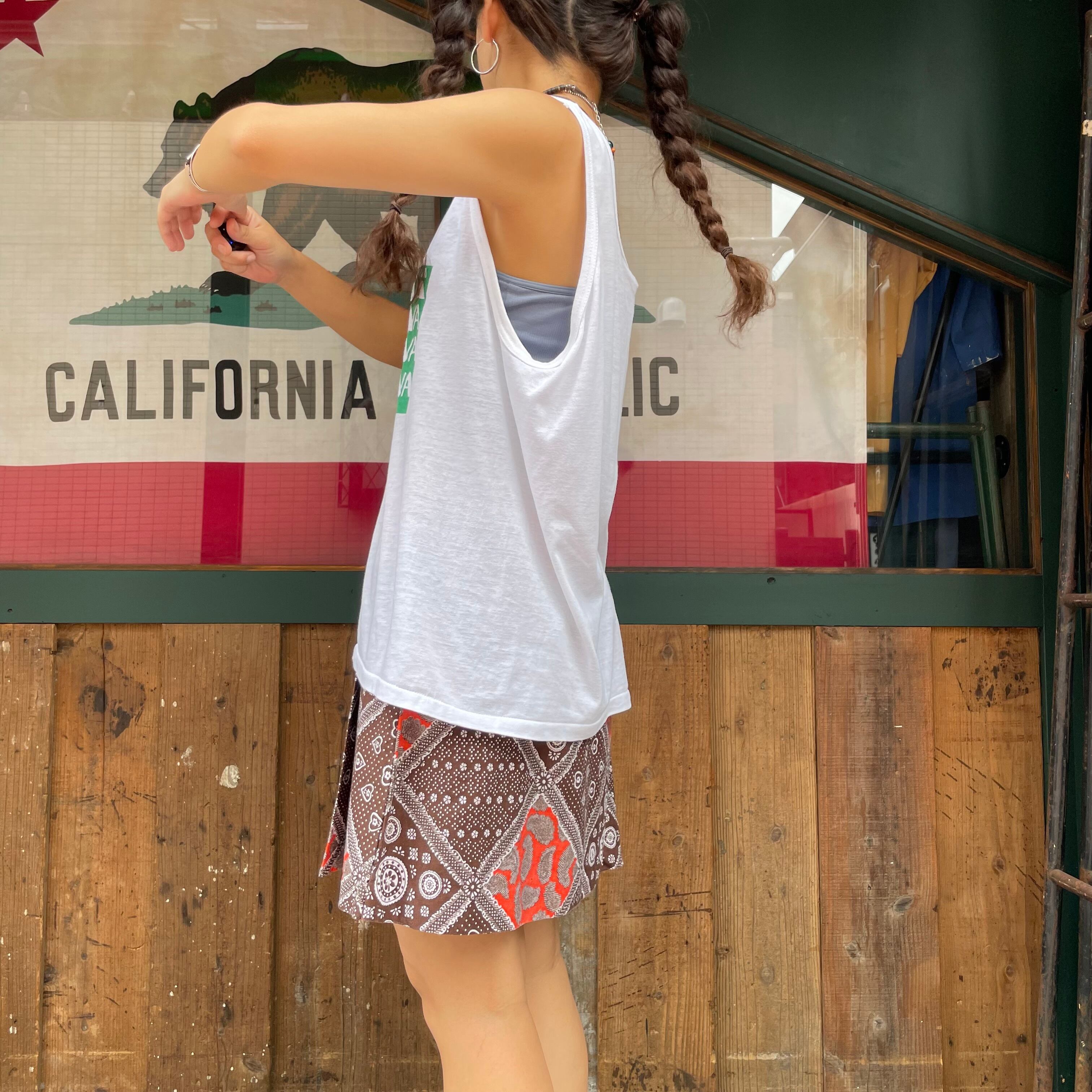 緑に白抜きのロゴがインパクトがあってかわいいタンクトップです。