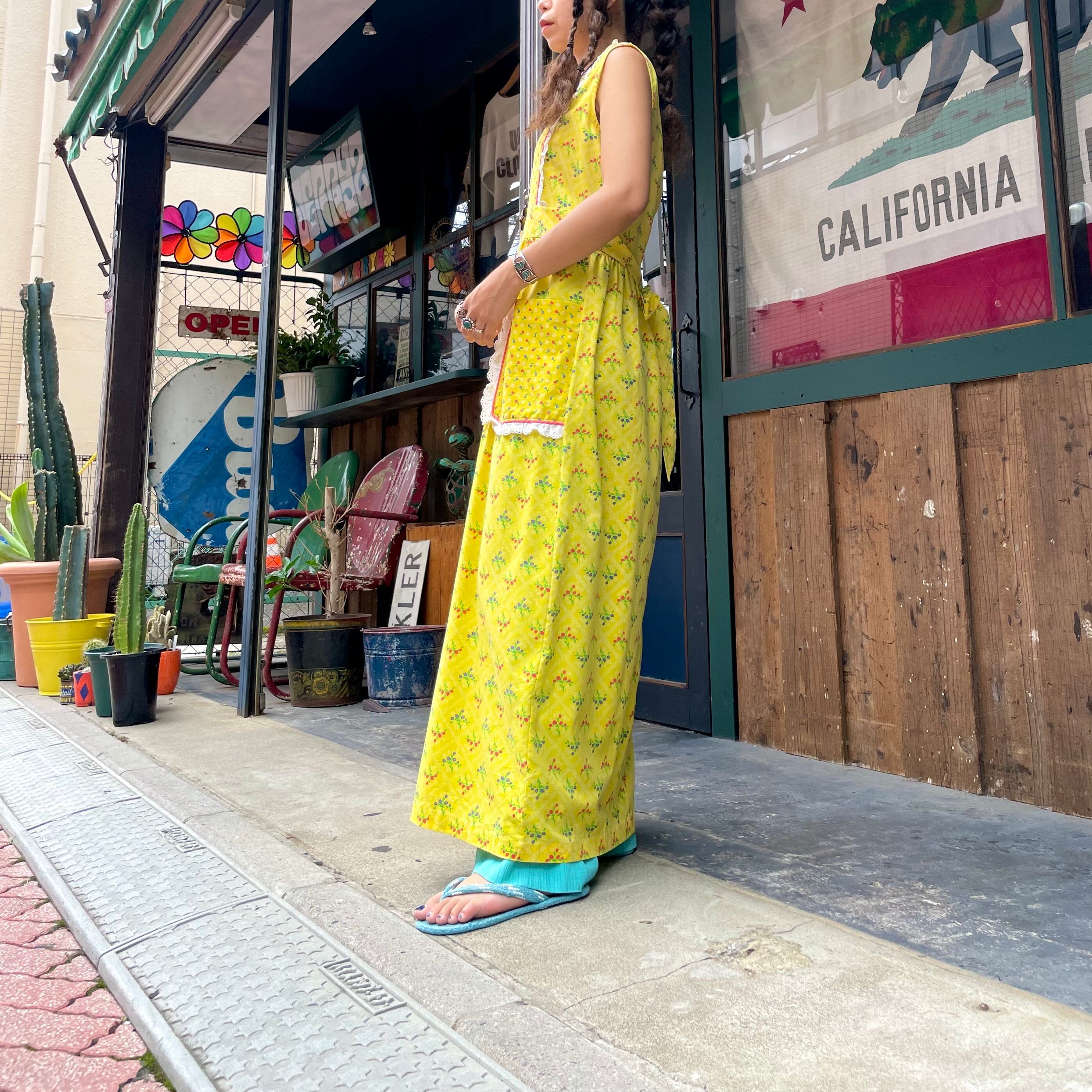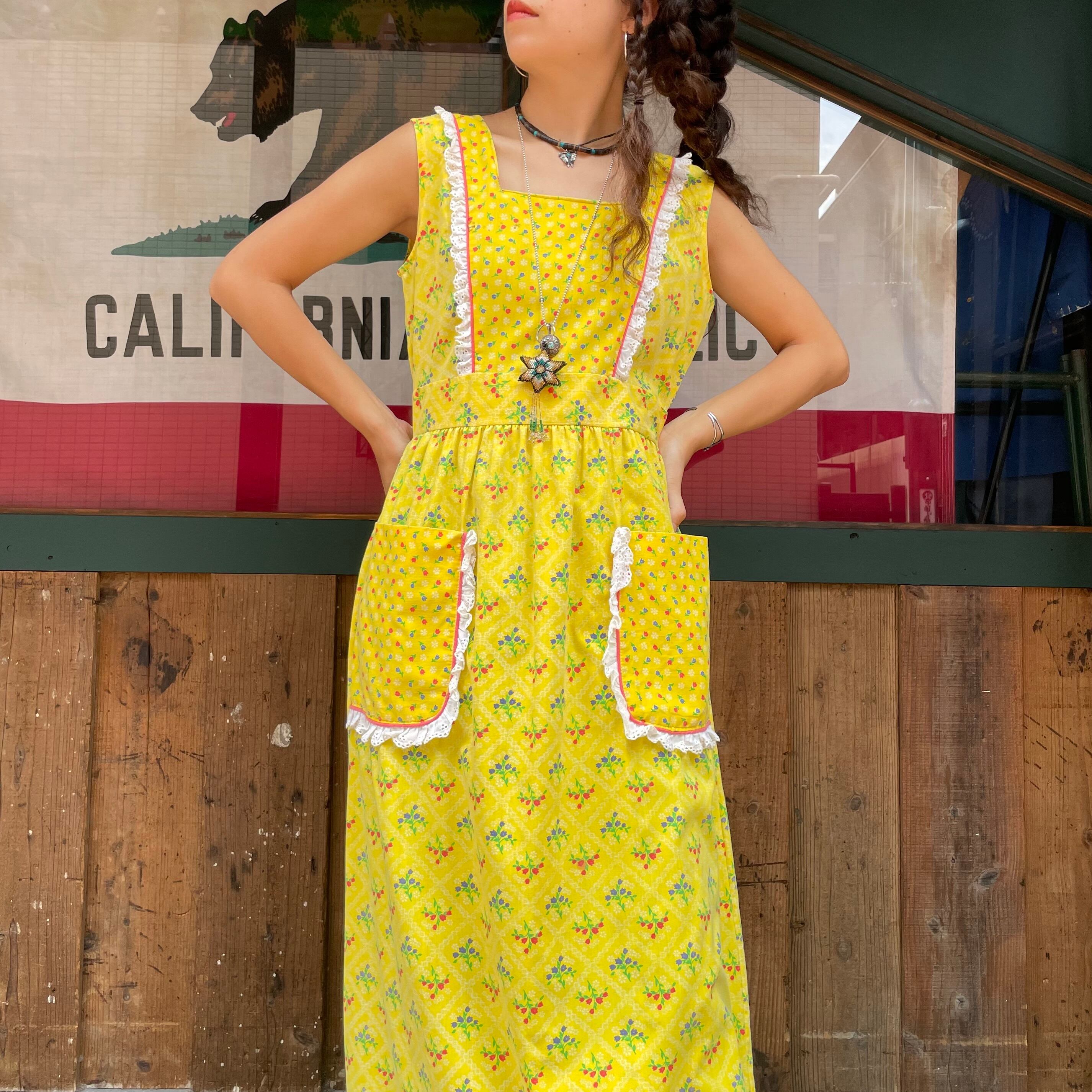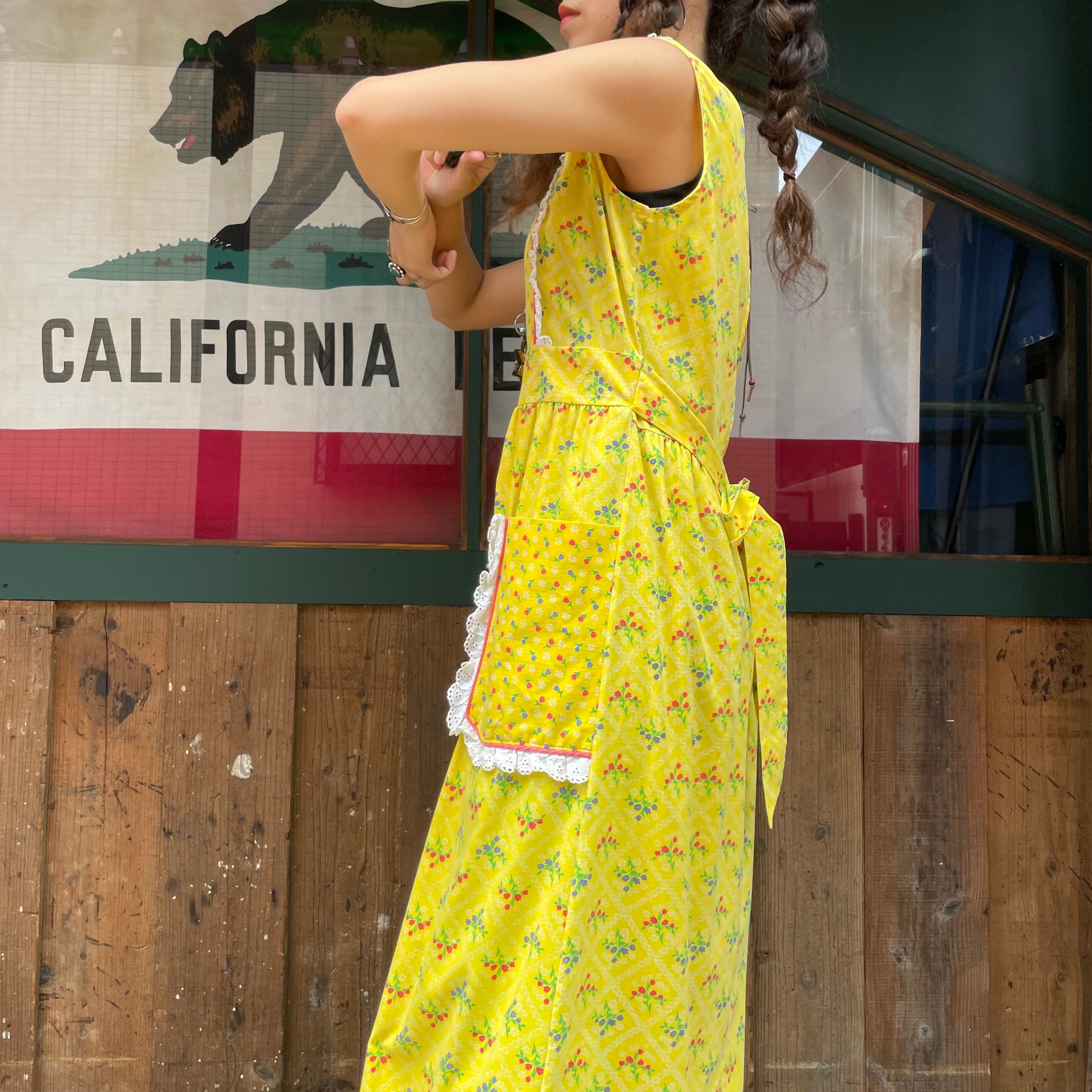 70's yellow apron style dress