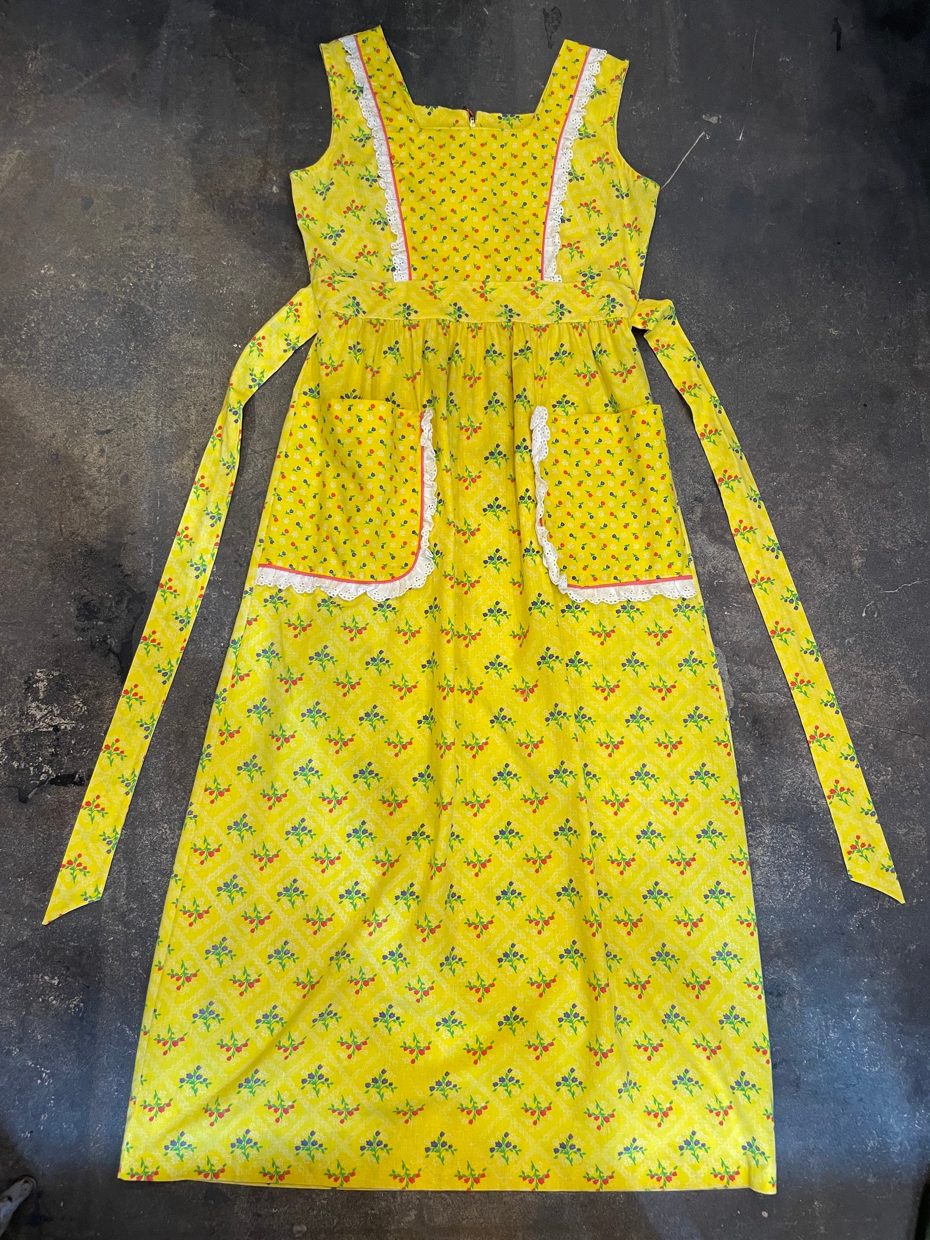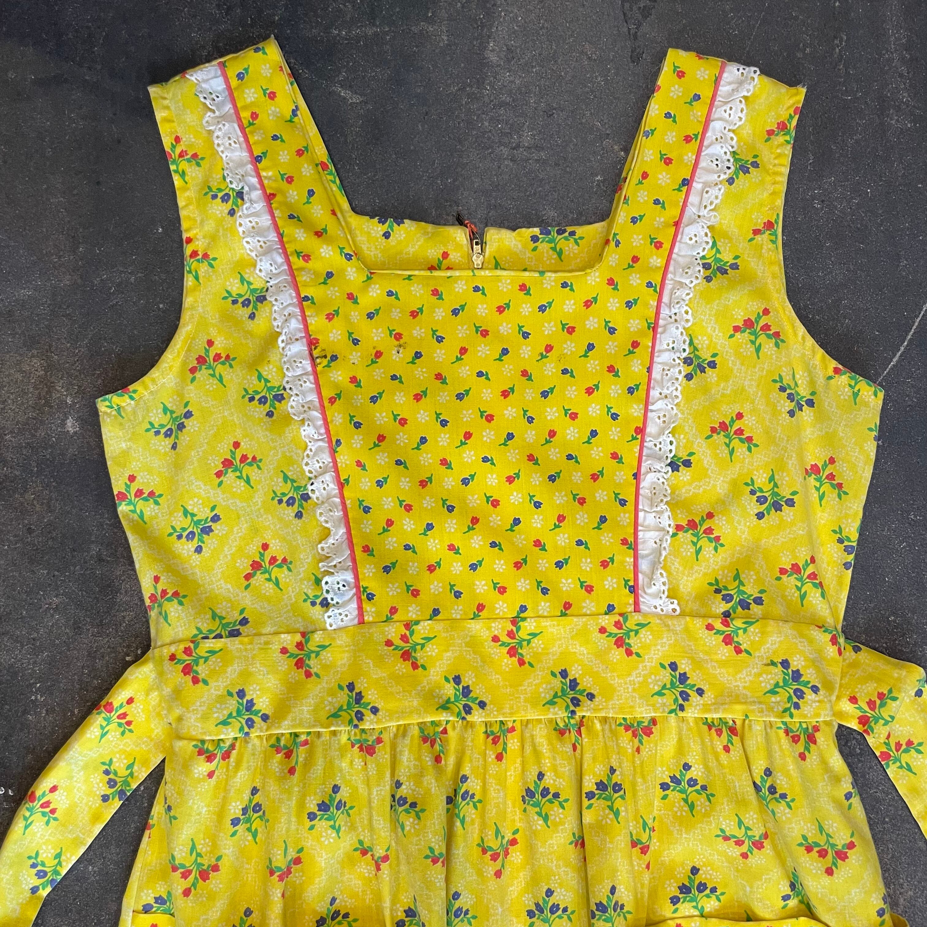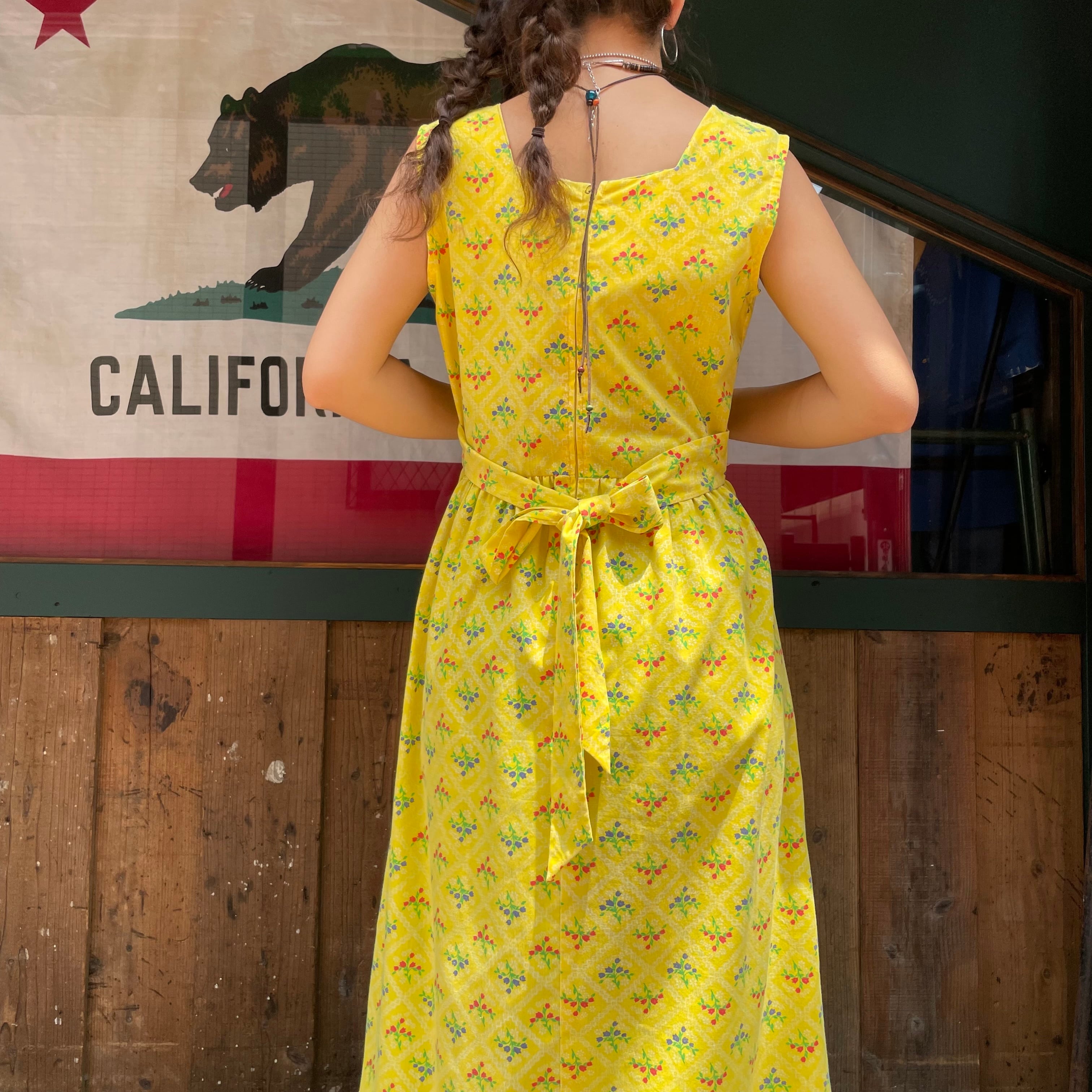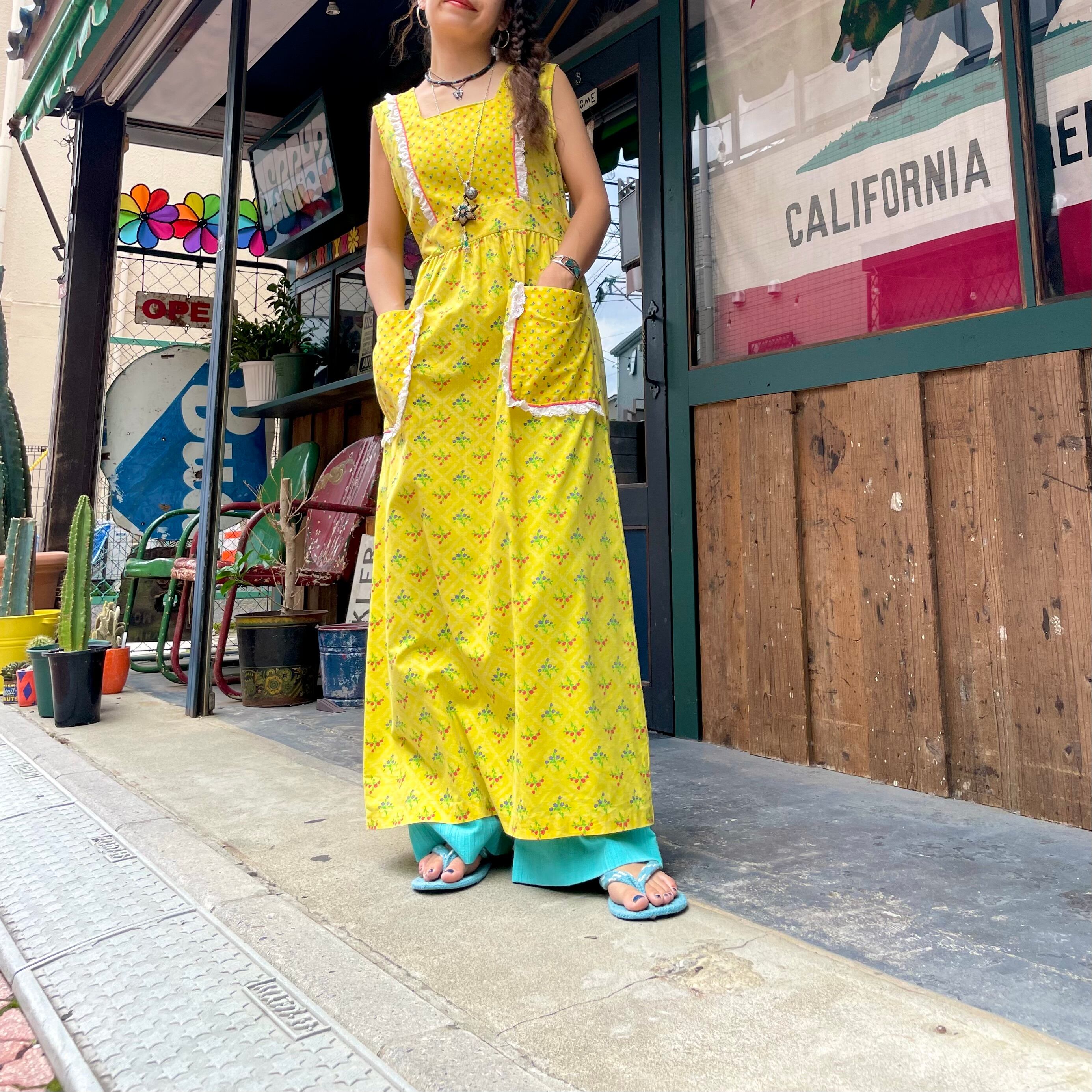 70's yellow apron style dress