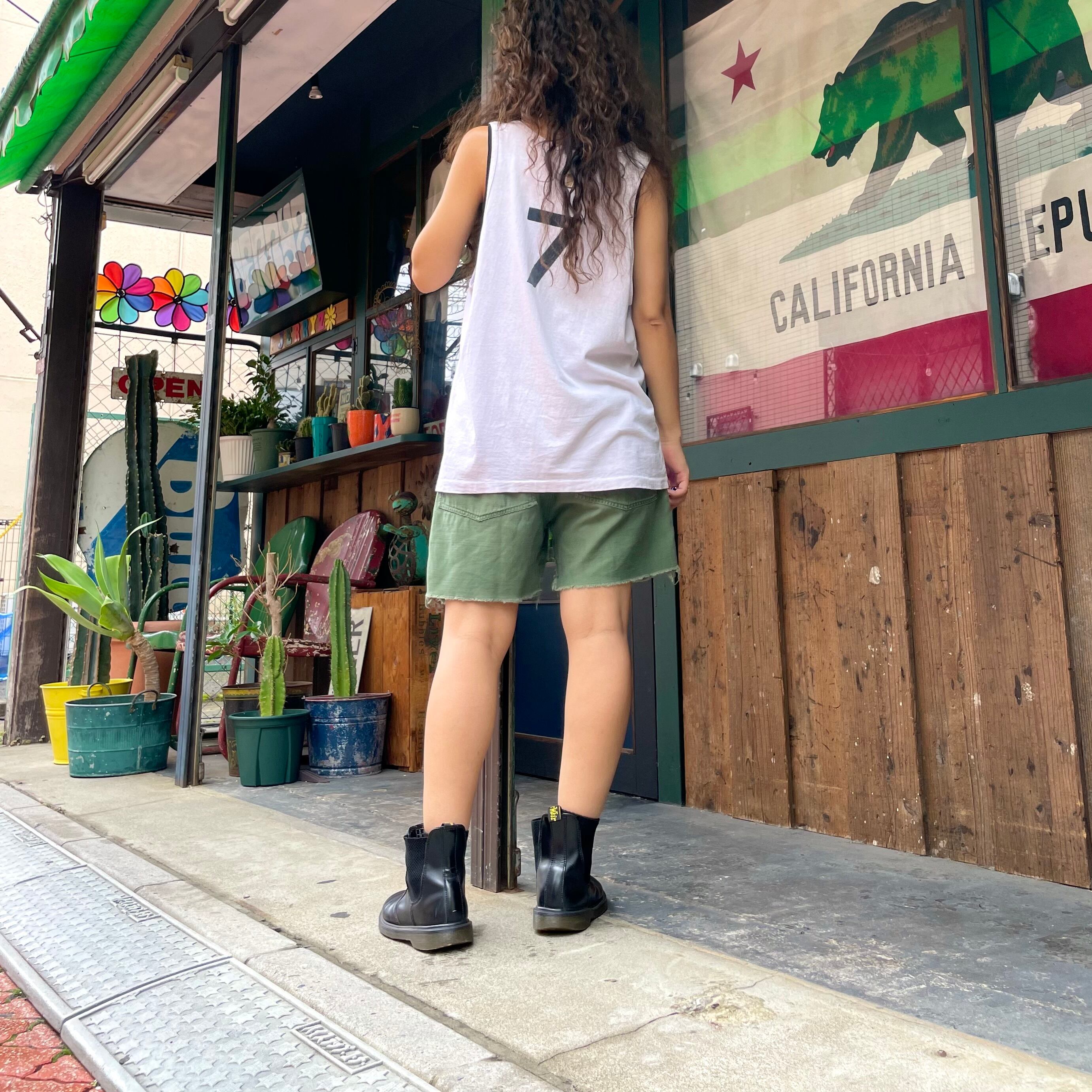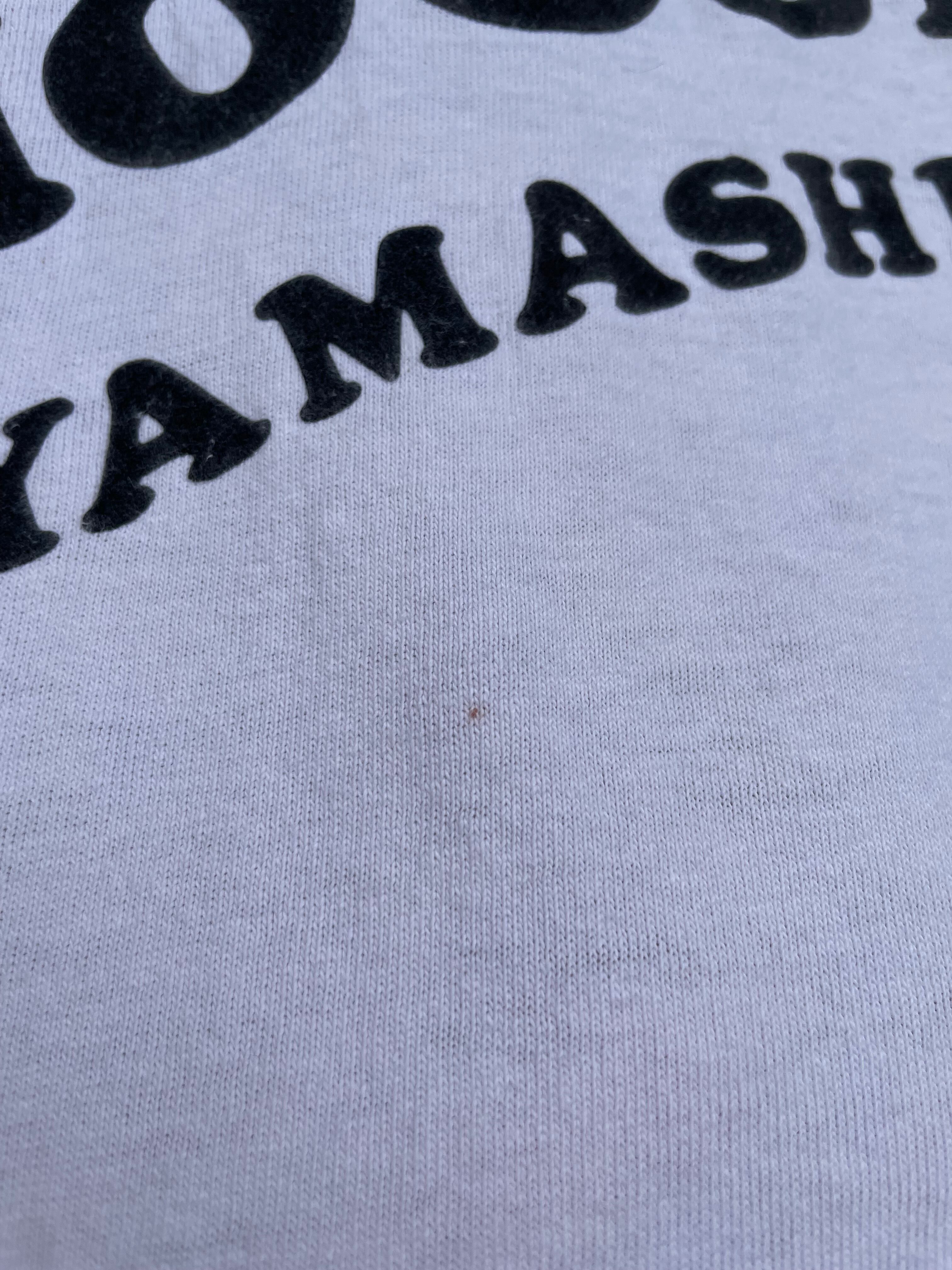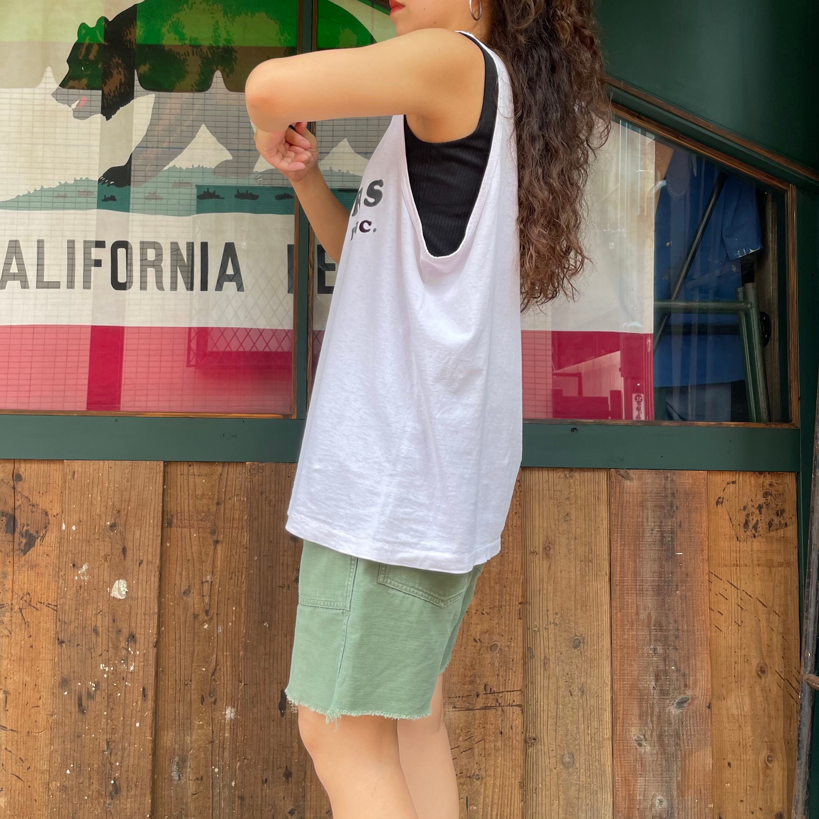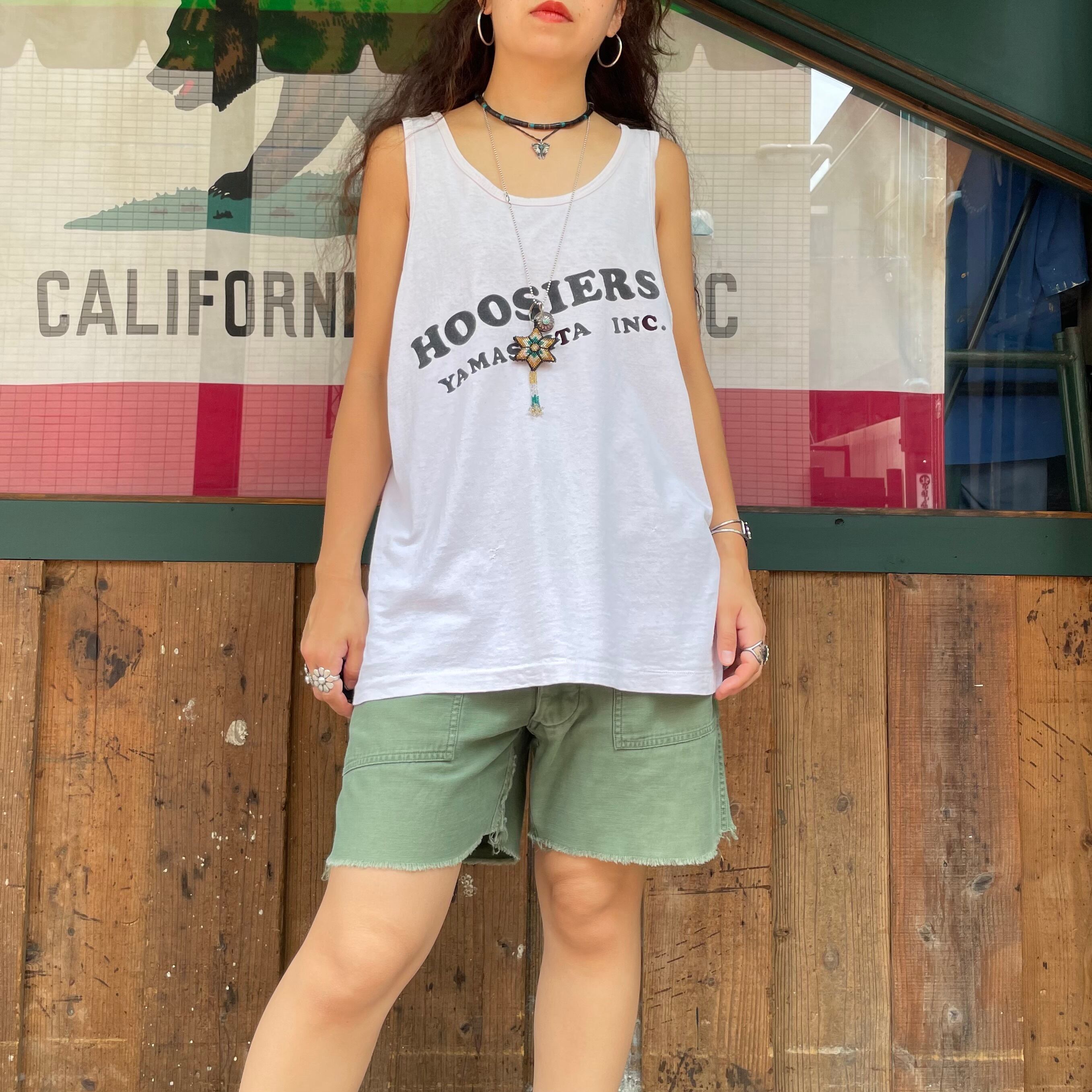 フロッキープリントがかわいいタンクトップです。背中にもプリントがあるところも良いですね。ちゃんと見るとYAMASHITA INCと書いてありなんの会社だったのか不明です、なんだかがかわいいですね。