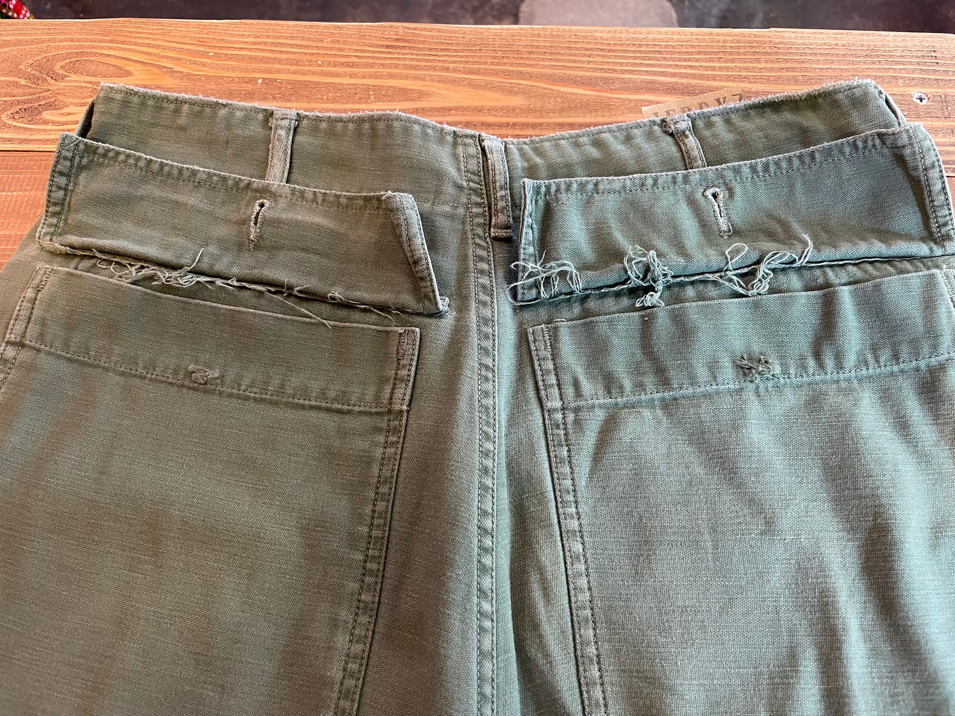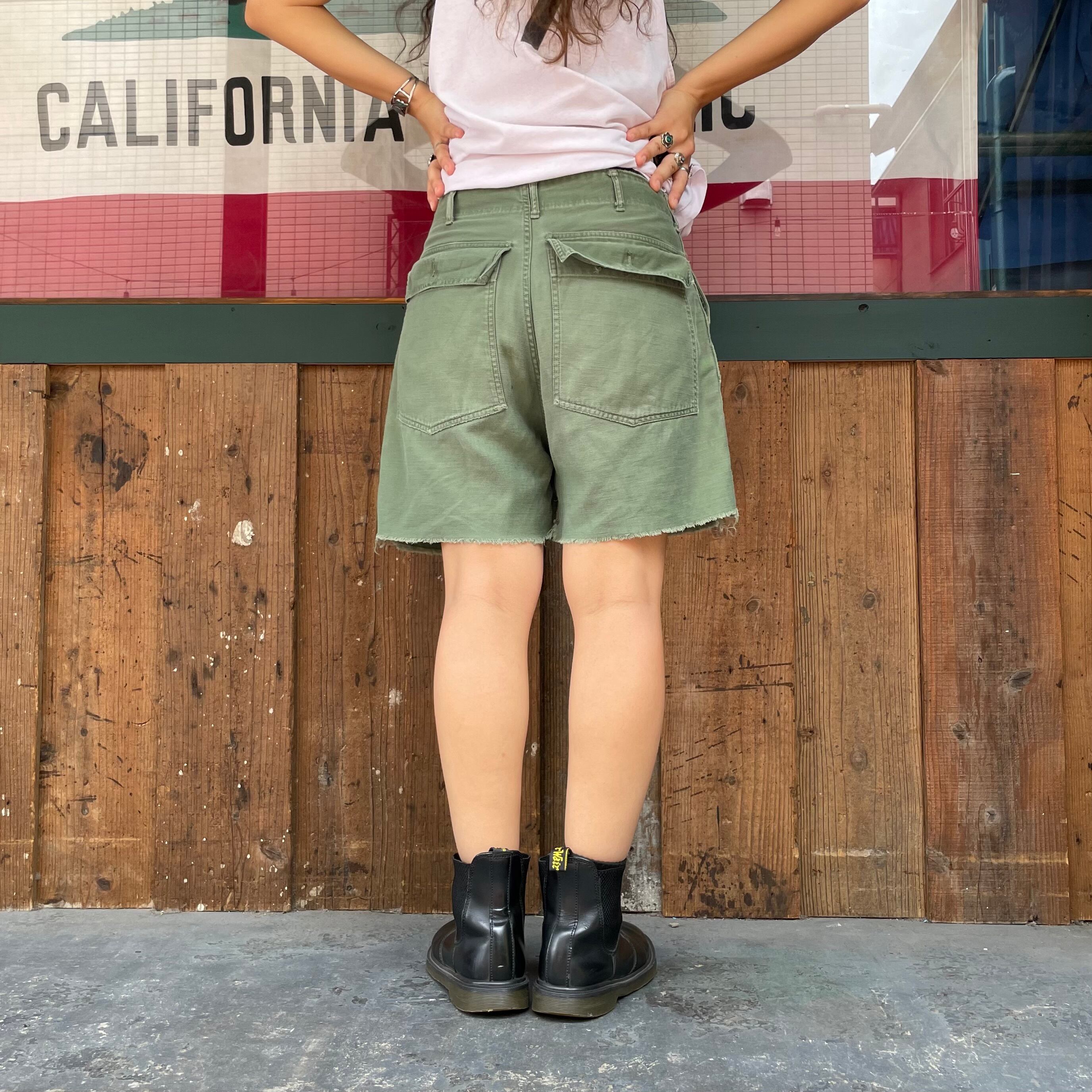 60年代頃のU.S.ARMYベイカーパンツをカットオフされたハーフパンツです。コットンのタイプはやはり肌触りが気持ち良いですし、ヴィンテージな雰囲気たっぷりで良い感じですね。