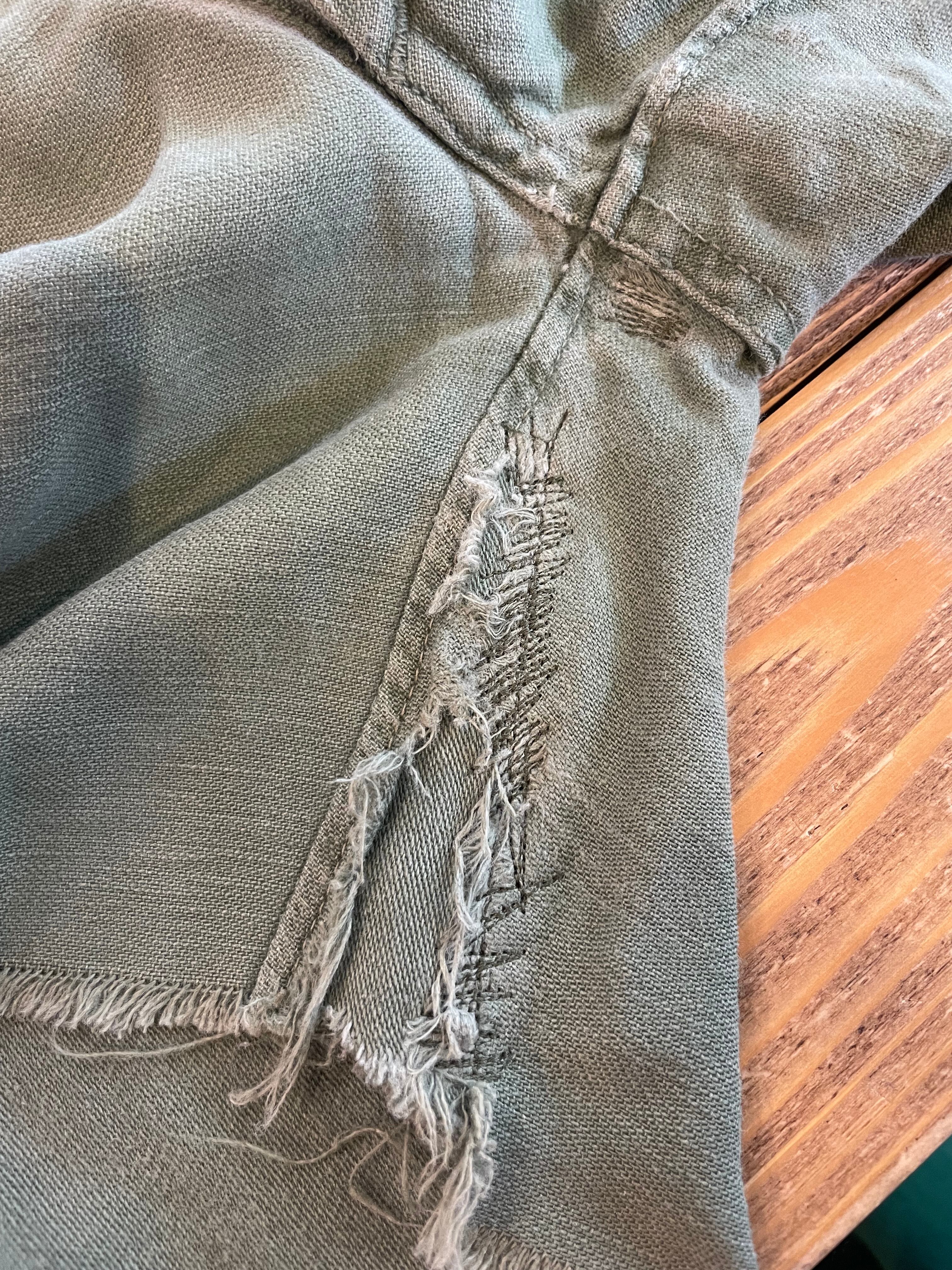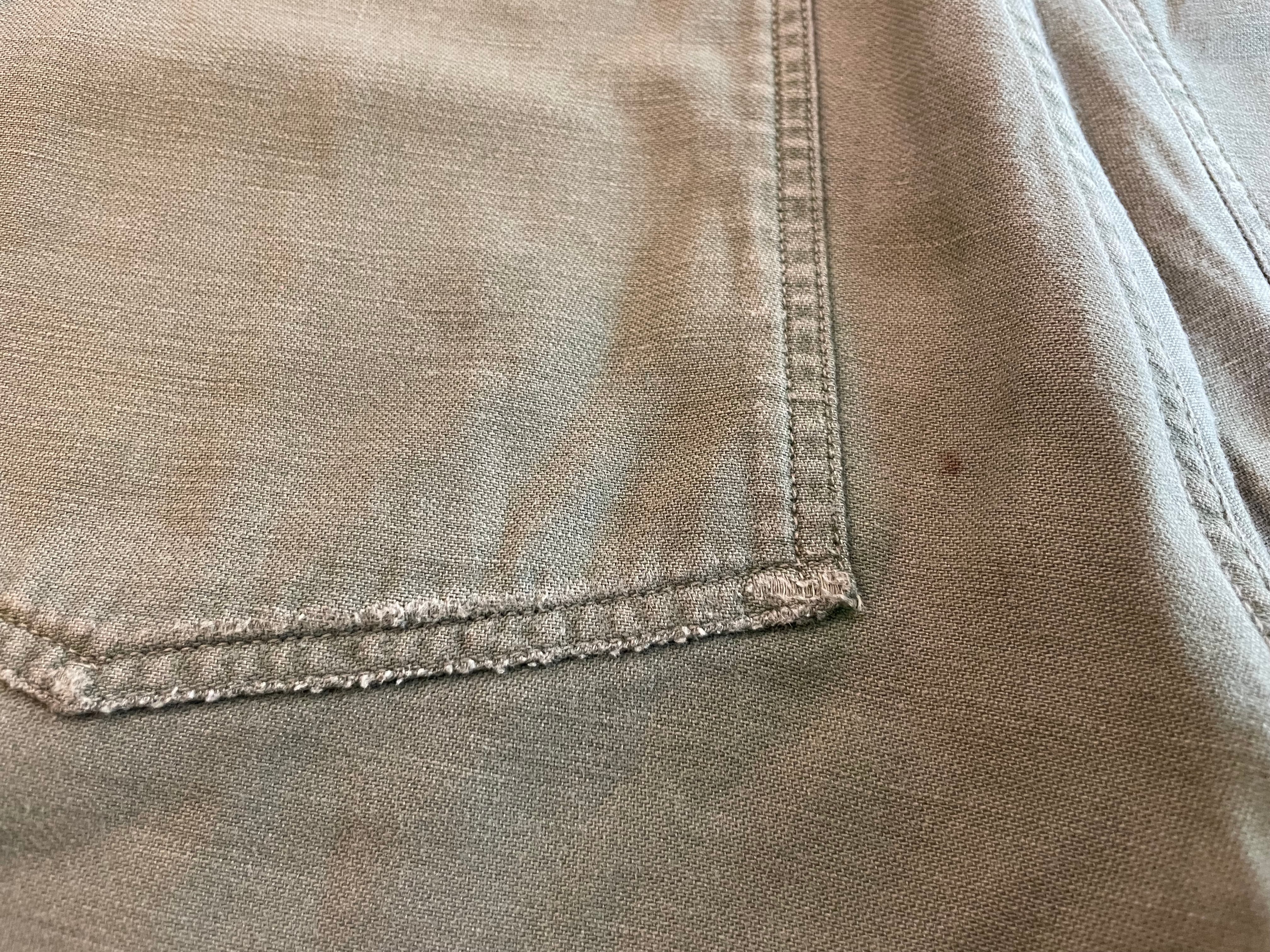 キズやリペア、擦れ、シミ等全体的にダメージのある商品です。後ろのポケットのボタンが欠損しています。古着にご理解のある方のご購入をお願い致します。