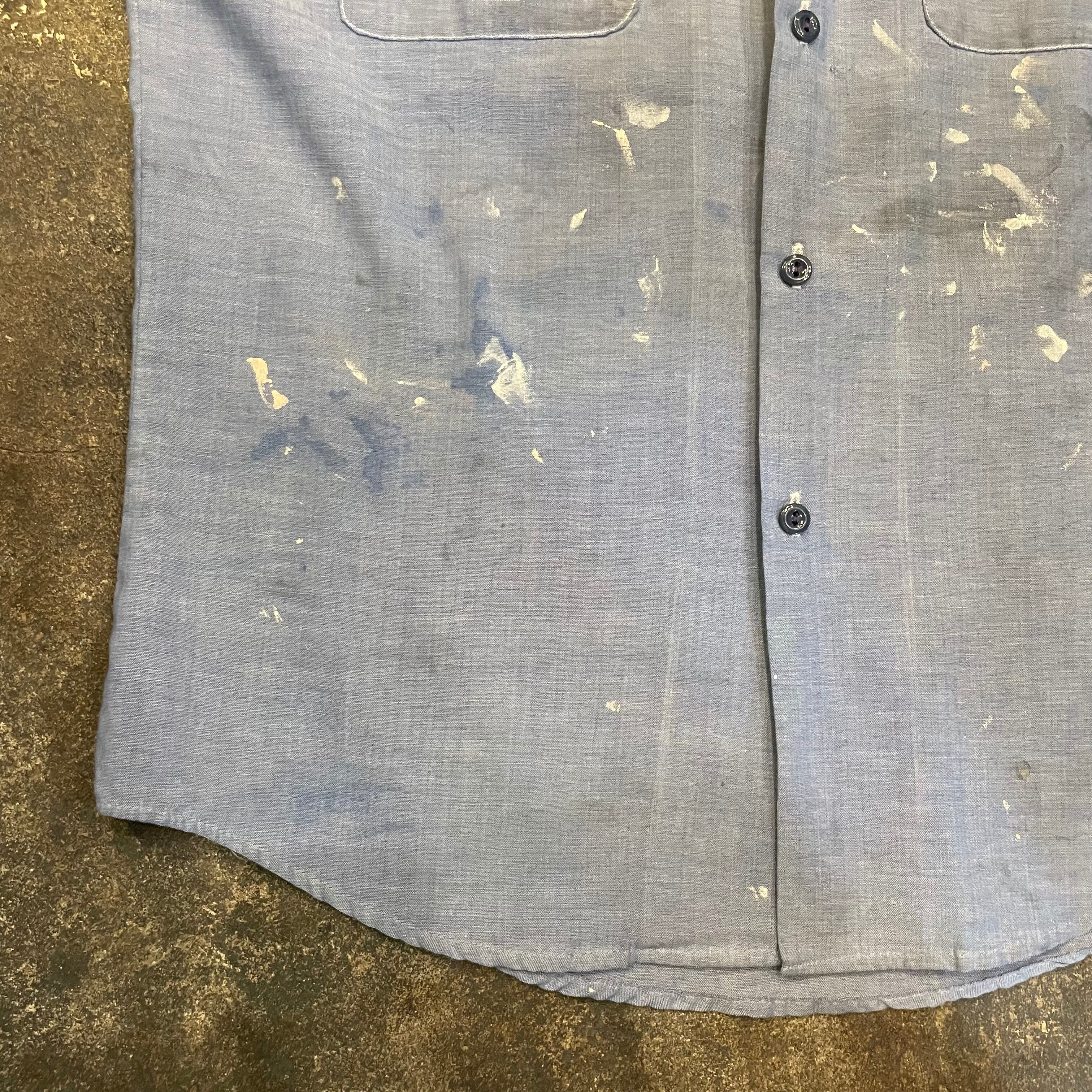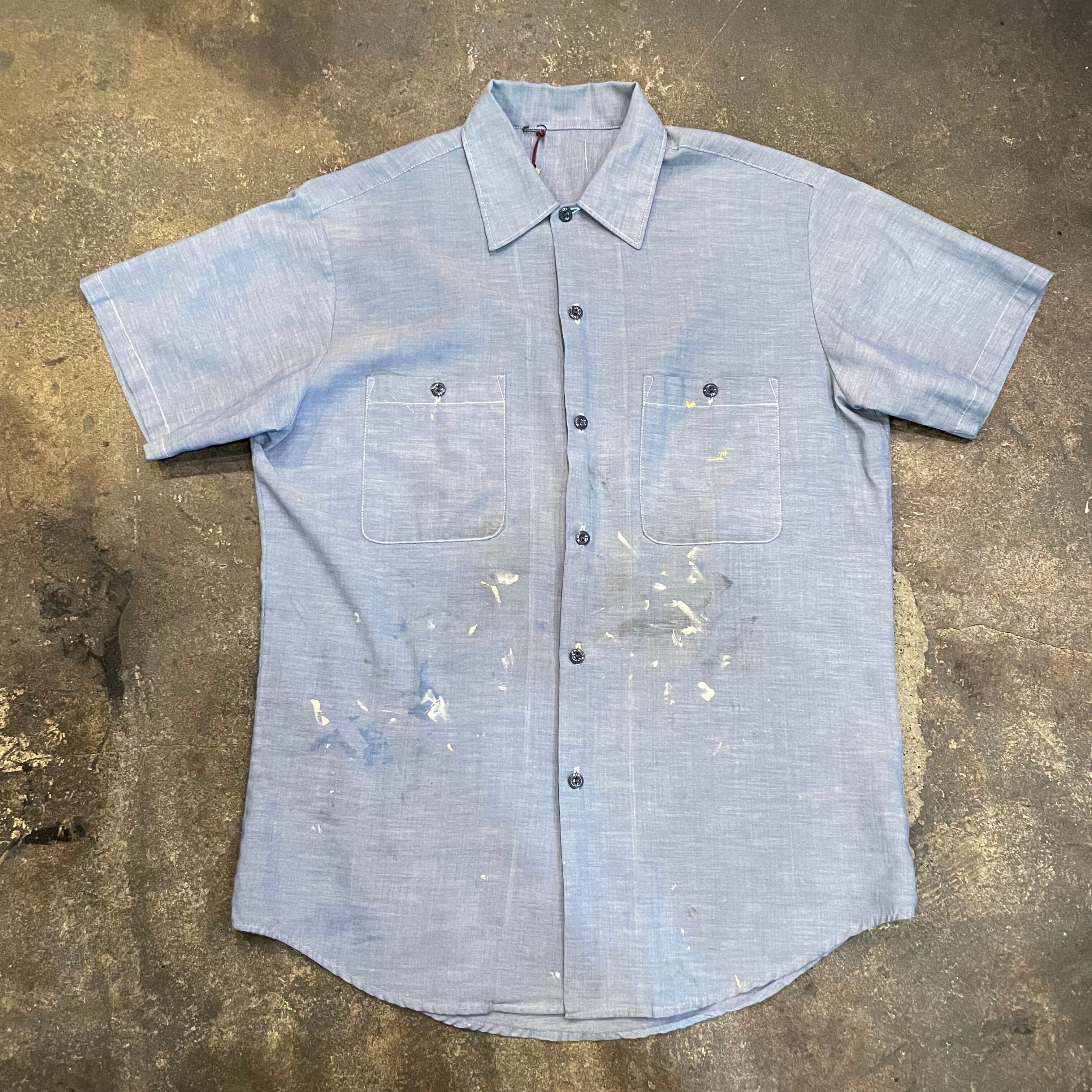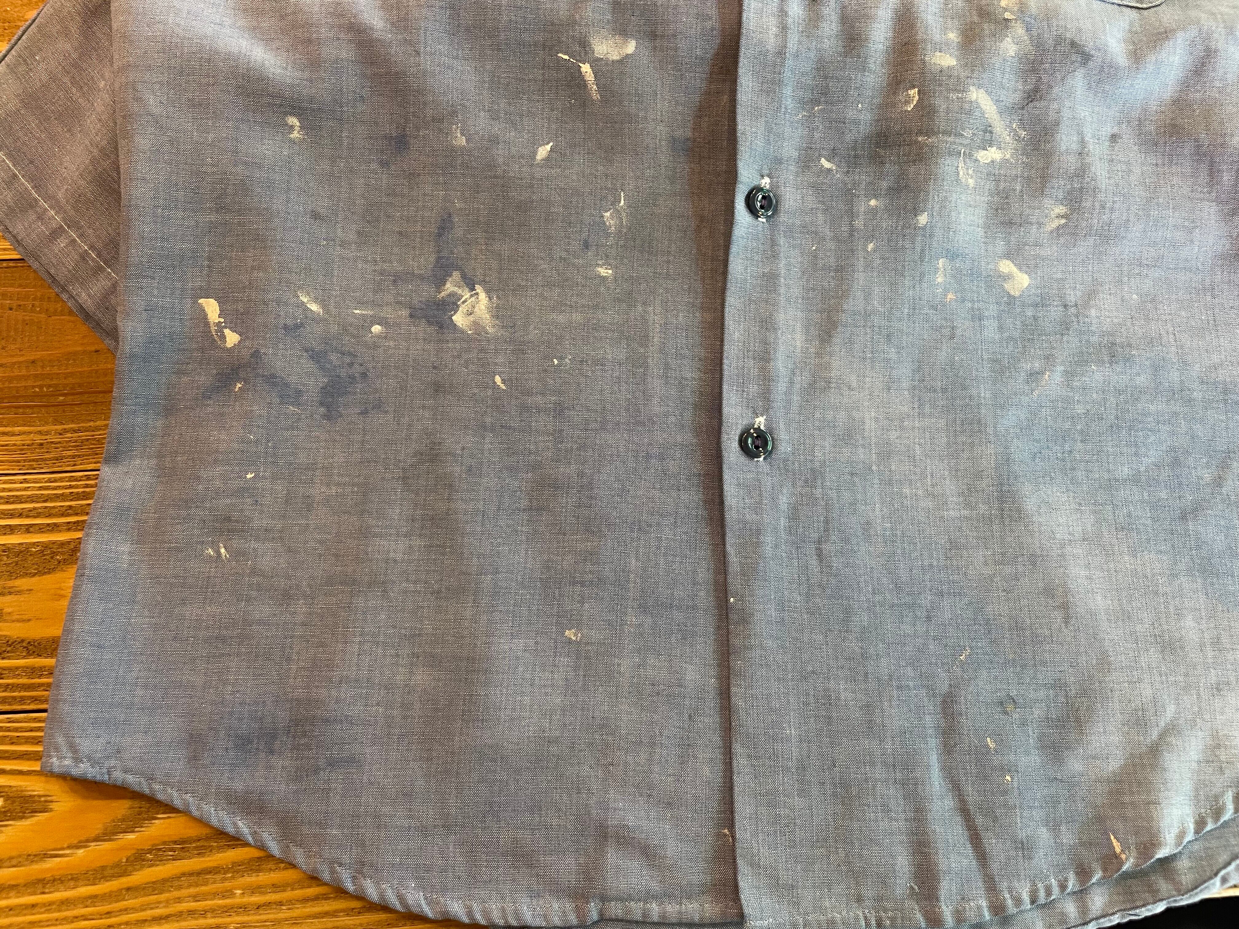 ペンキ汚れがかっこいい良い雰囲気の半袖のシャンブレーシャツです。