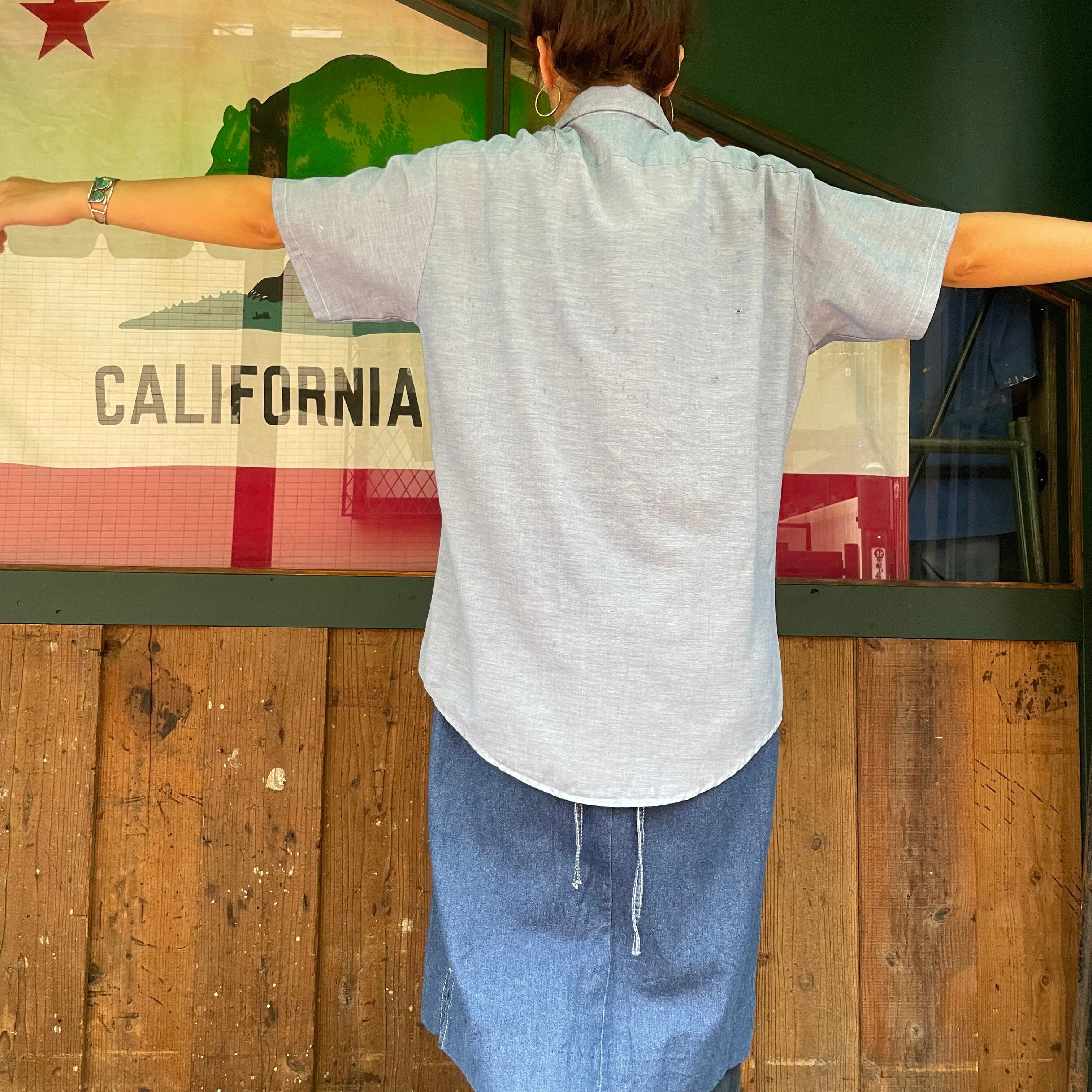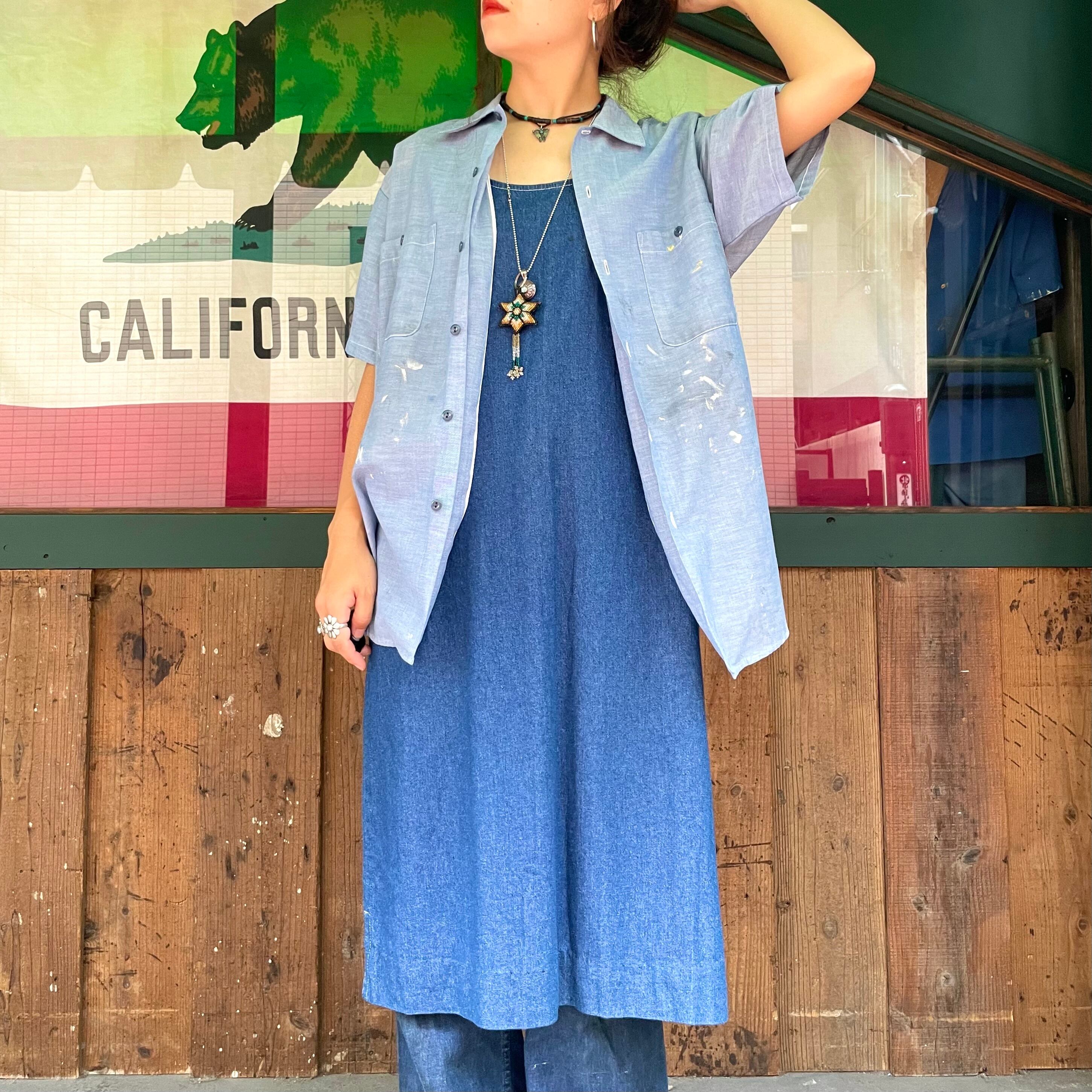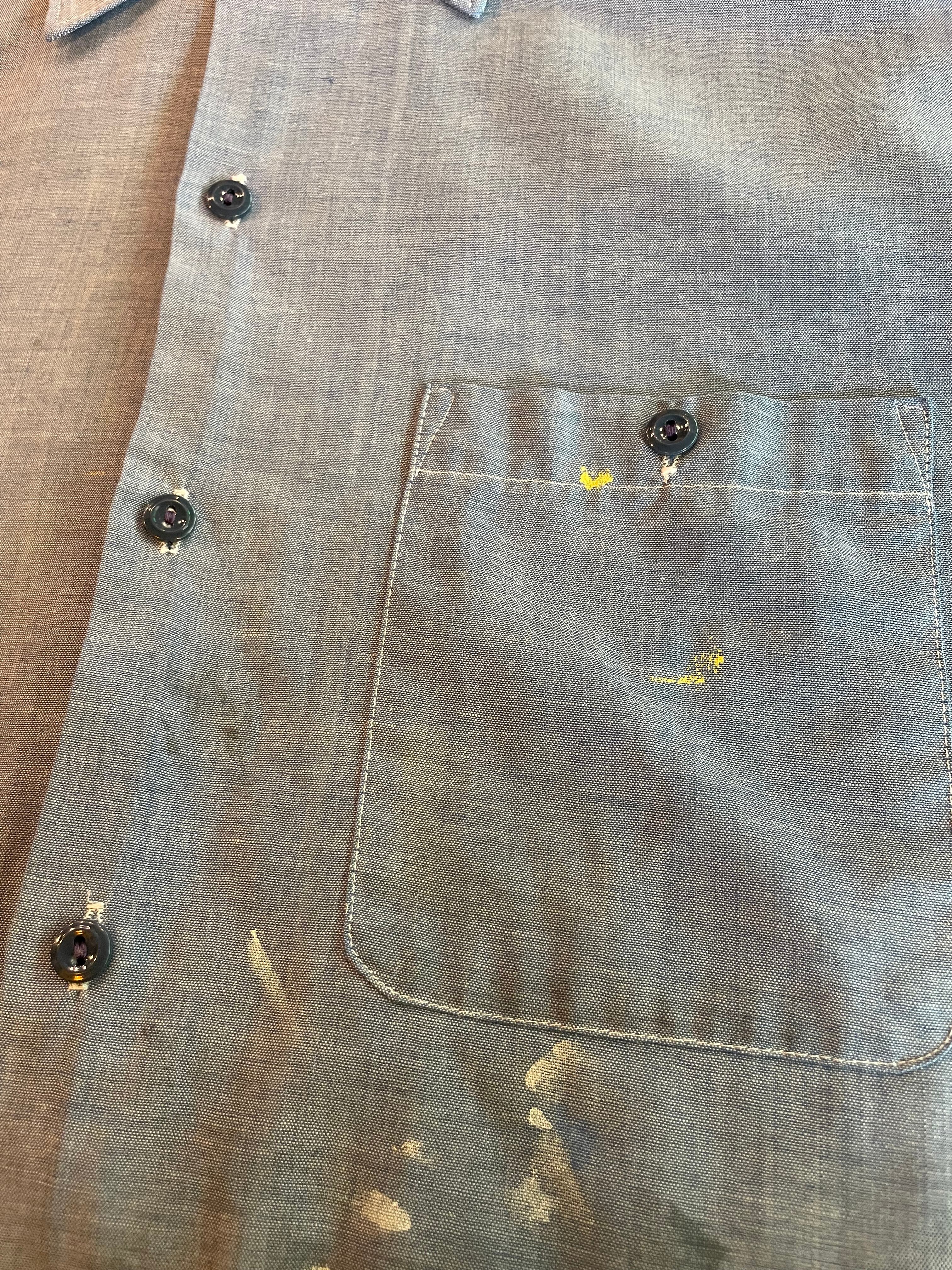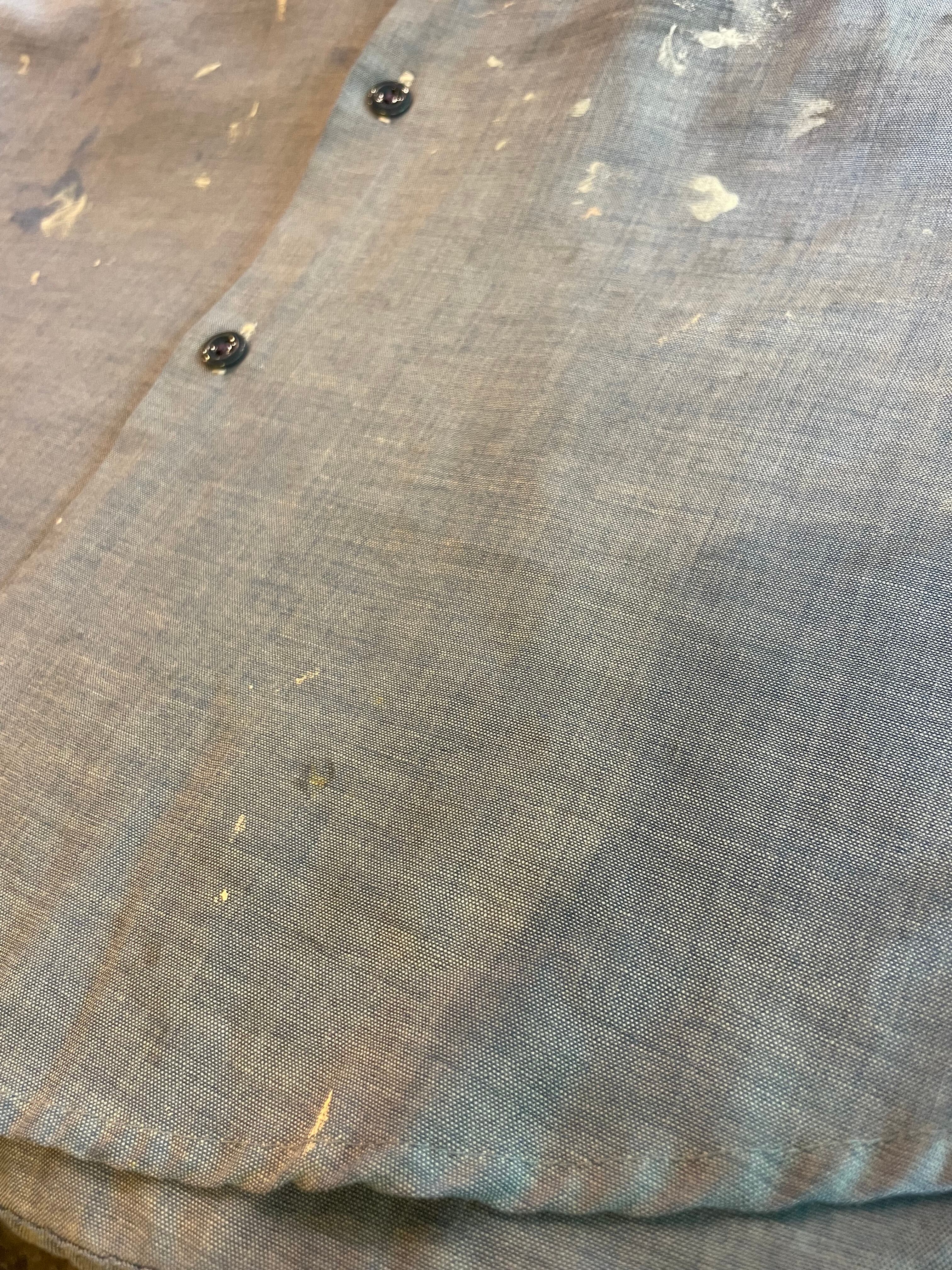 ペンキ汚れがかっこいい良い雰囲気の半袖のシャンブレーシャツです。