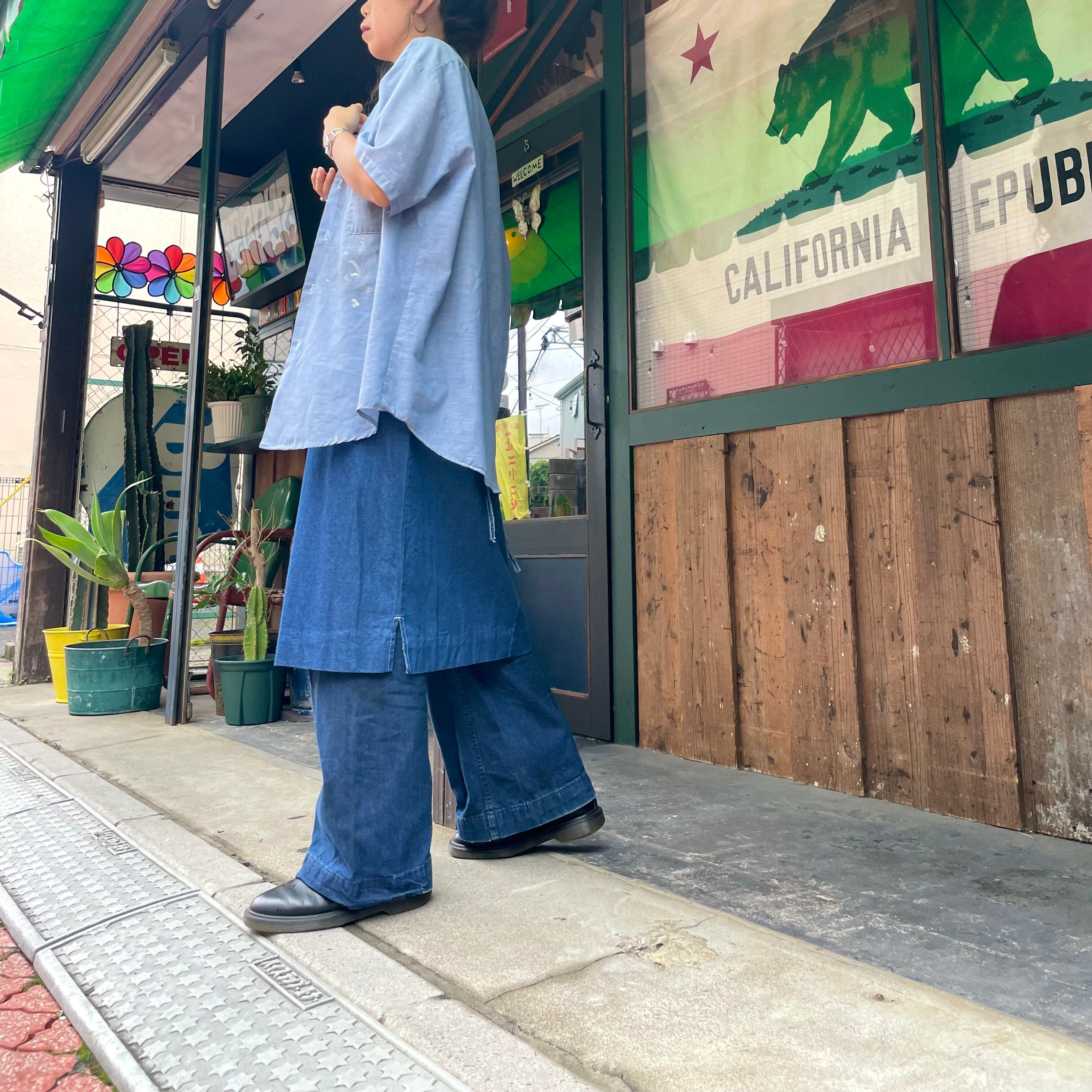 ペインターパンツやハーフパンツ、チノパンなど合わせて前を閉じて着るのももちろん良いかと思います。