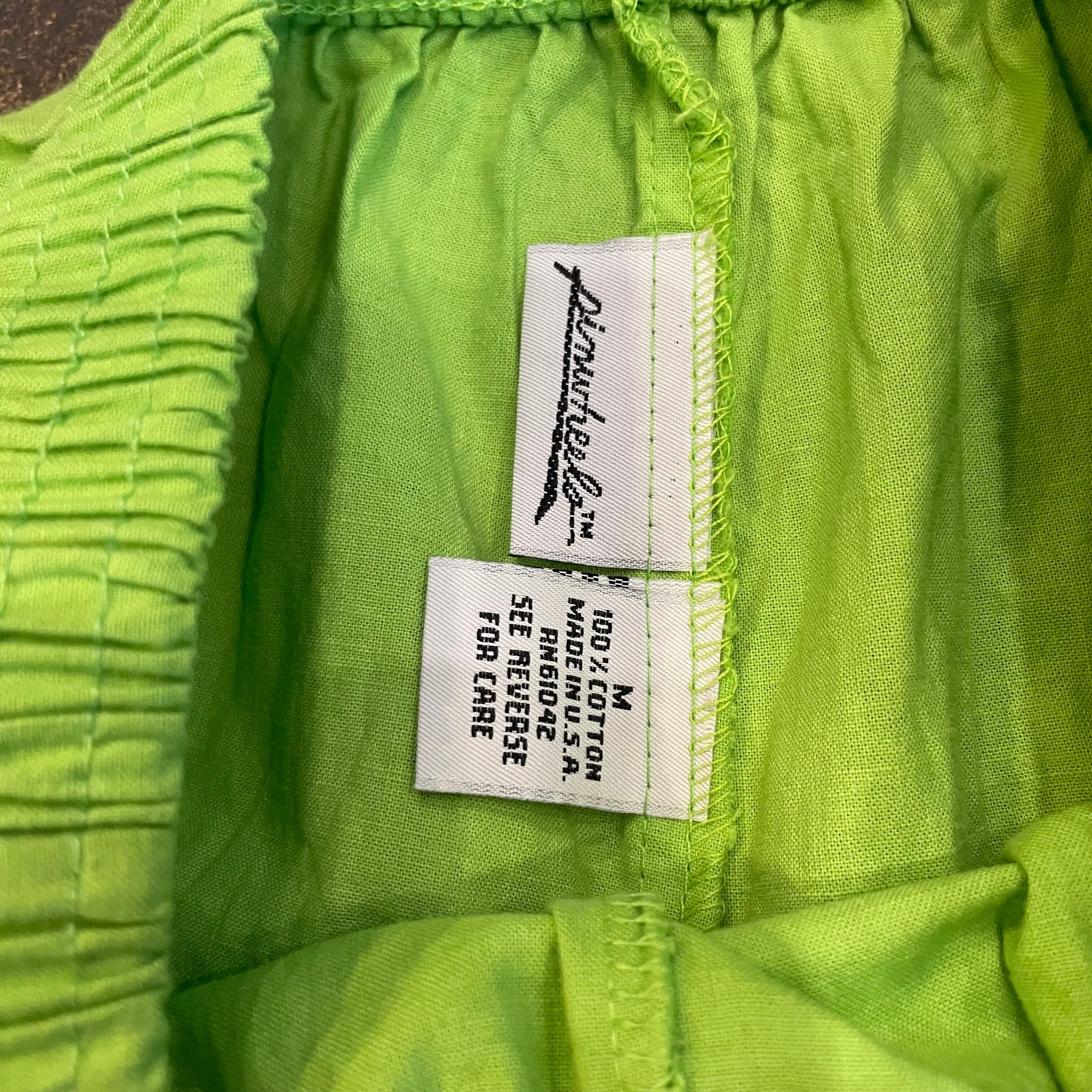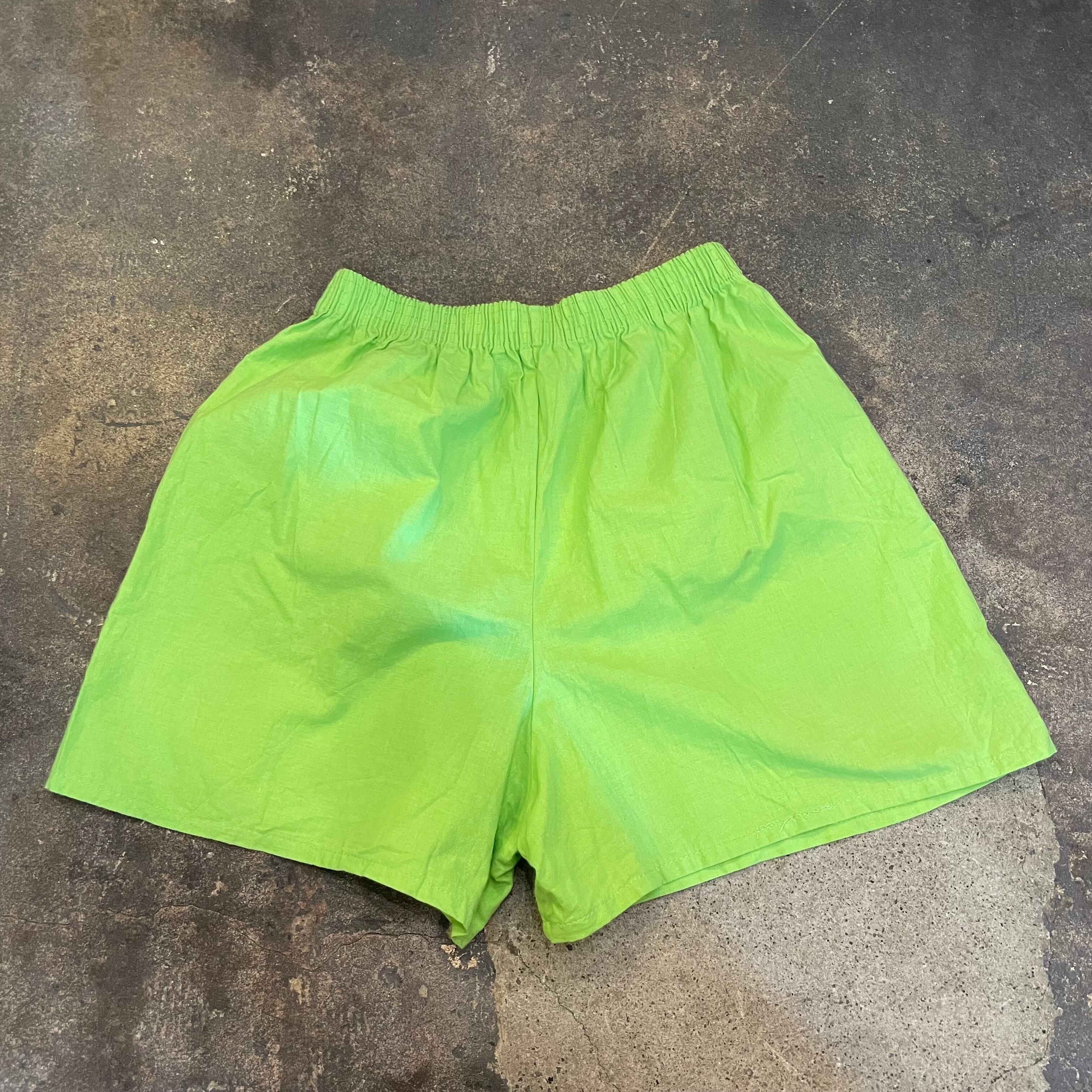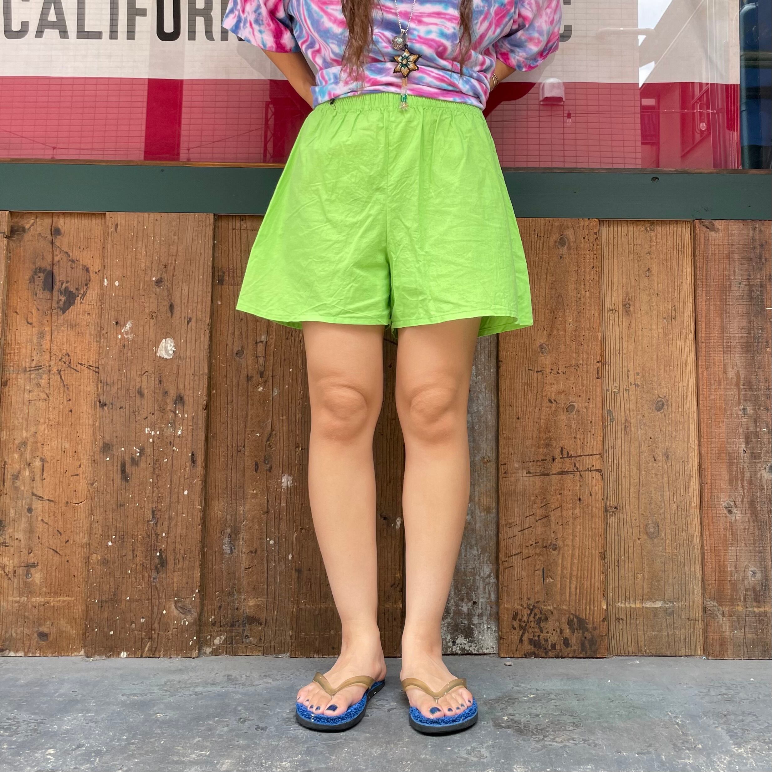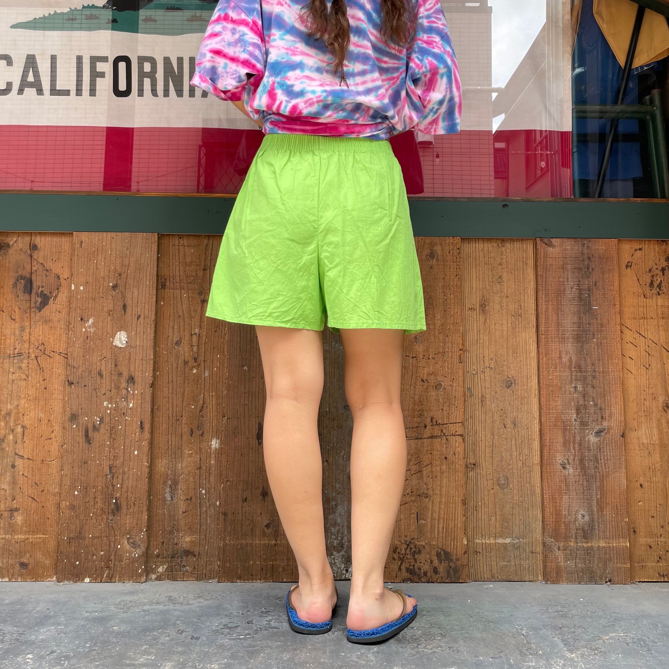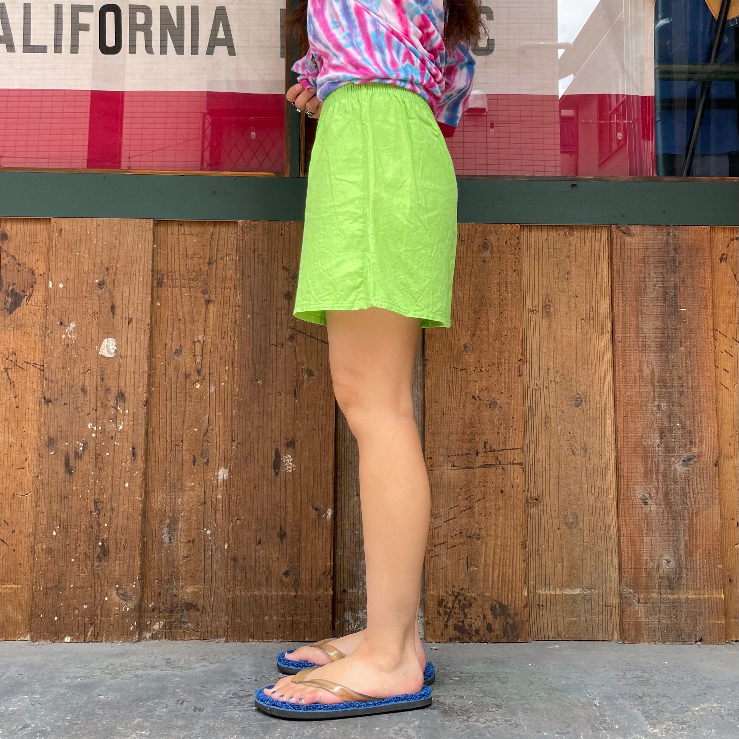 明るいライムグリーンの色味が元気で夏らしいショートパンツです。