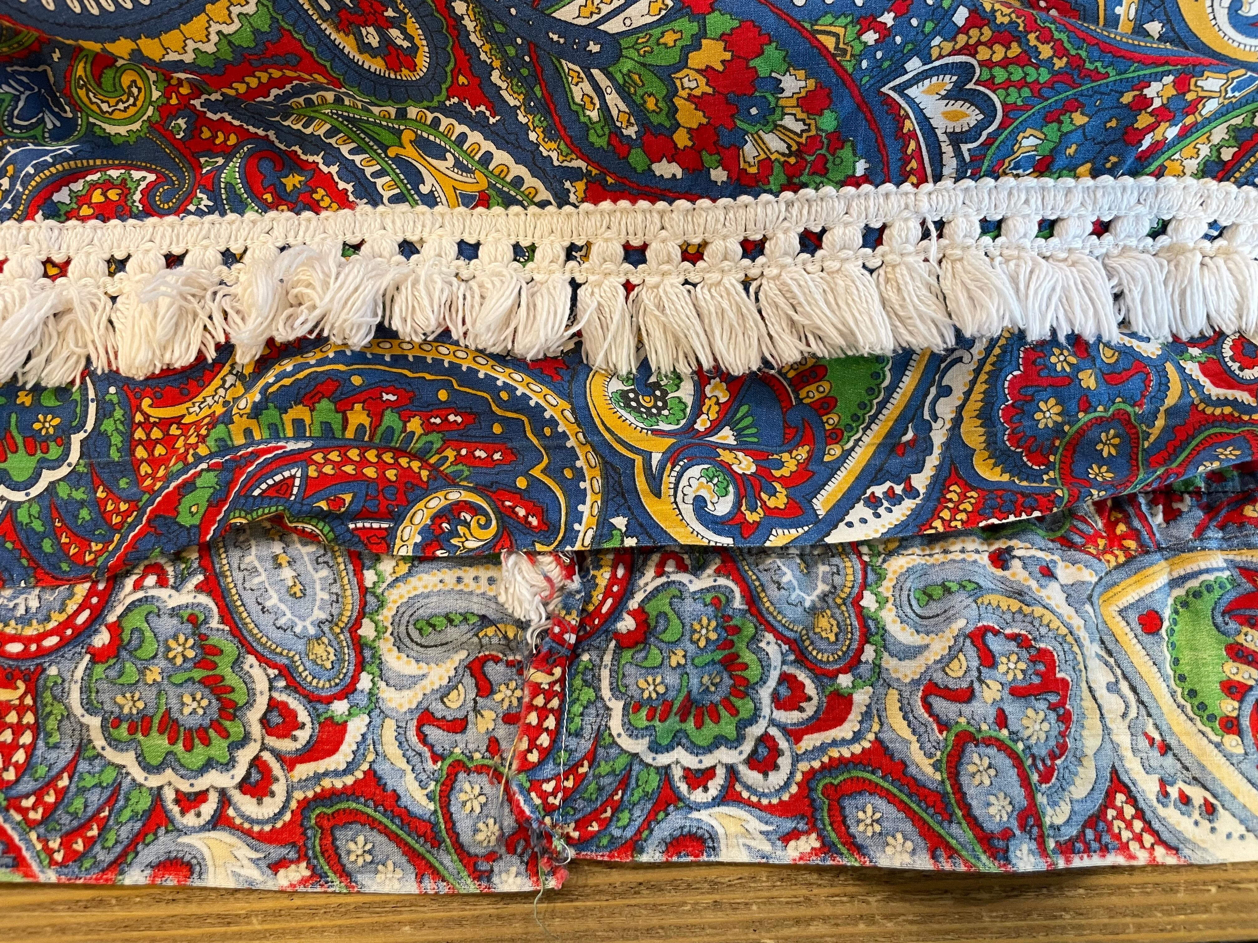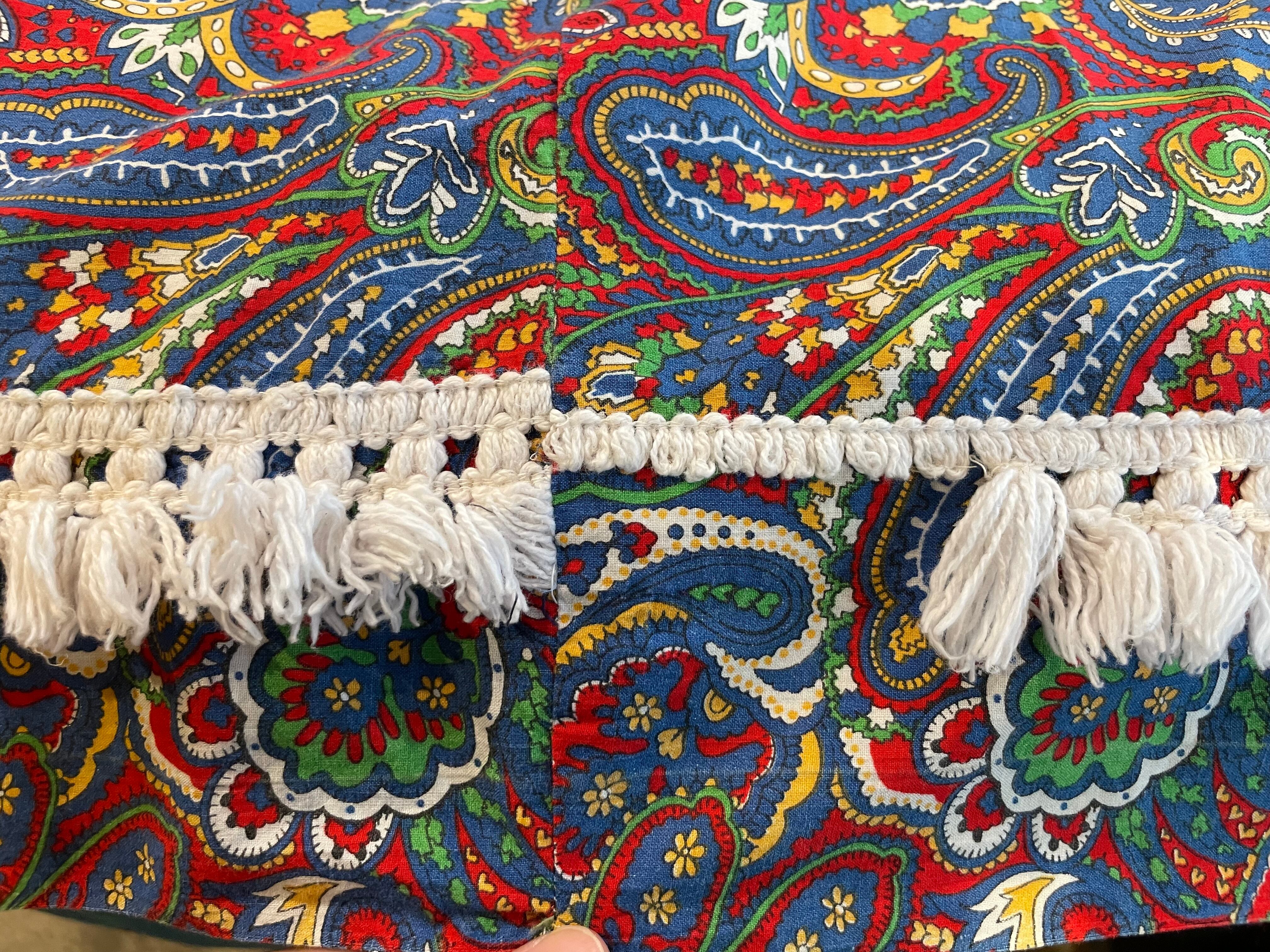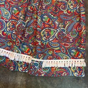 赤と青のペイズリー柄がかわいいロングスカートです。細かい柄がとてもかわいいですし、裾のボリュームのあるフリンジもポイントになっていてかわいいですね。