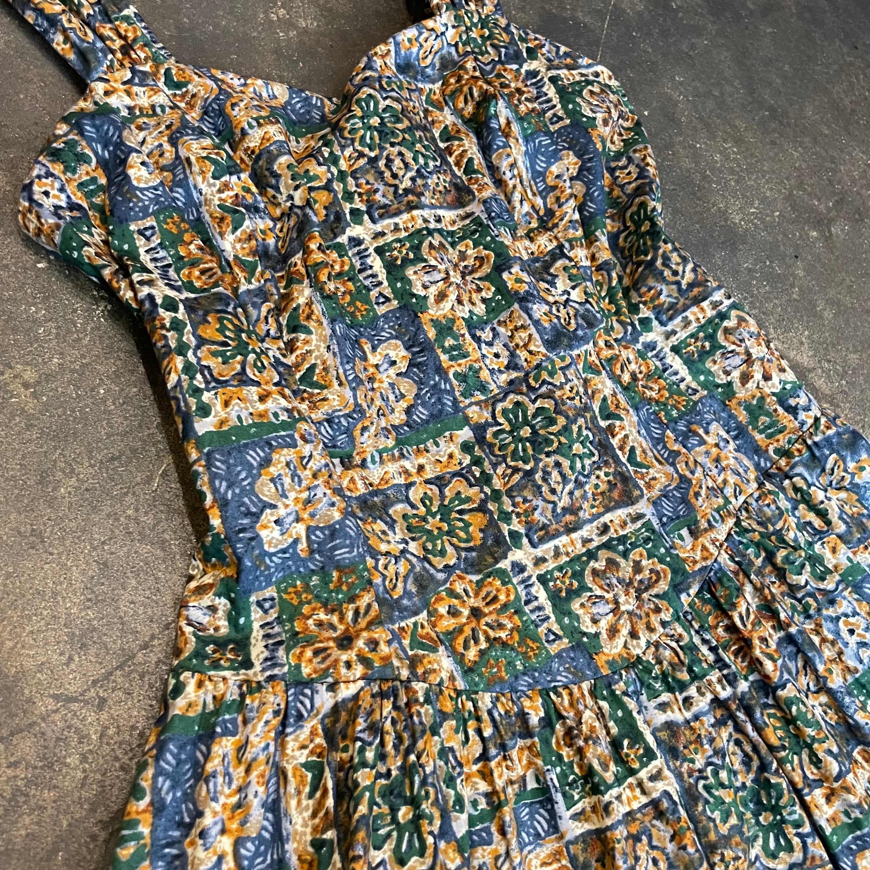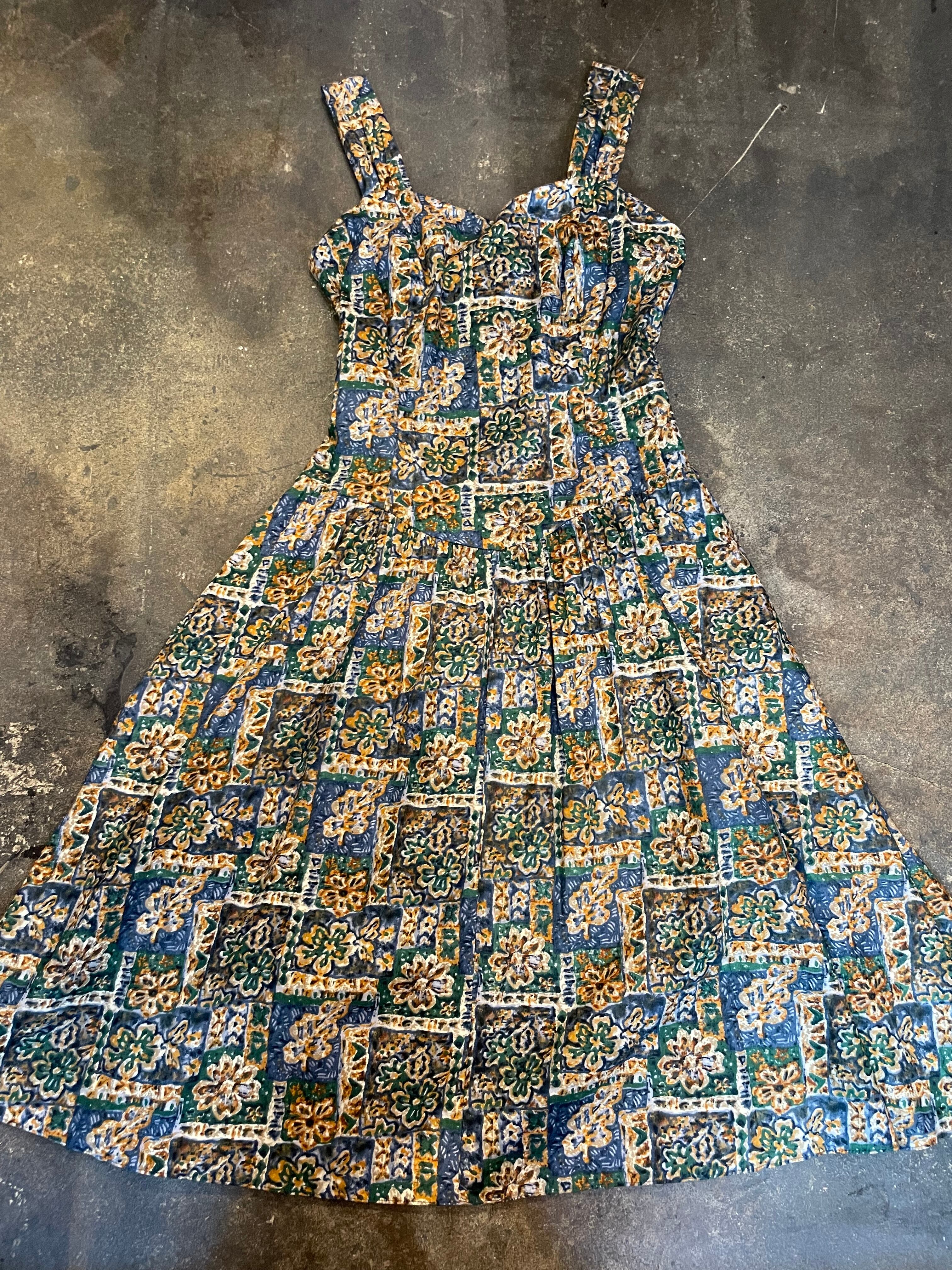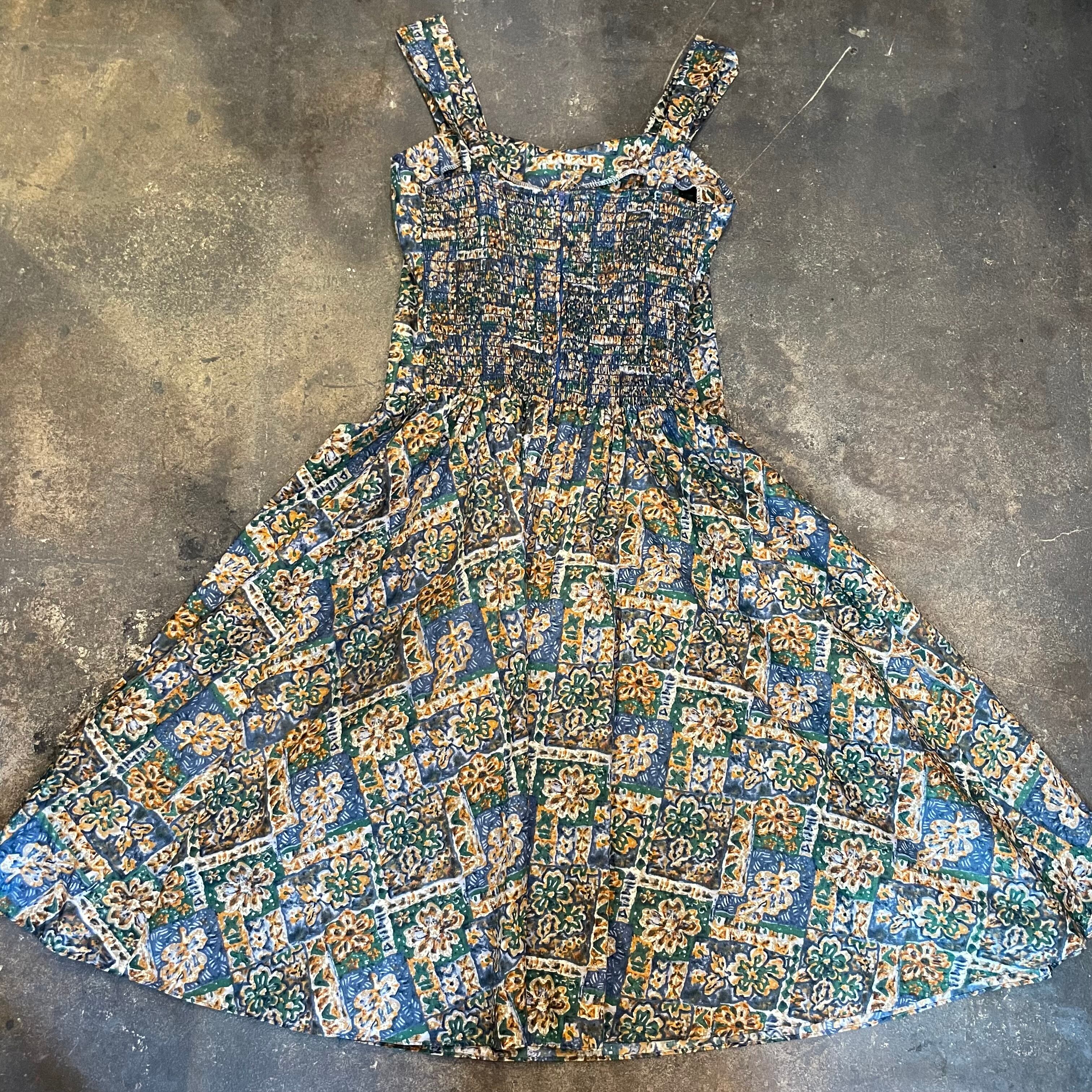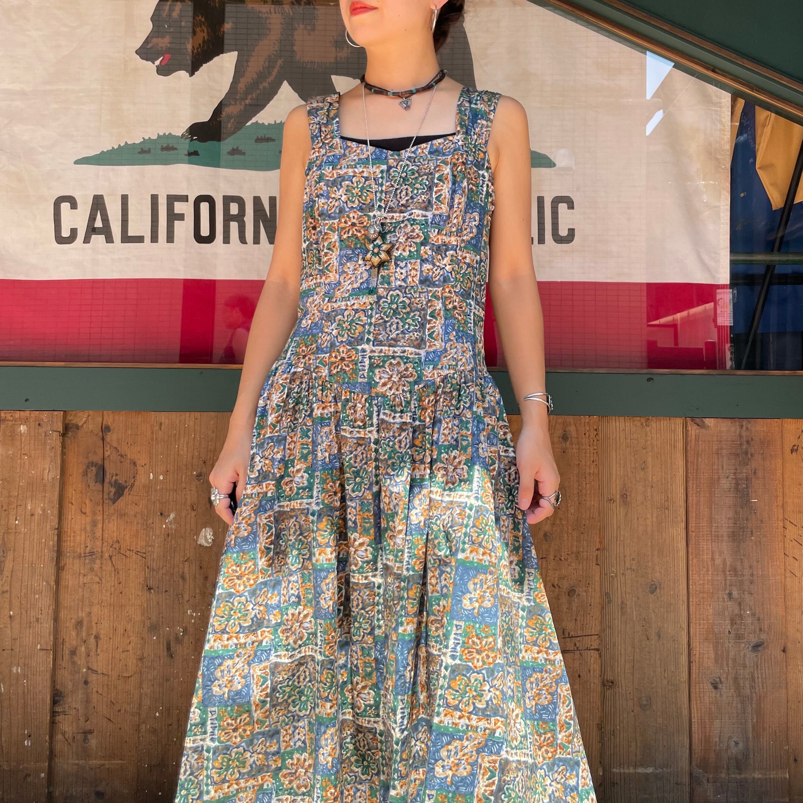 ガーリーなシルエットですが渋めな柄でバランスが取れていてかわいいワンピースです。