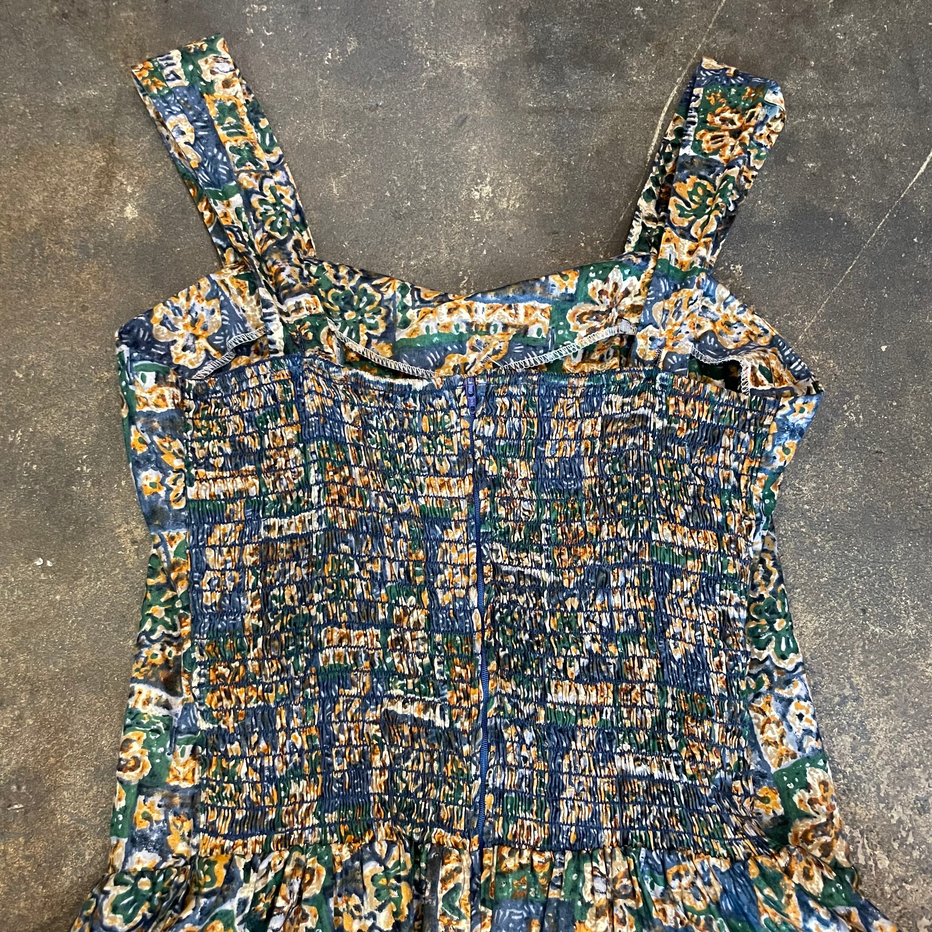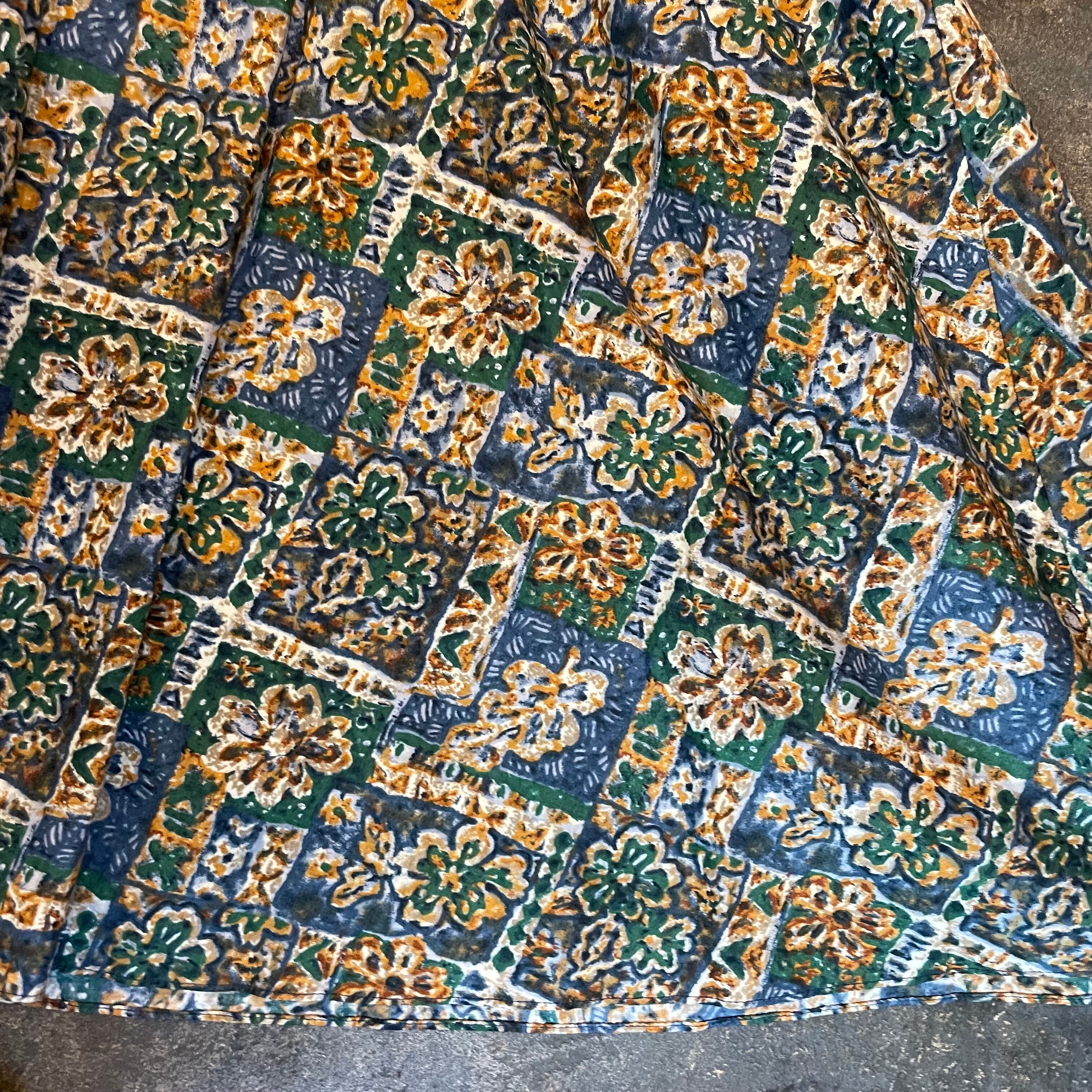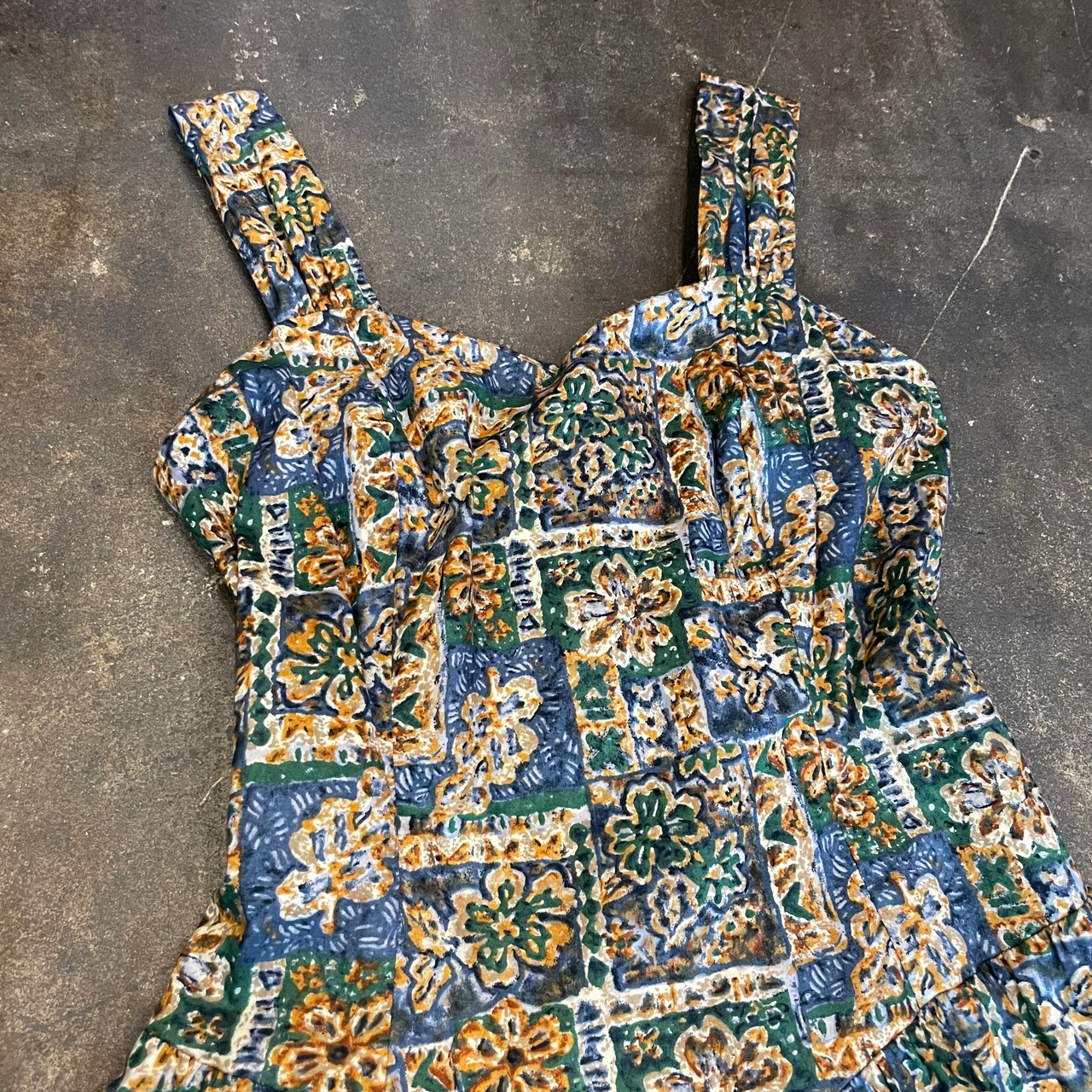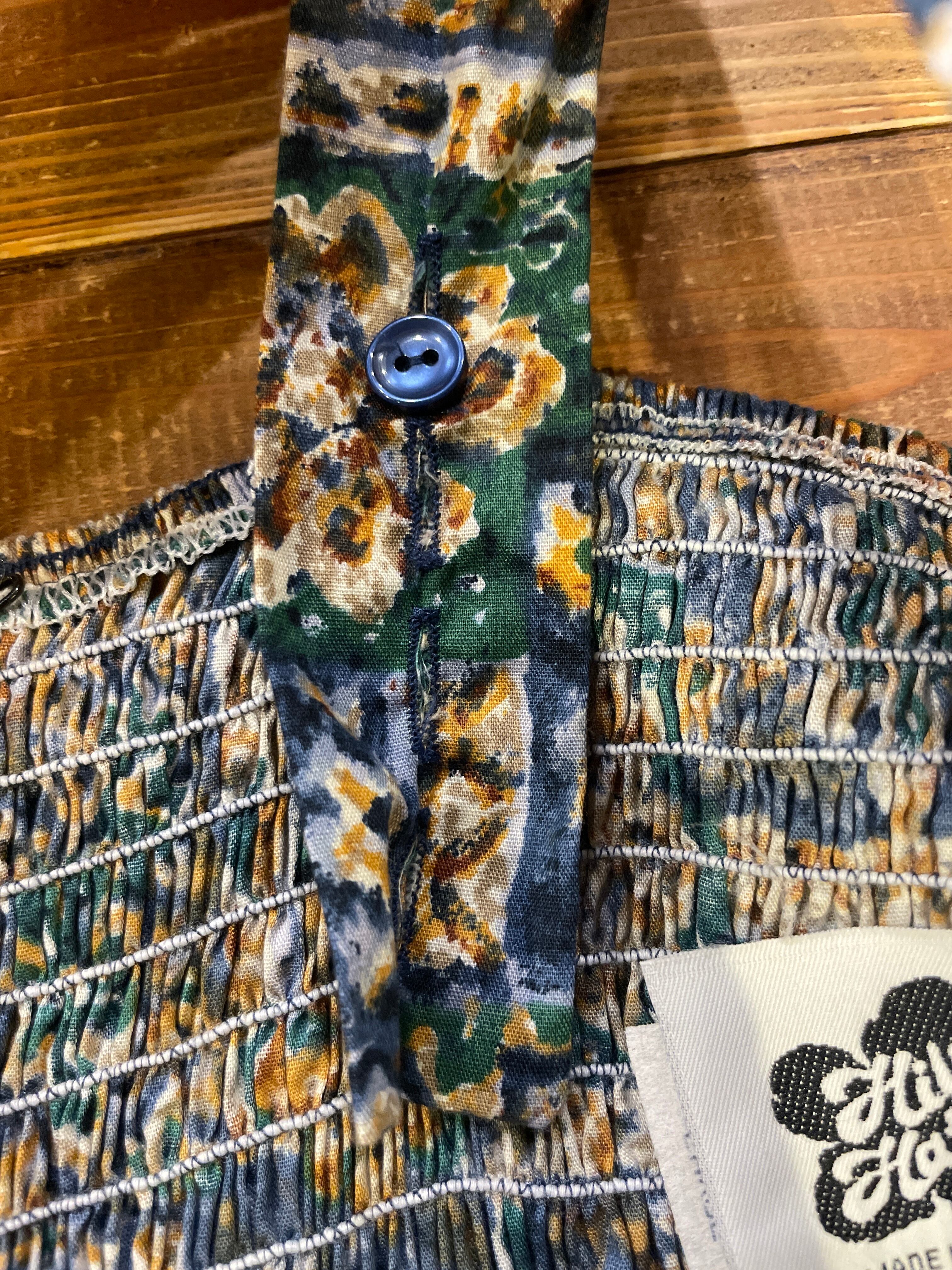 ガーリーなシルエットですが渋めな柄でバランスが取れていてかわいいワンピースです。