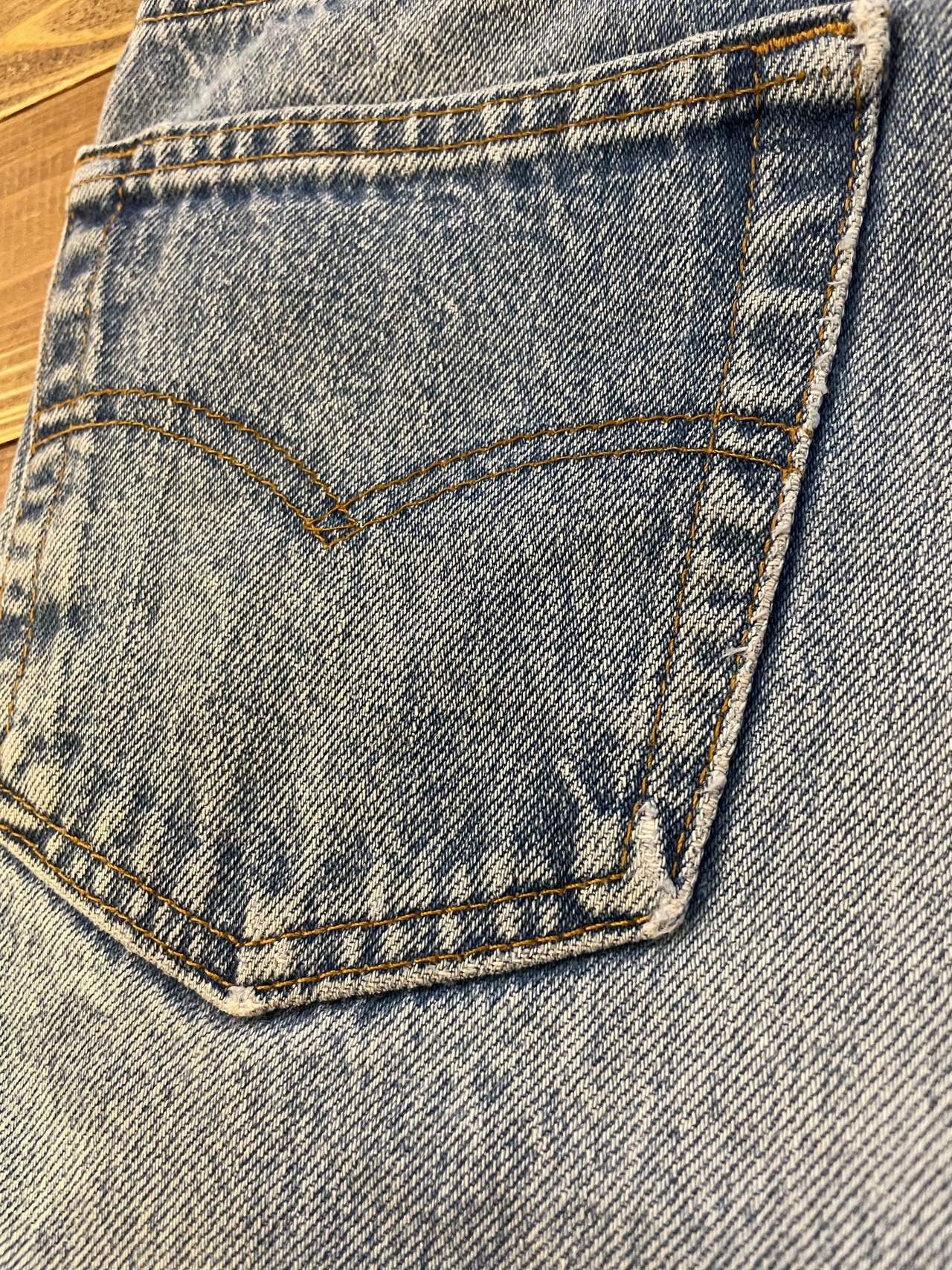 程良い色落ち具合といい、短すぎず長すぎずな丈感といい、とてもちょうど良い一枚です。裾のフリンジ感も長めに育っていてかわいいですね。