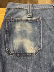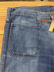 色褪せや色残りのメリハリのある感じが雰囲気があってかっこいい一本ですね。リーバイスと比べるとやや薄手な印象ですので夏でもまだ履きやすいかと思います。