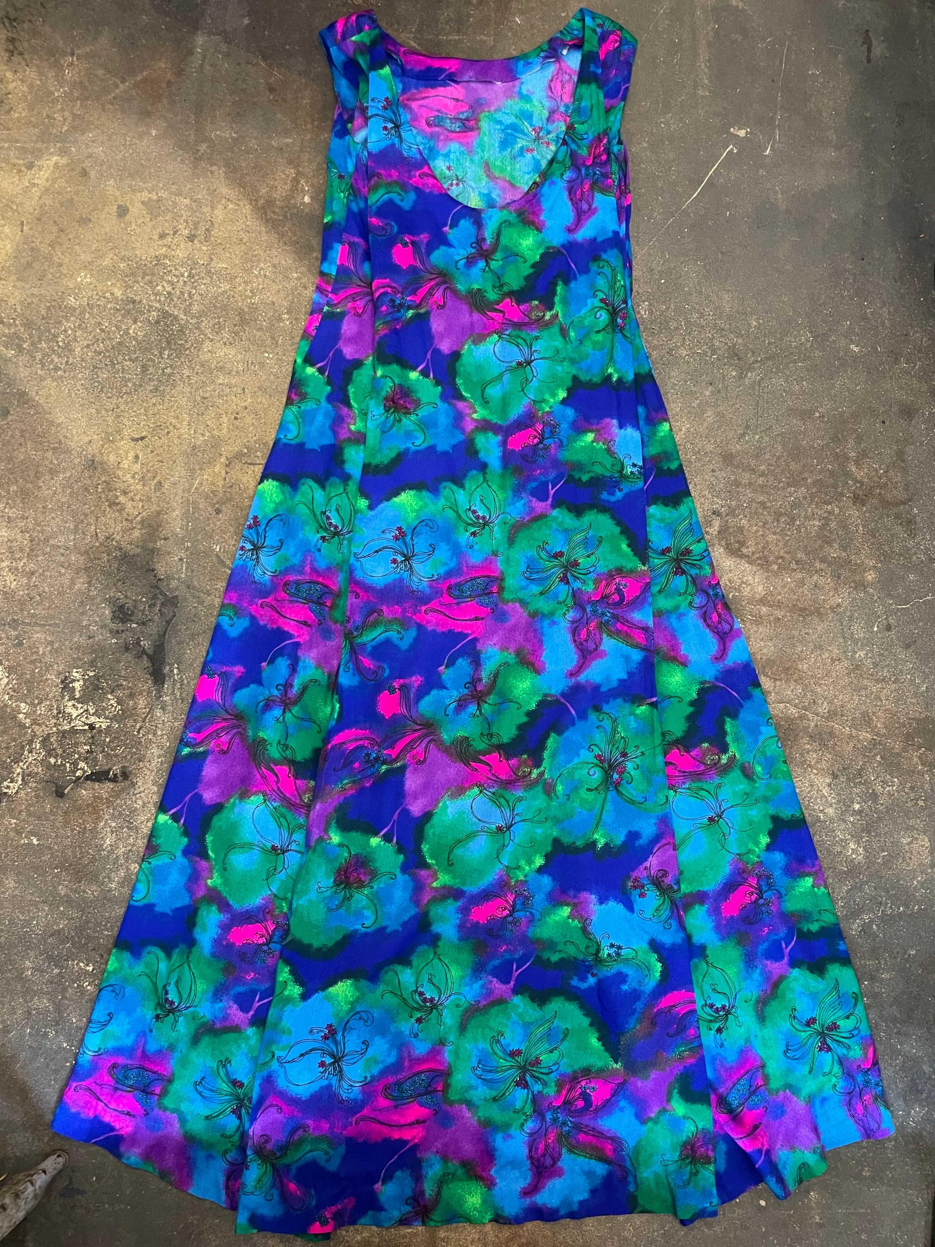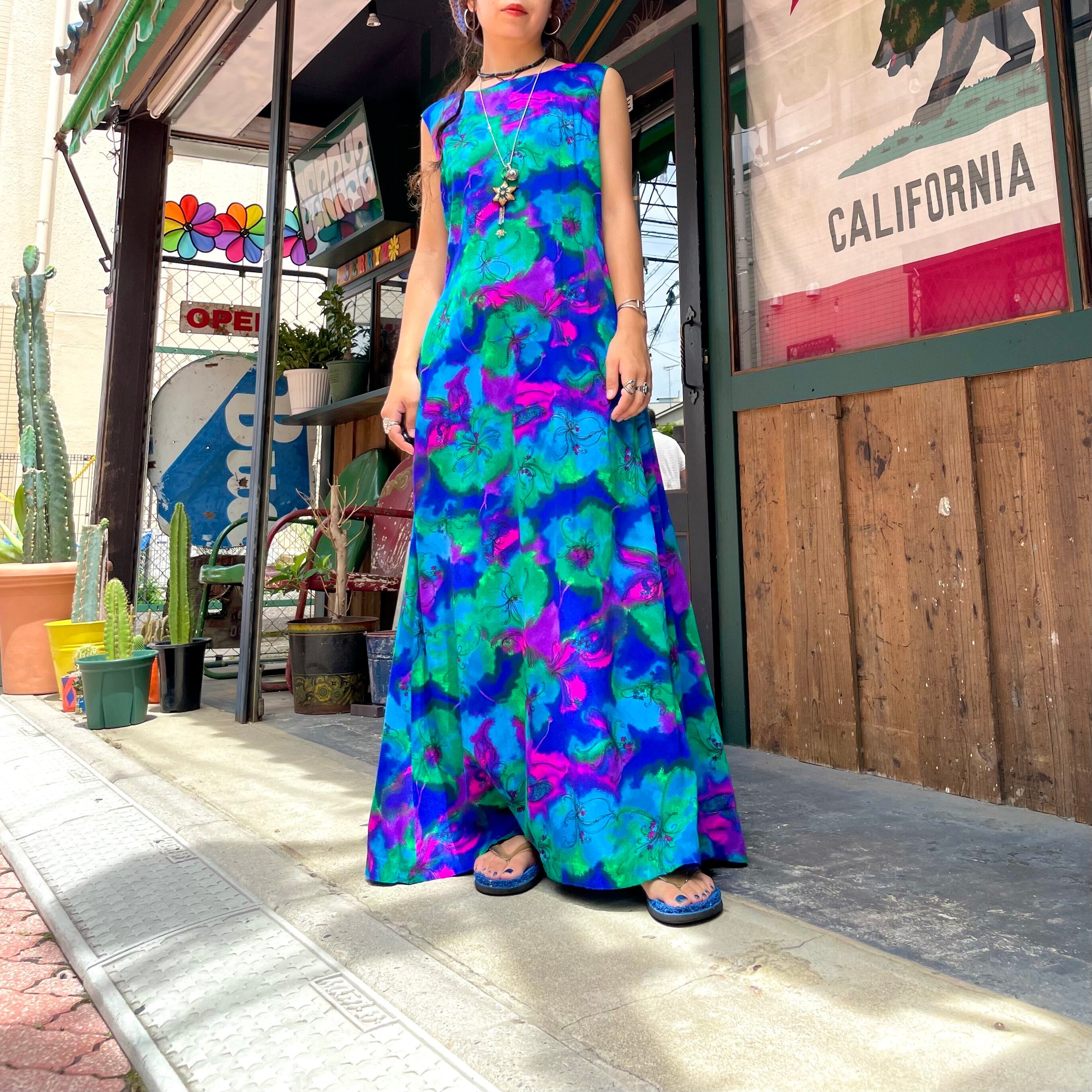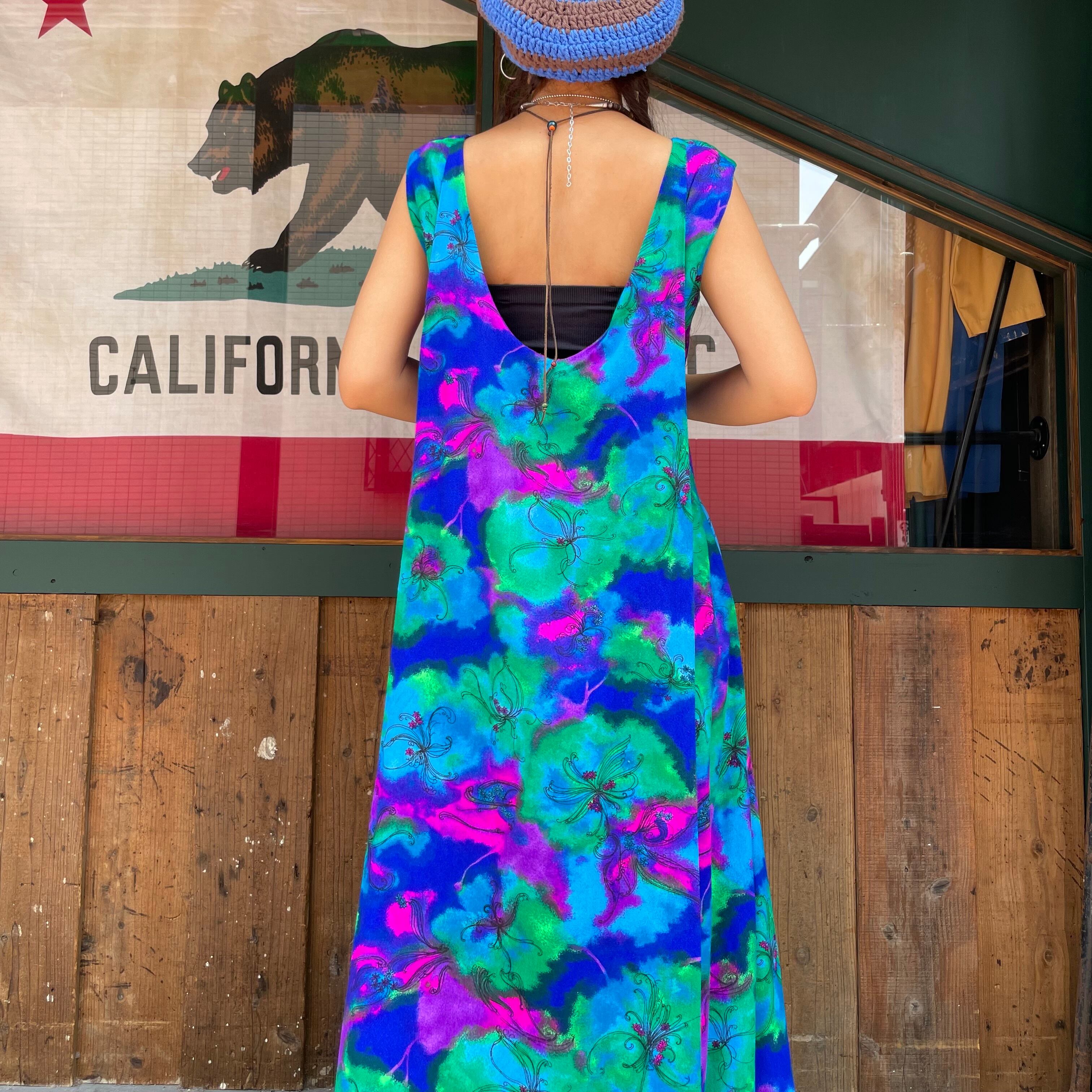 涼しげなカラーに紫がちらちら幻想的でサイケデリックな雰囲気の柄で素敵なワンピースです。