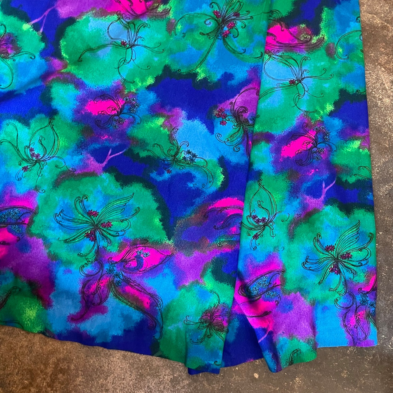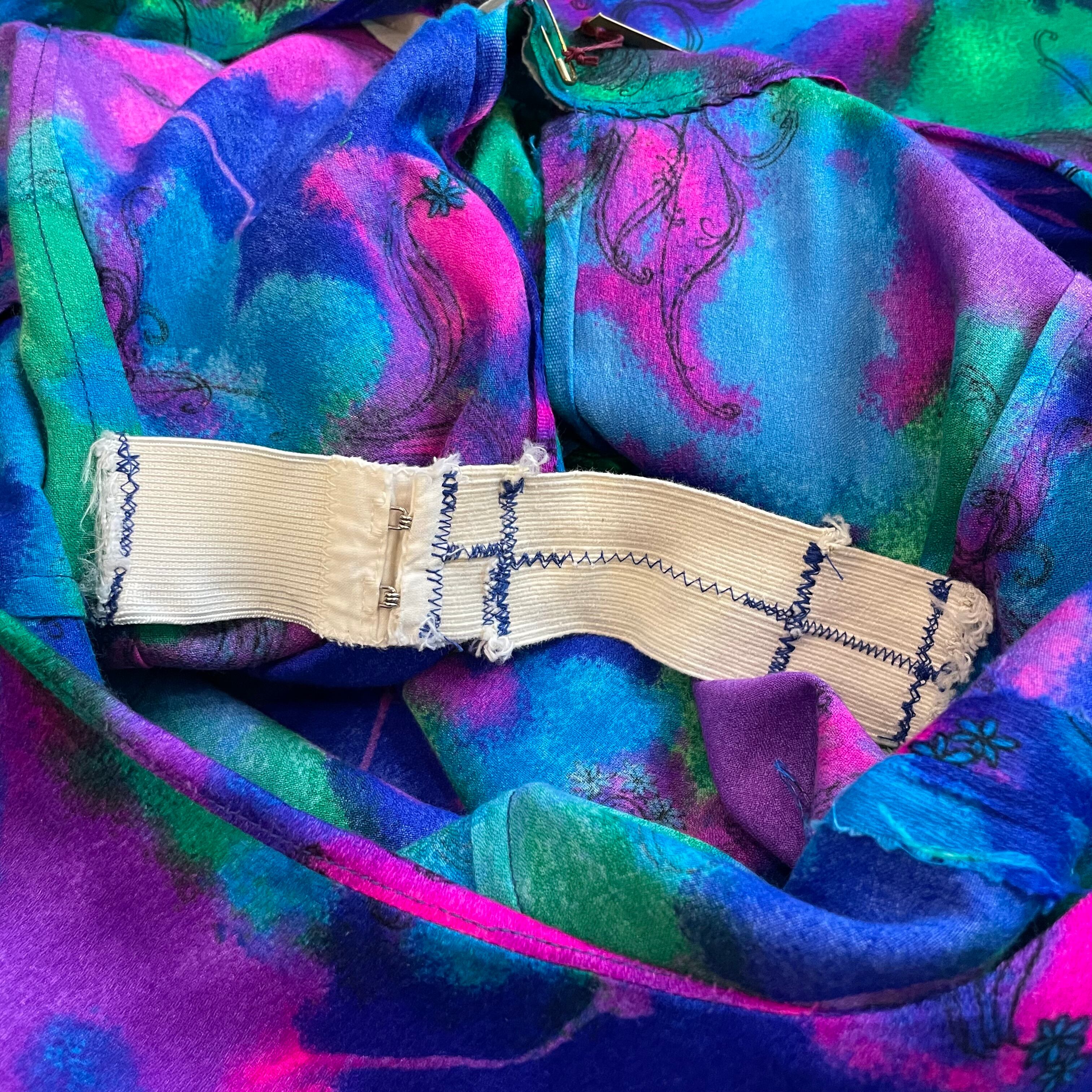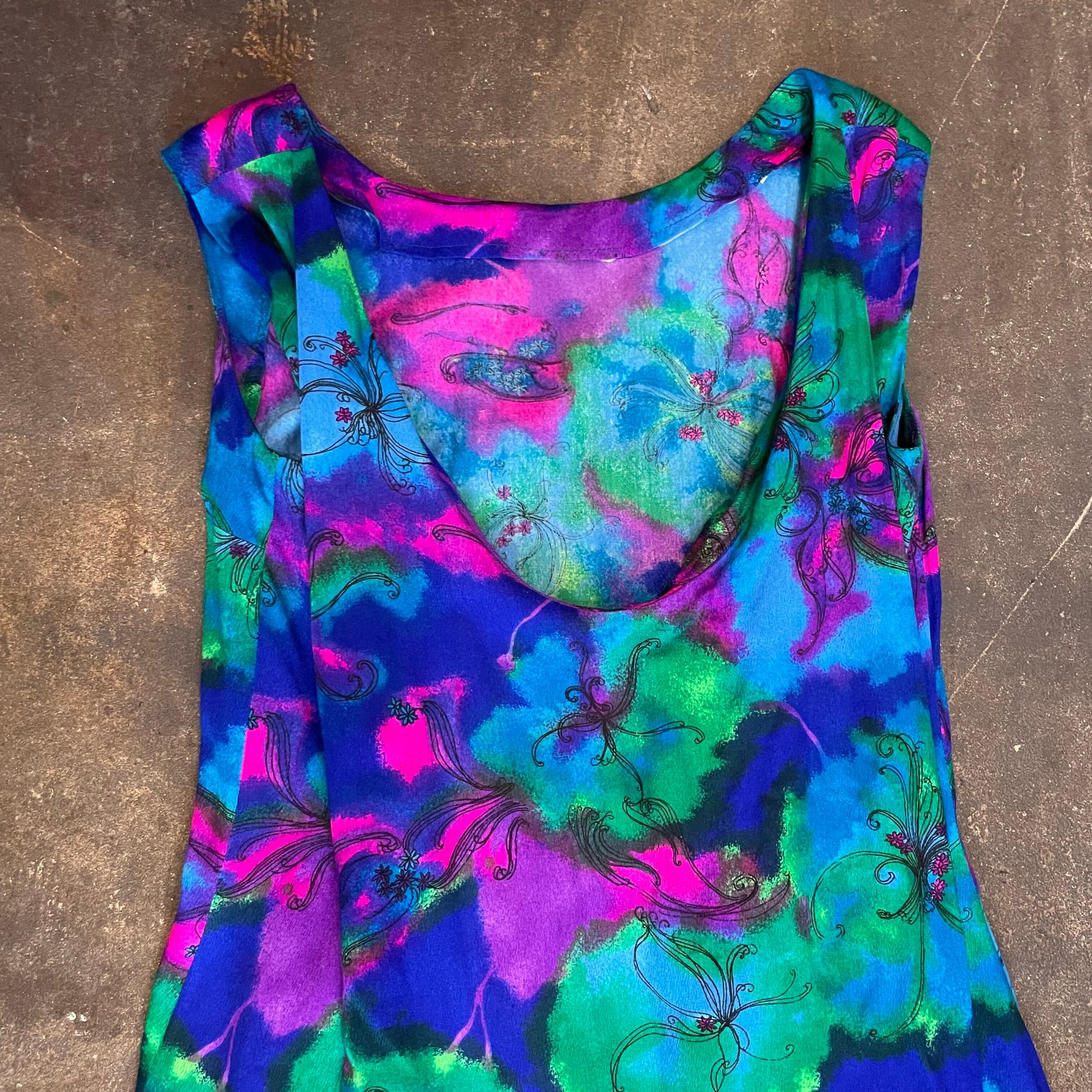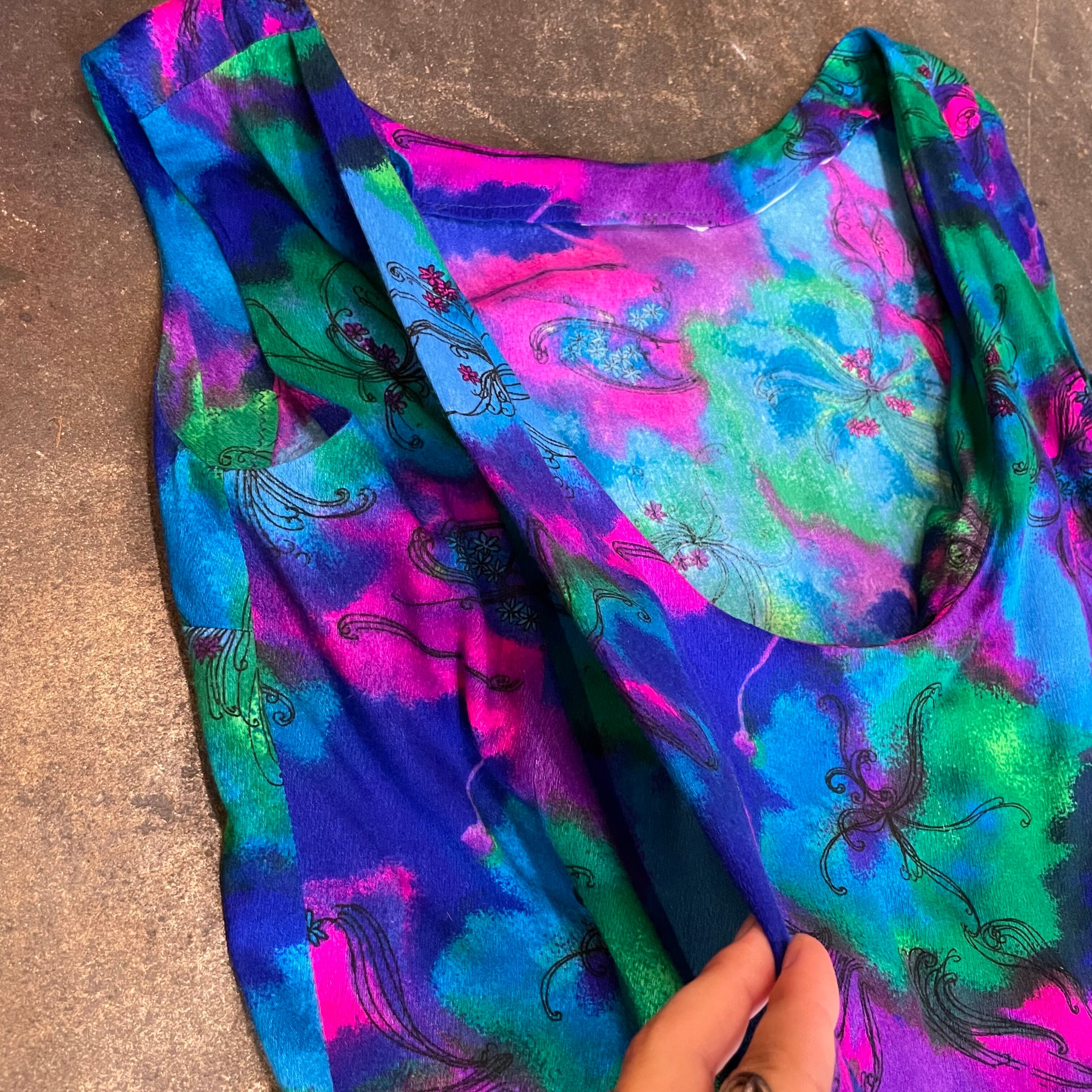 涼しげなカラーに紫がちらちら幻想的でサイケデリックな雰囲気の柄で素敵なワンピースです。