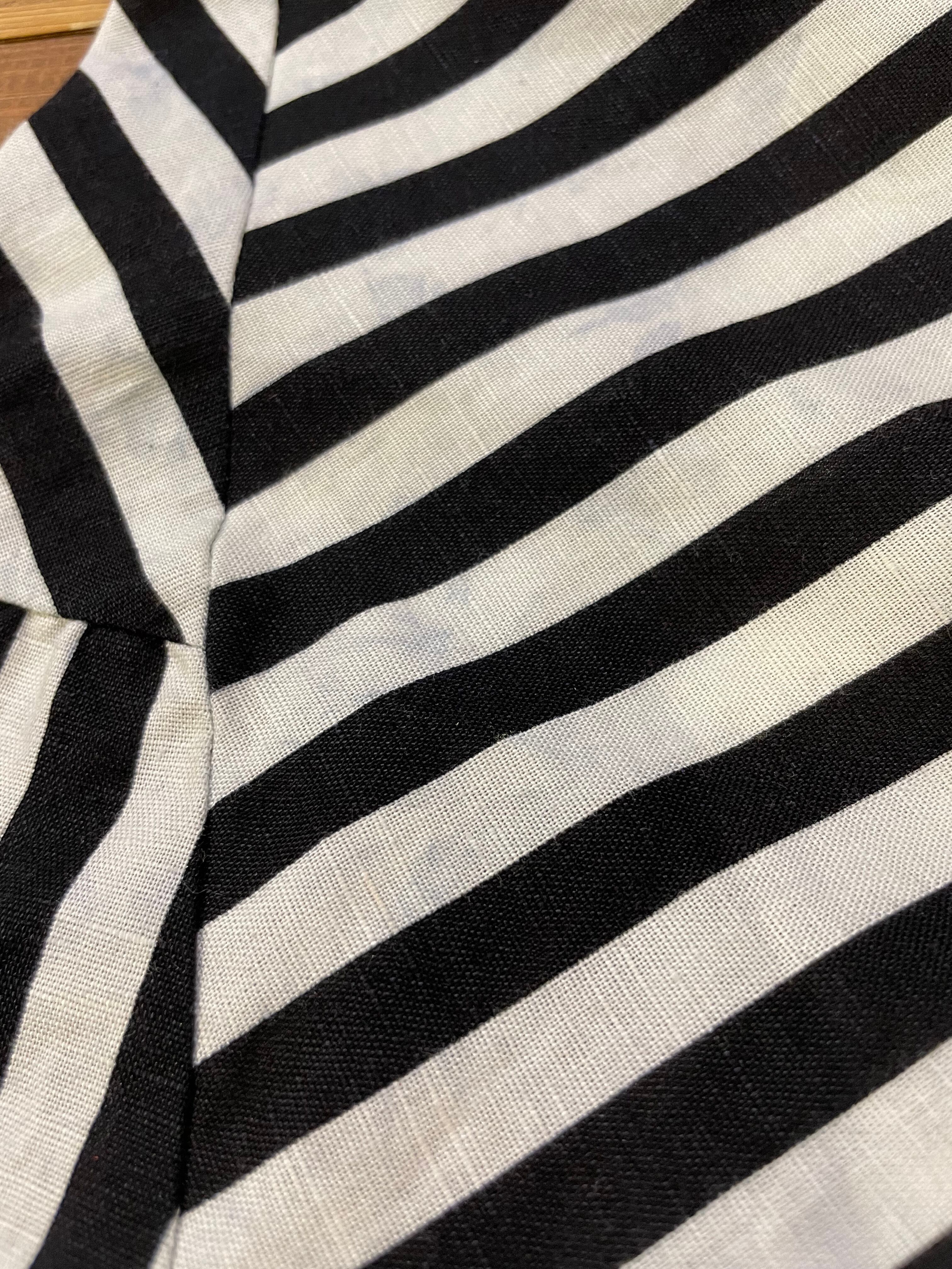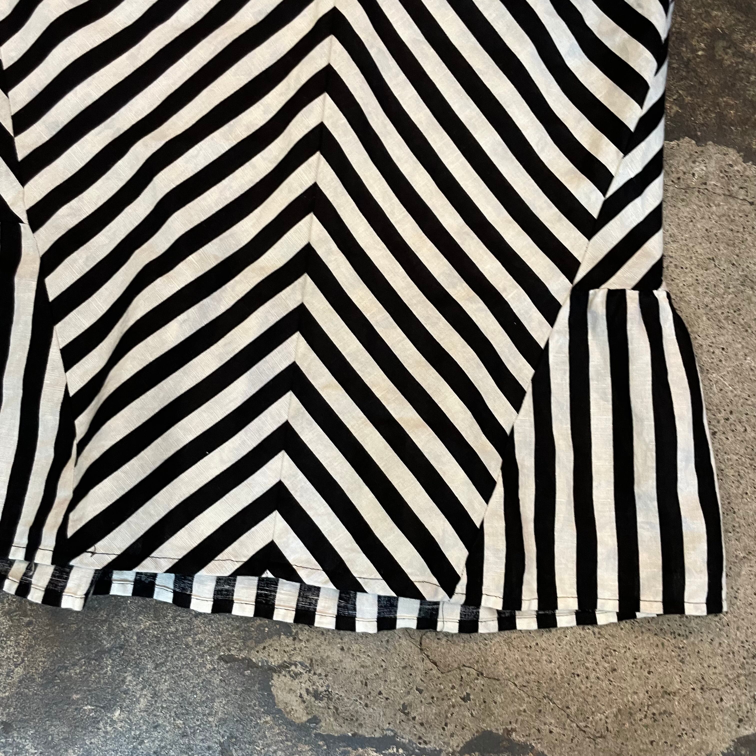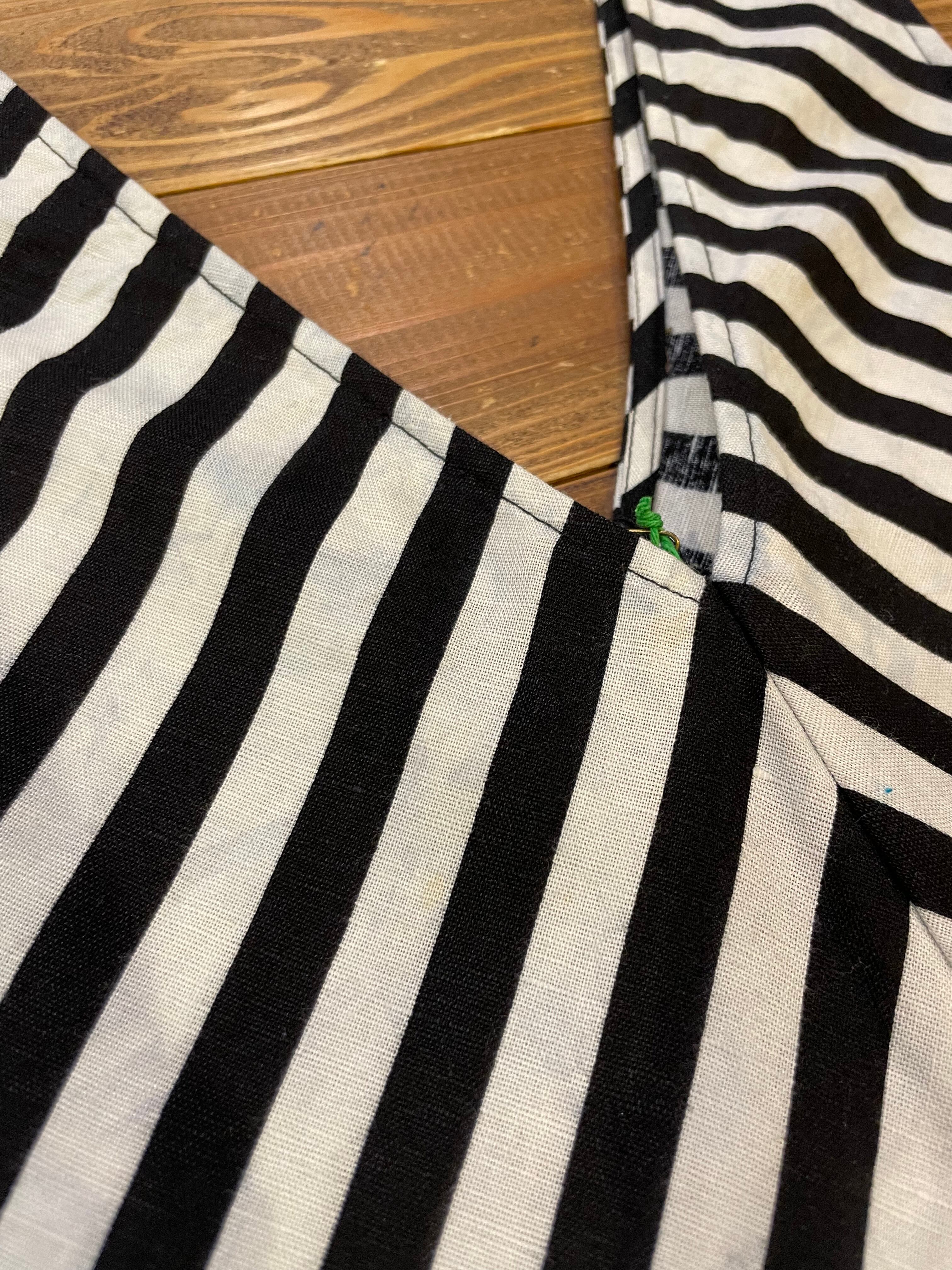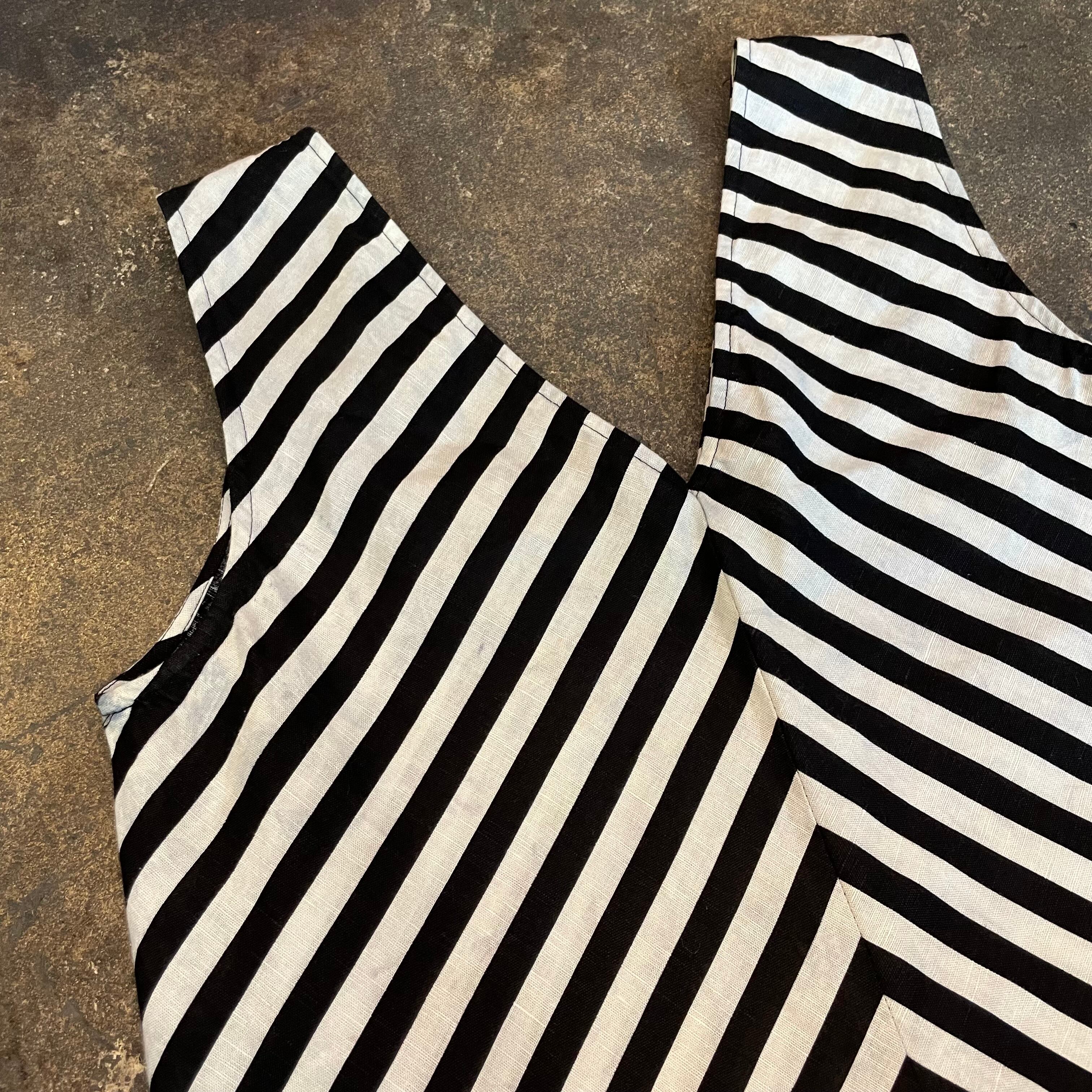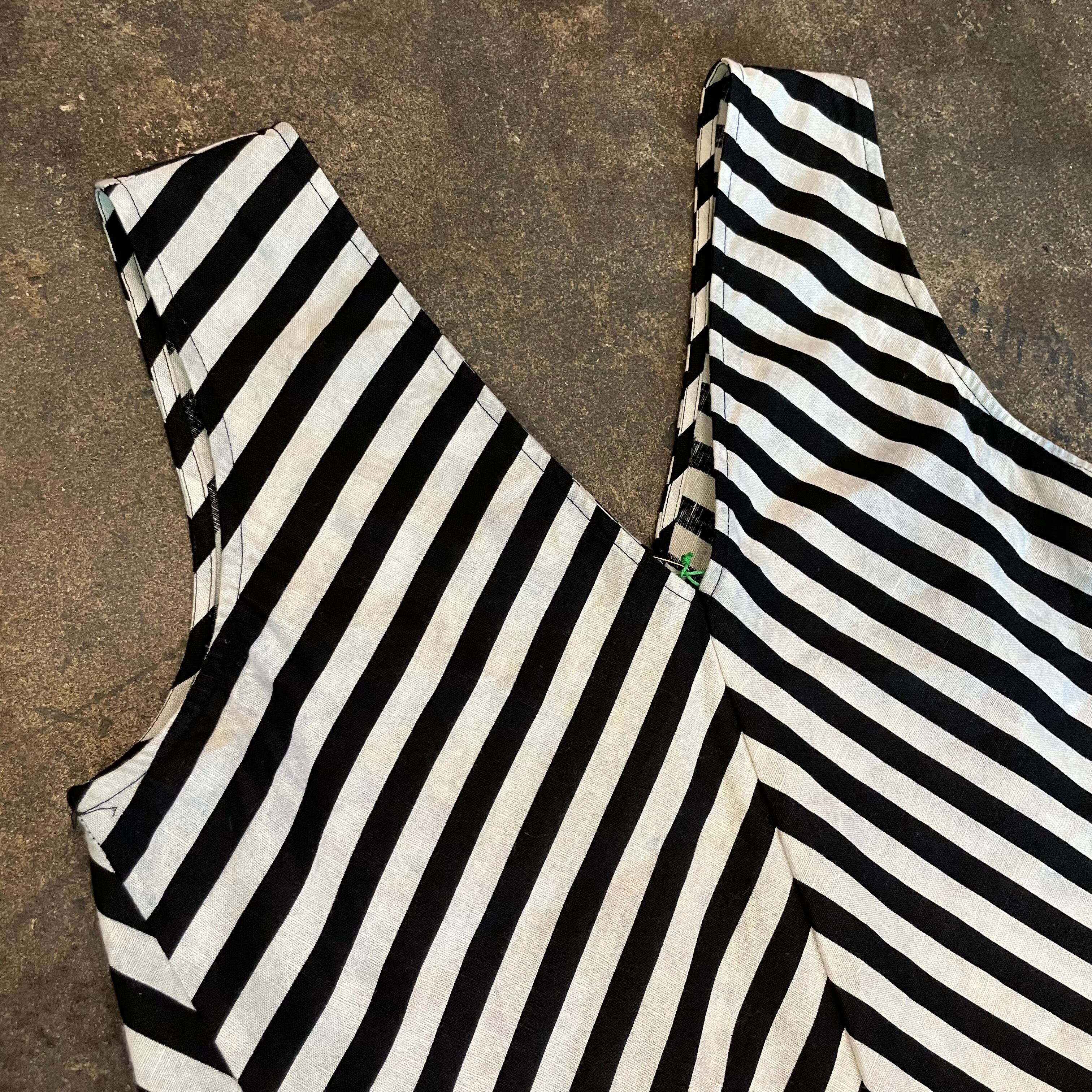ストライプと切り替えでクレイジーなパターンになっていてかわいいノースリーブのトップスです。