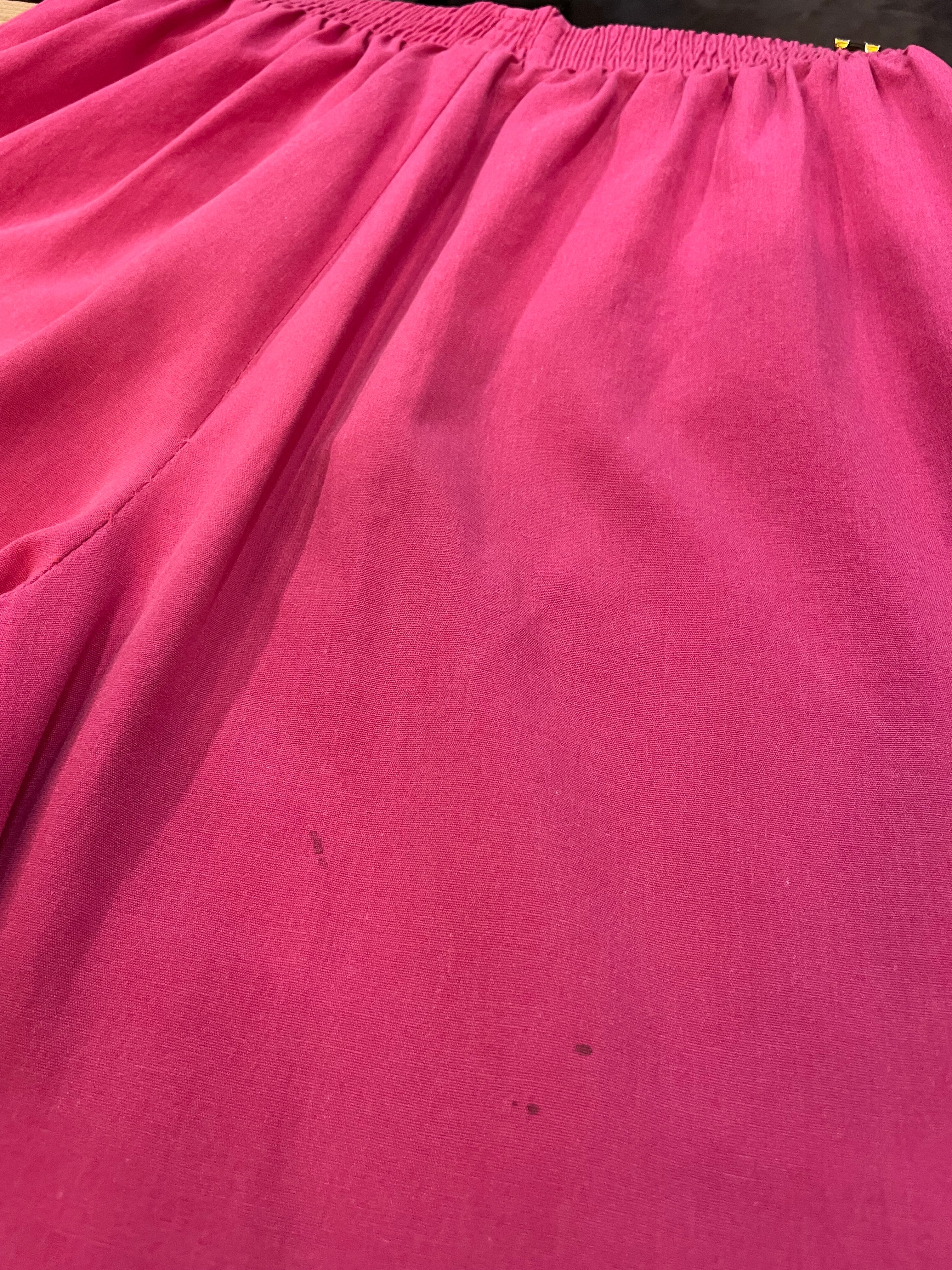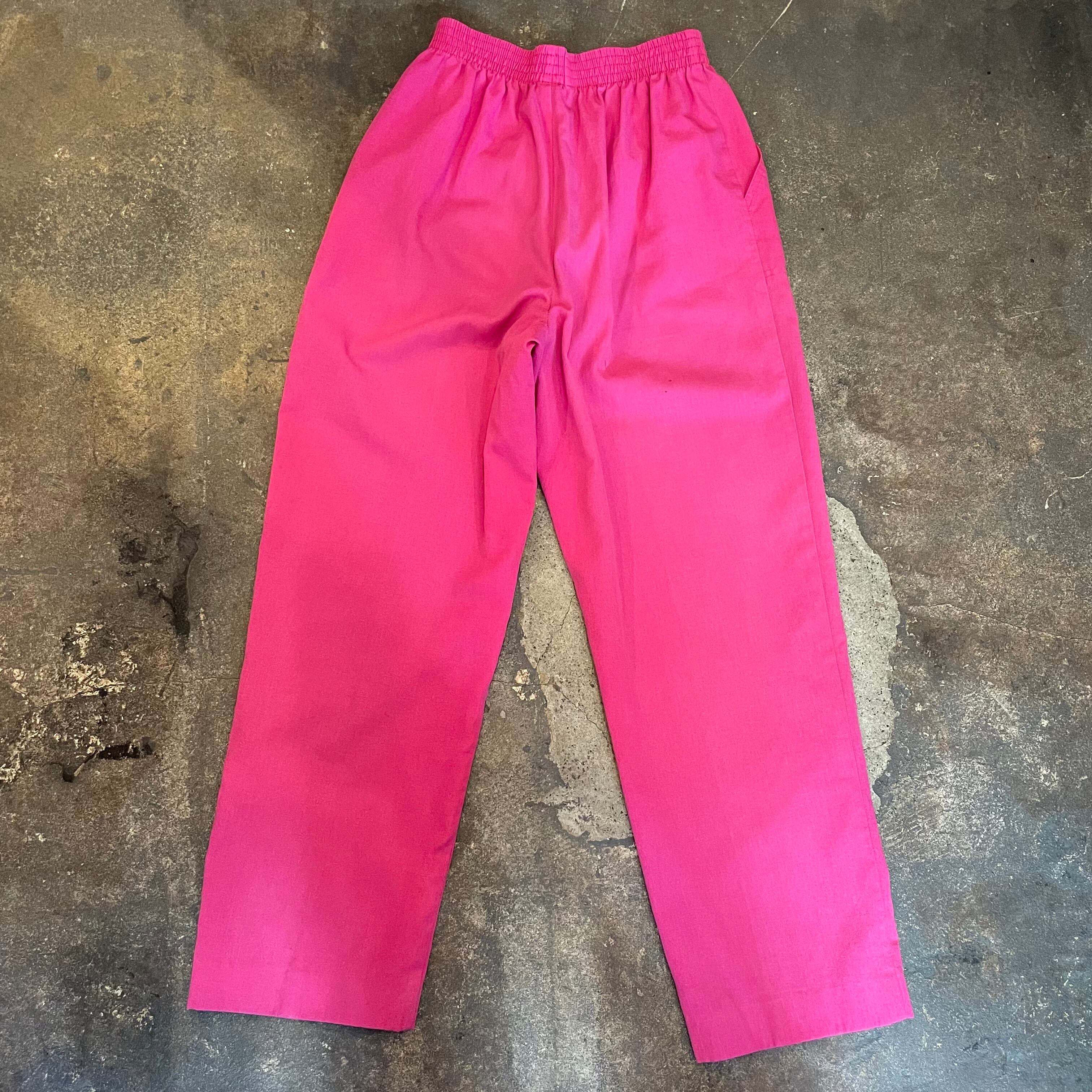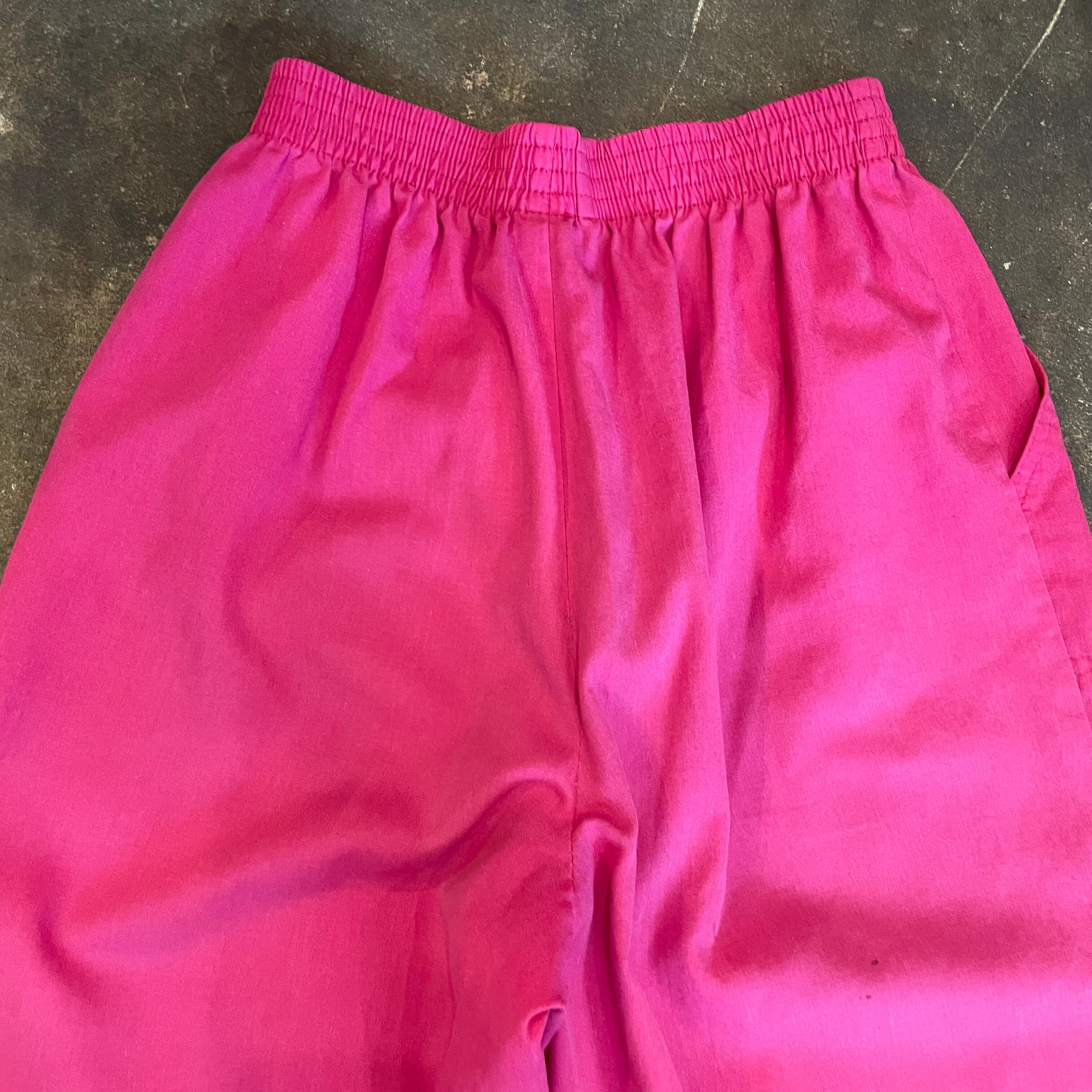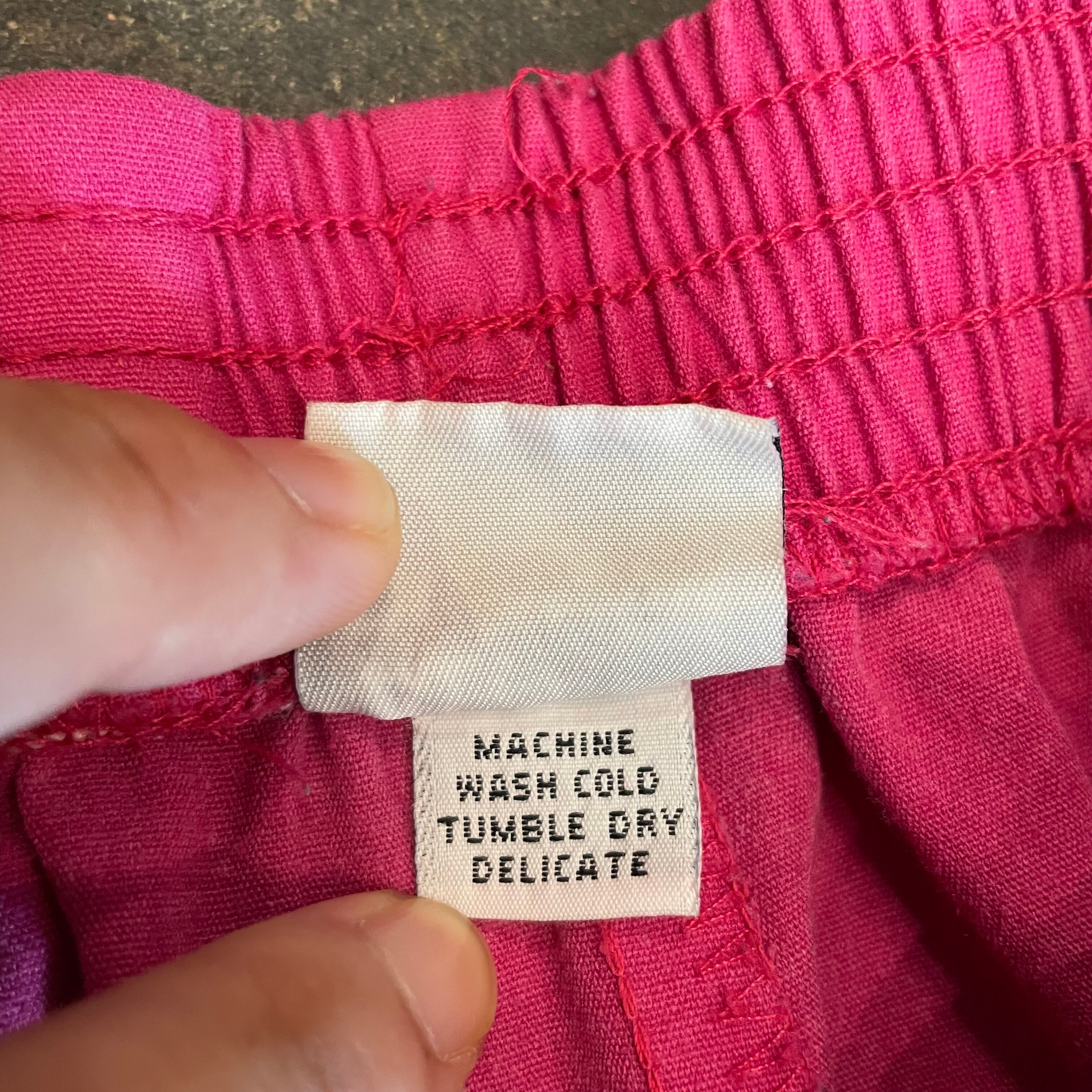 ピンクの明るい色味がかわいいイージーパンツです。ウエストゴムで楽ちんですしポケットもしっかりあり、シルエットも緩くてお尻をカバーしてくれる感じが履きやすいと思います!