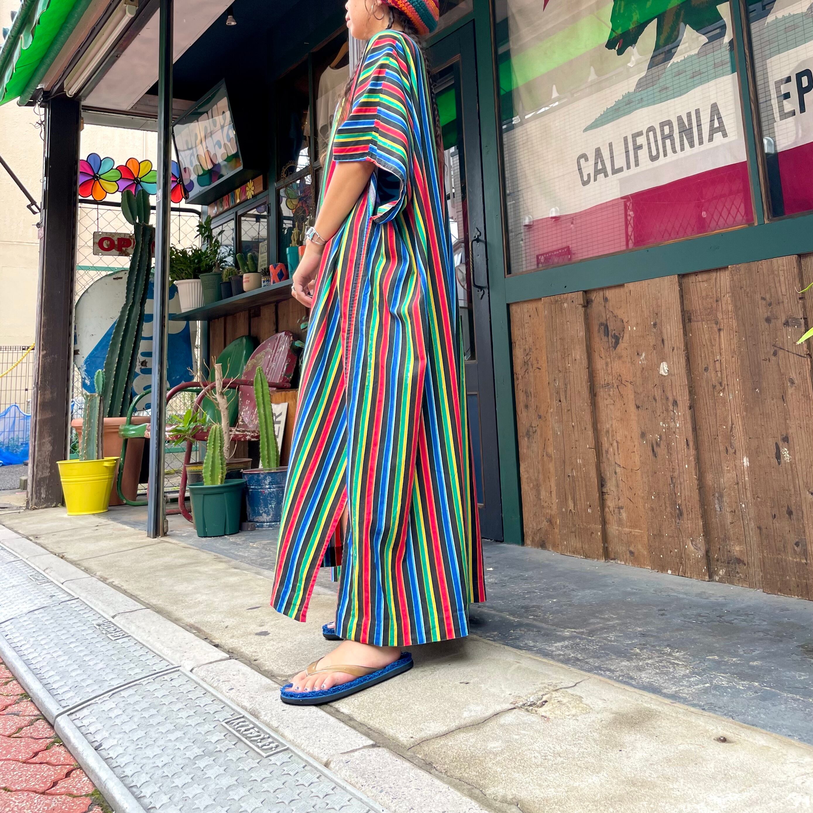 カラフルなストライプの生地がかわいいガウンです。