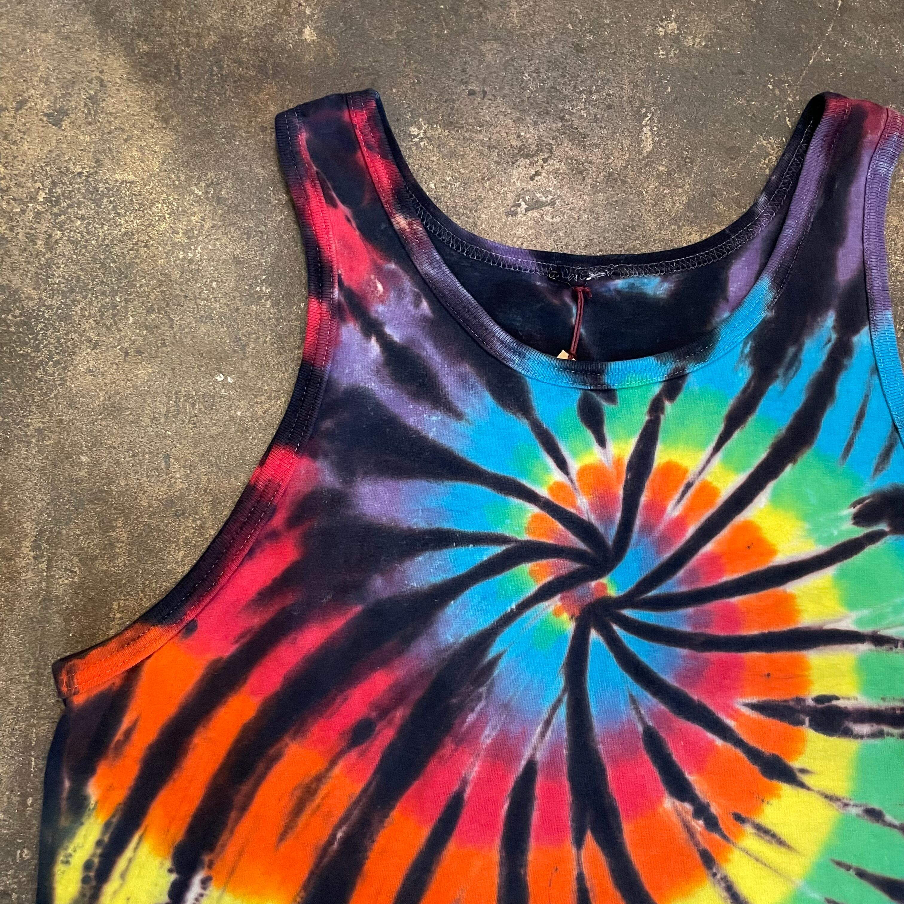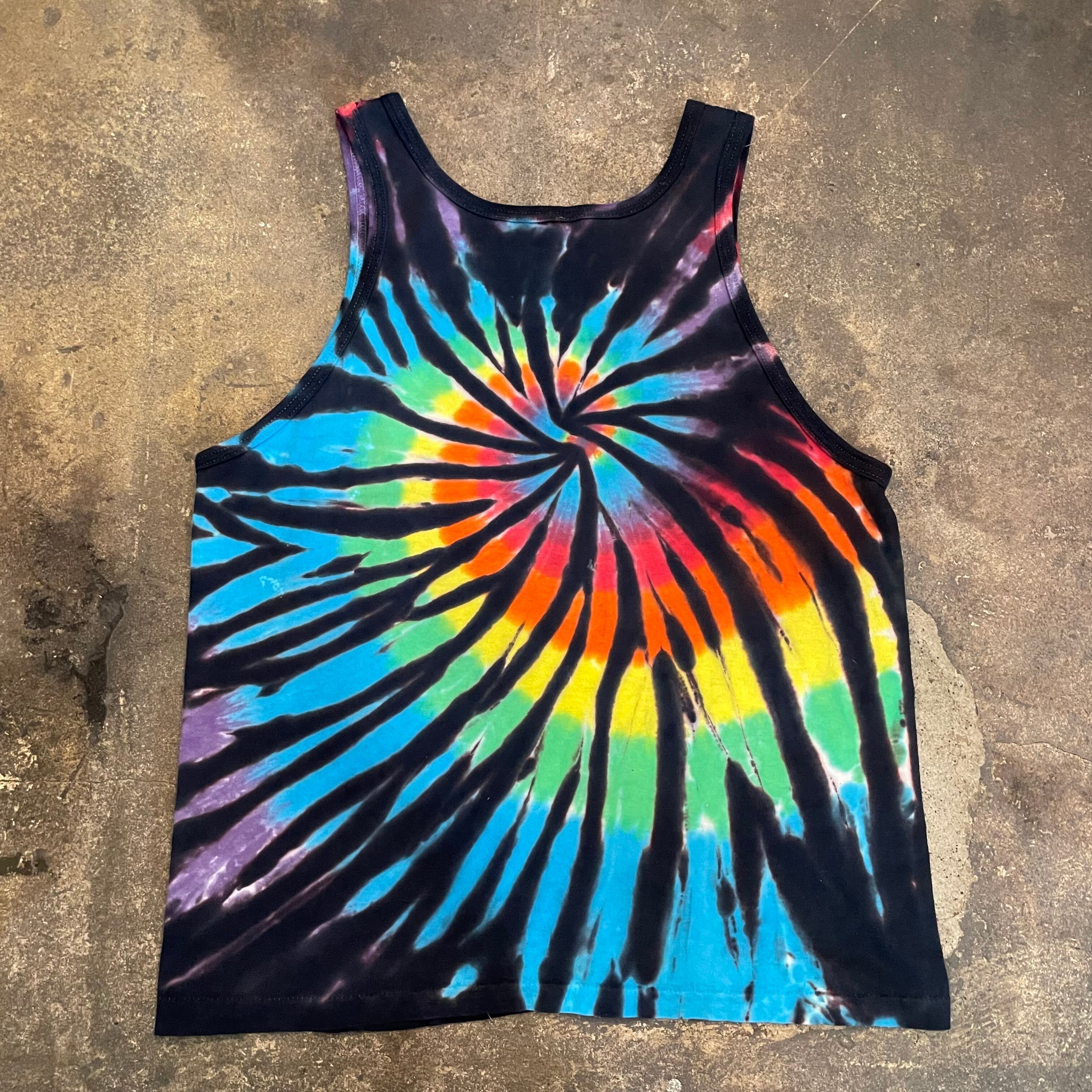 黒ベースのタイダイがかわいいタンクトップです。ハッピーだけでなく怪しい雰囲気も醸し出してくれるような感じが良いですね。