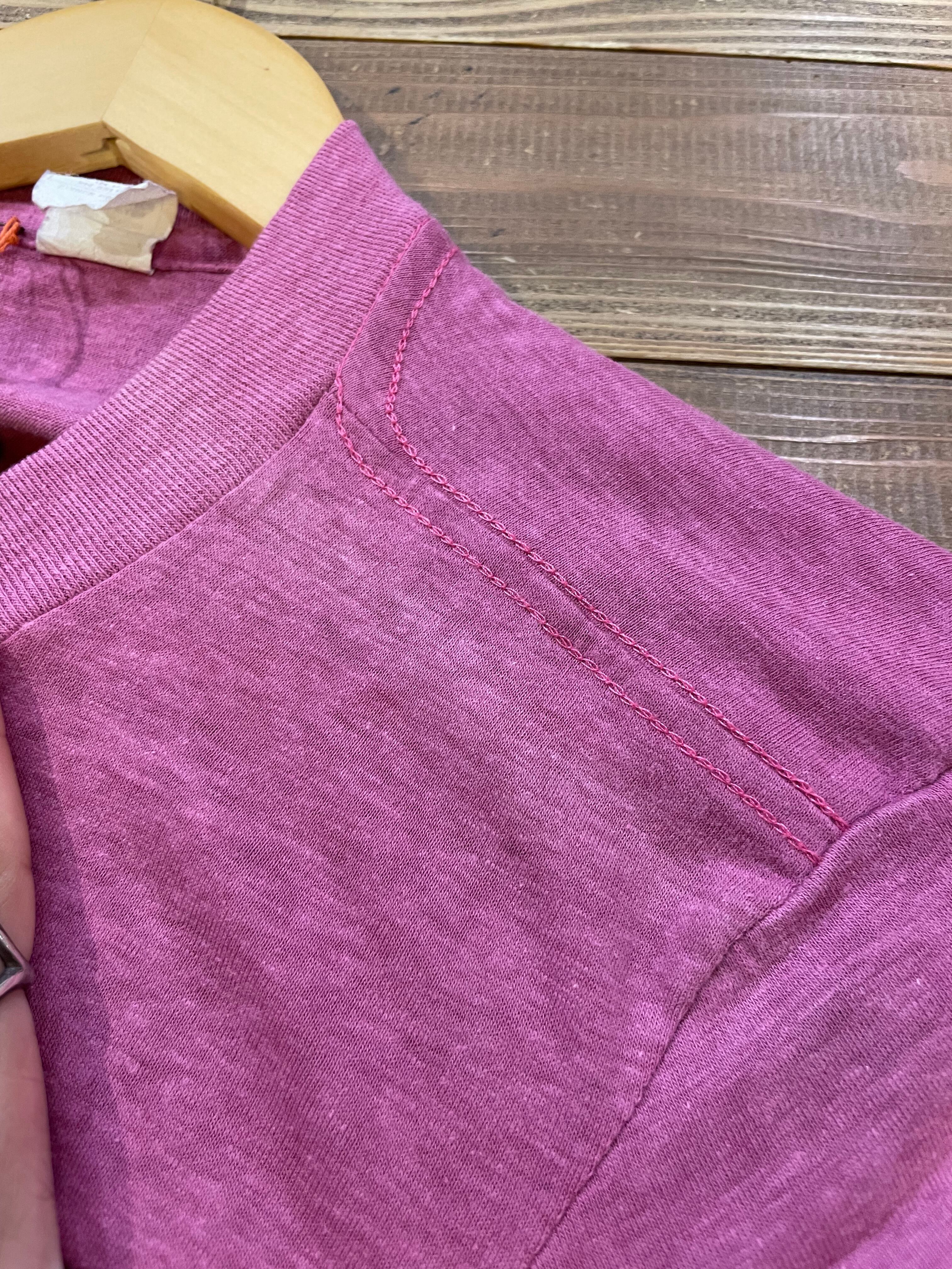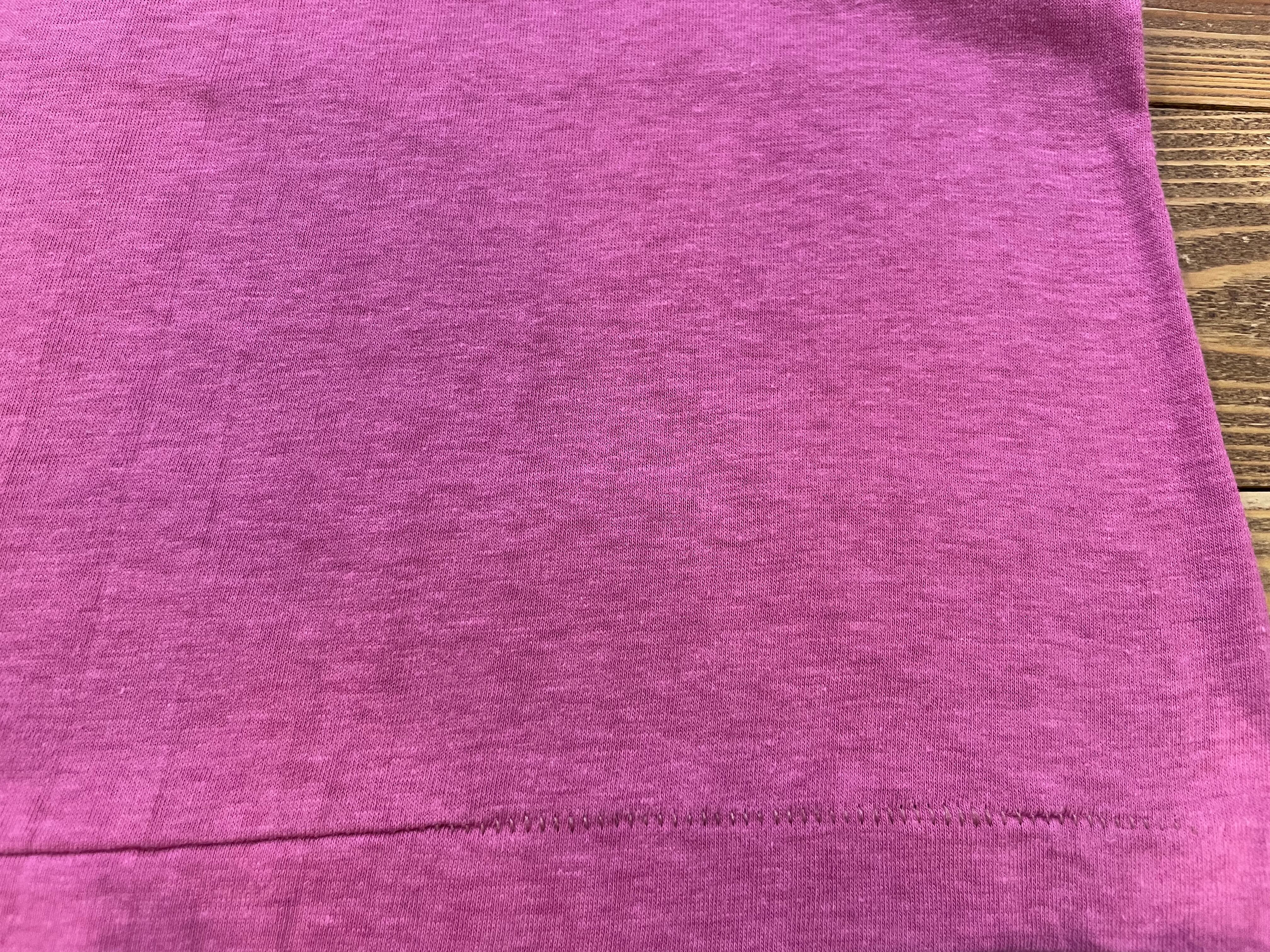 紫みのあるピンク?のような絶妙な色味がとてもかわいいTシャツです。