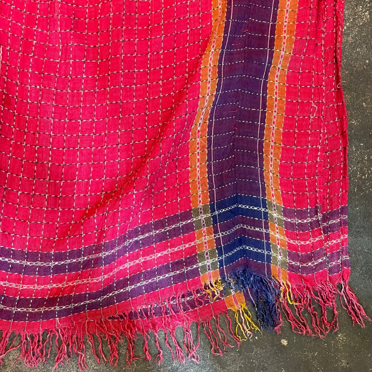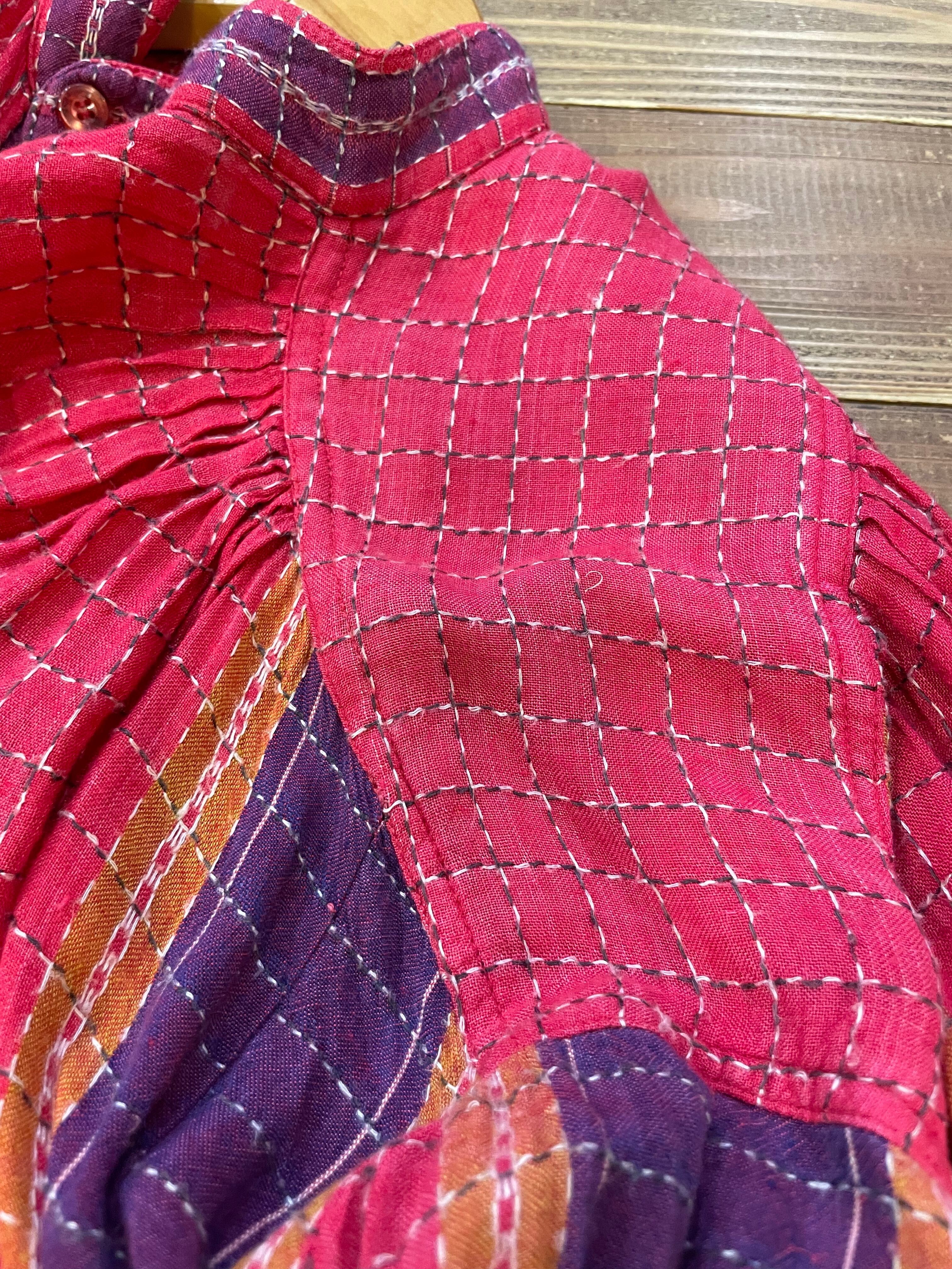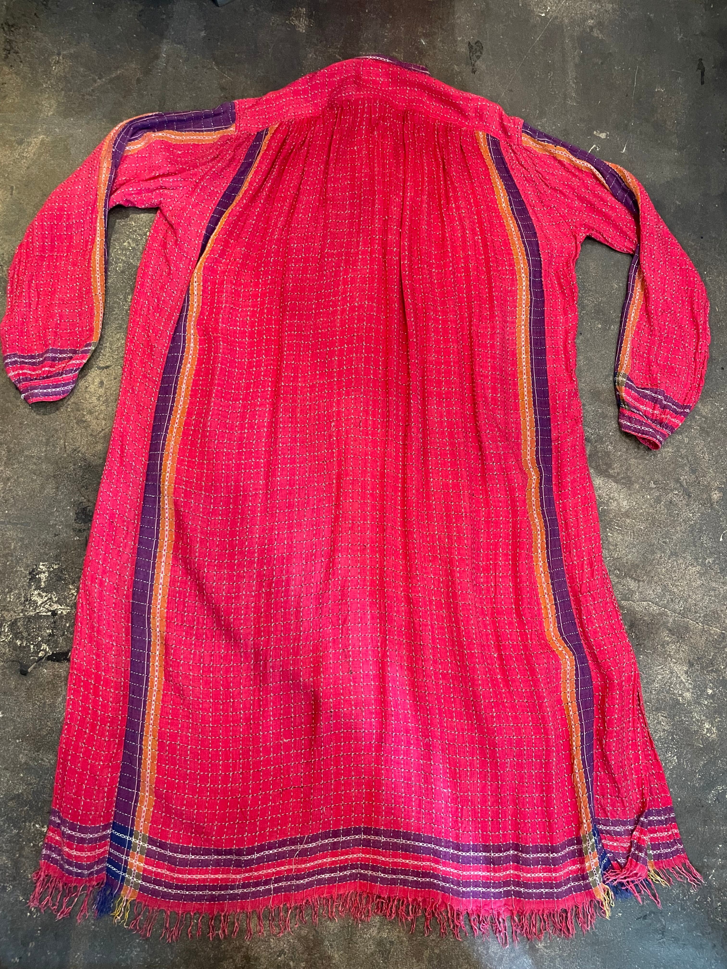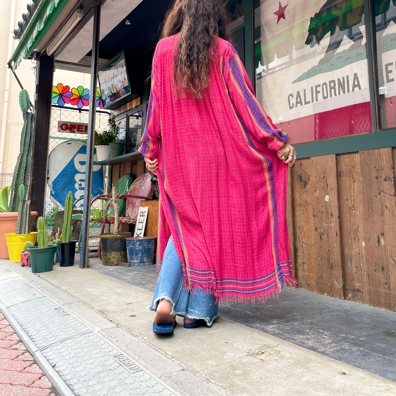 ヘンリーネックですノーカラー 、ゆったりシルエットで裾はフリンジになっていてかわいい60〜70年代ごろのインド製のワンピースです。