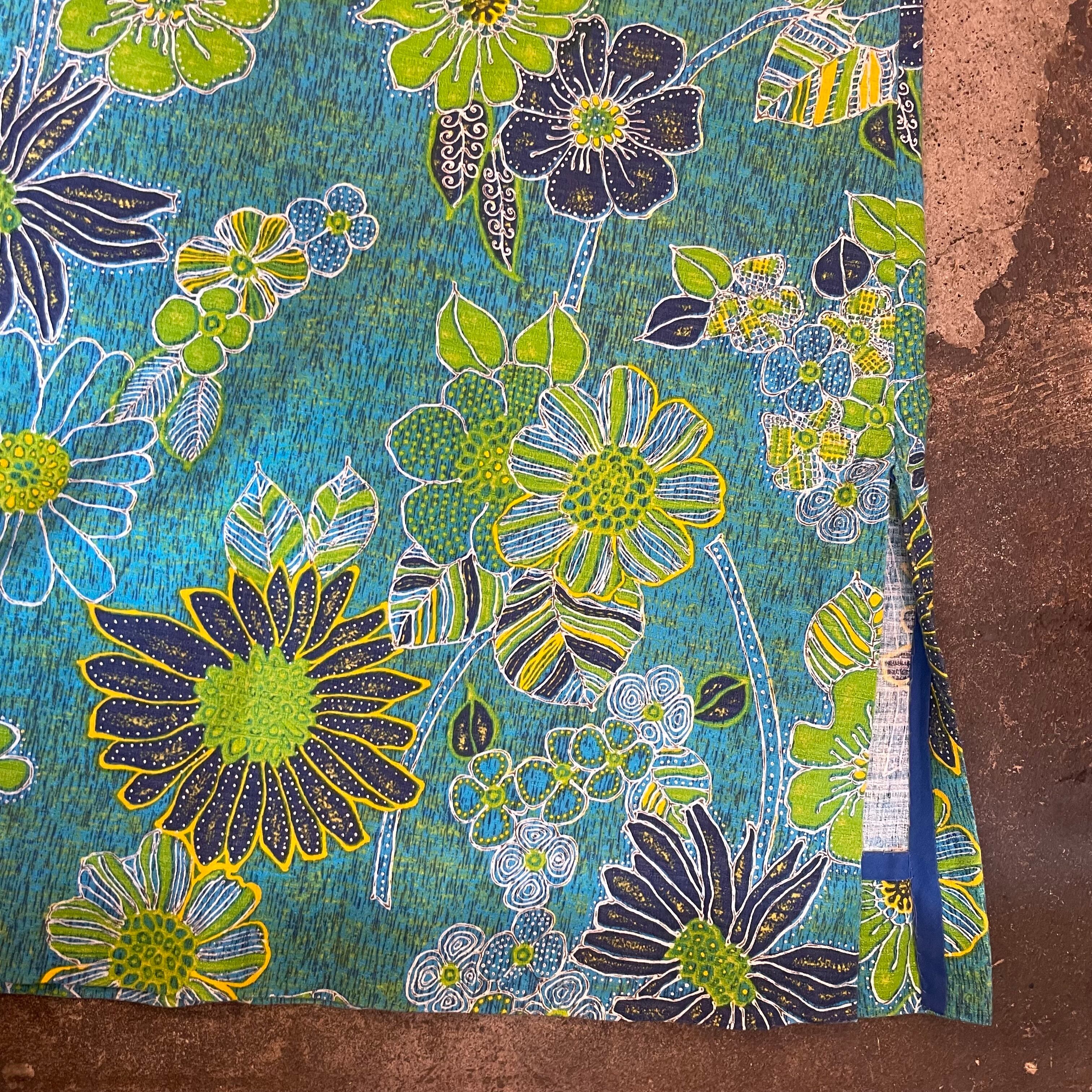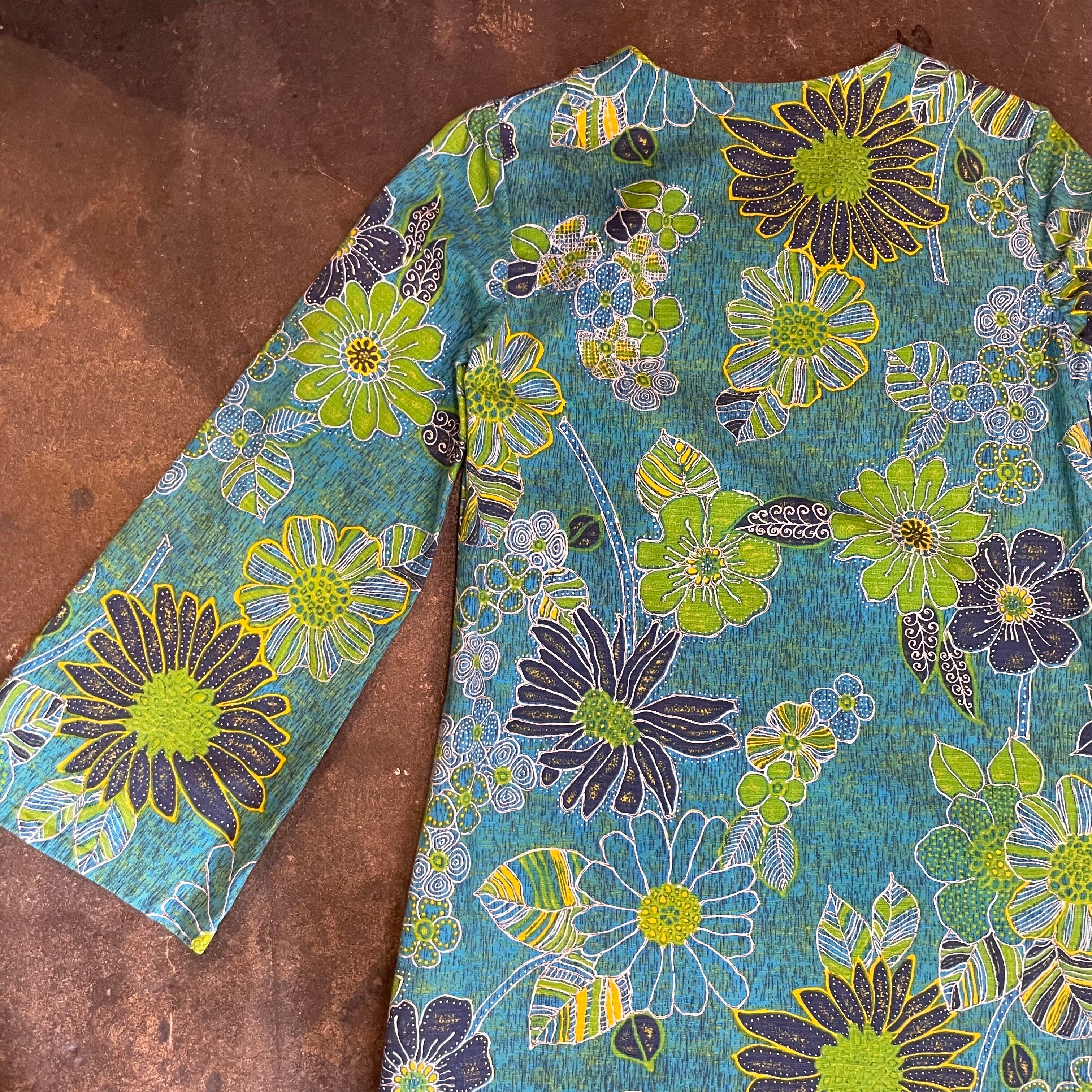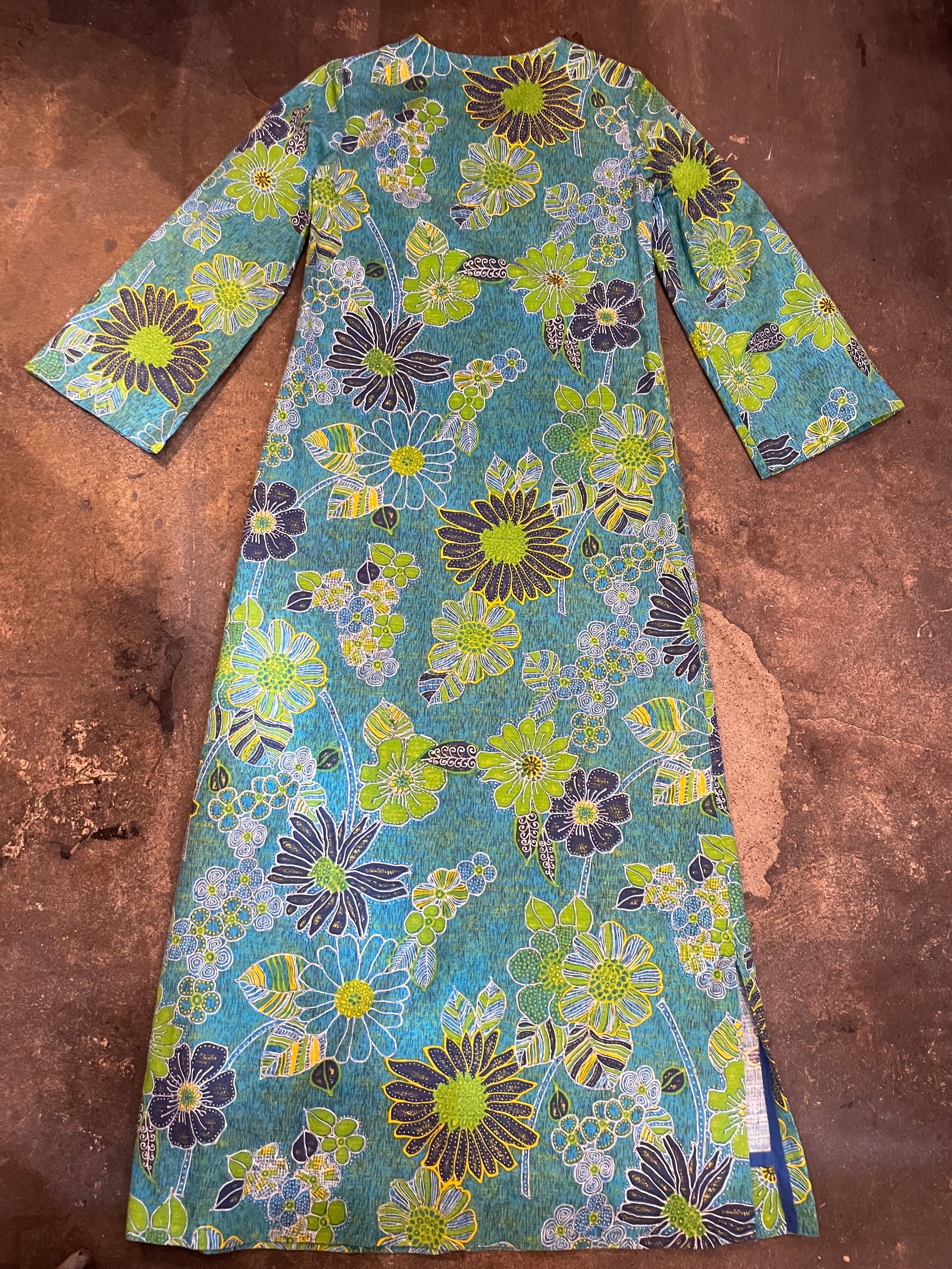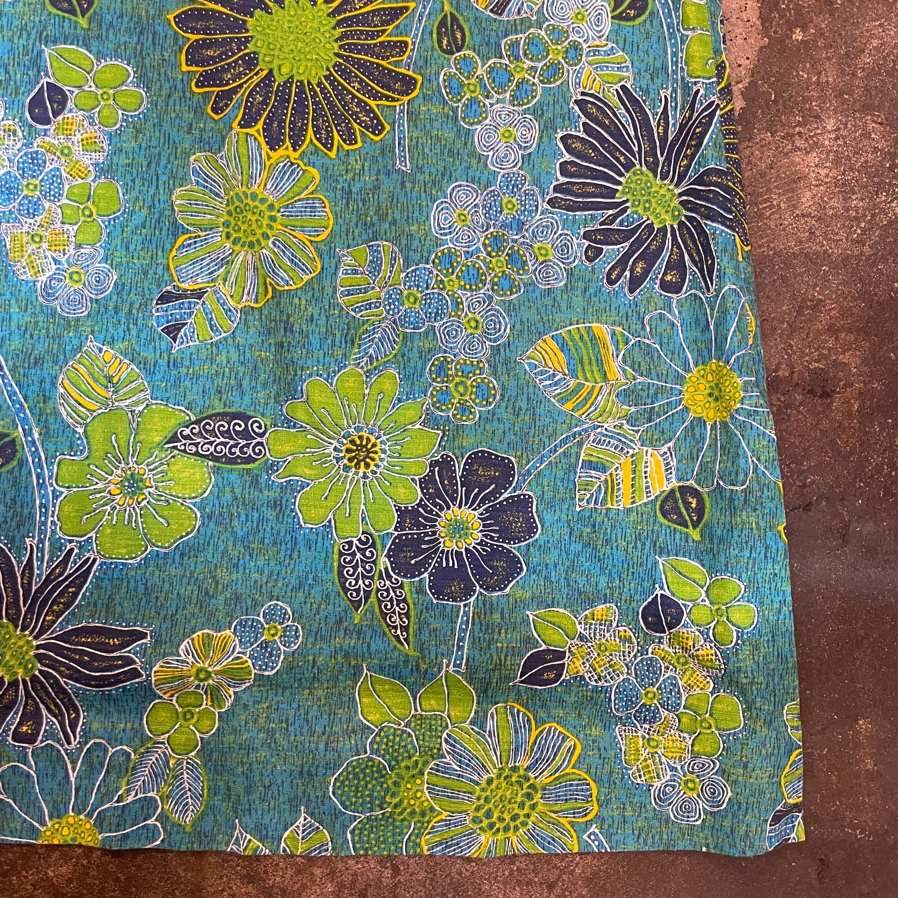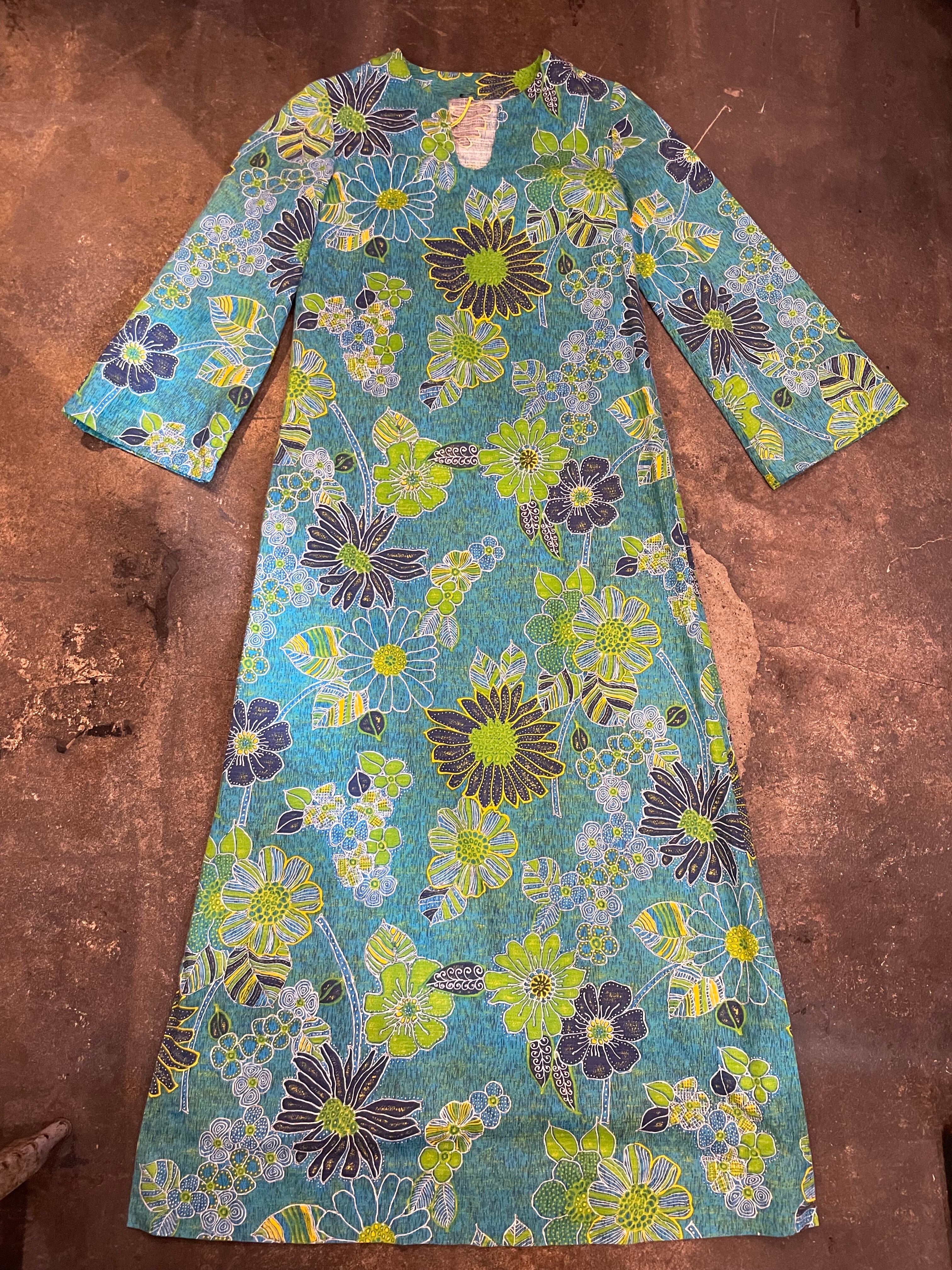 さわやかなカラーリングの花柄がとてもかわいい70年代頃のワンピースです。