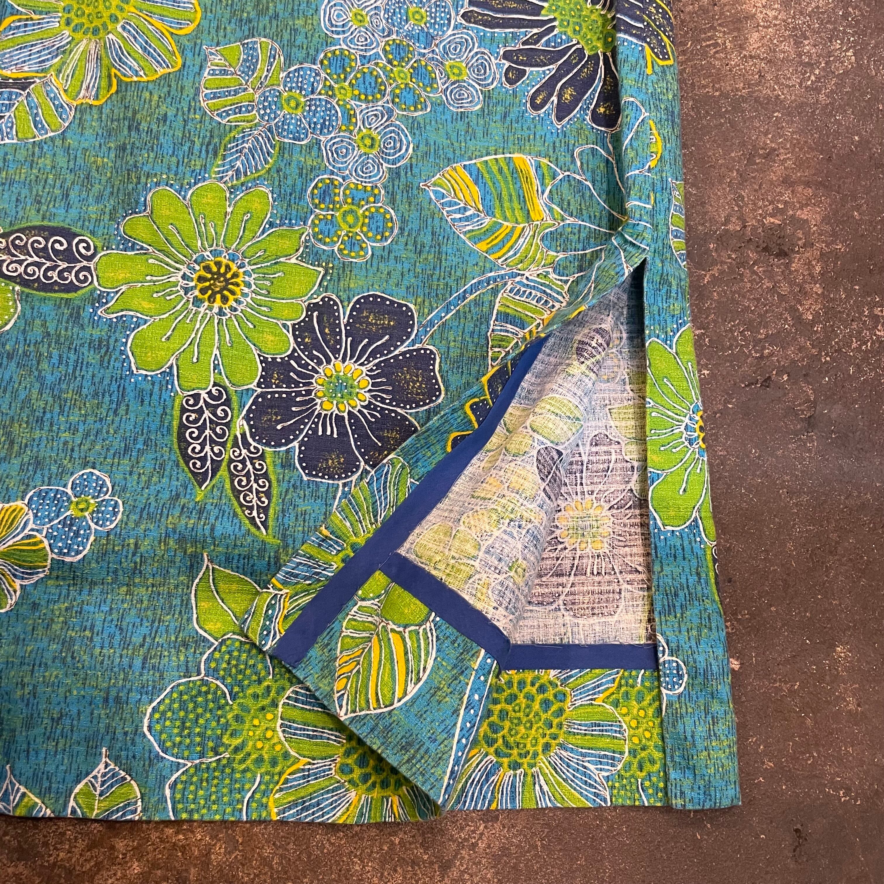 この時代のハワイアンドレスによく使われているような雰囲気の質の良い織りの生地で、肌にくっつかなくて涼しいですし着心地も良いと思います。