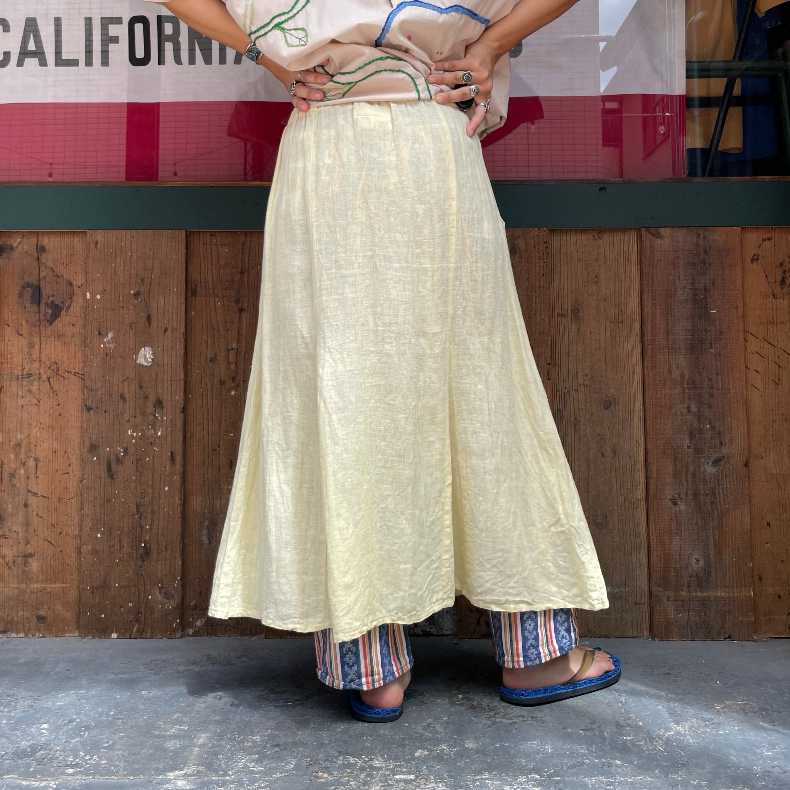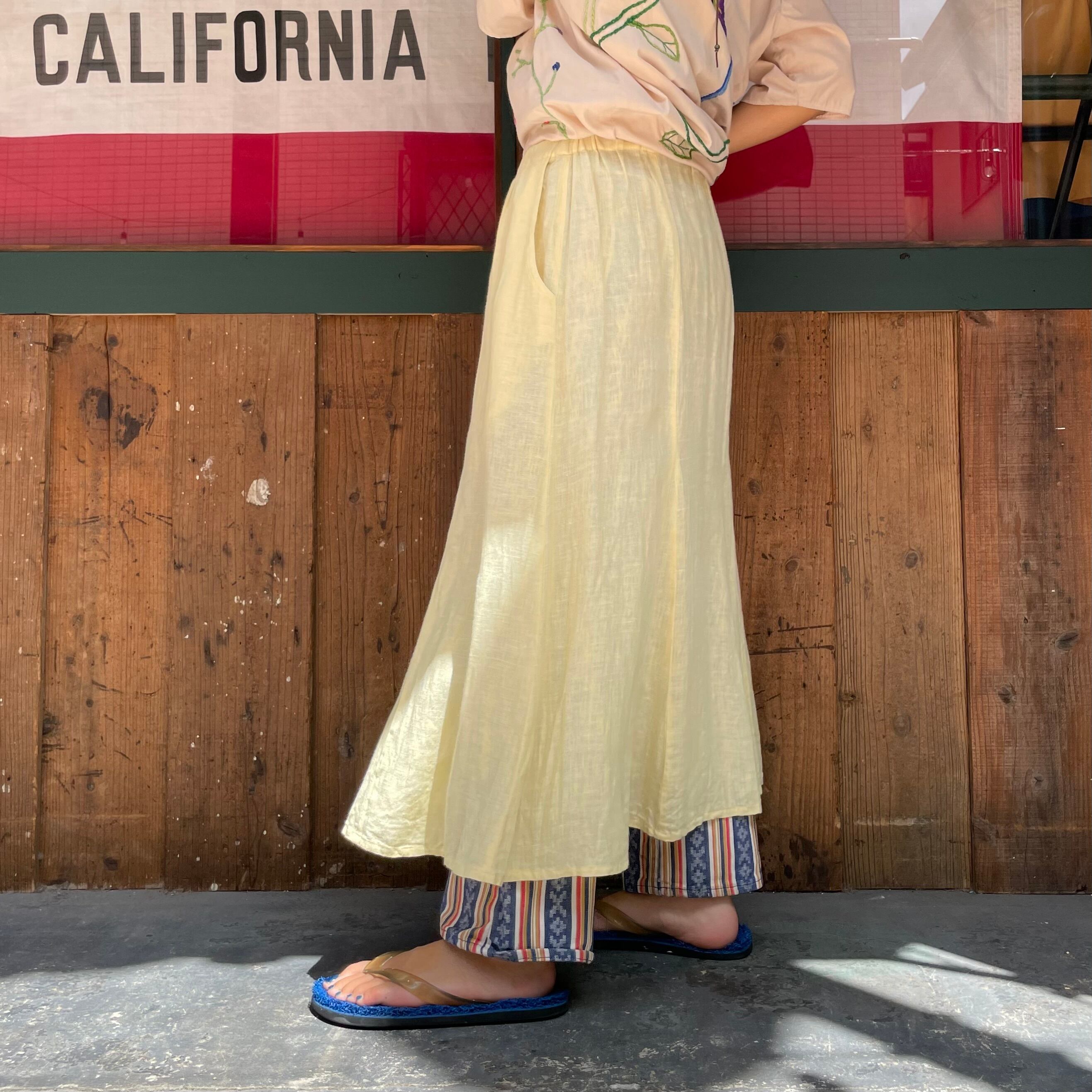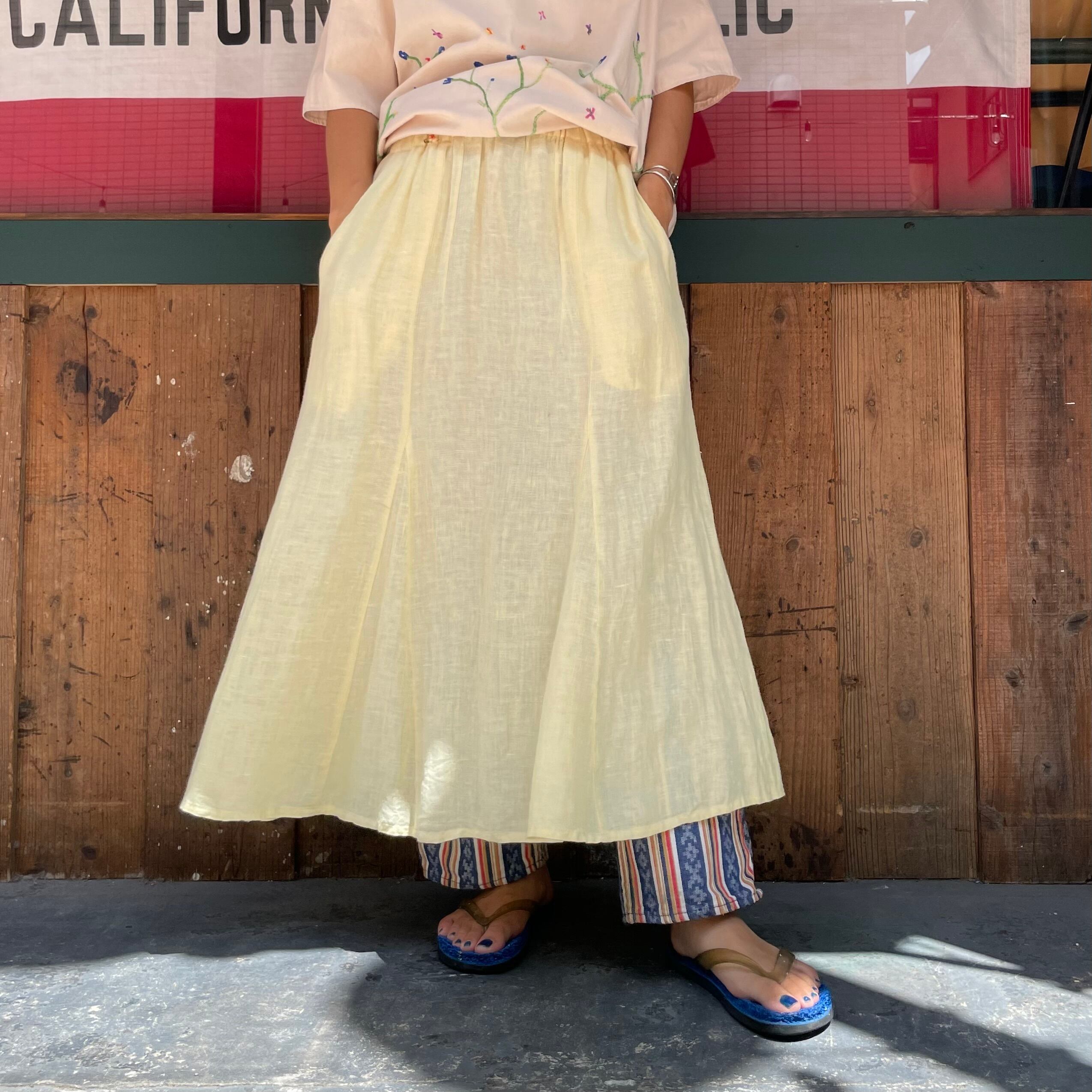 淡いクリームイエローがかわいいリネン素材のスカートです。