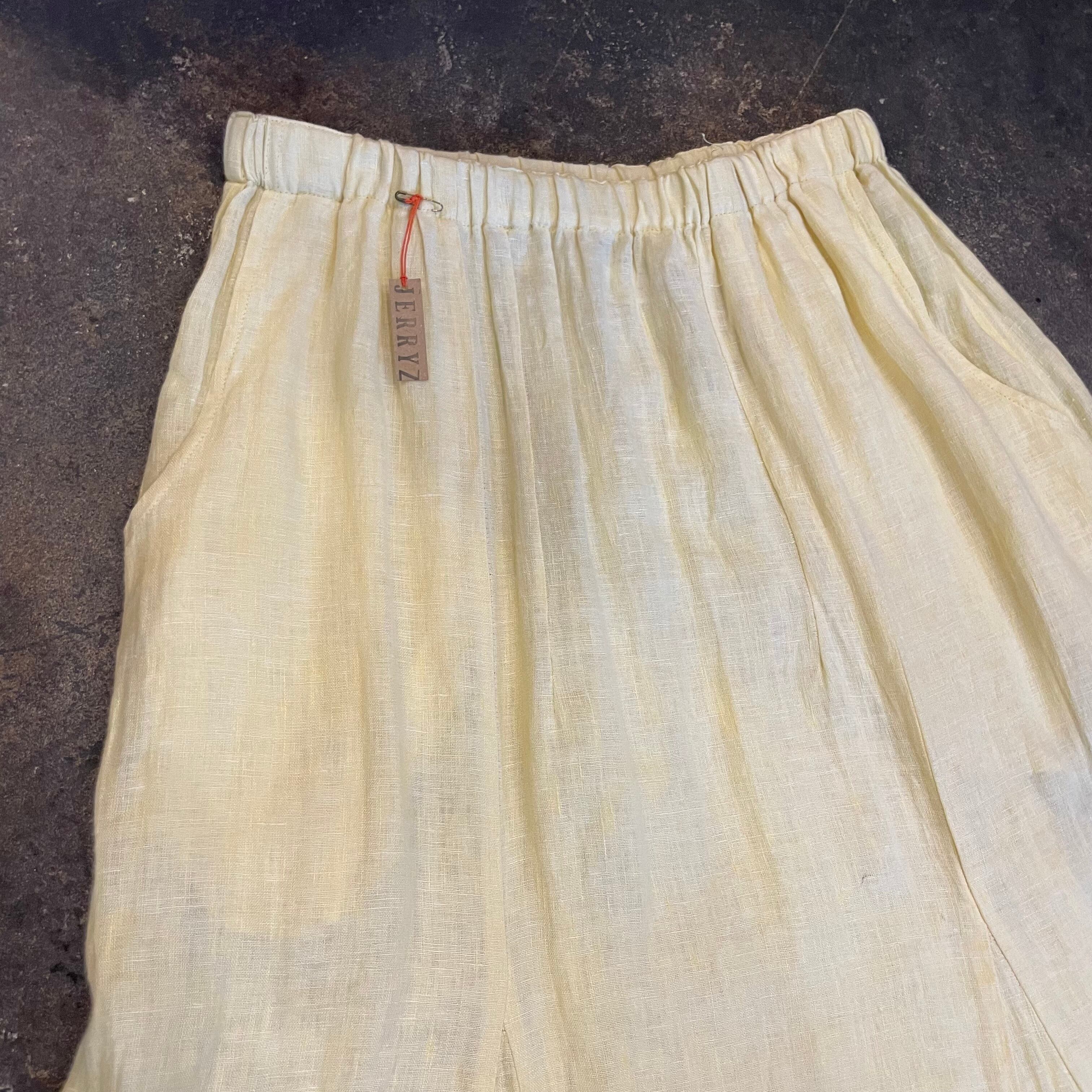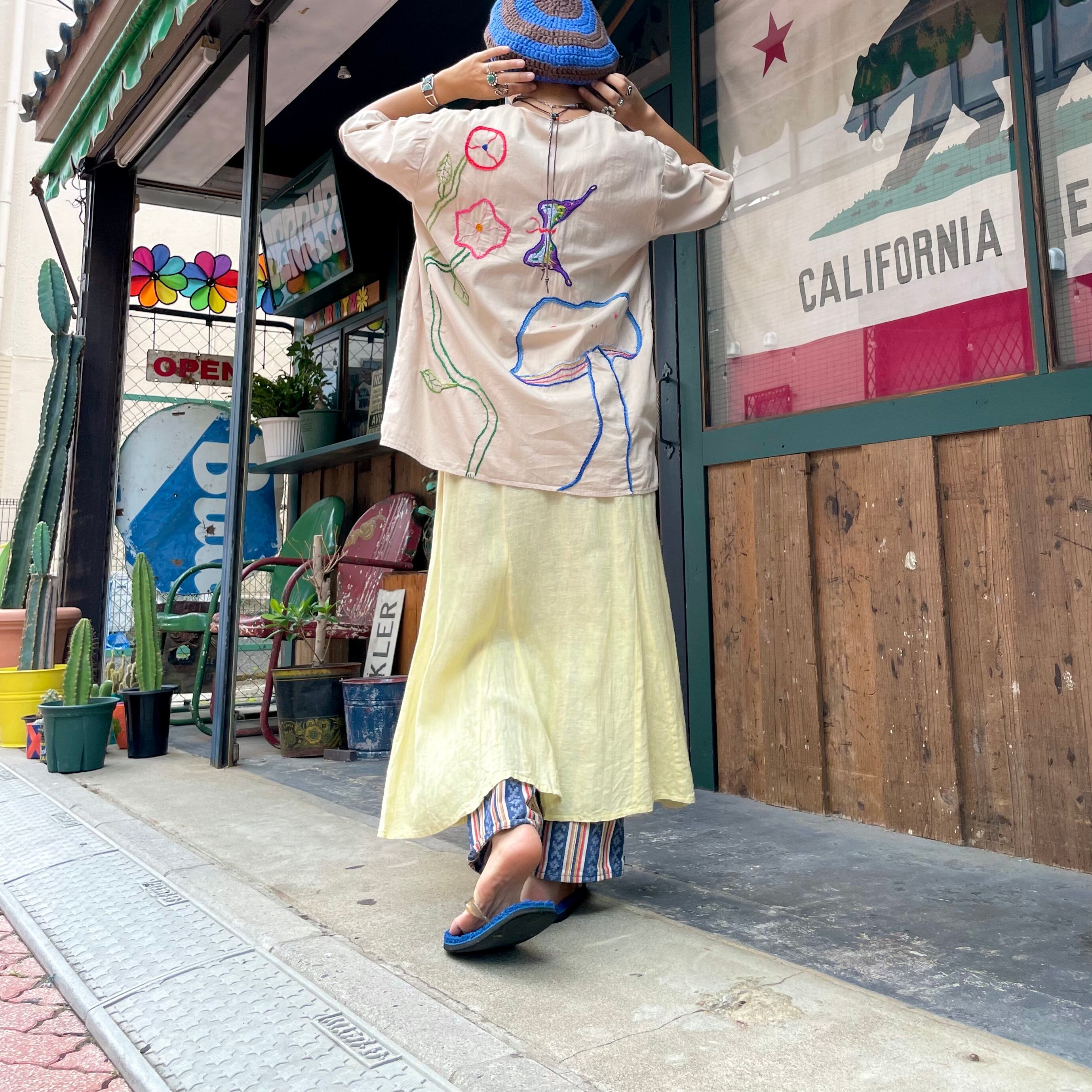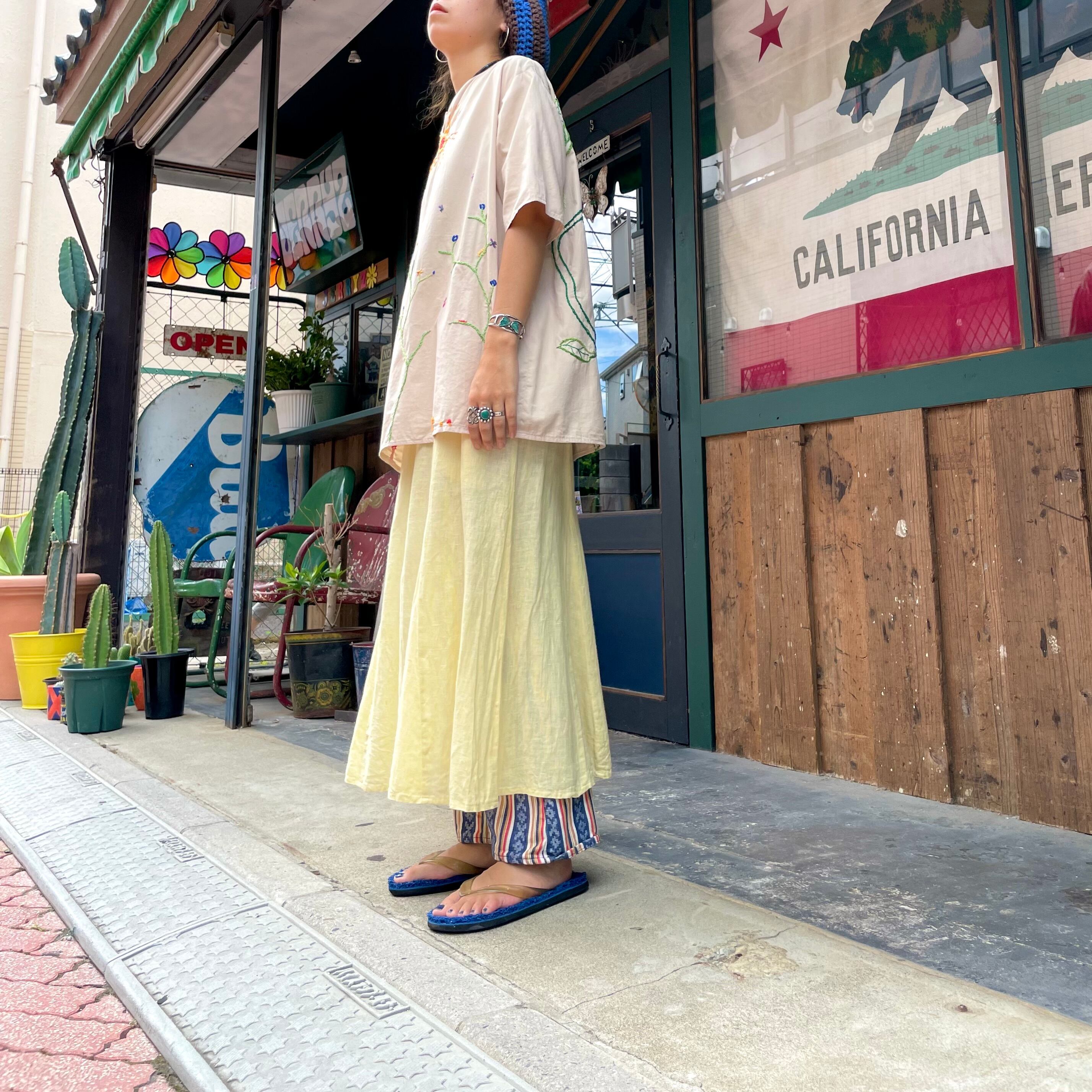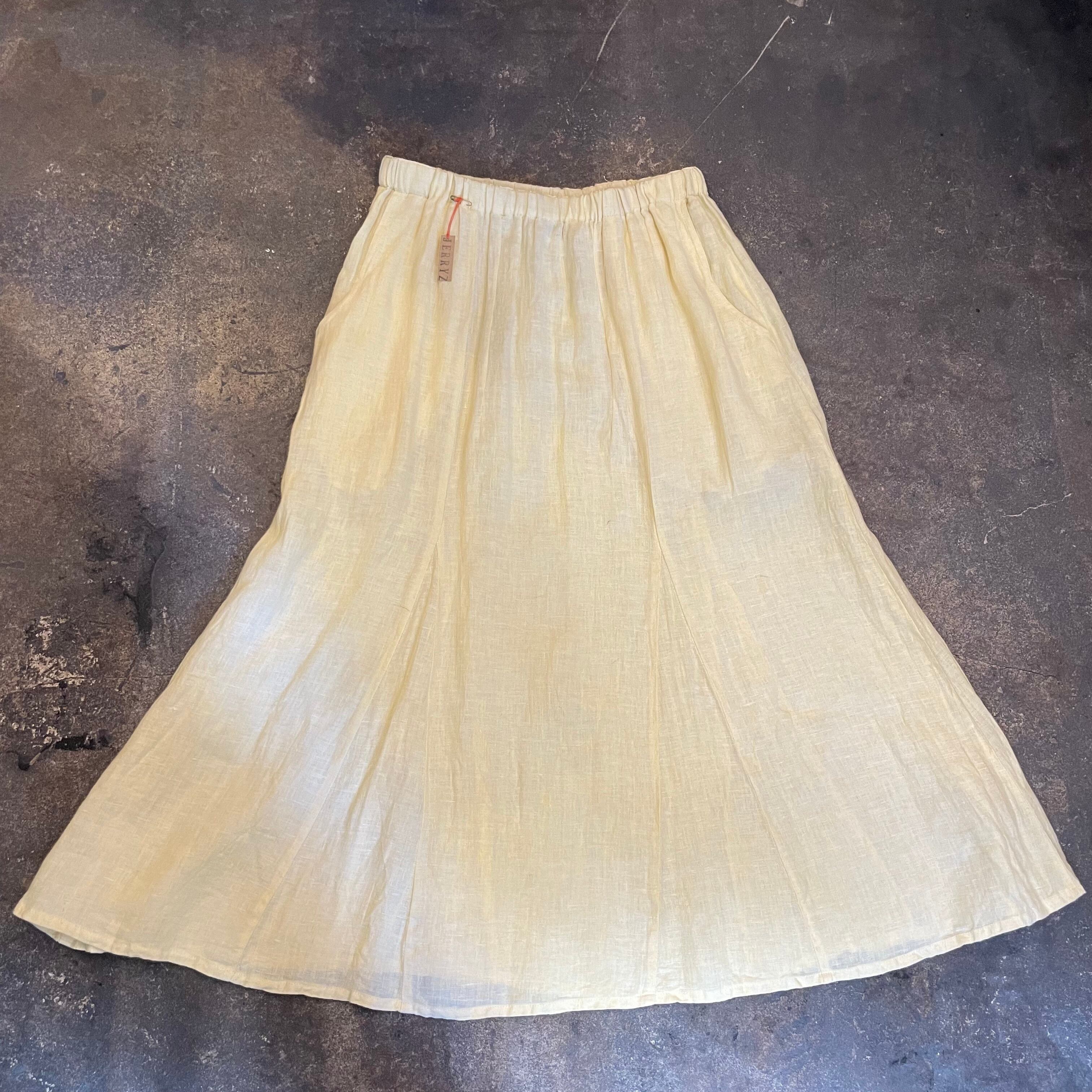 淡いクリームイエローがかわいいリネン素材のスカートです。