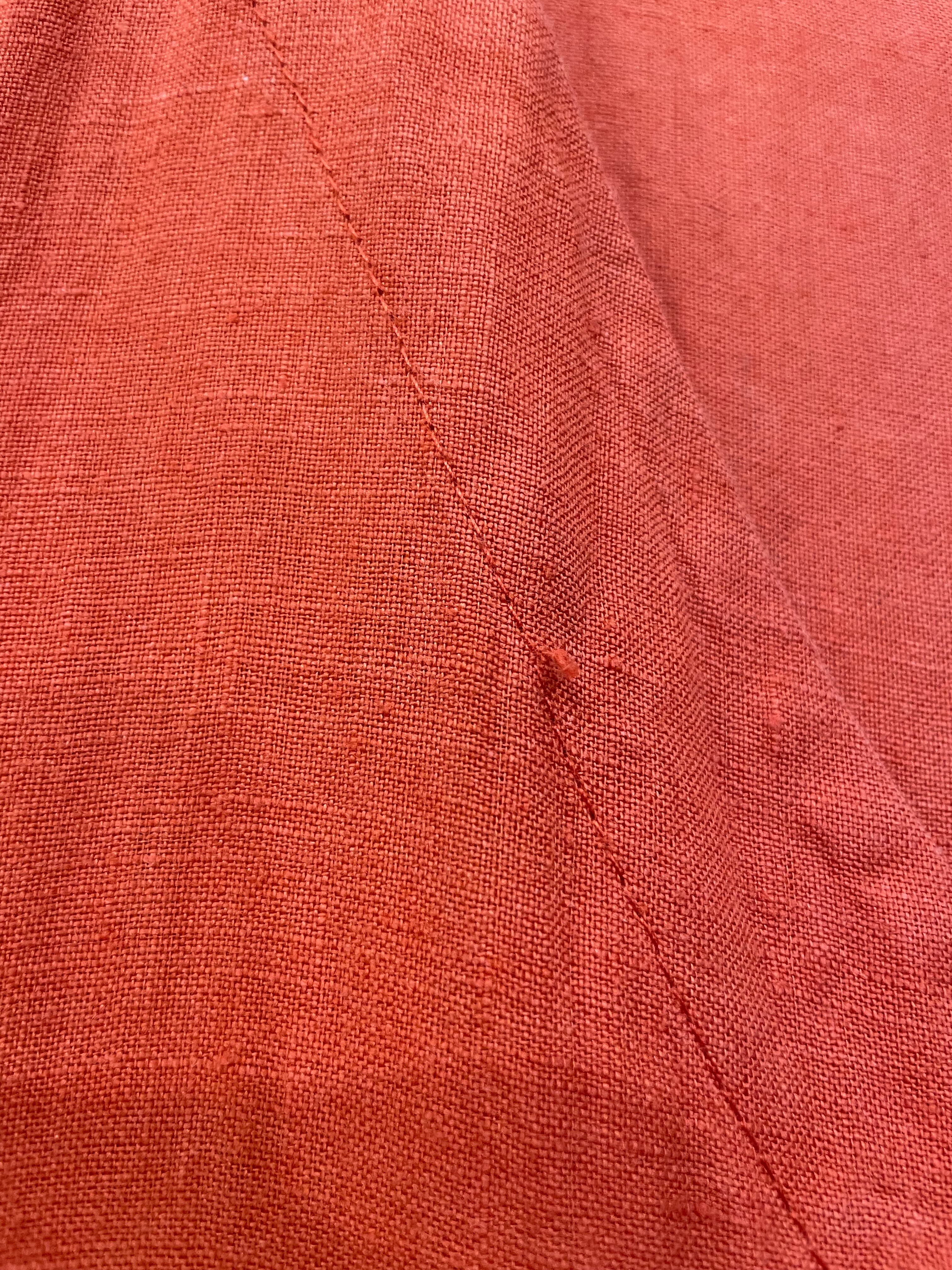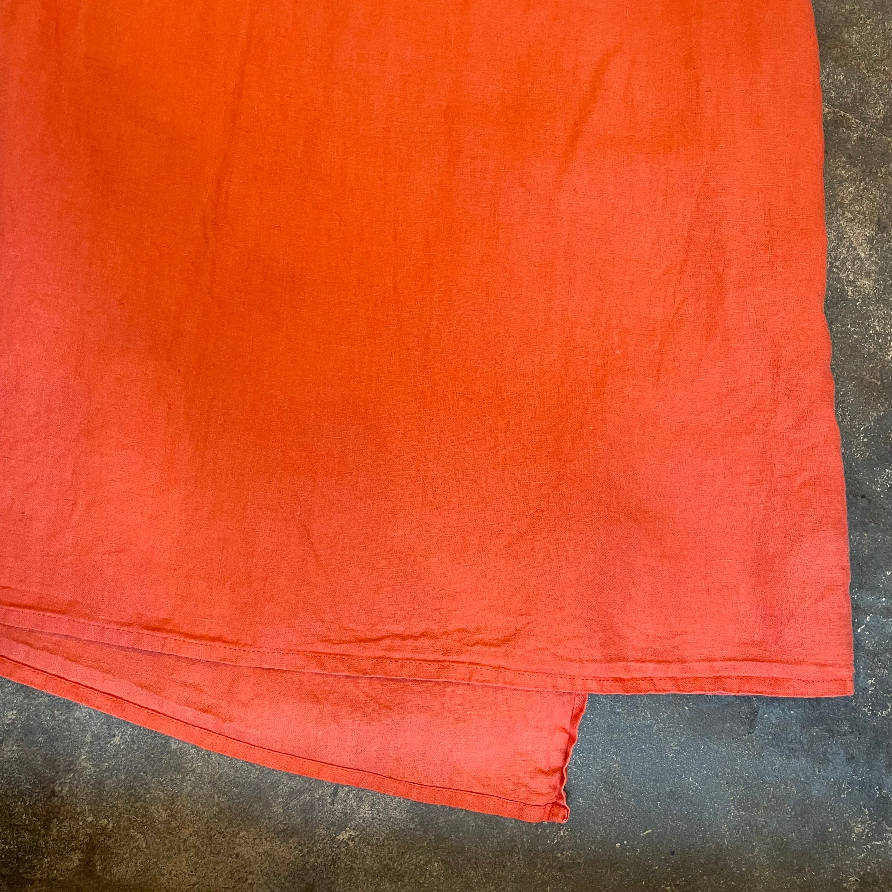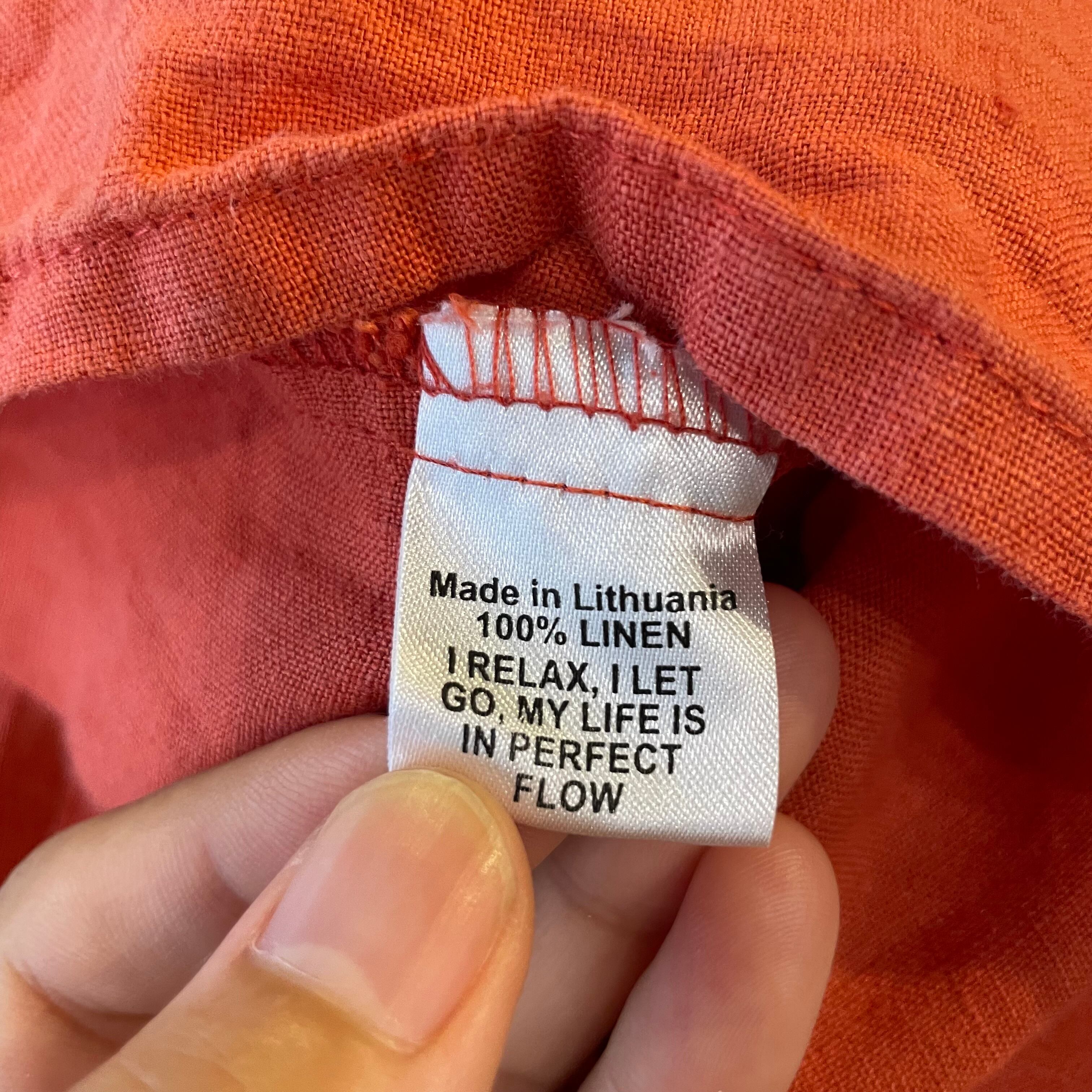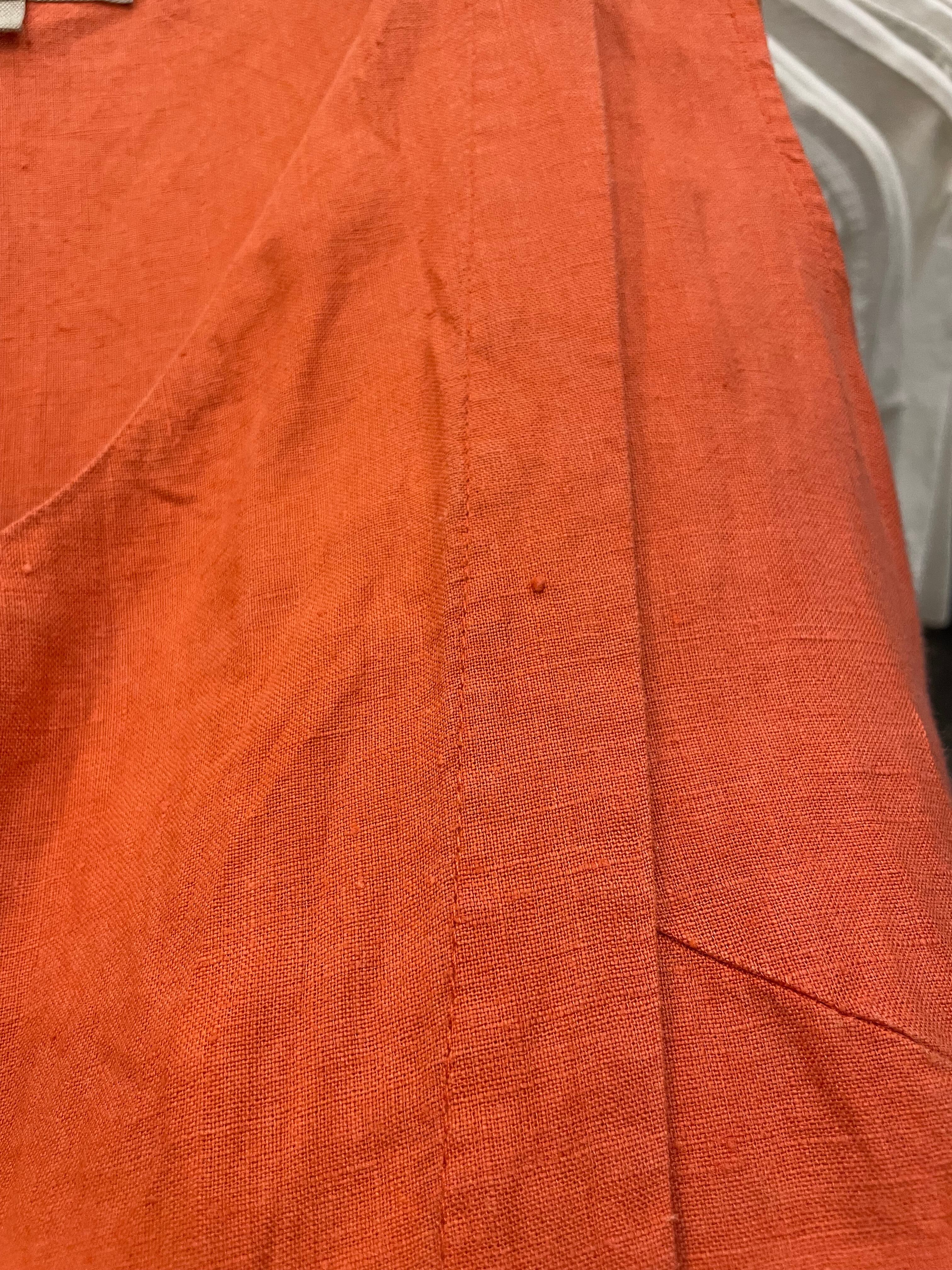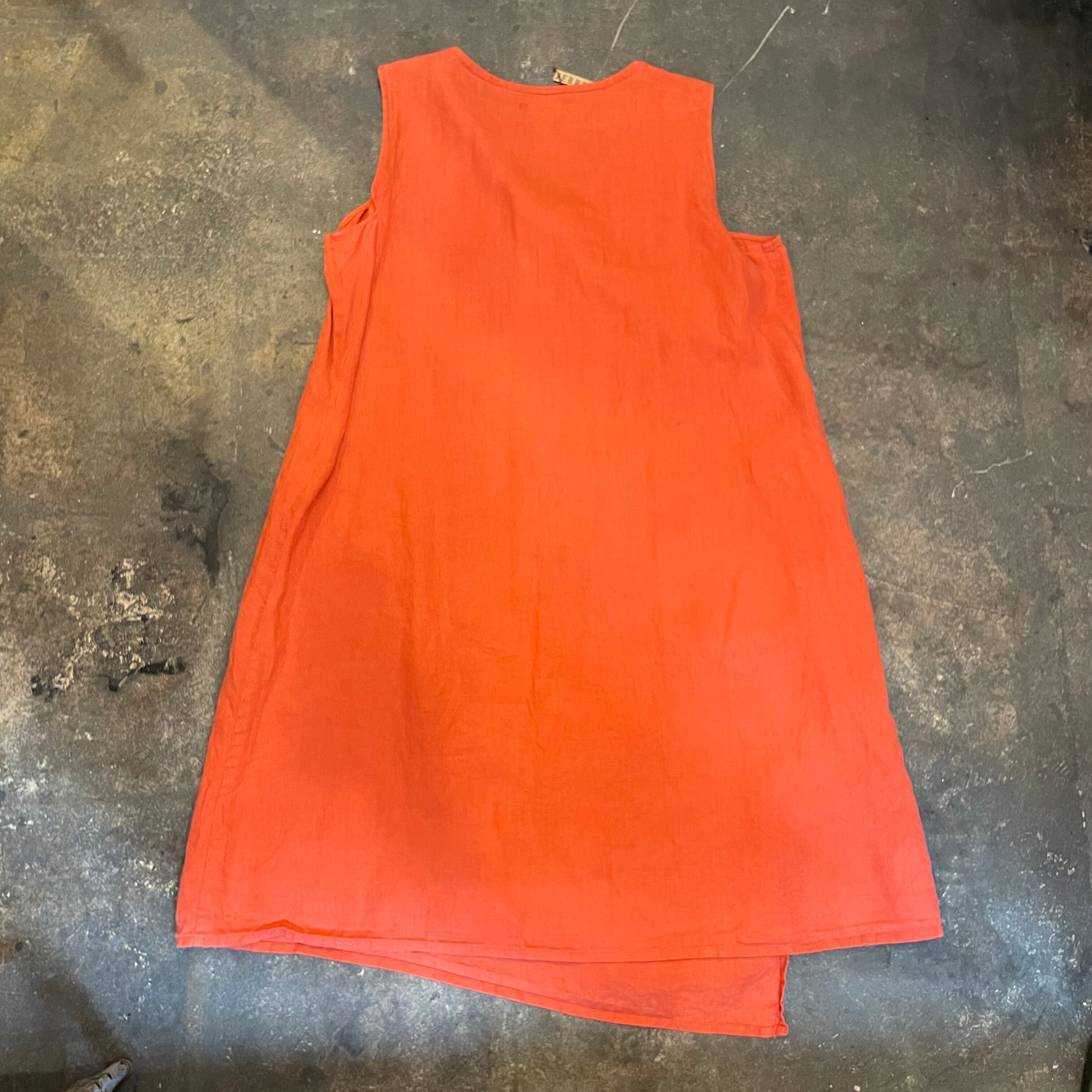 柔らかいオレンジが素敵なノースリーブワンピースです。リネン素材はやはり上品ですし年齢関係なく着て頂けそうなデザインで飽きずに着回せそうですね。