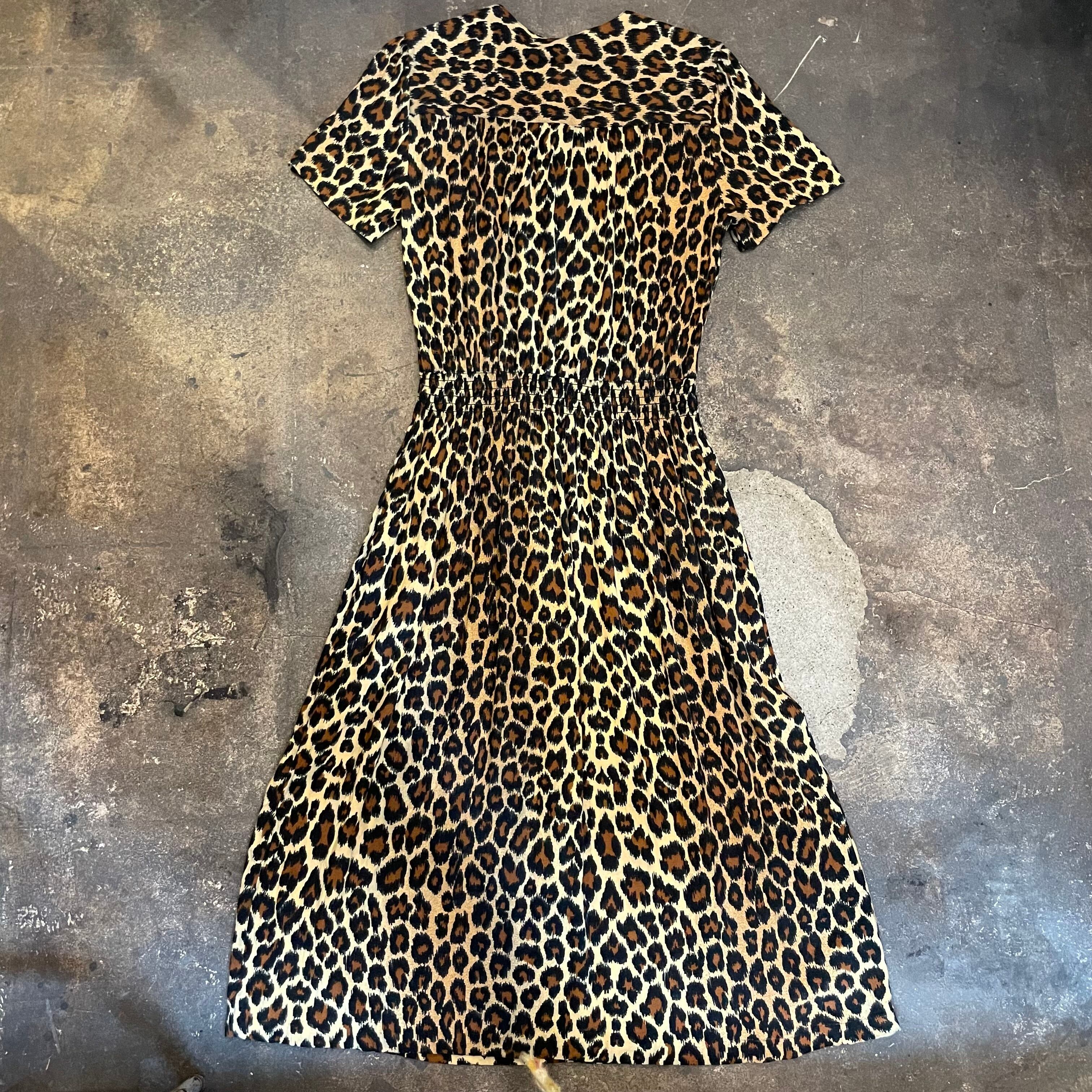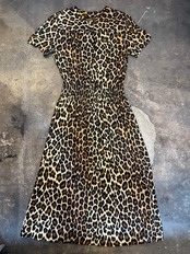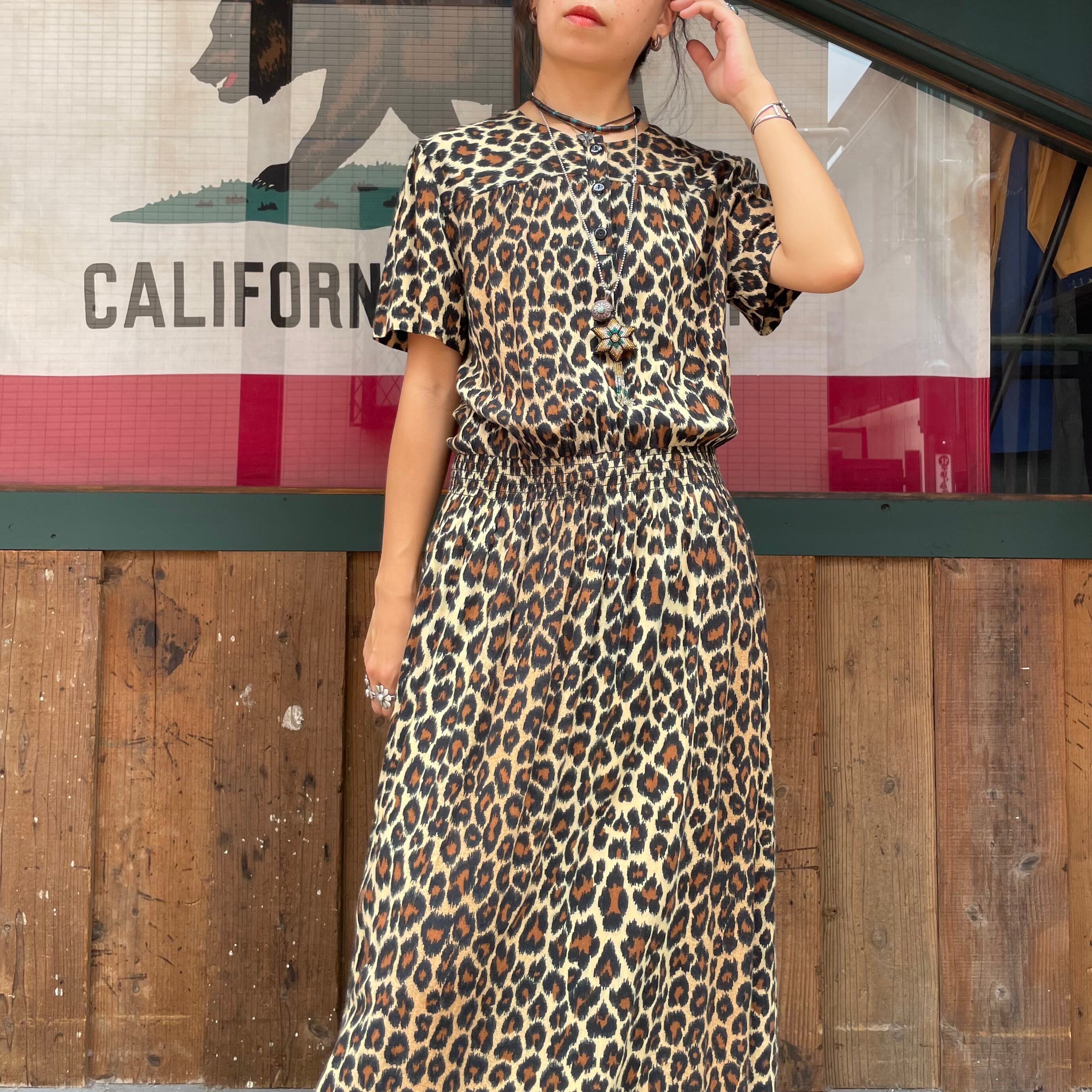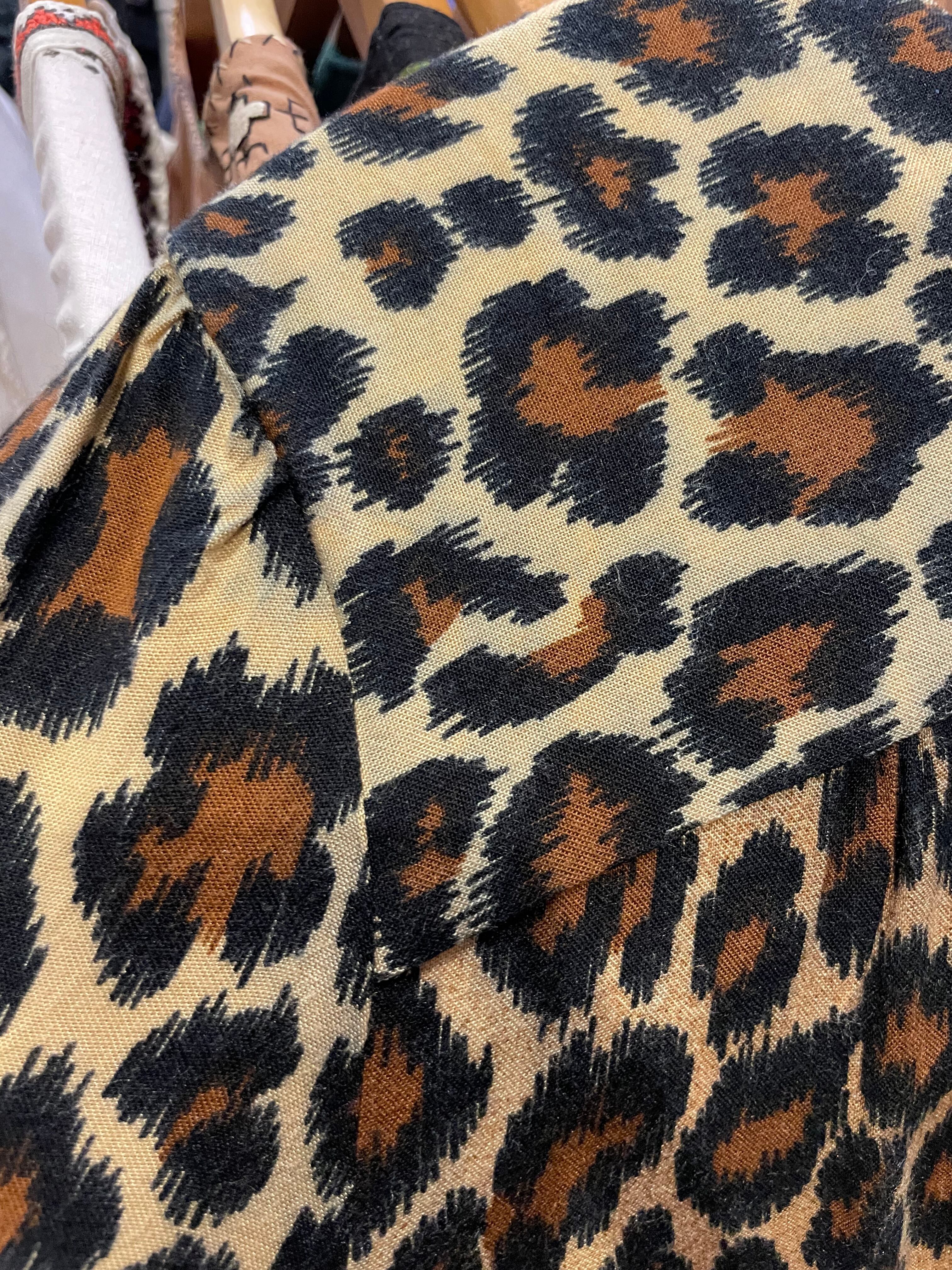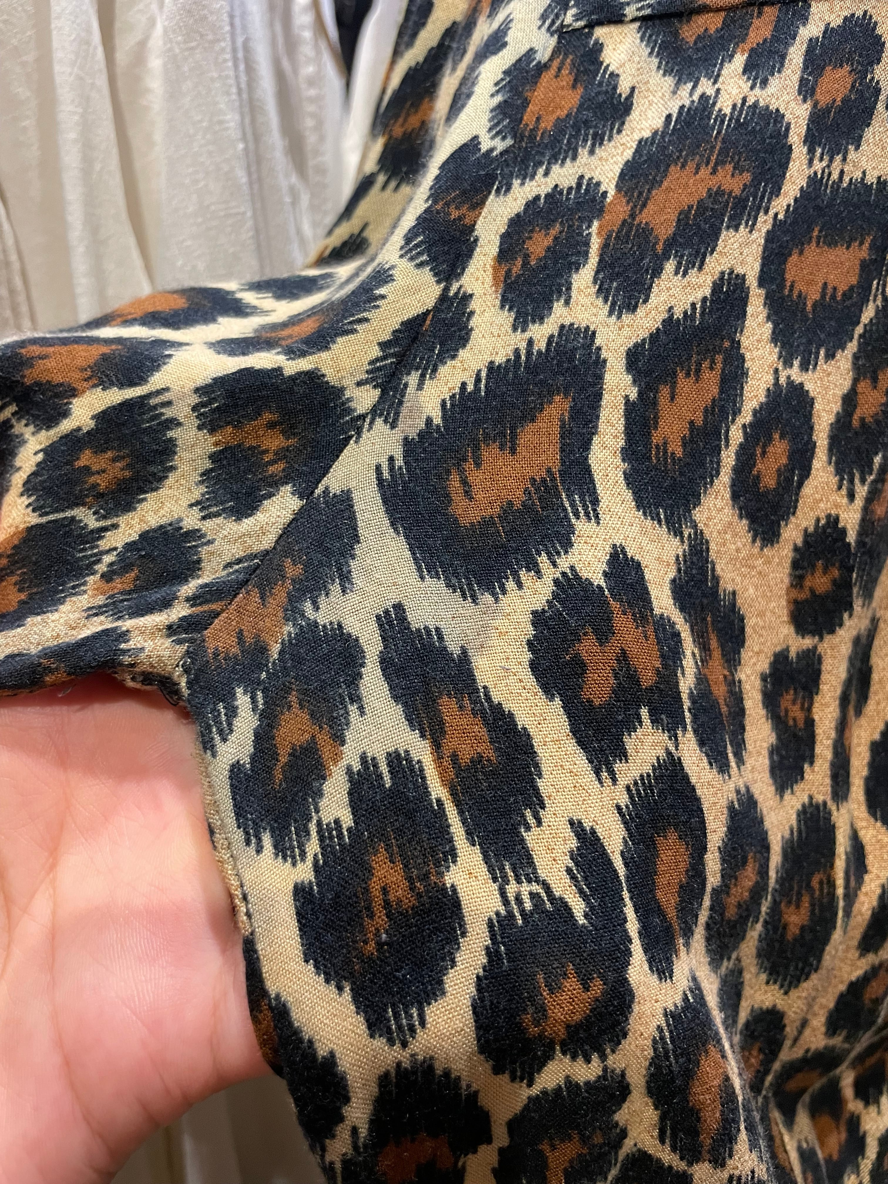 大きめのヒョウ柄がかわいいレーヨン素材のワンピースです。シルエットはシンプルでスッキリ着やすい雰囲気だと思います。