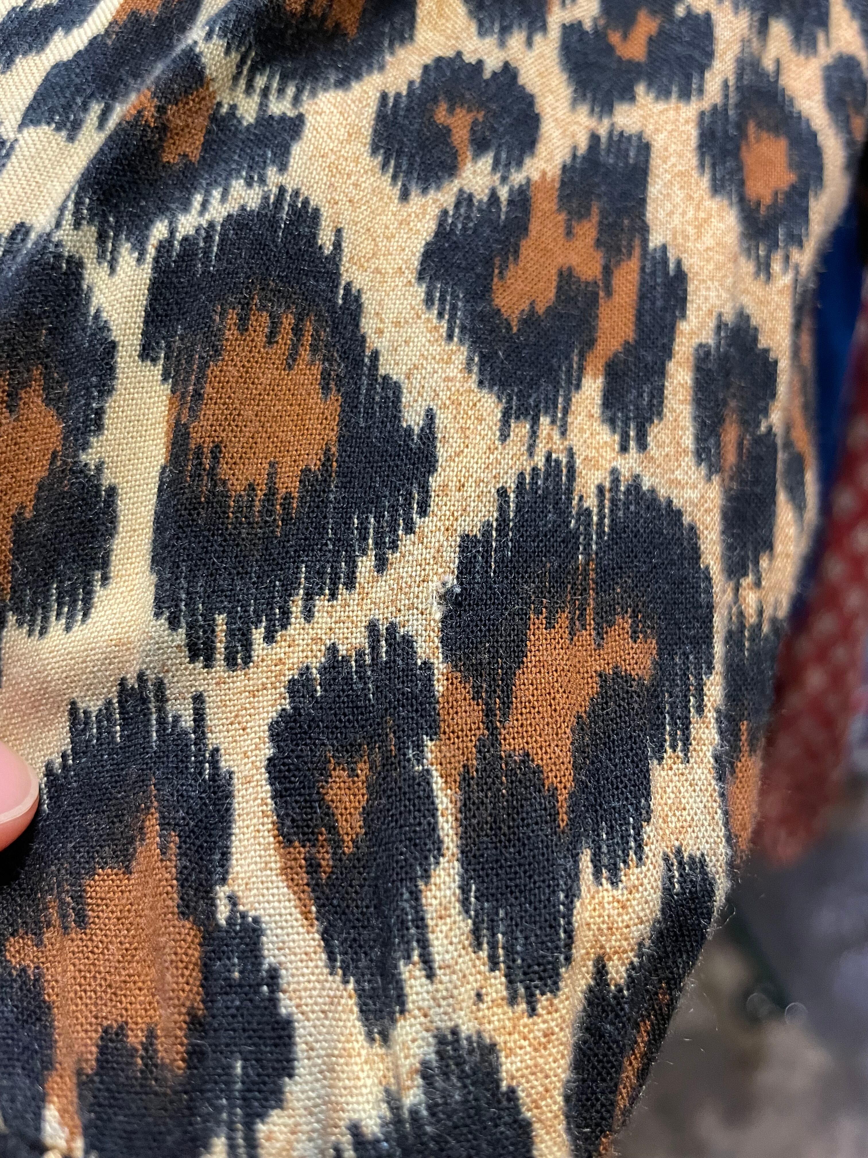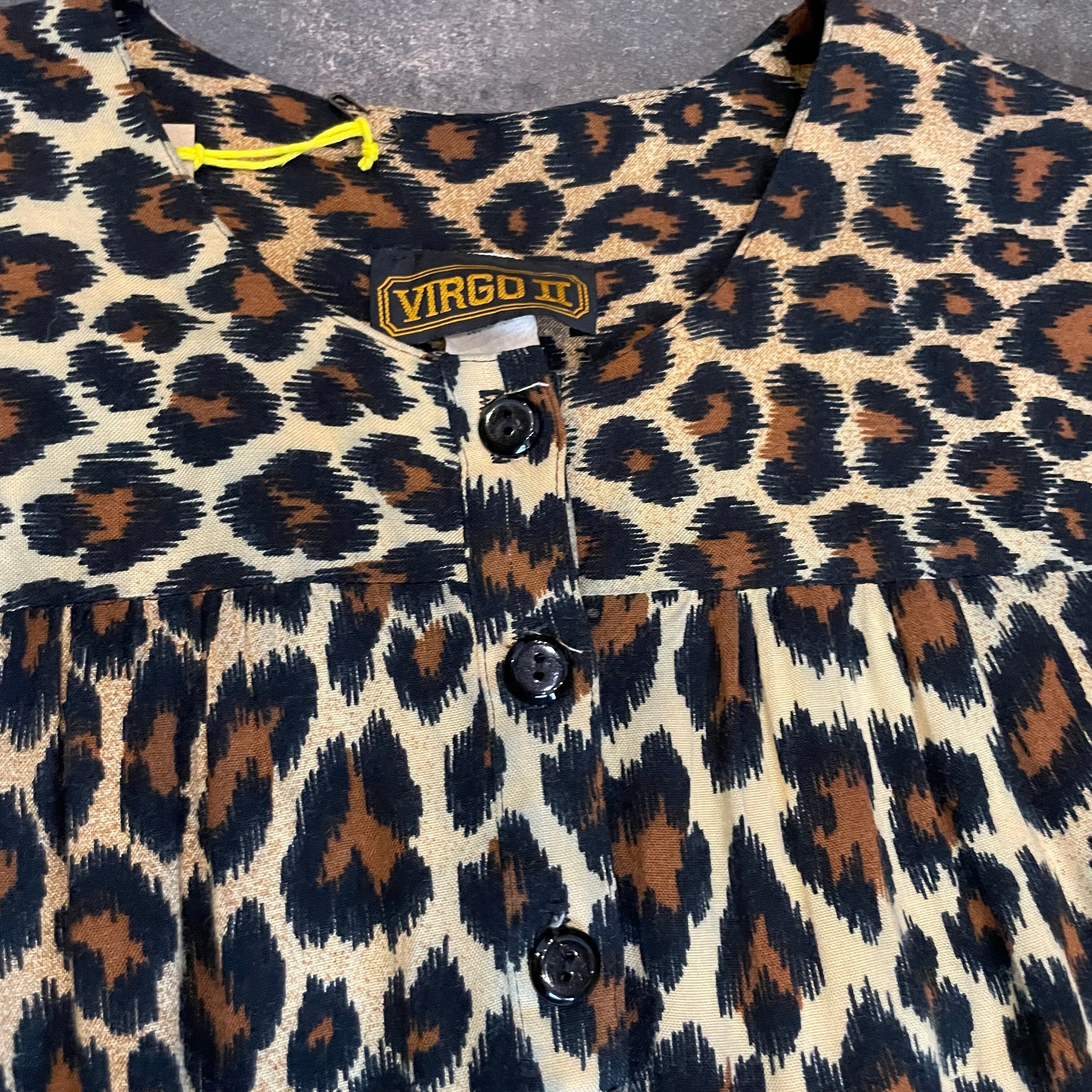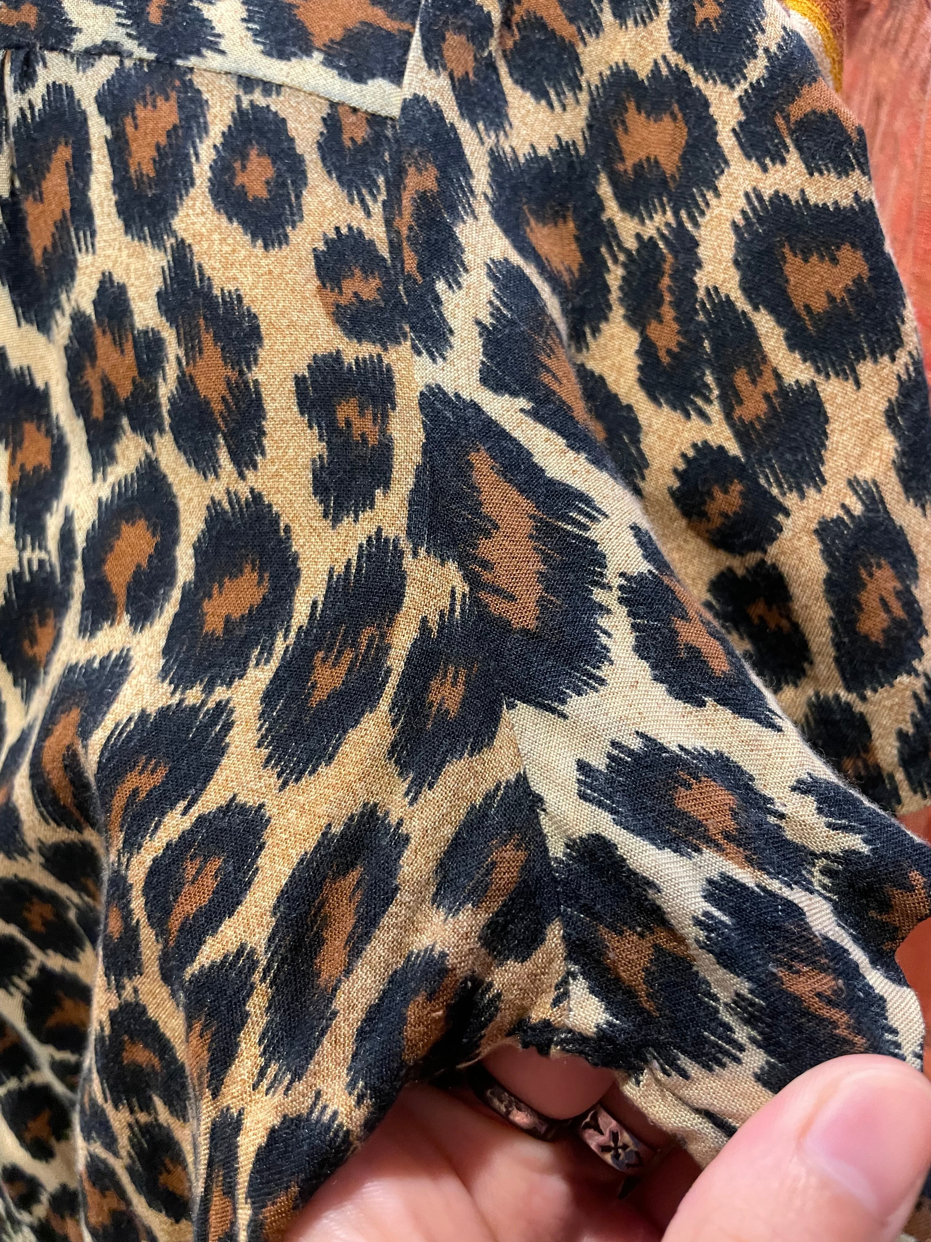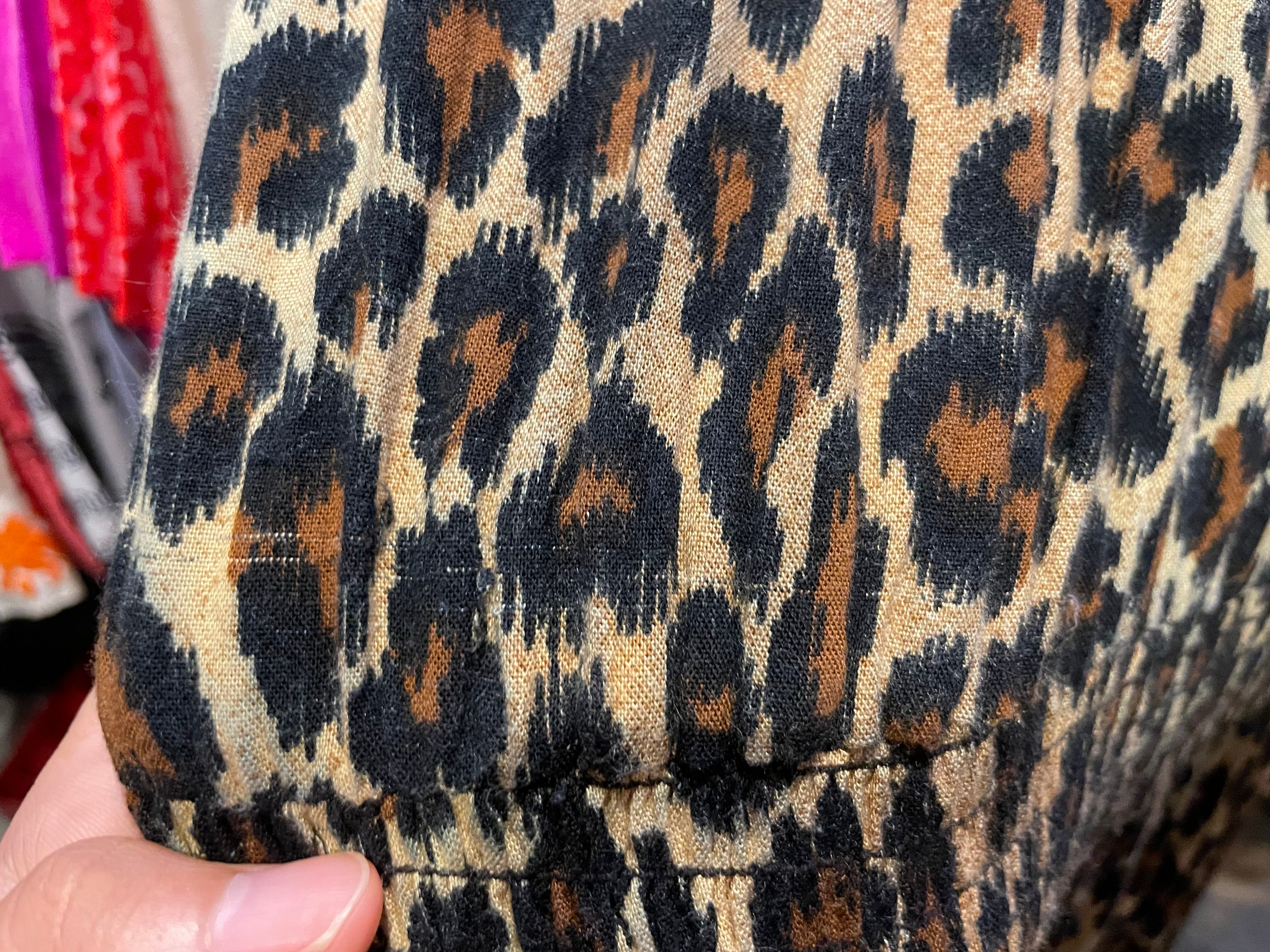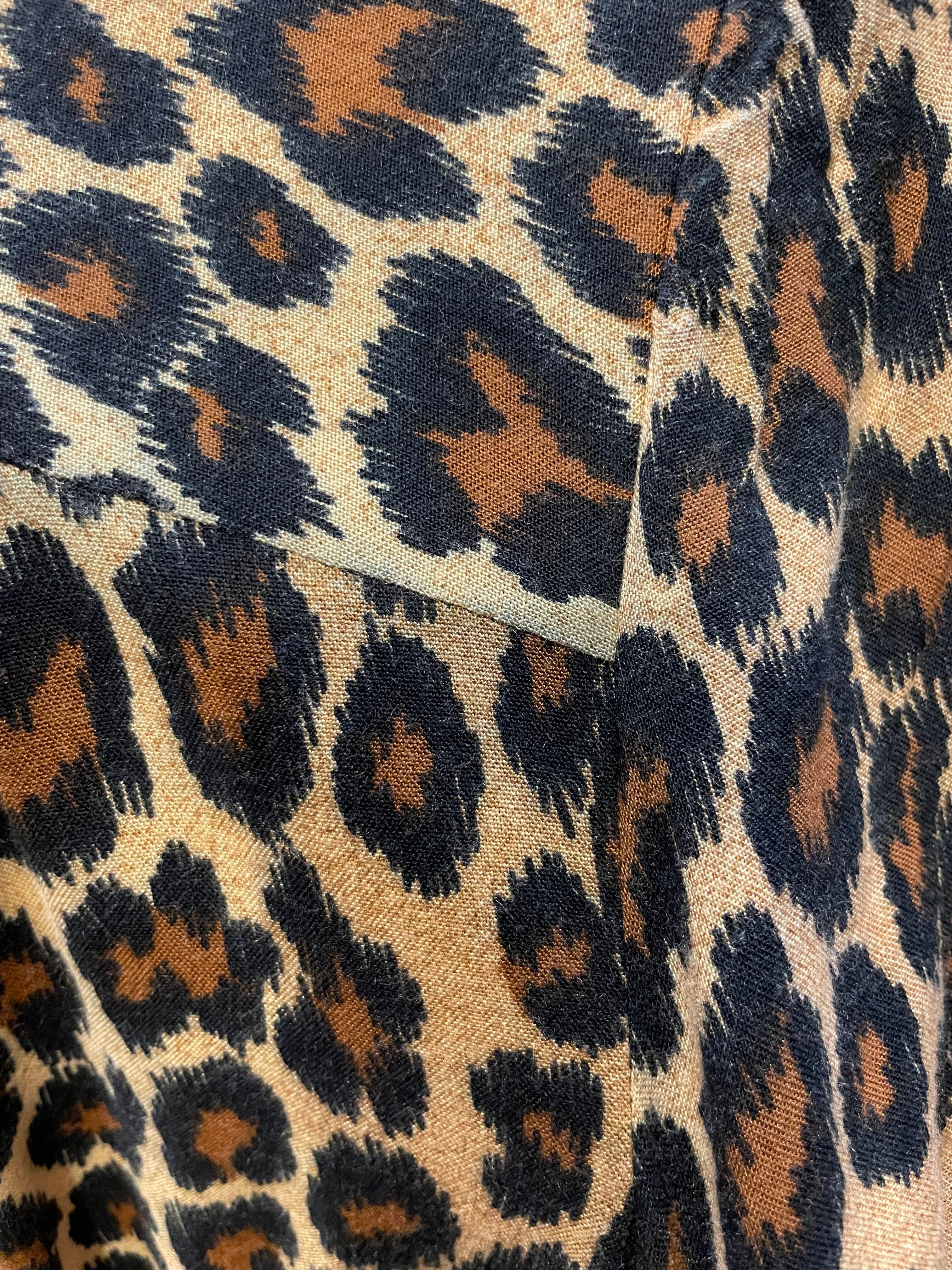 大きめのヒョウ柄がかわいいレーヨン素材のワンピースです。シルエットはシンプルでスッキリ着やすい雰囲気だと思います。