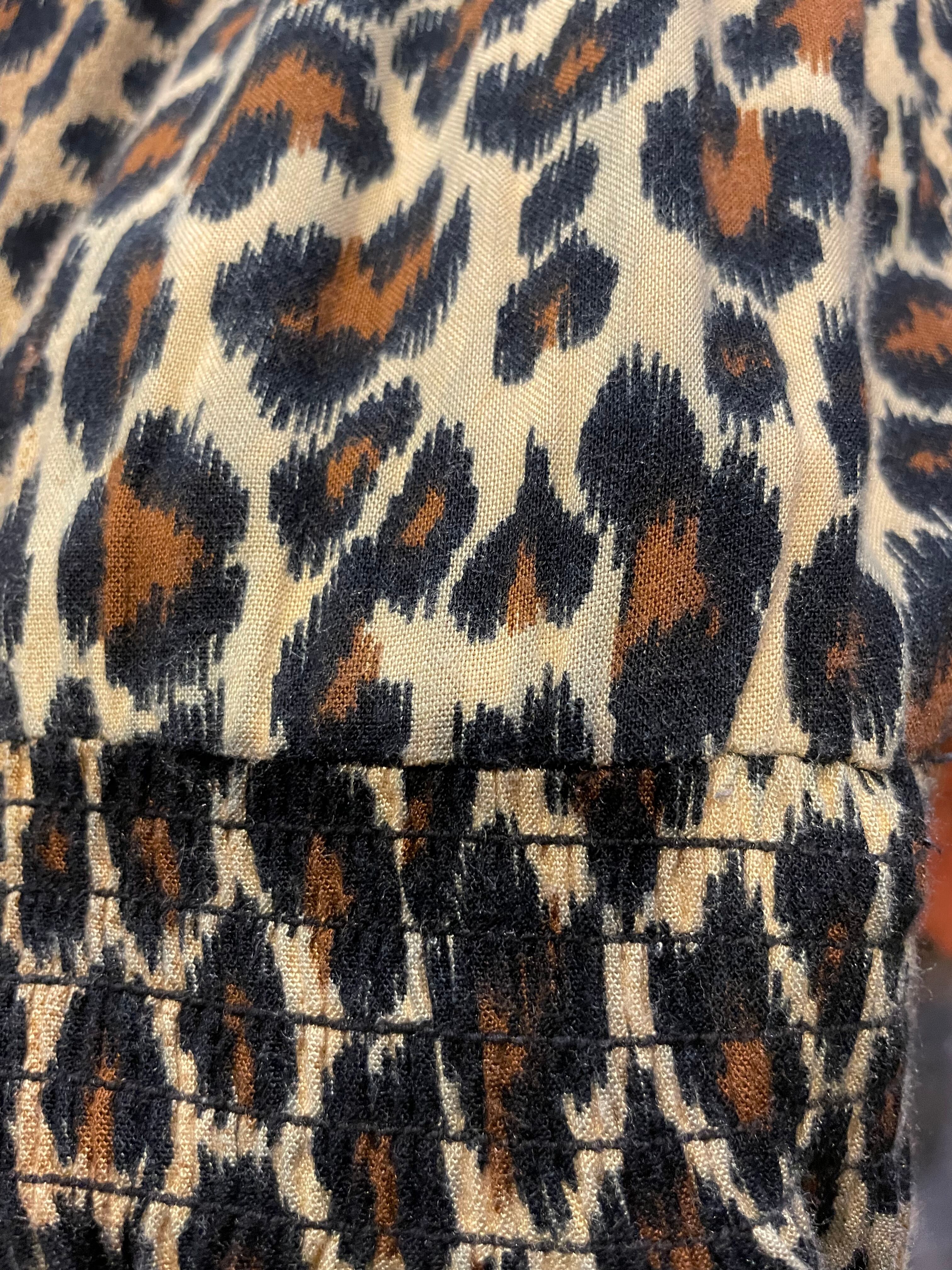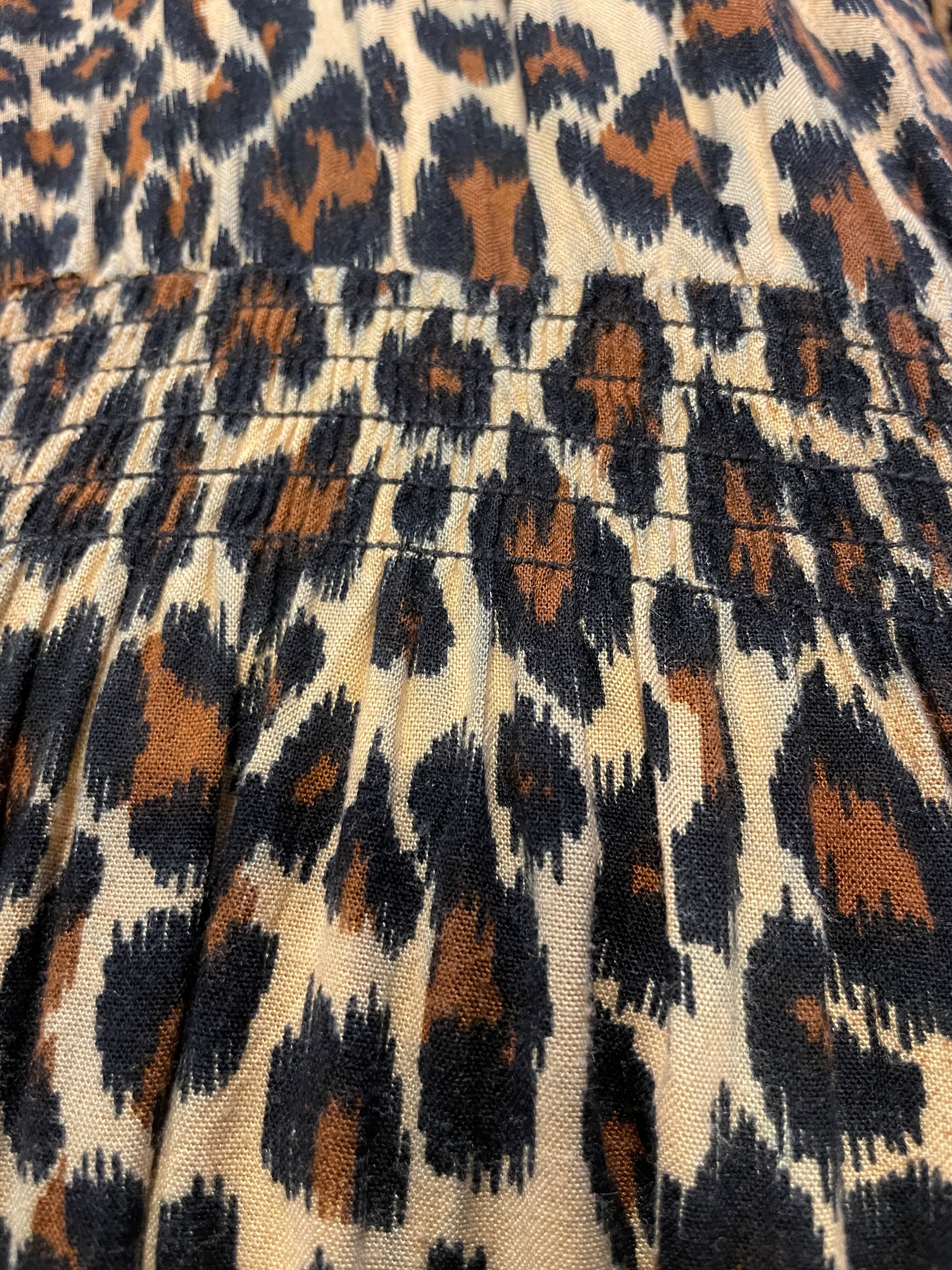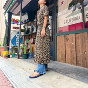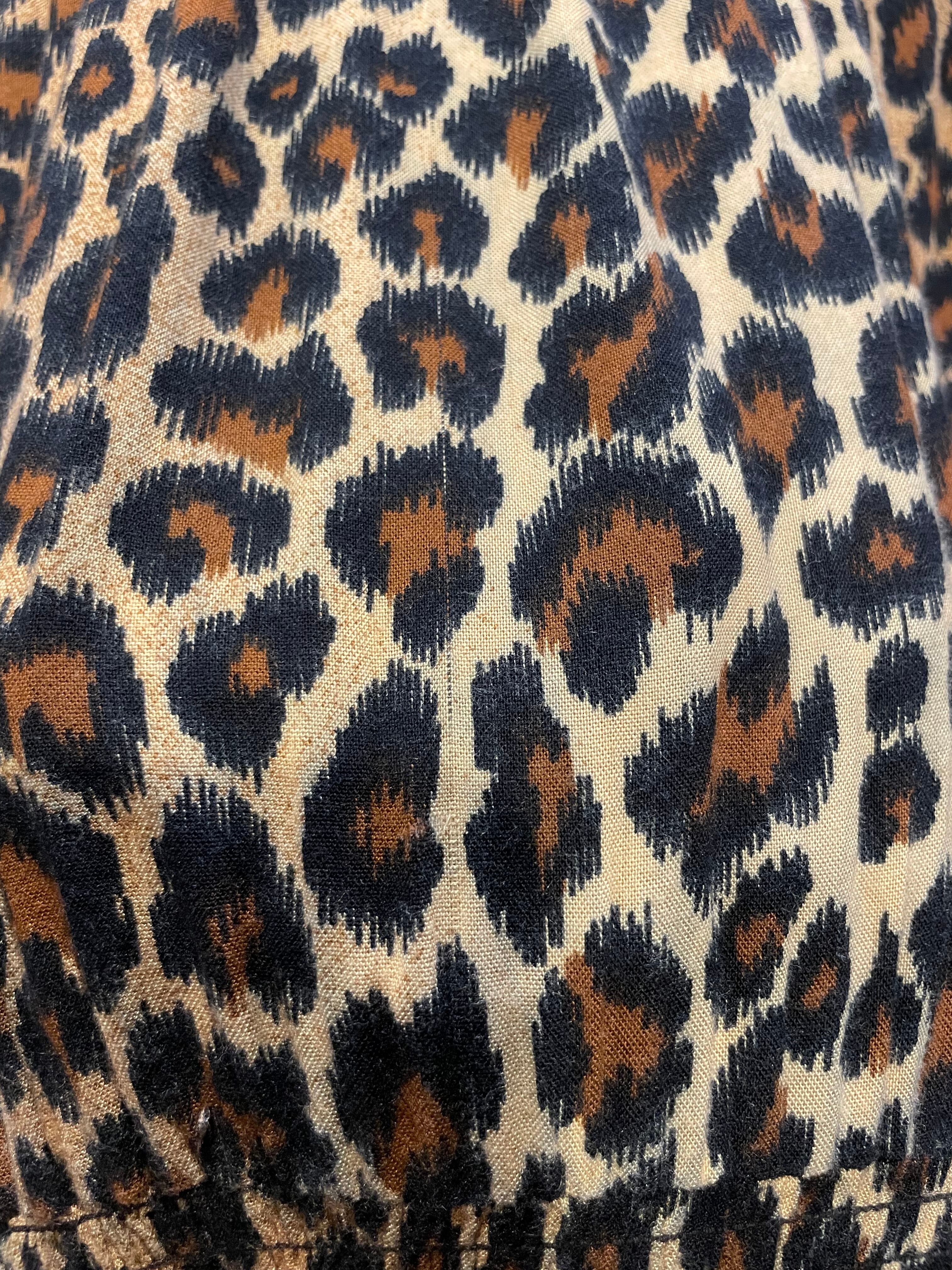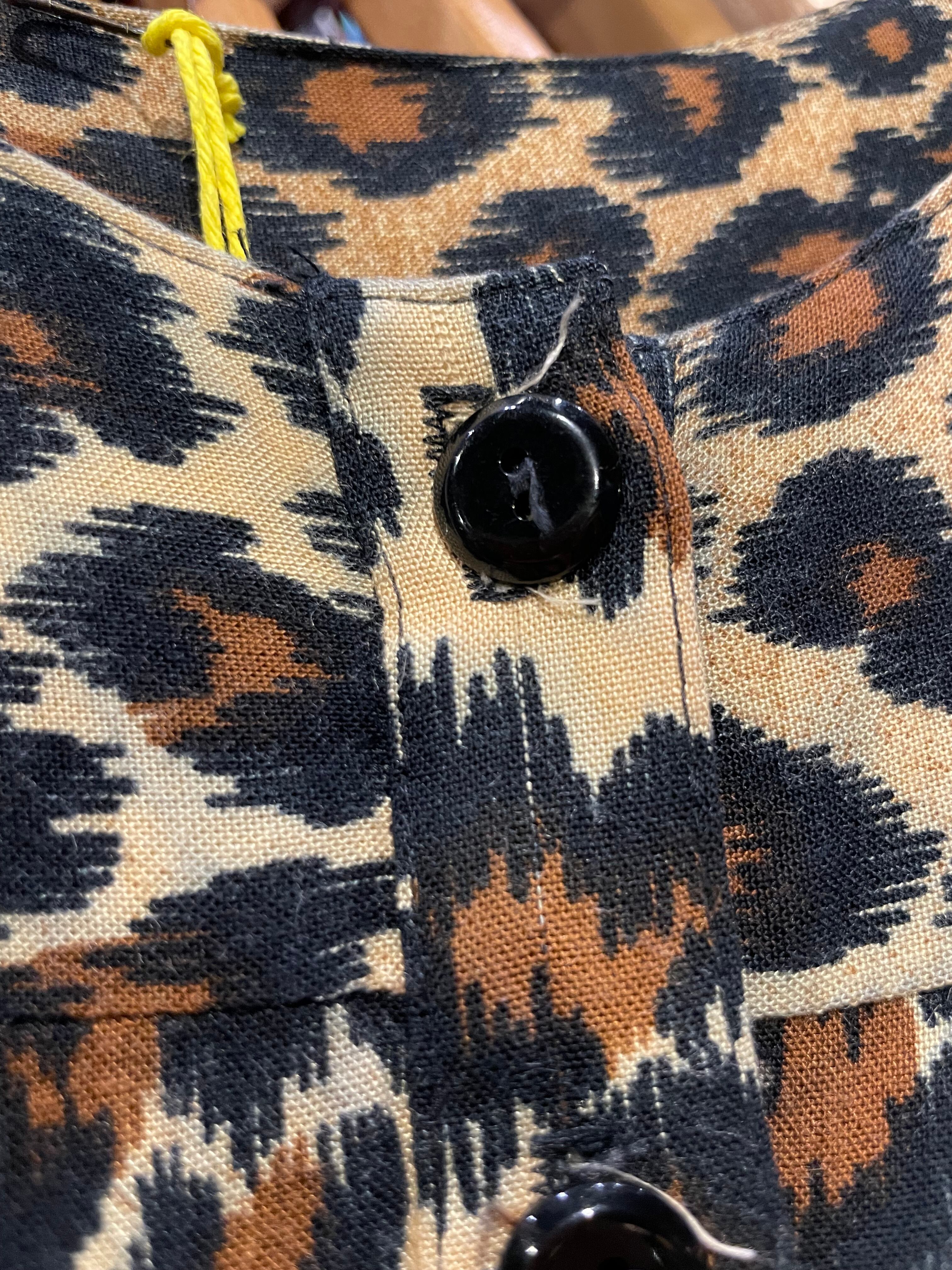 大きめのヒョウ柄がかわいいレーヨン素材のワンピースです。シルエットはシンプルでスッキリ着やすい雰囲気だと思います。