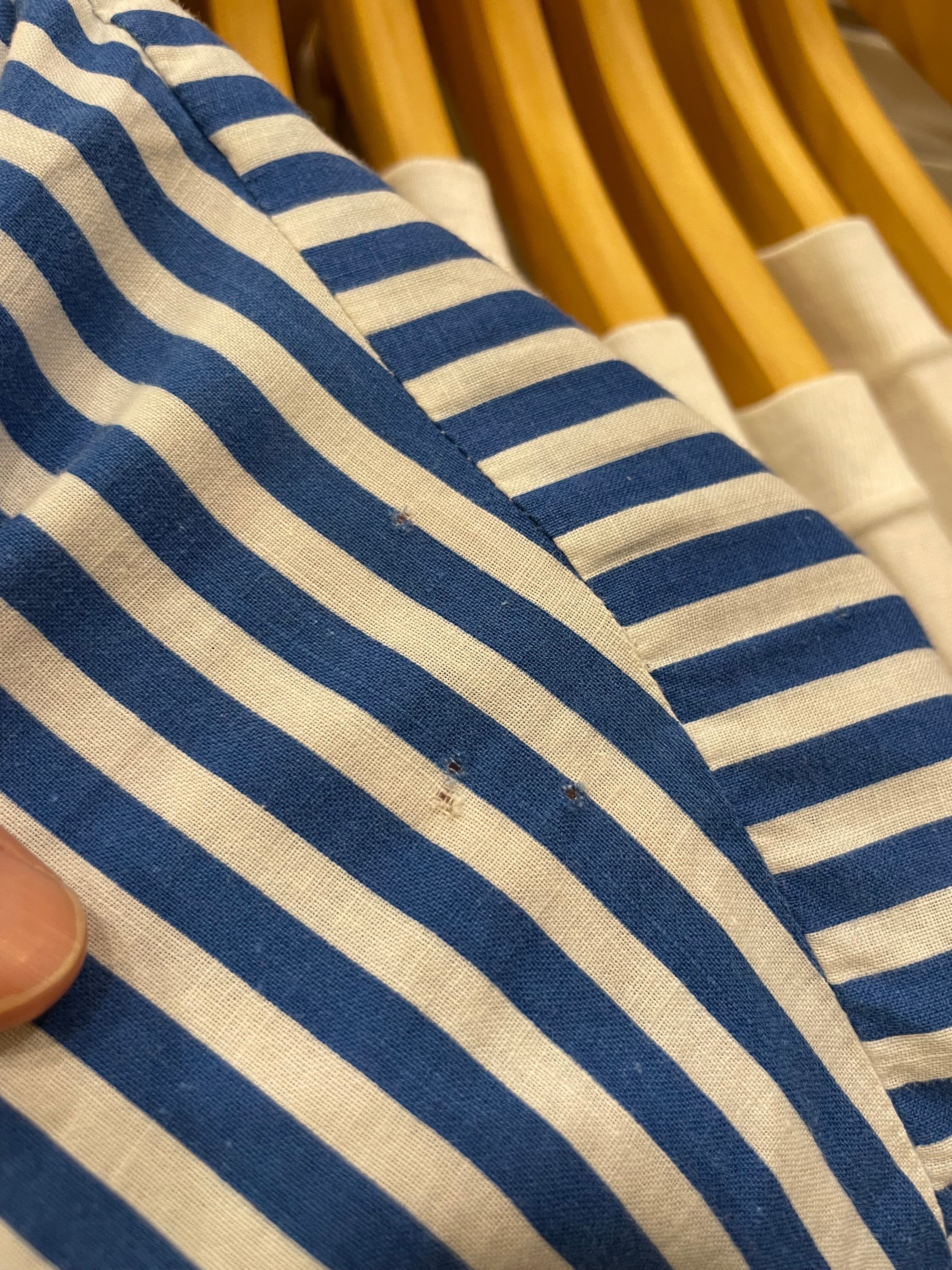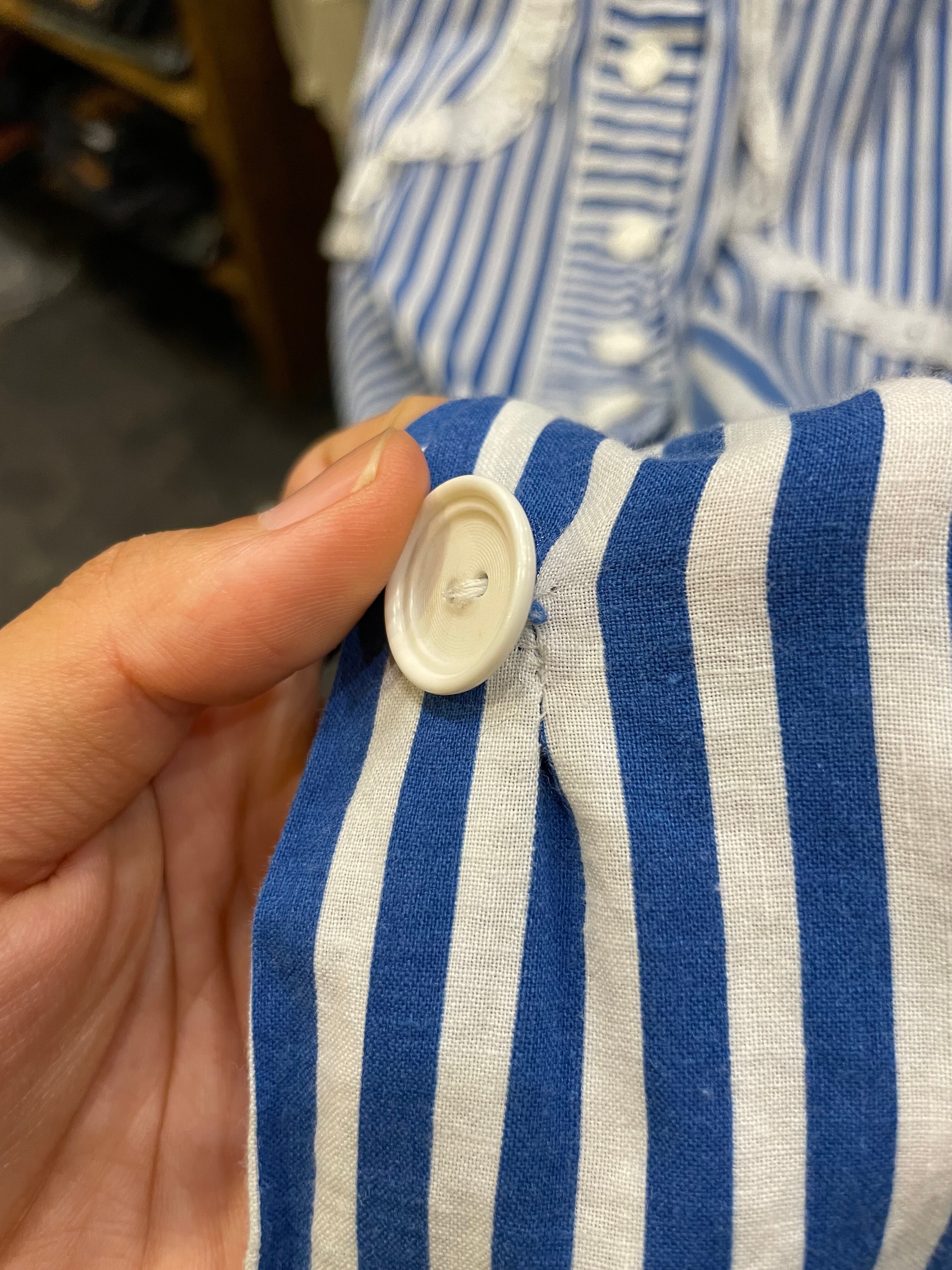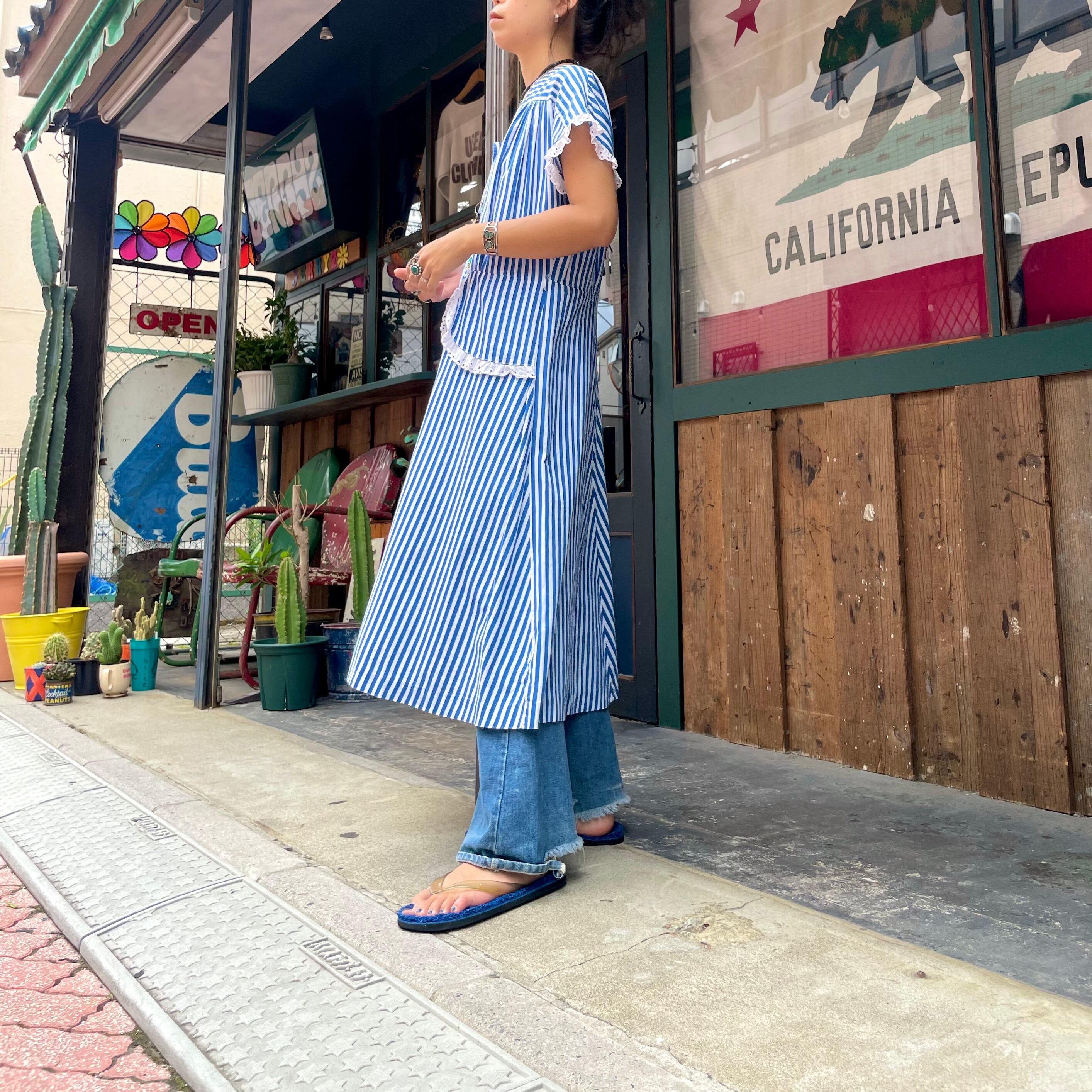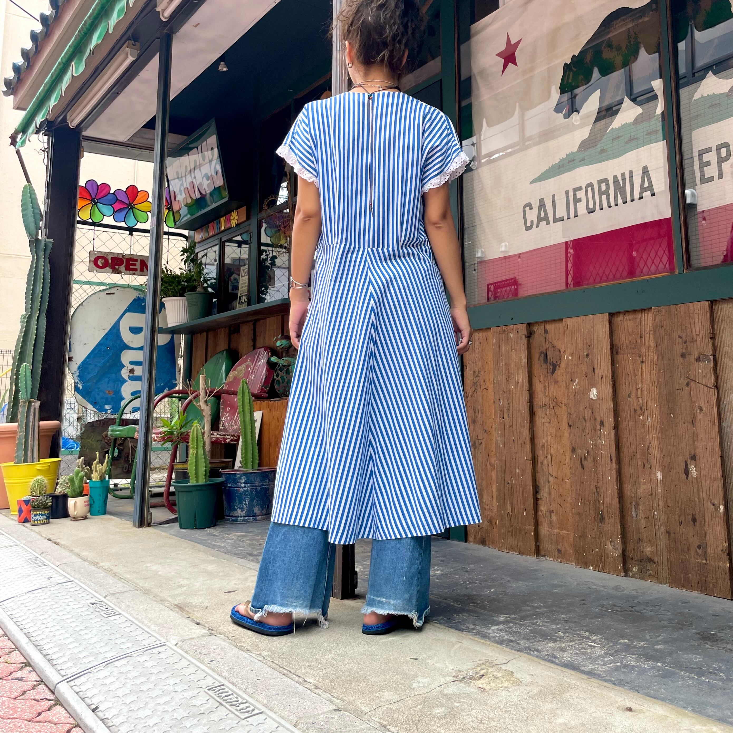 青白のさわやかなストライプはカルピスのようですし、とても印象的で夏にぴったりな一枚です。