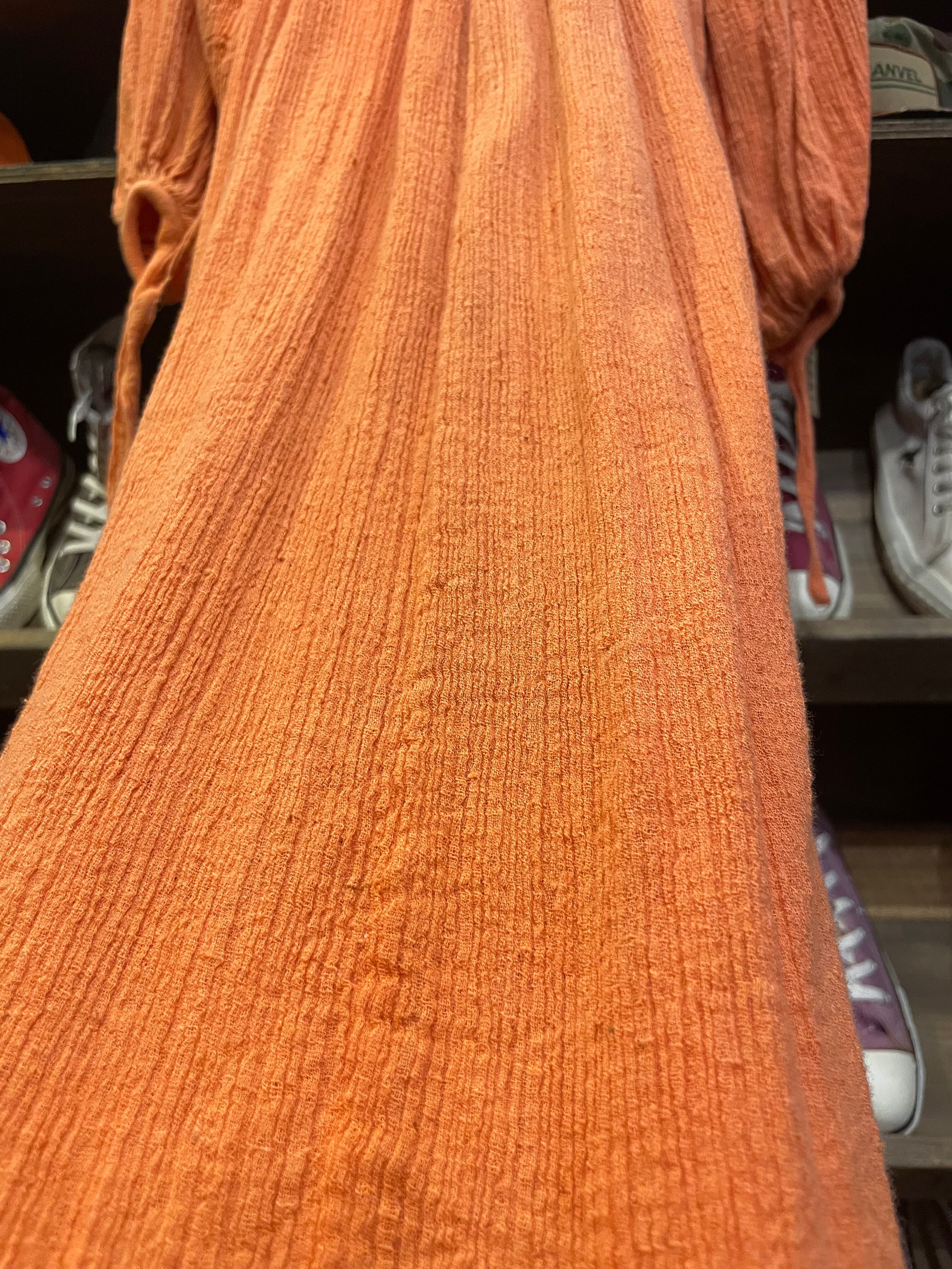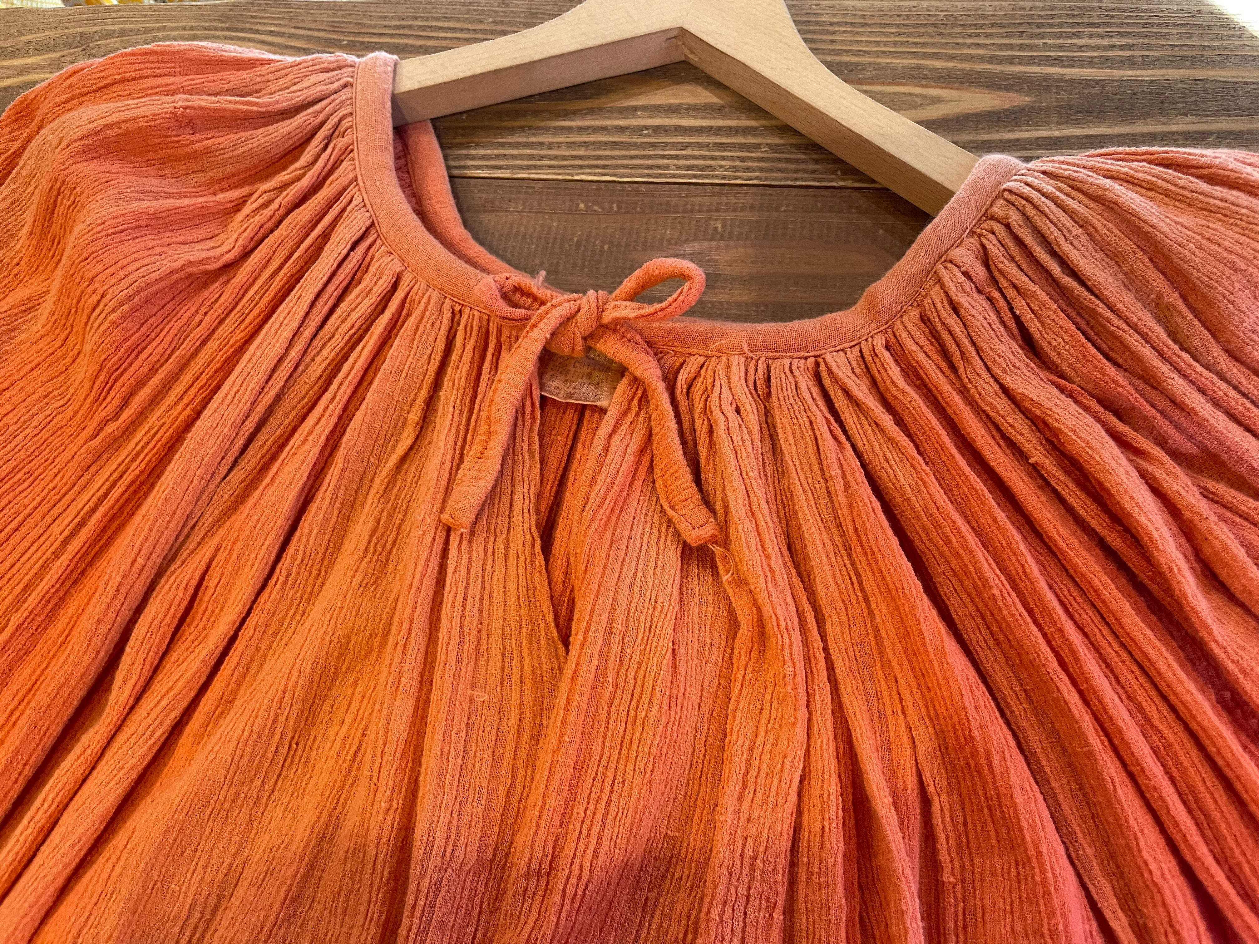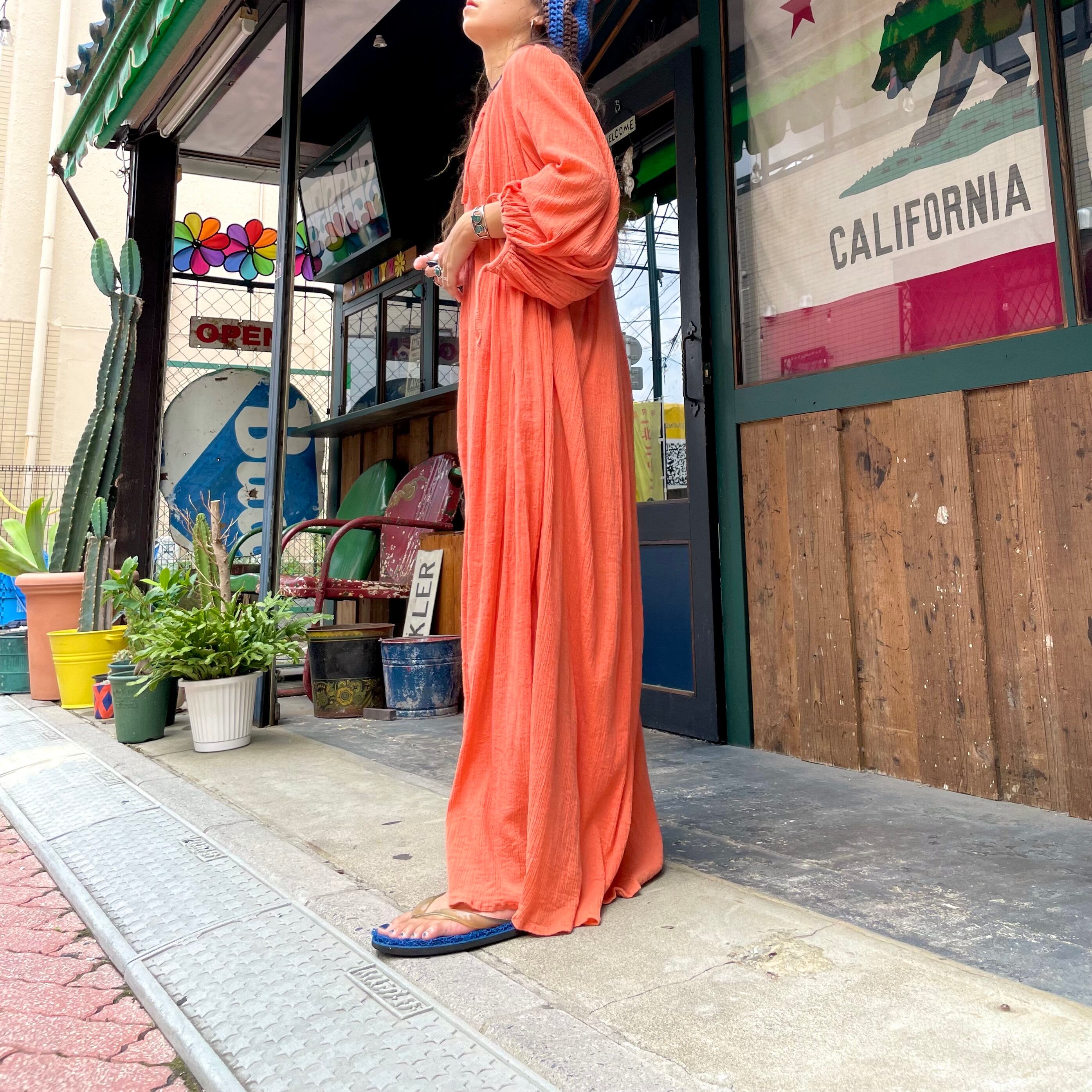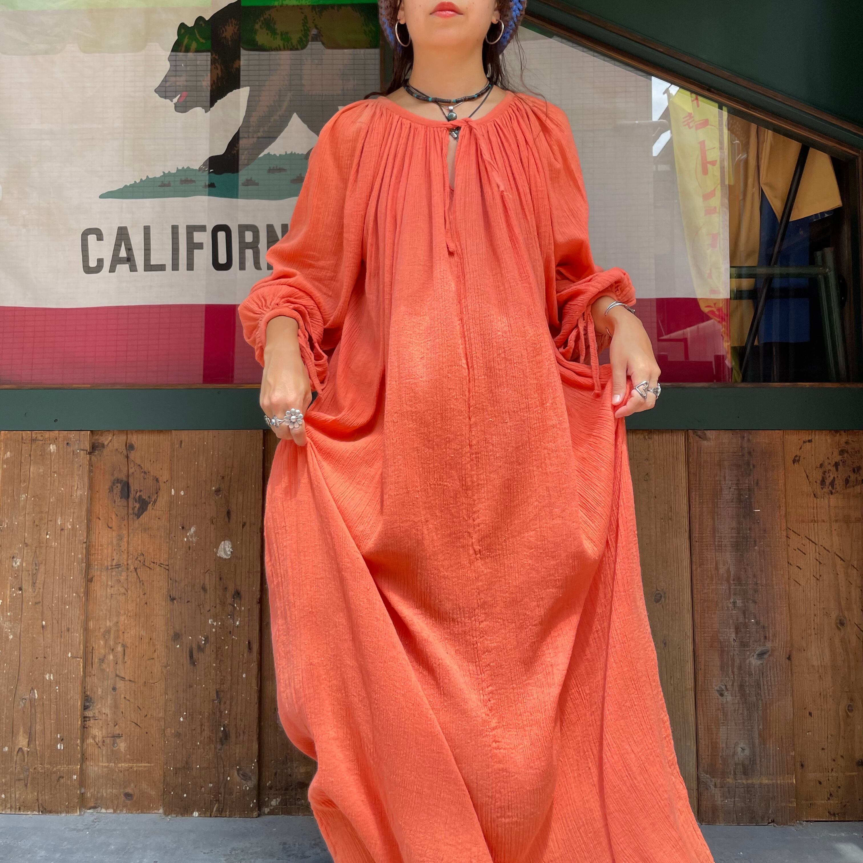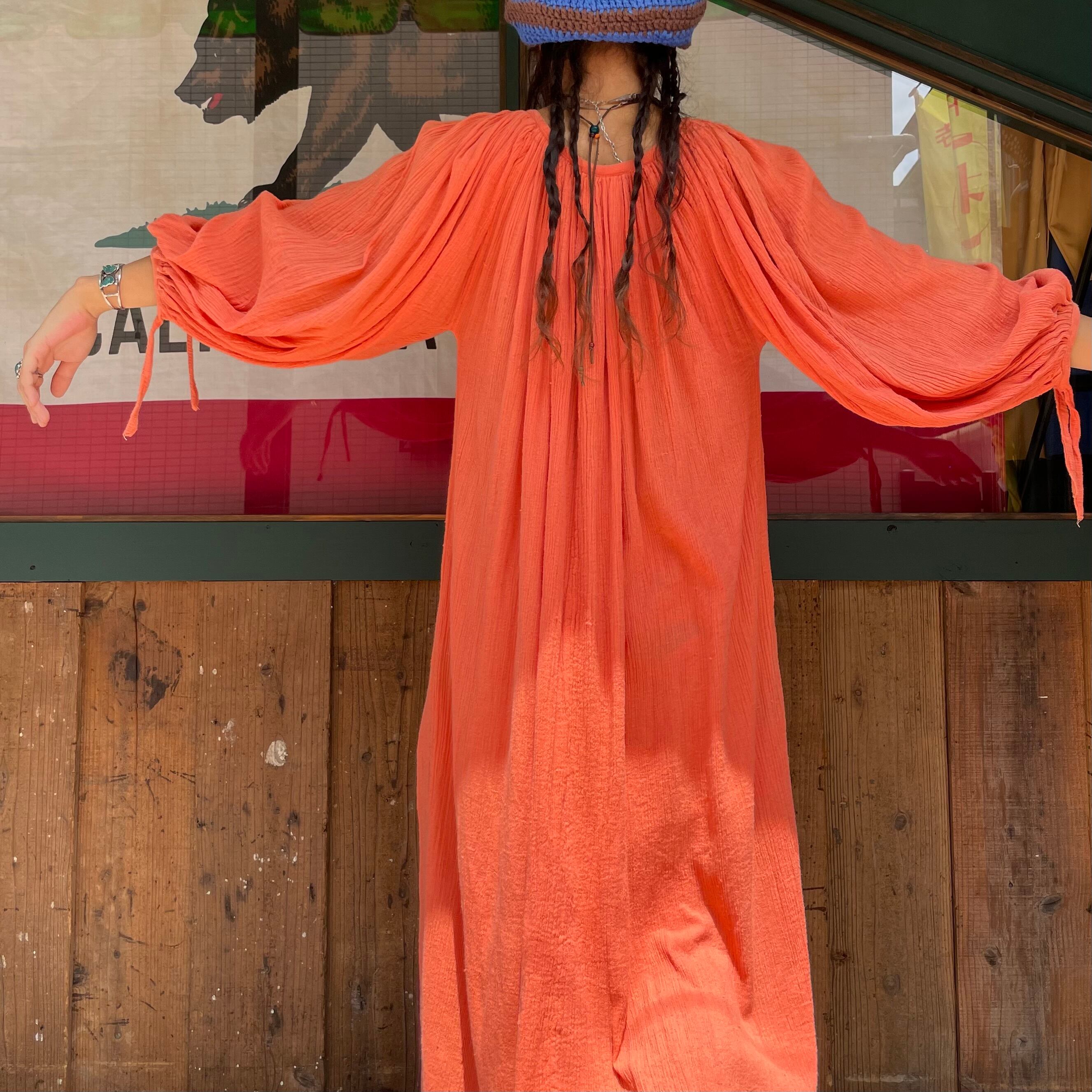 70's pakistan cotton volume sleeve dress