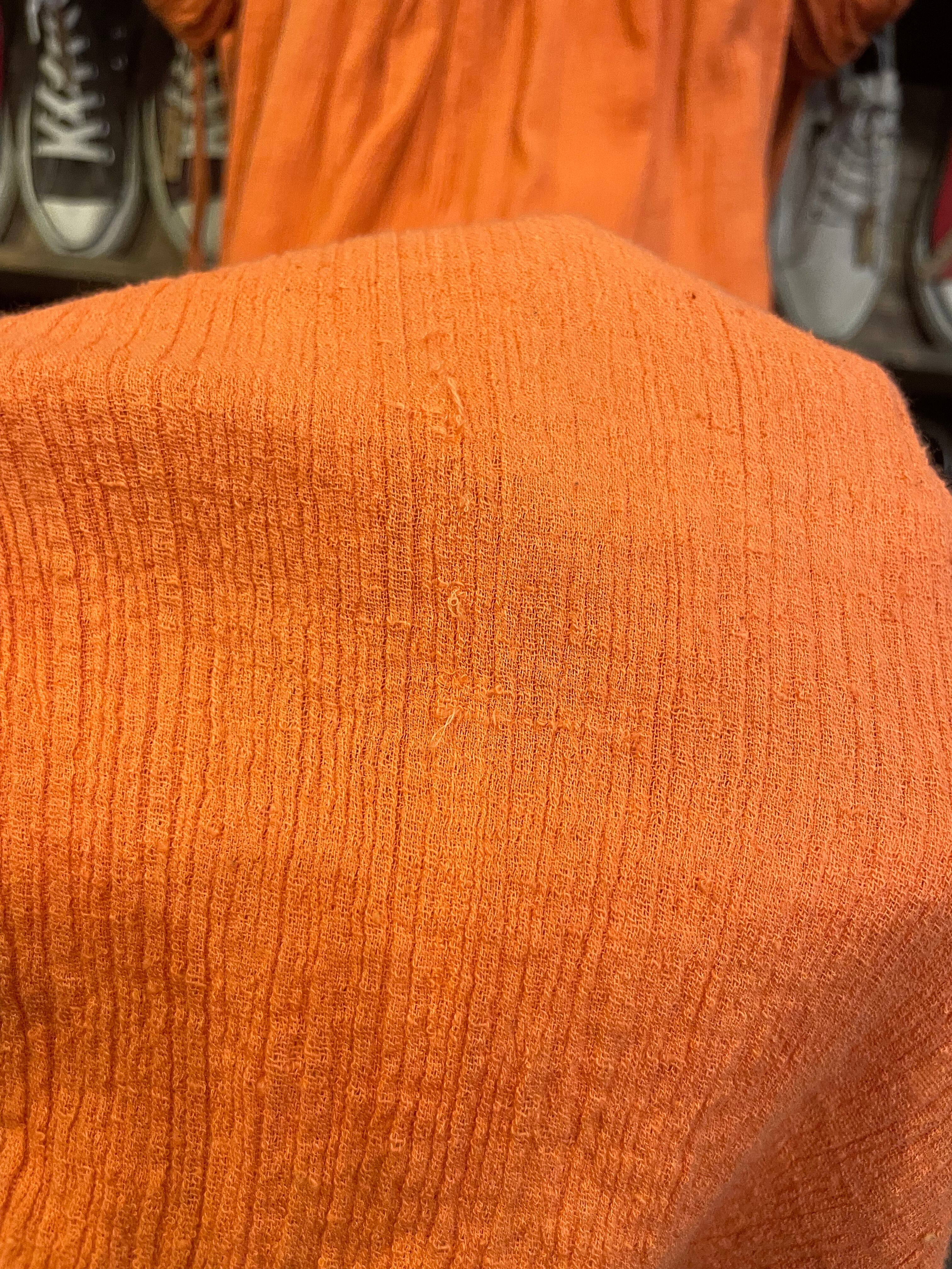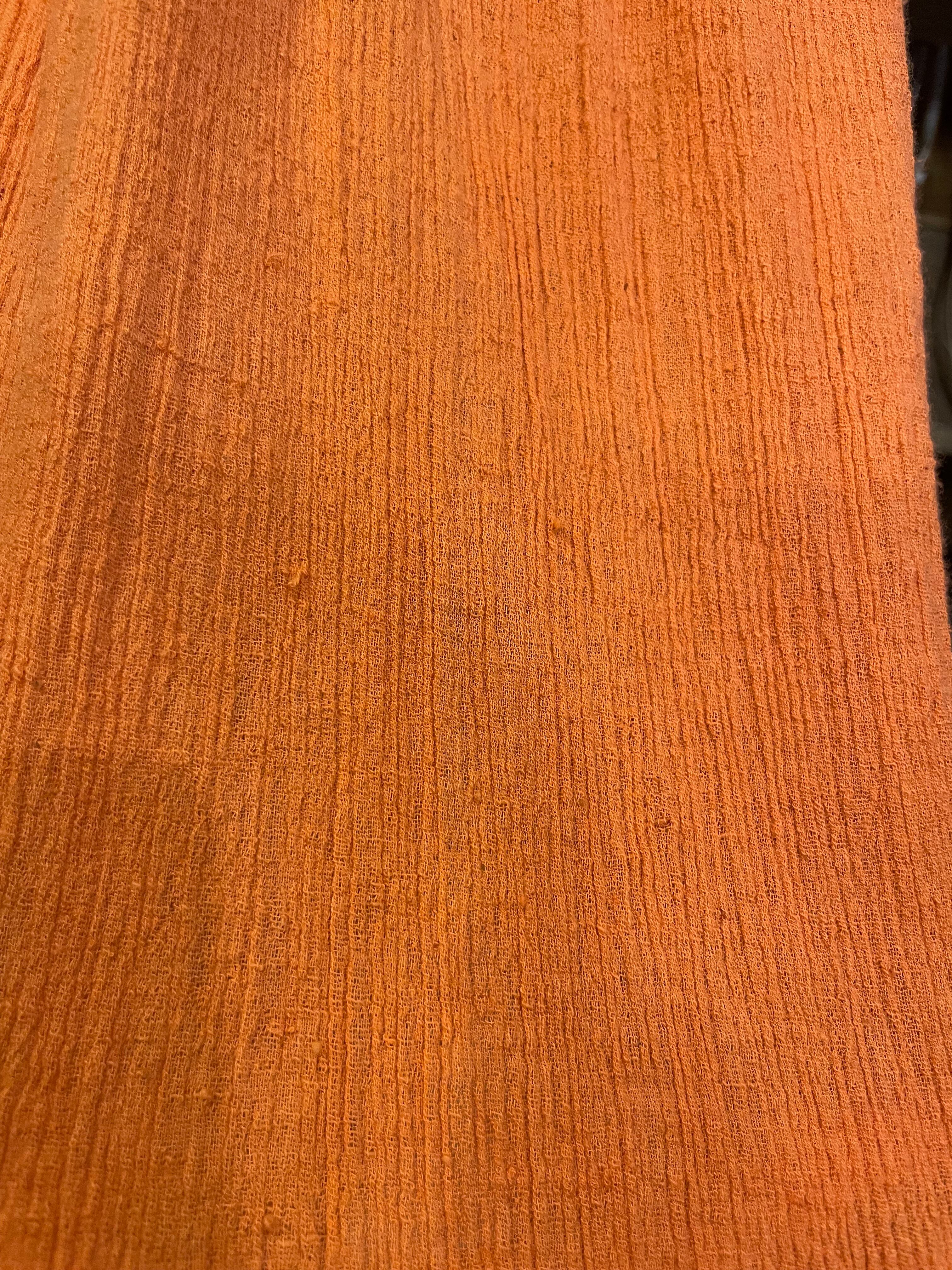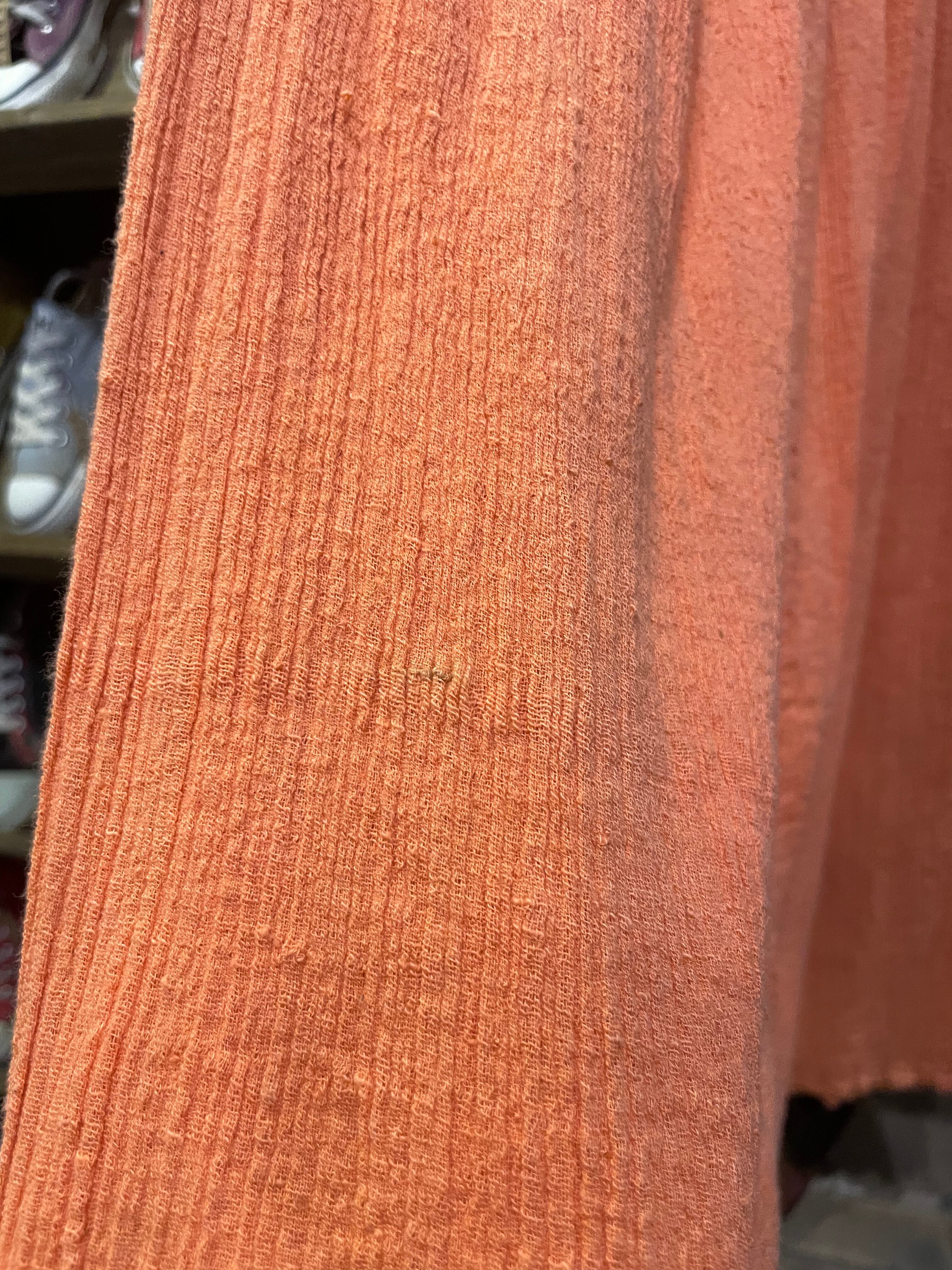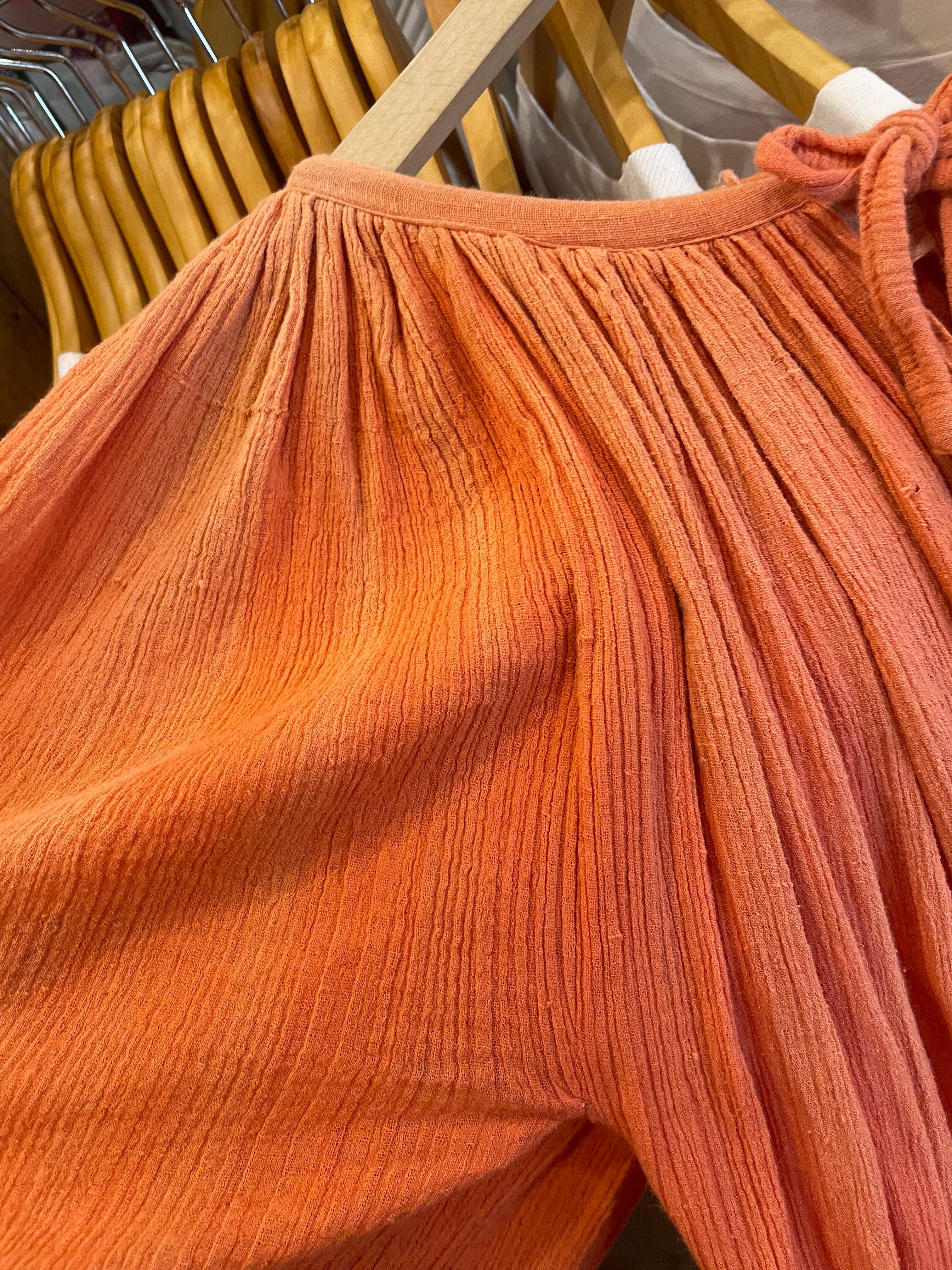 パキスタン製のざらっとした薄手のコットンガーゼをたっぷり贅沢に使用されており、風通しが良く肌触りも気持ち良いですし大人で雰囲気のある1着だと思います。