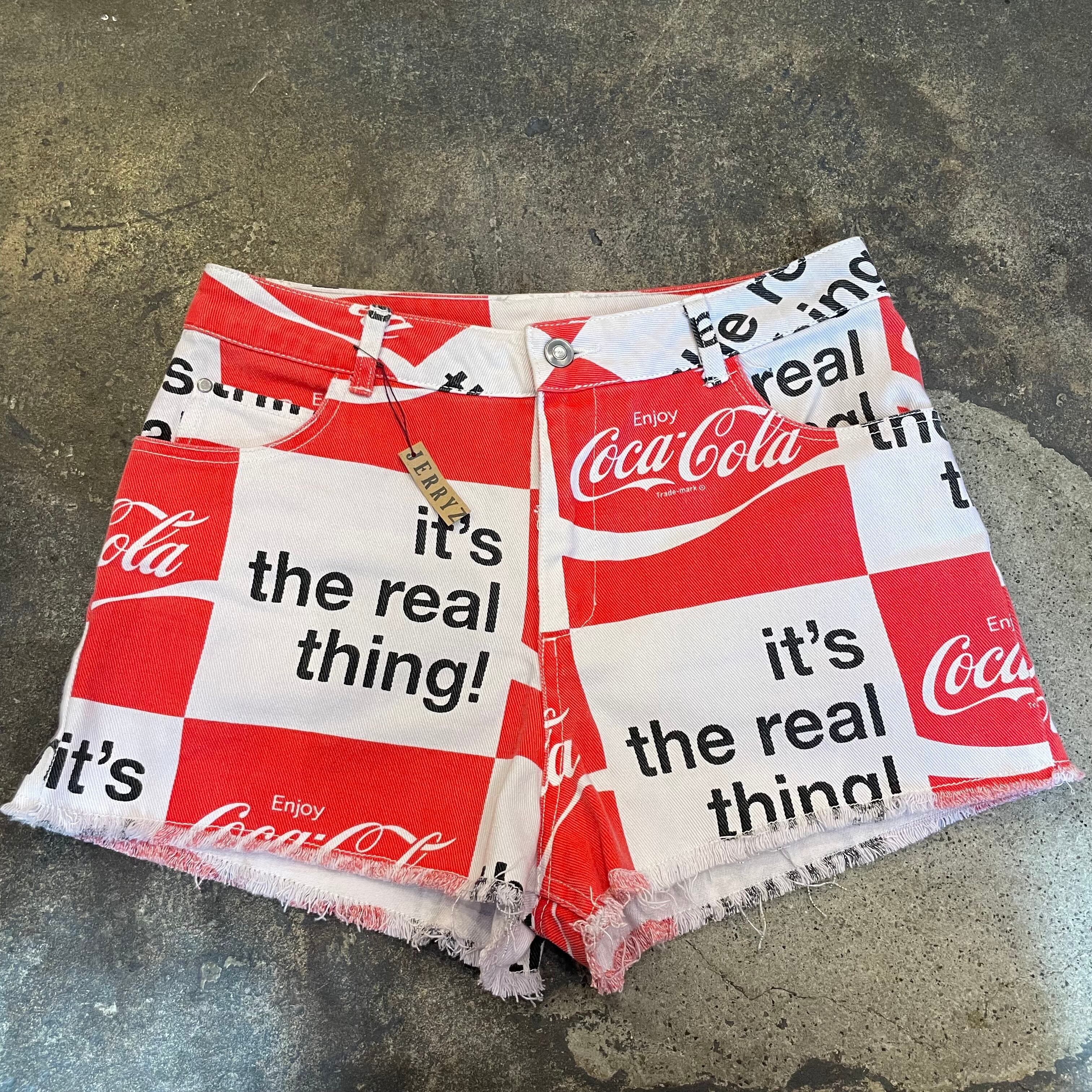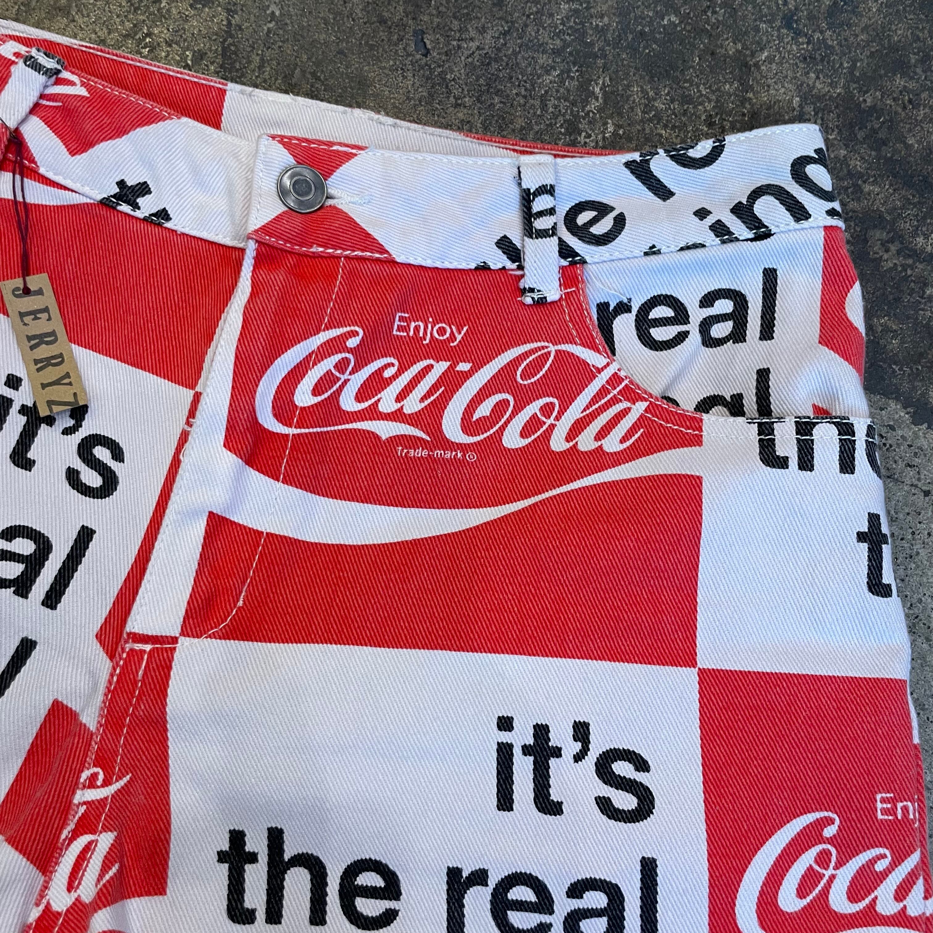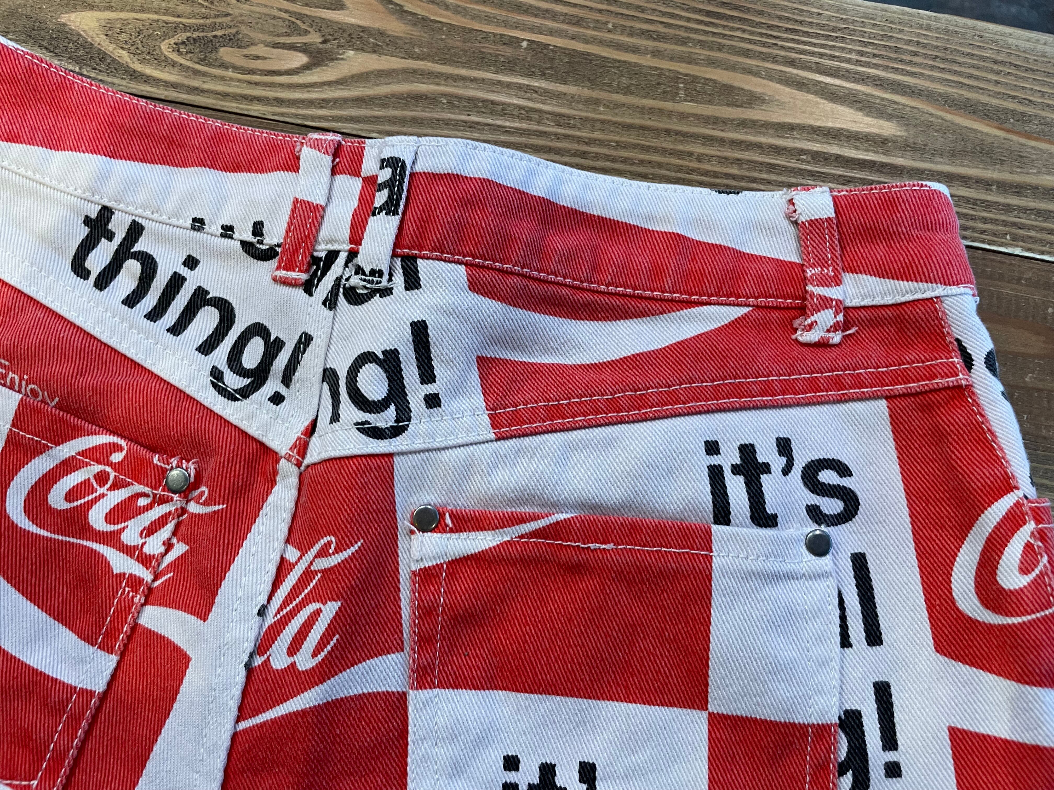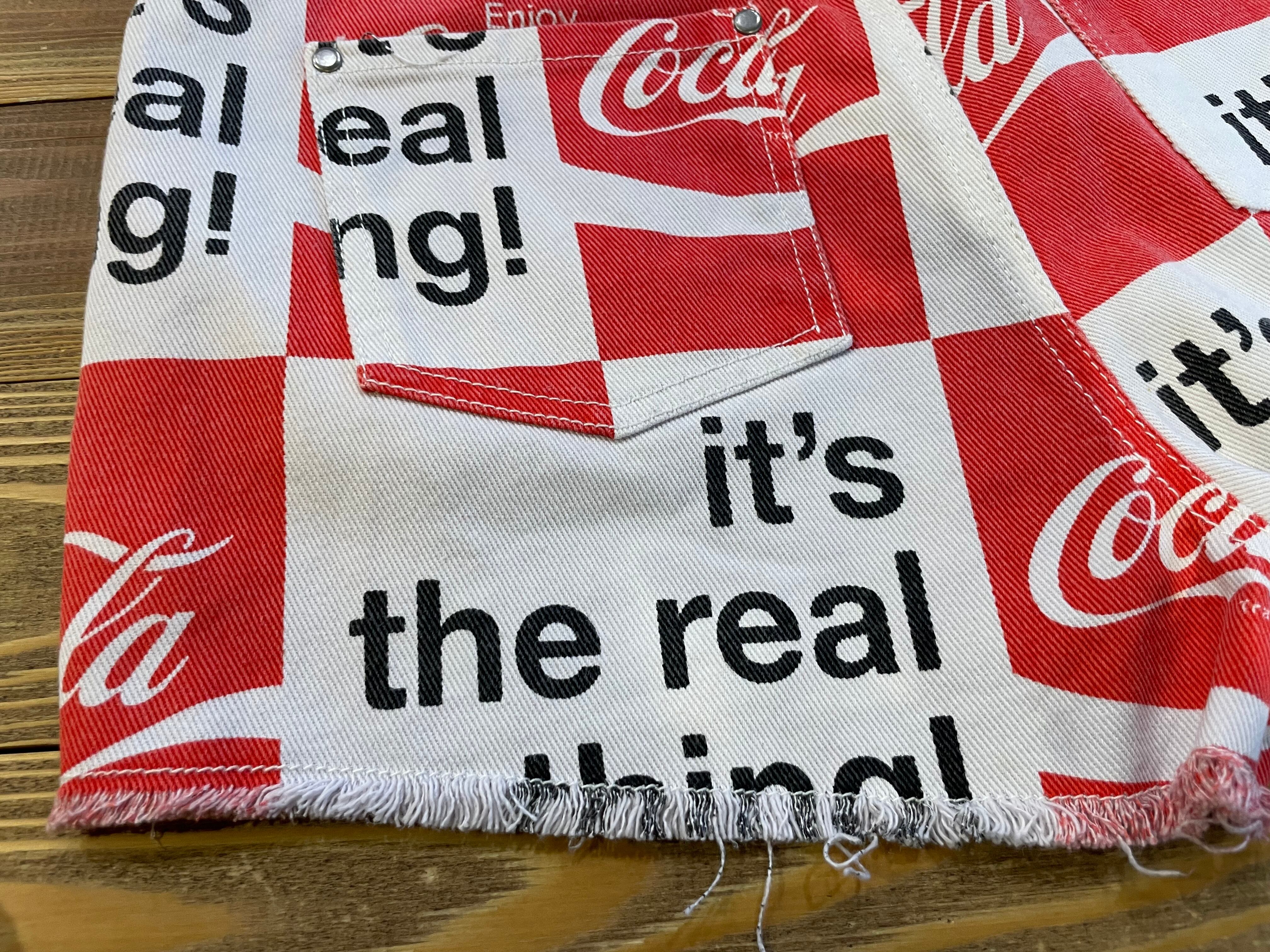コカコーラのロゴとブロックチェック柄かわいいショートパンツです。