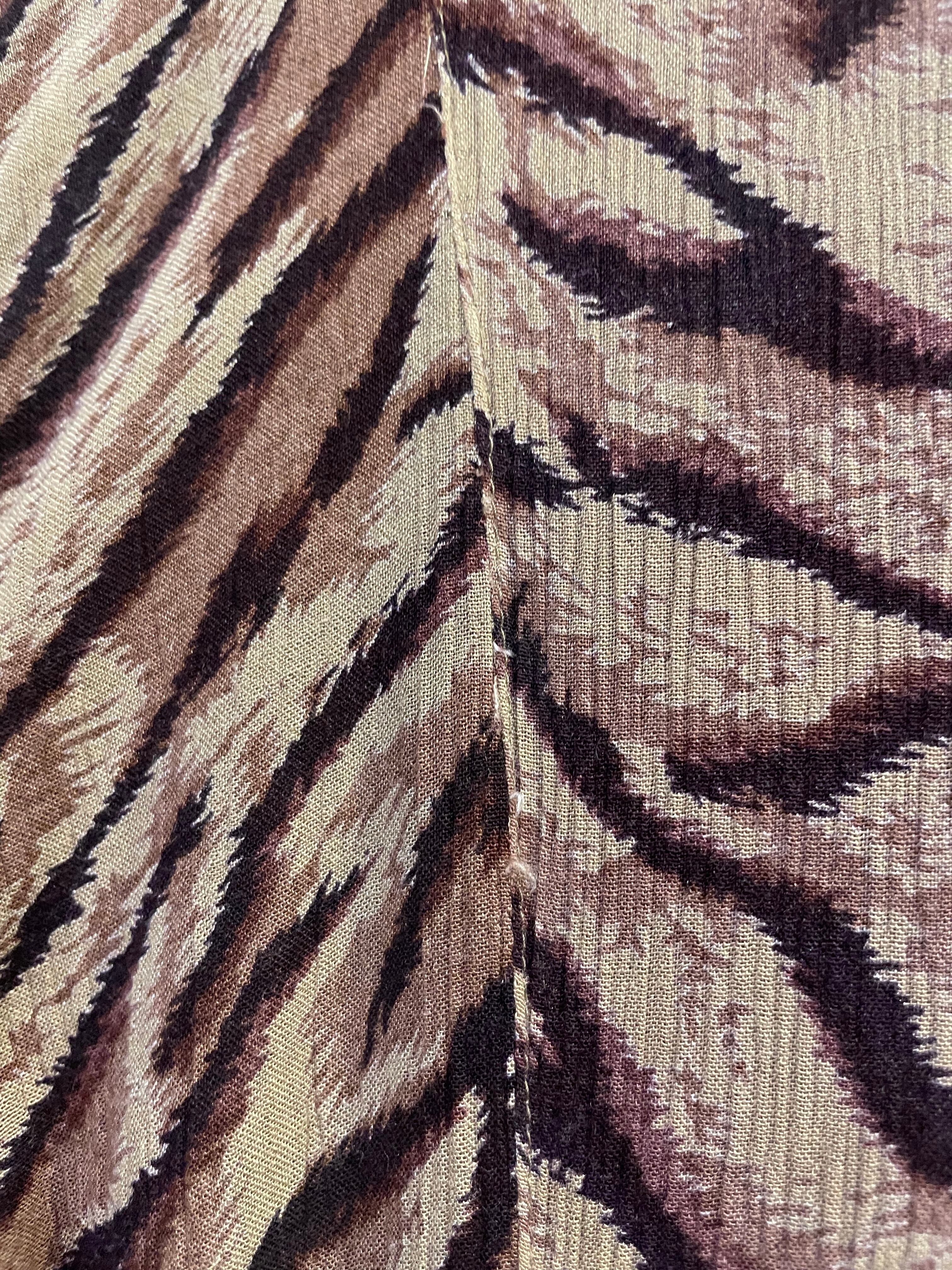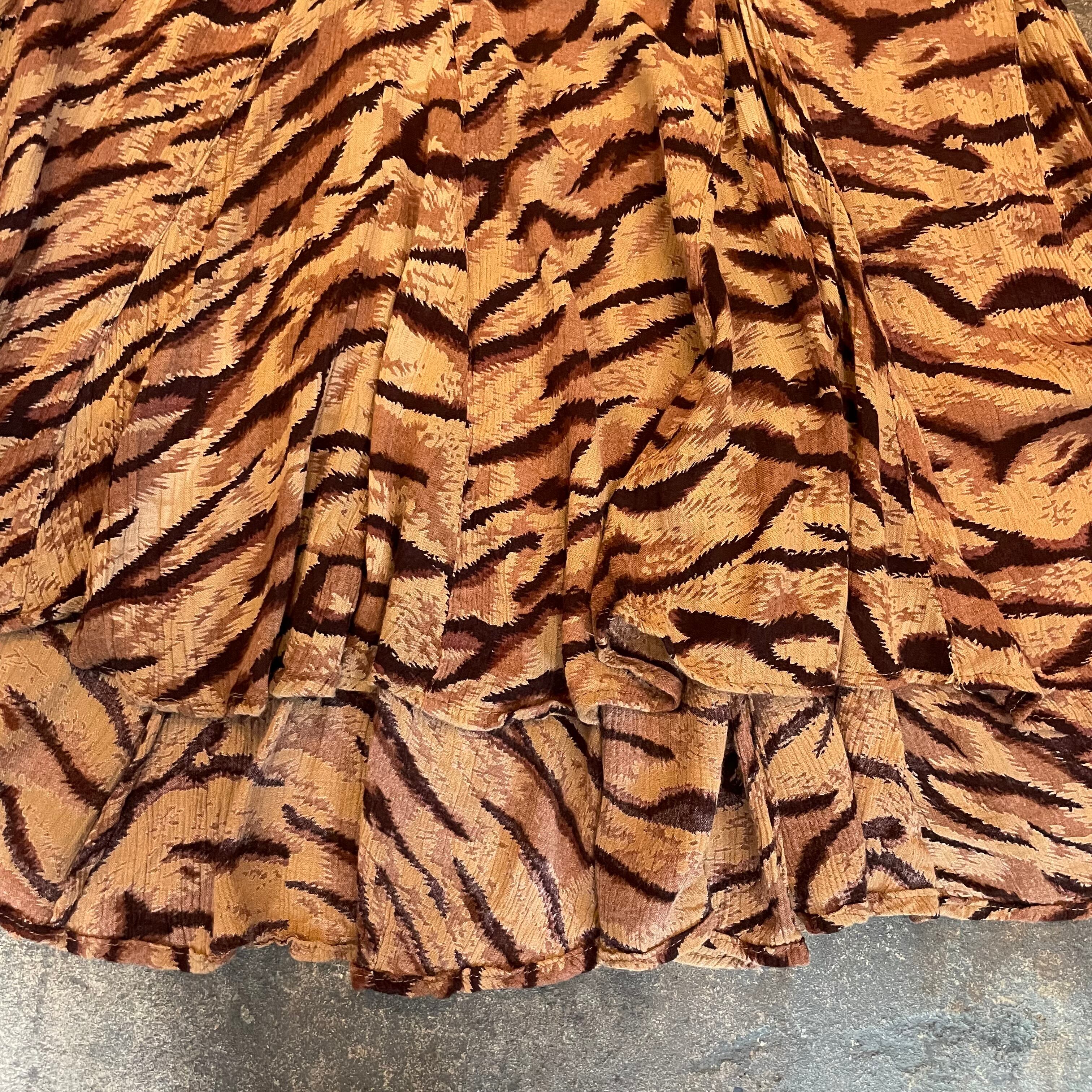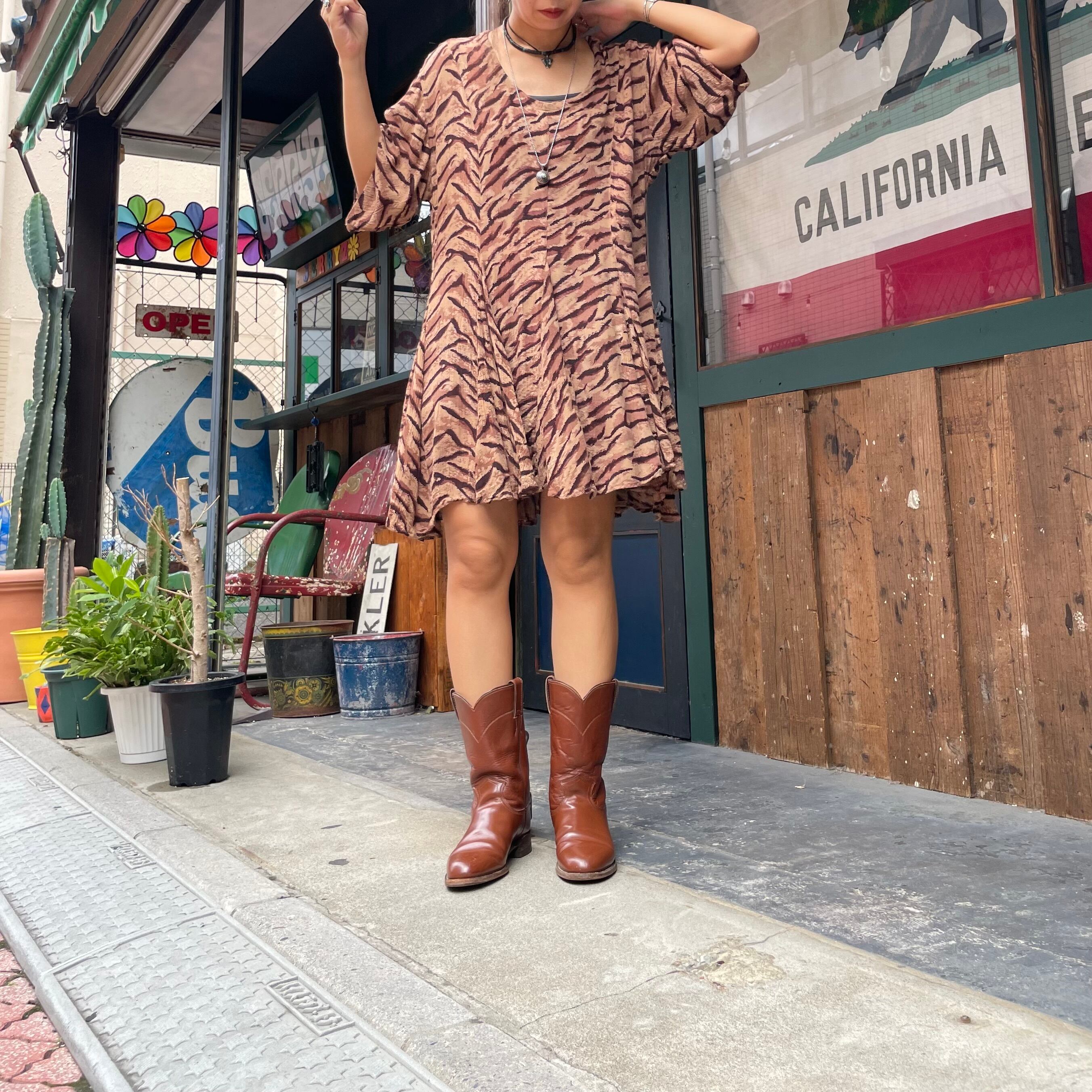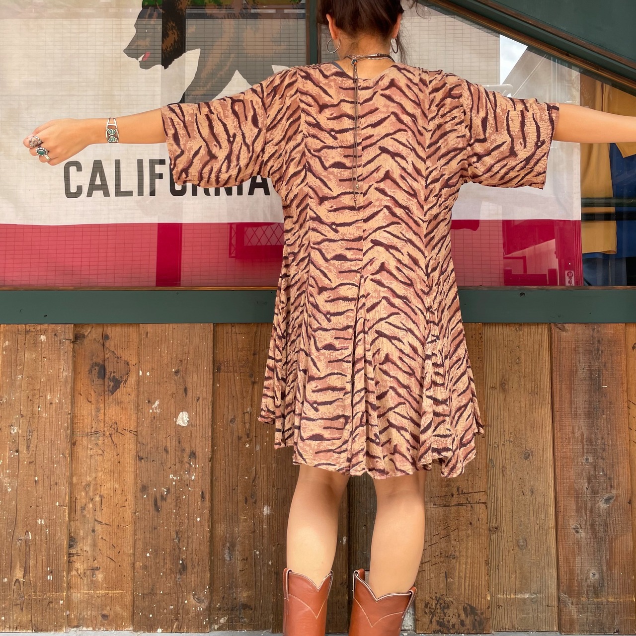 ゼブラなのかトラなのか、アニマル柄がかわいいレーヨン素材のワンピースです。