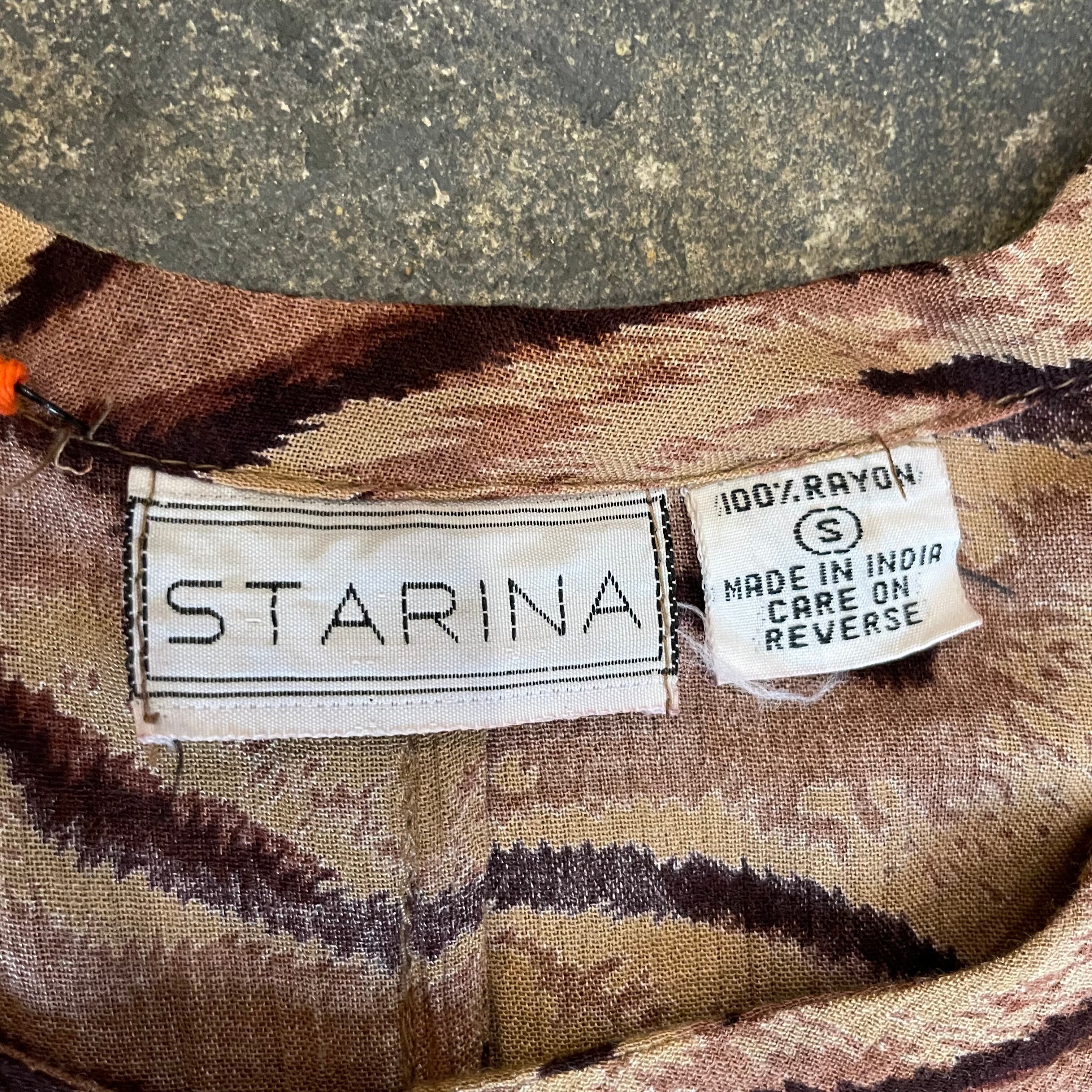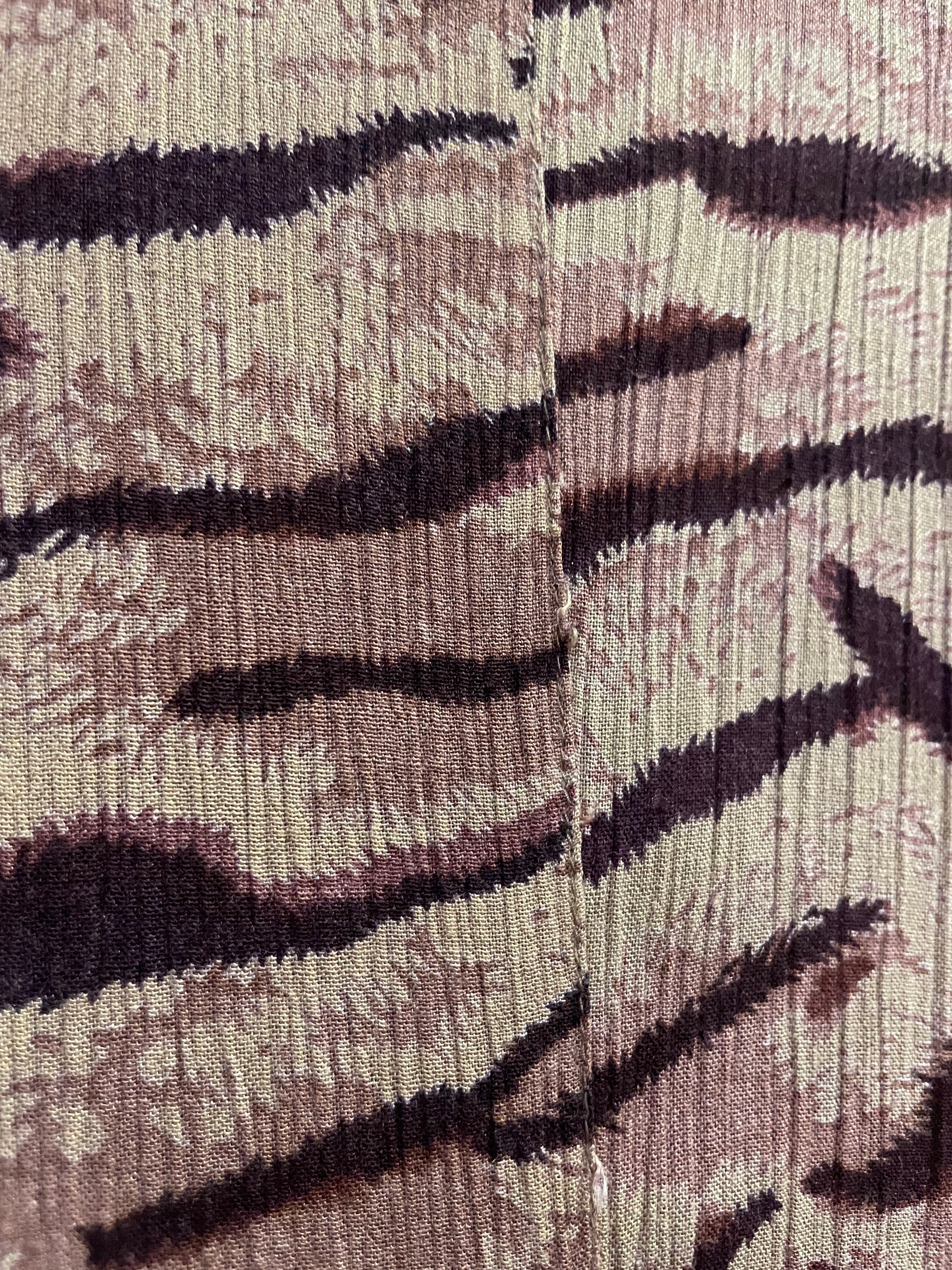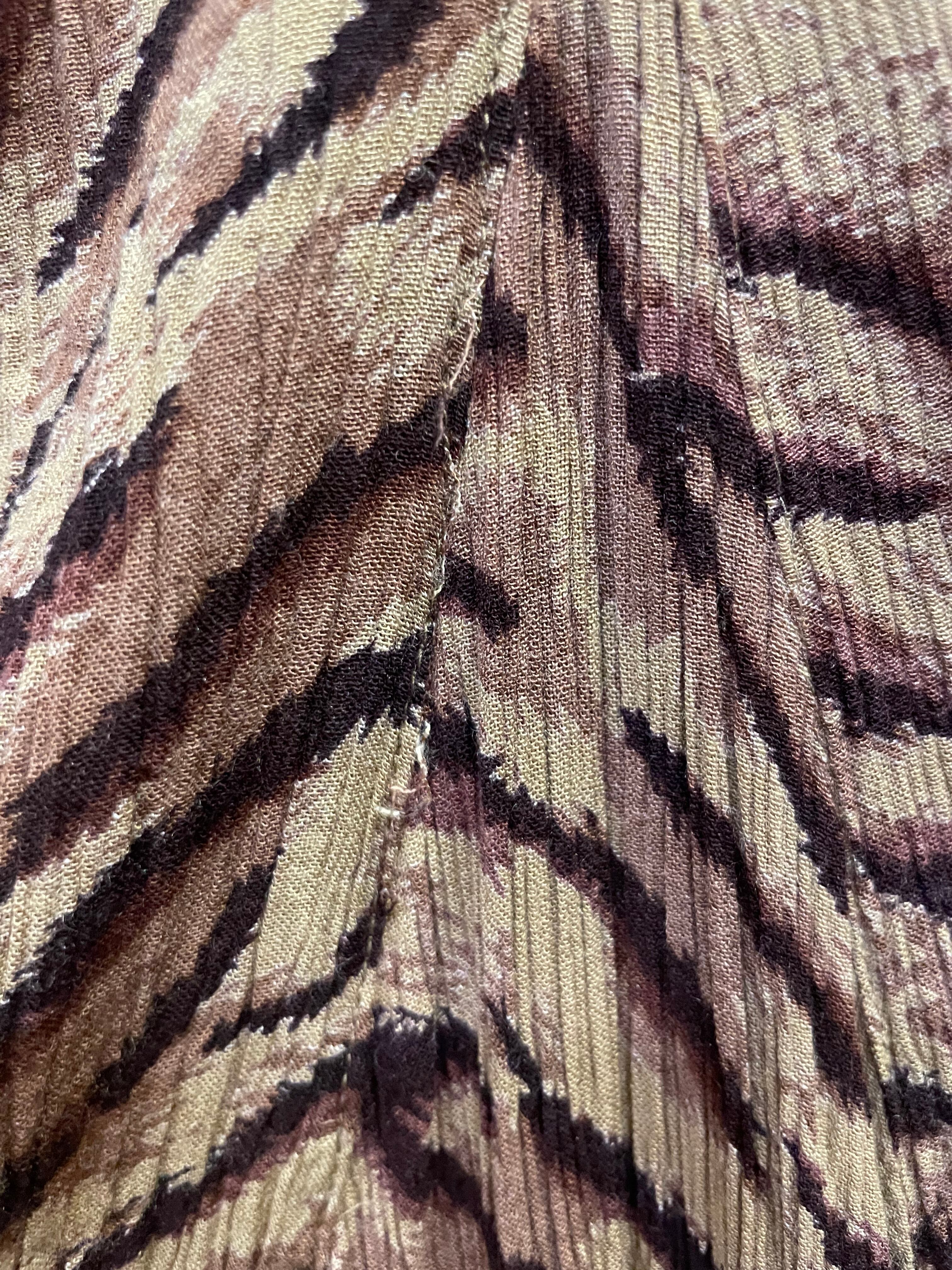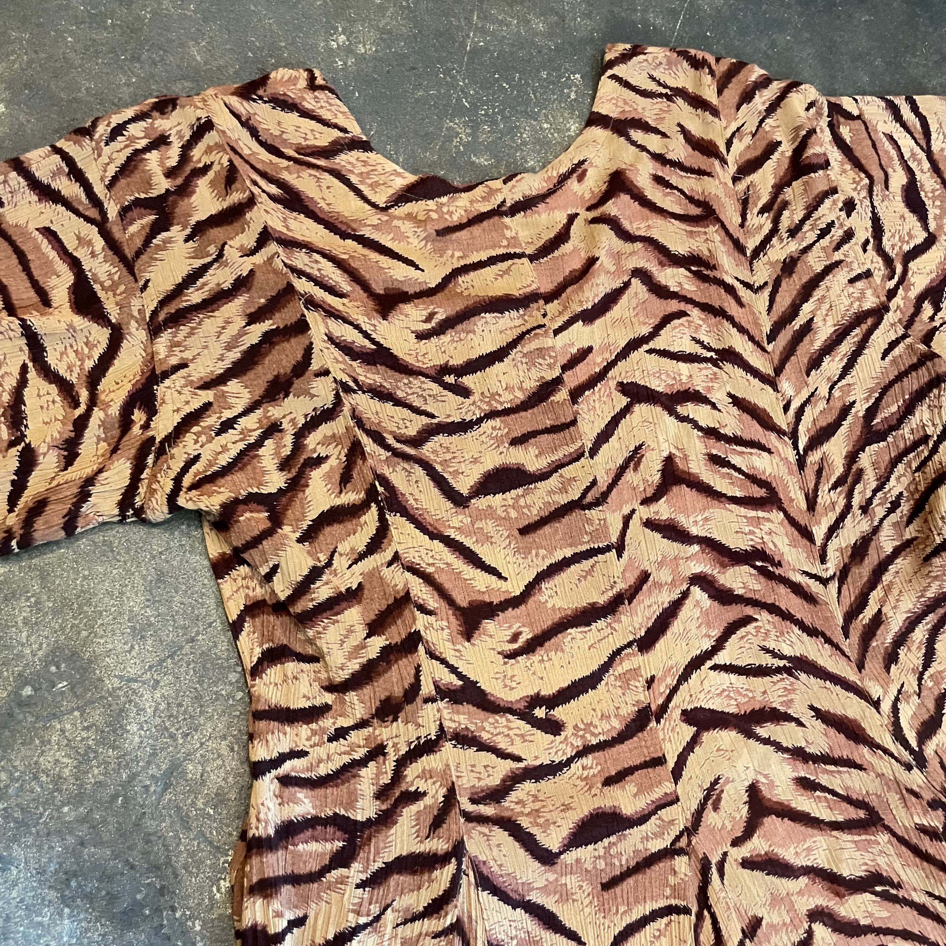 ゼブラなのかトラなのか、アニマル柄がかわいいレーヨン素材のワンピースです。