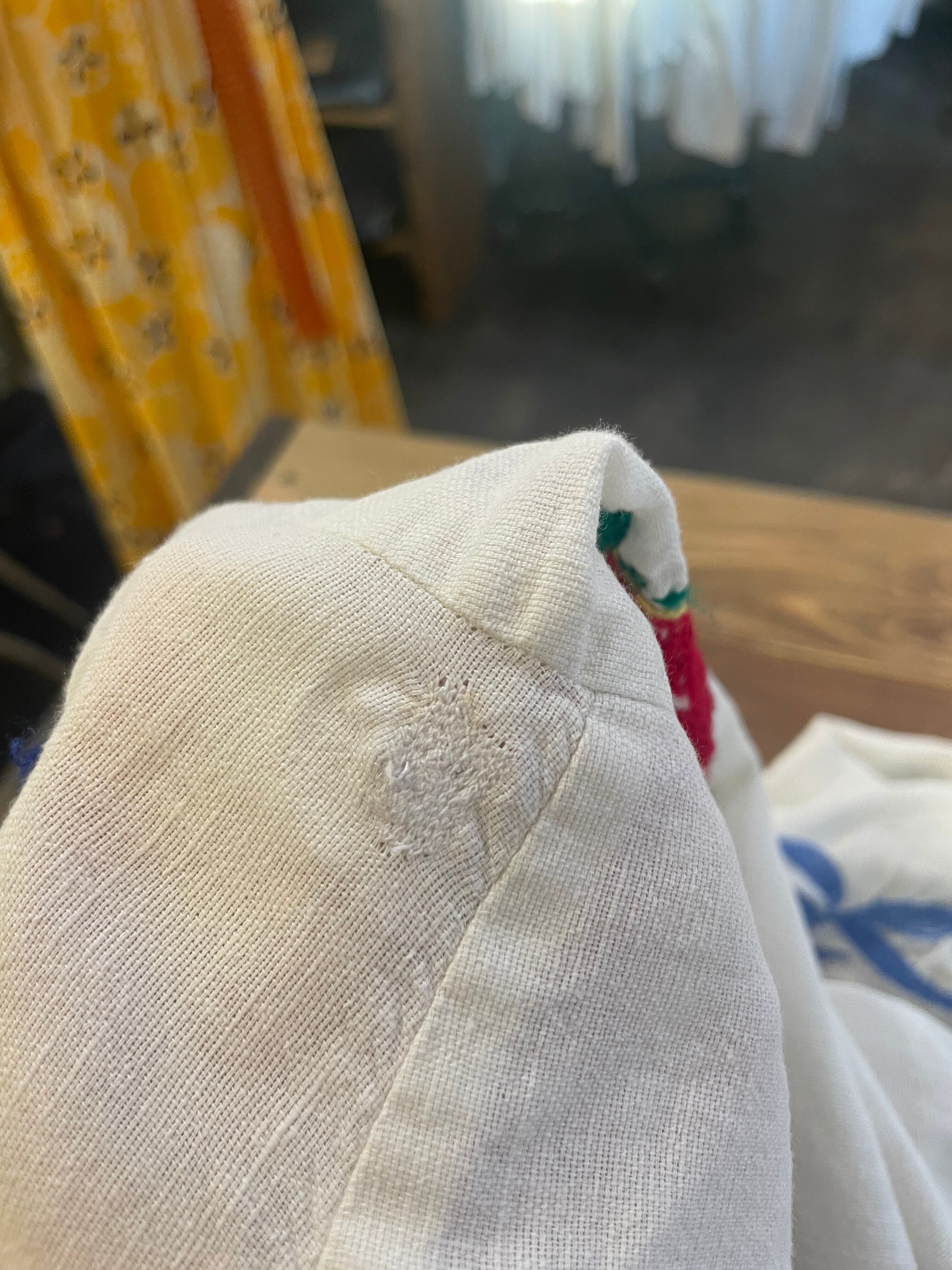 傷やリペア、生地の薄い箇所やシミ、等全体的にかなりダメージのある商品です。
