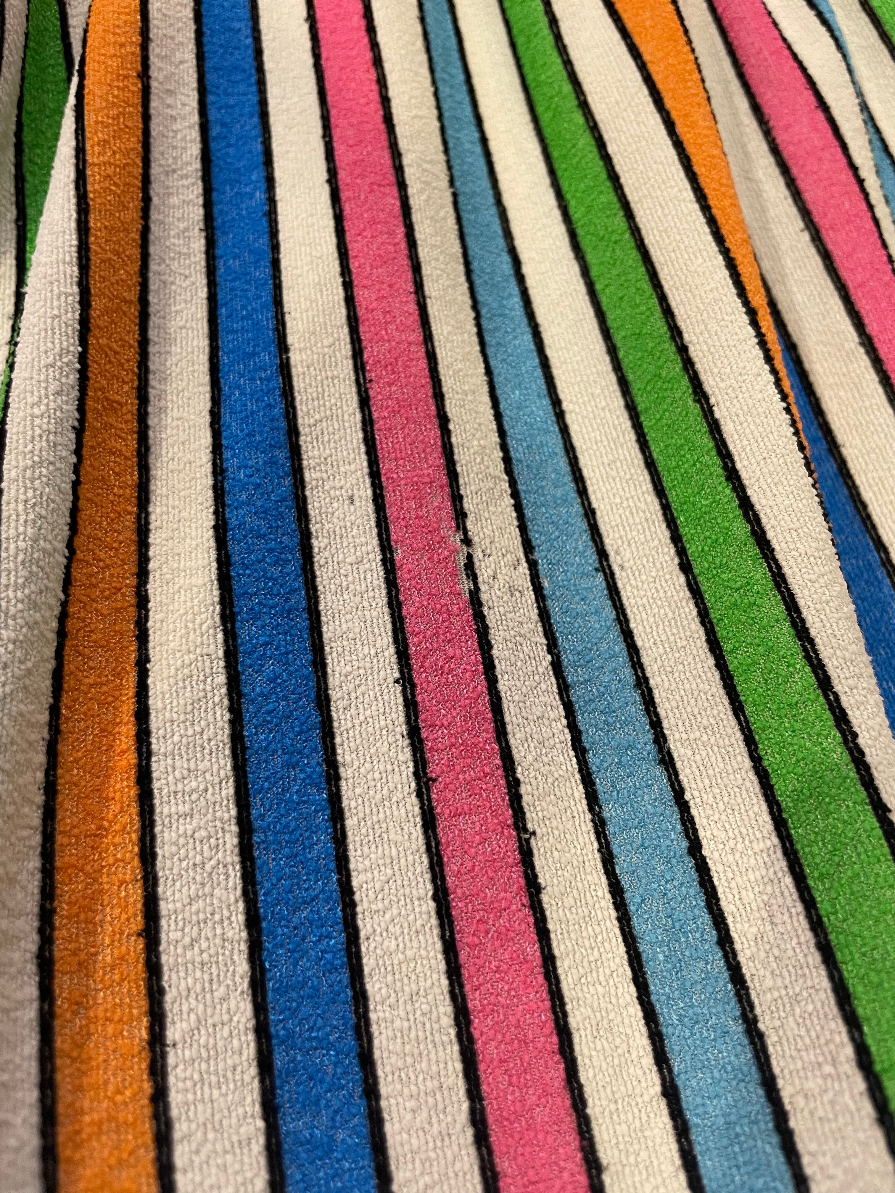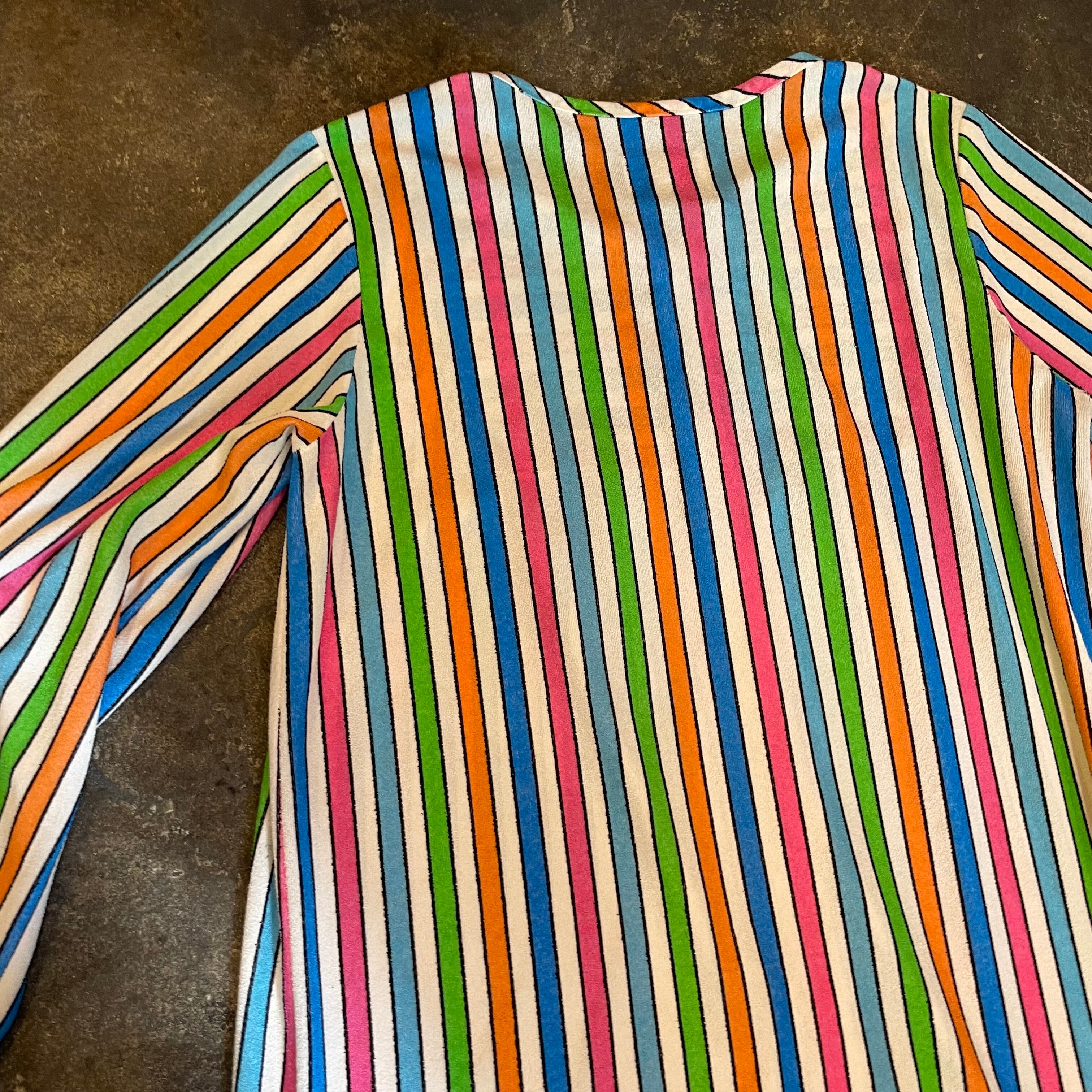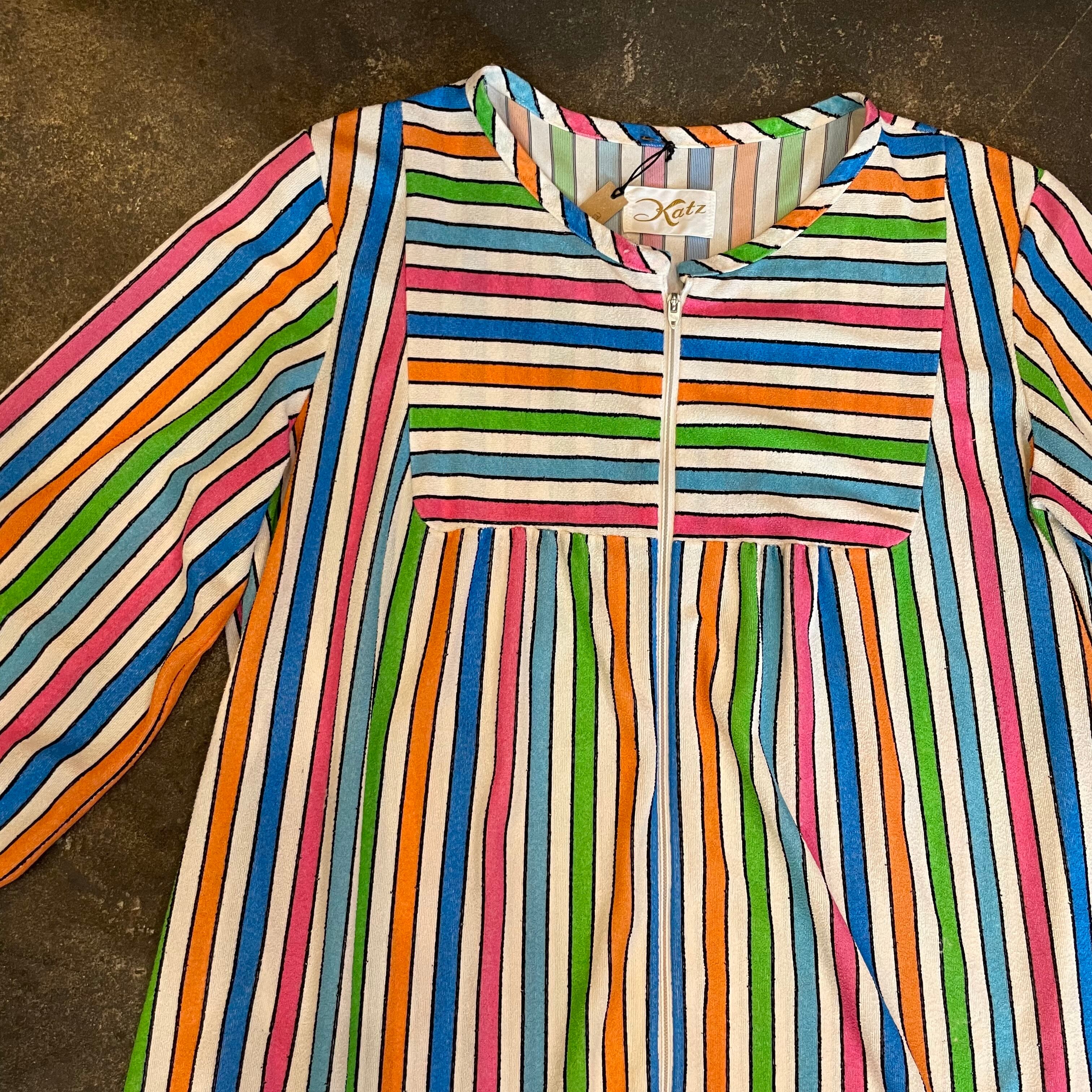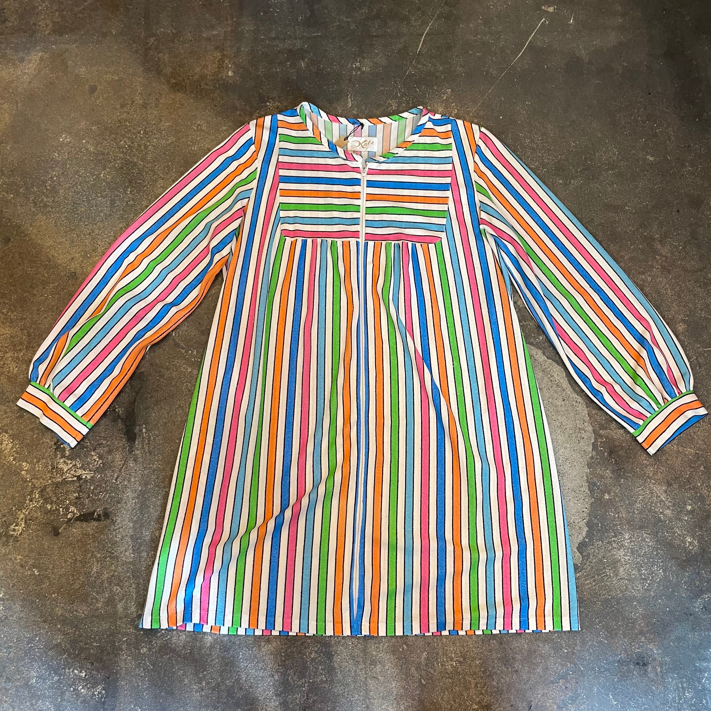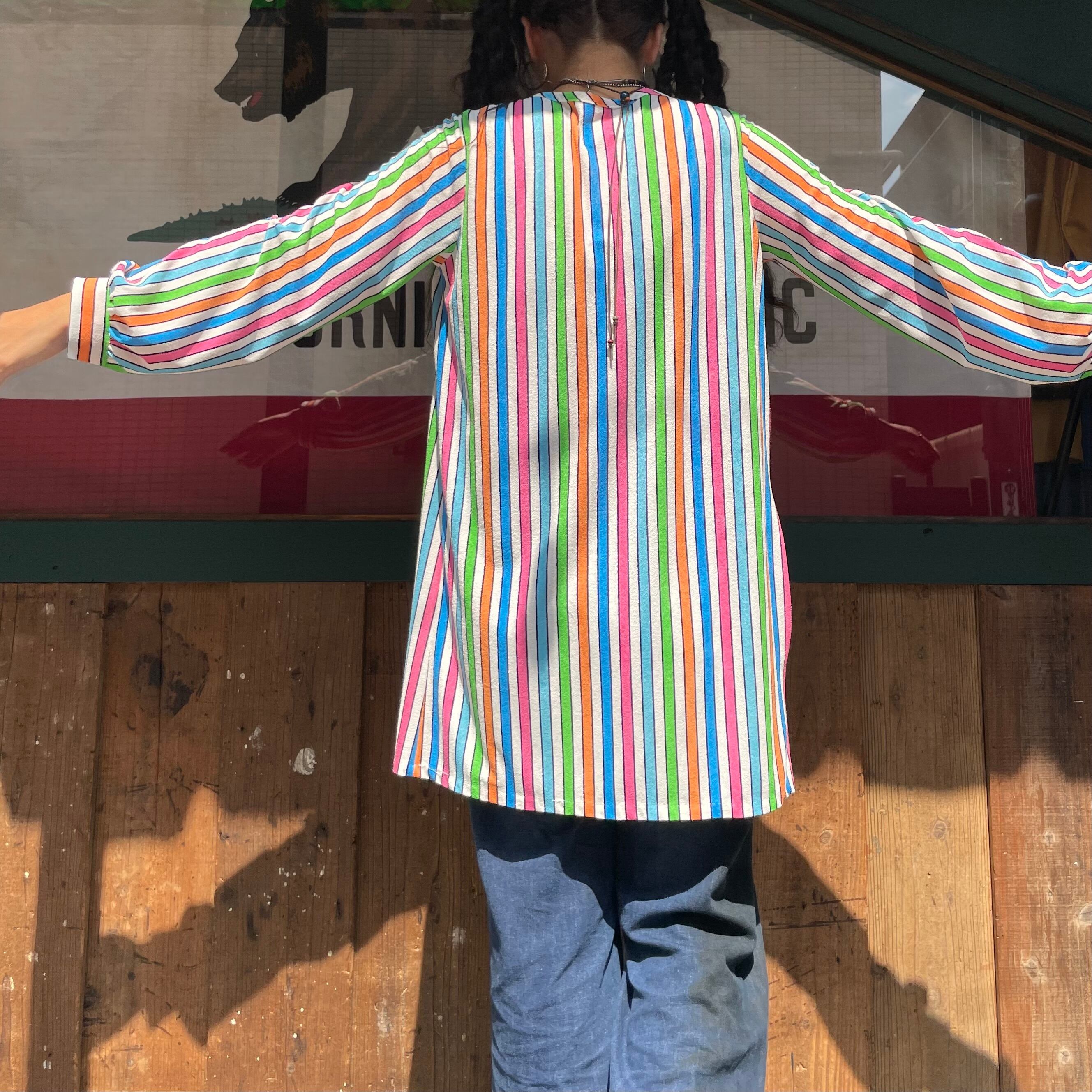 白ベースのカラフルなストライプがかわいい70年代頃のチュニックです。