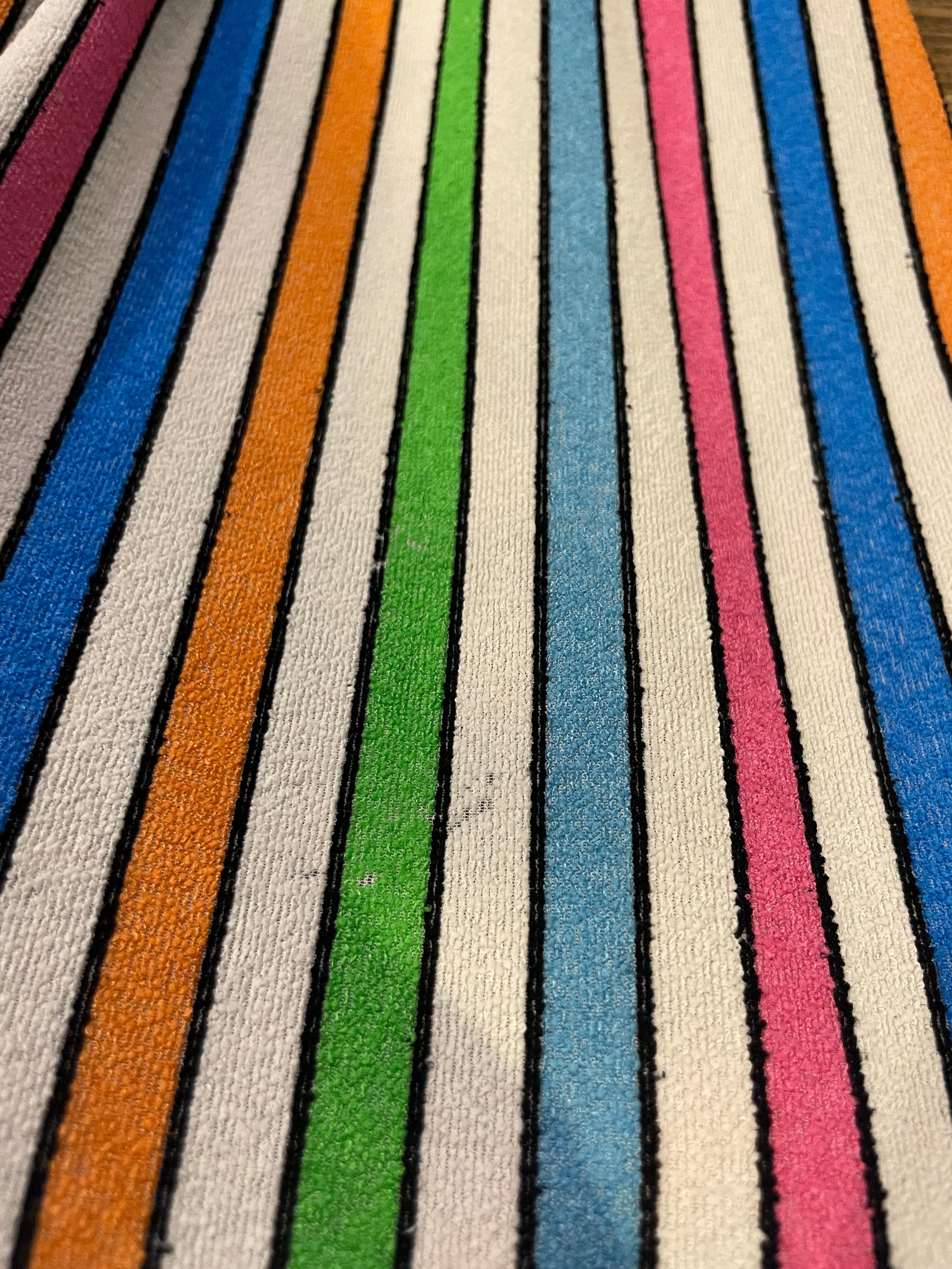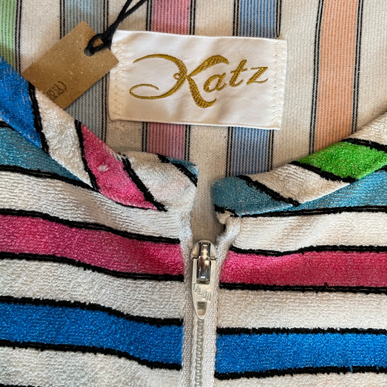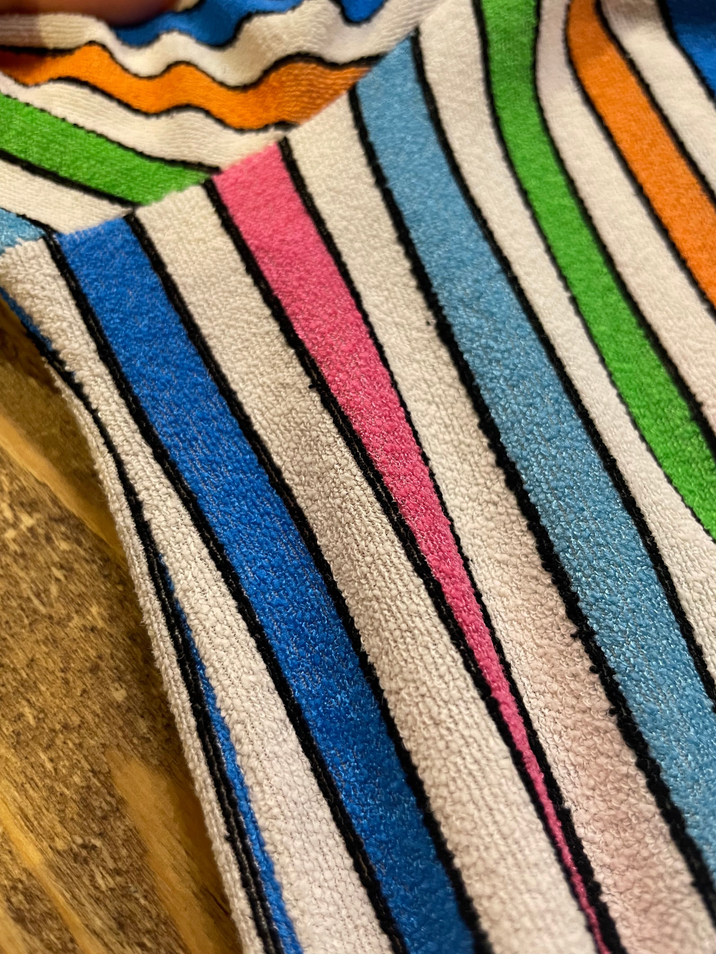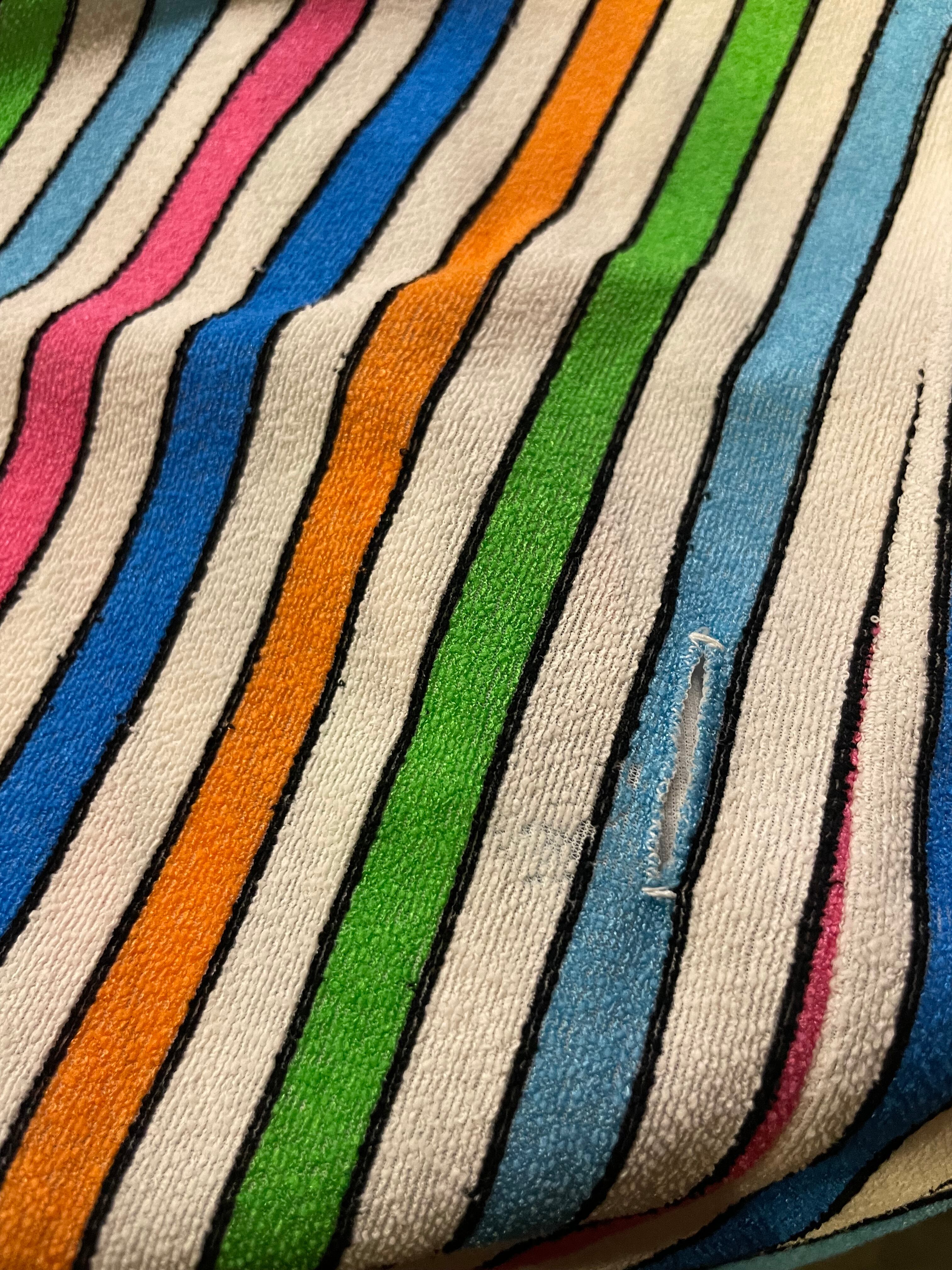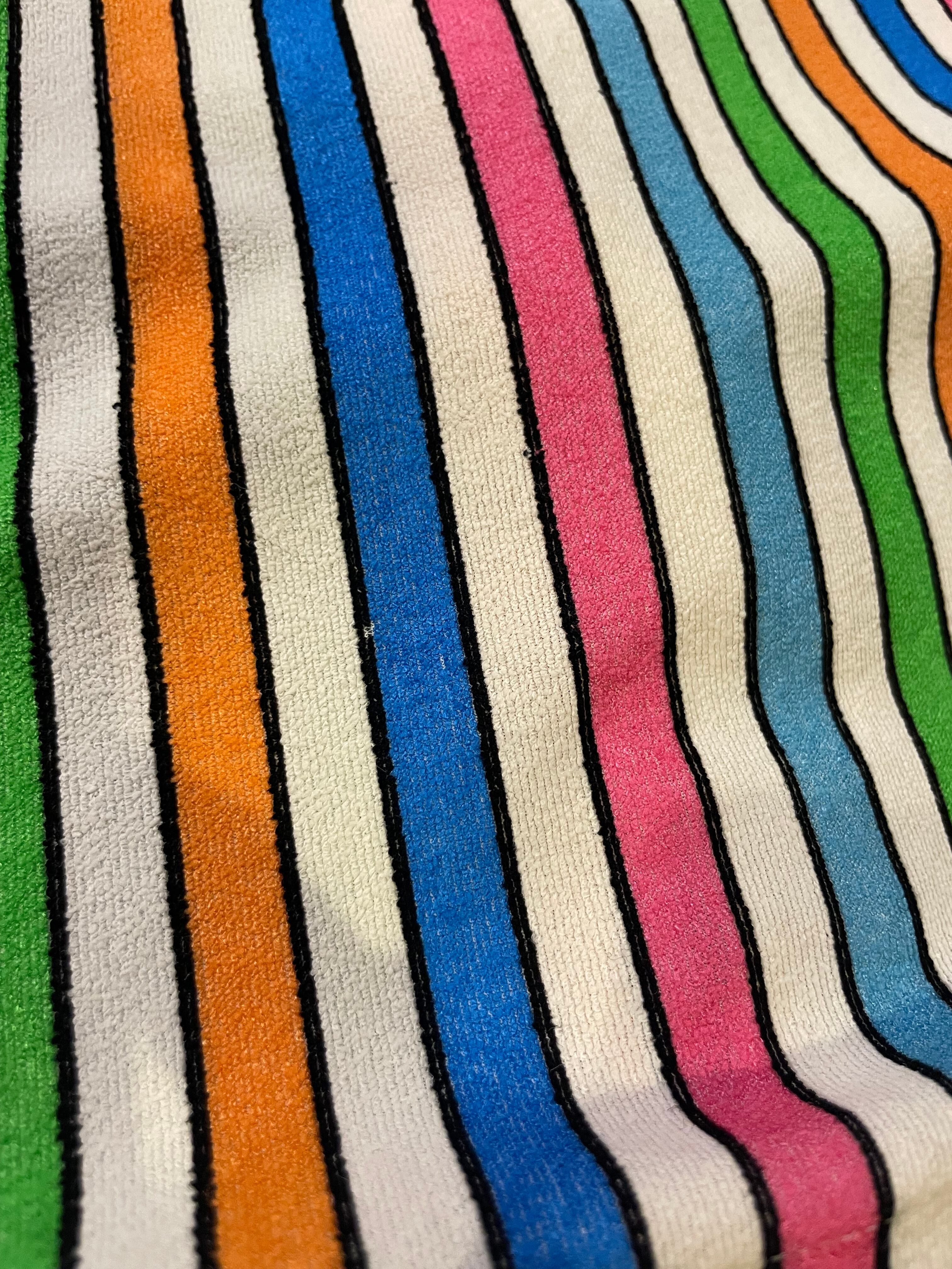 白ベースのカラフルなストライプがかわいい70年代頃のチュニックです。