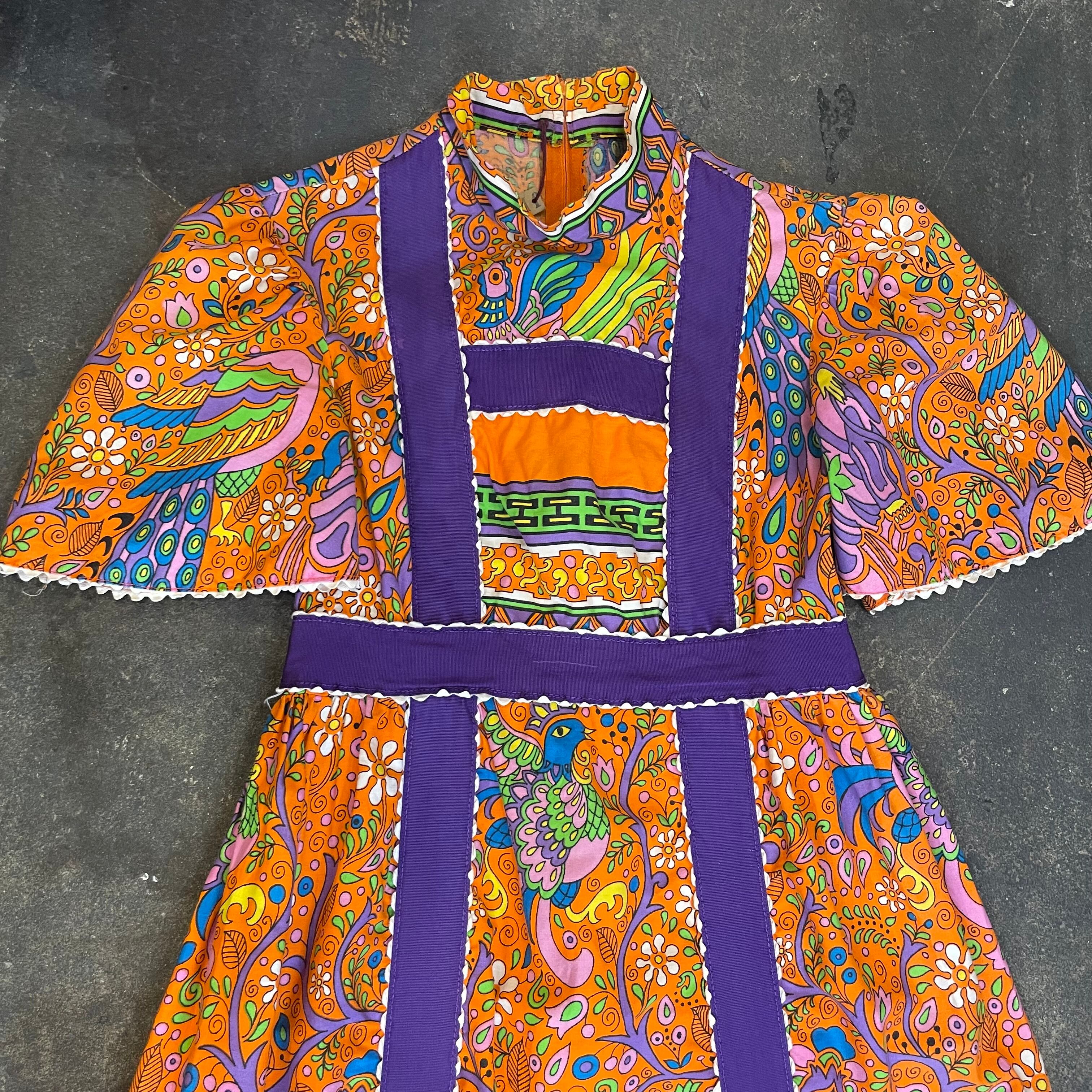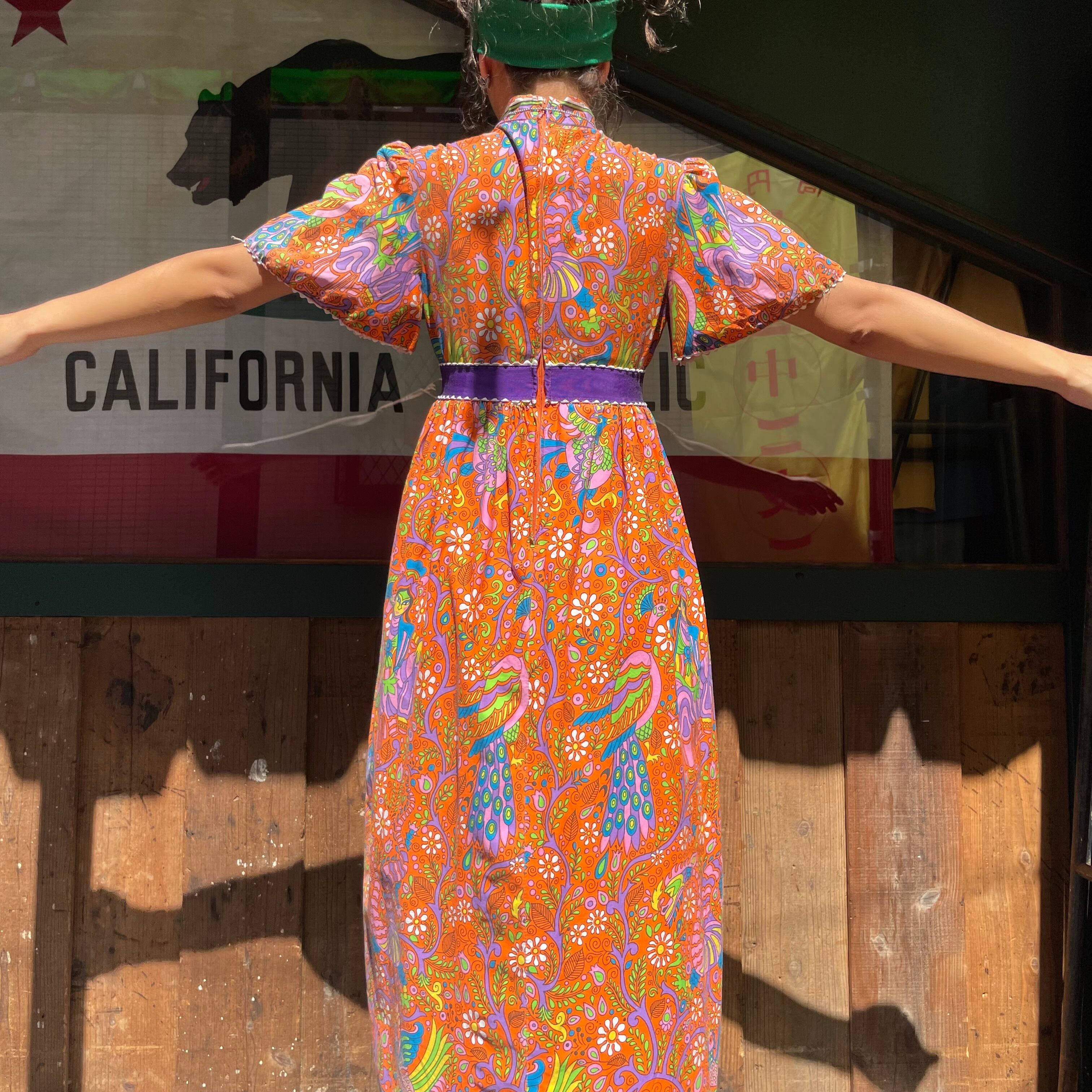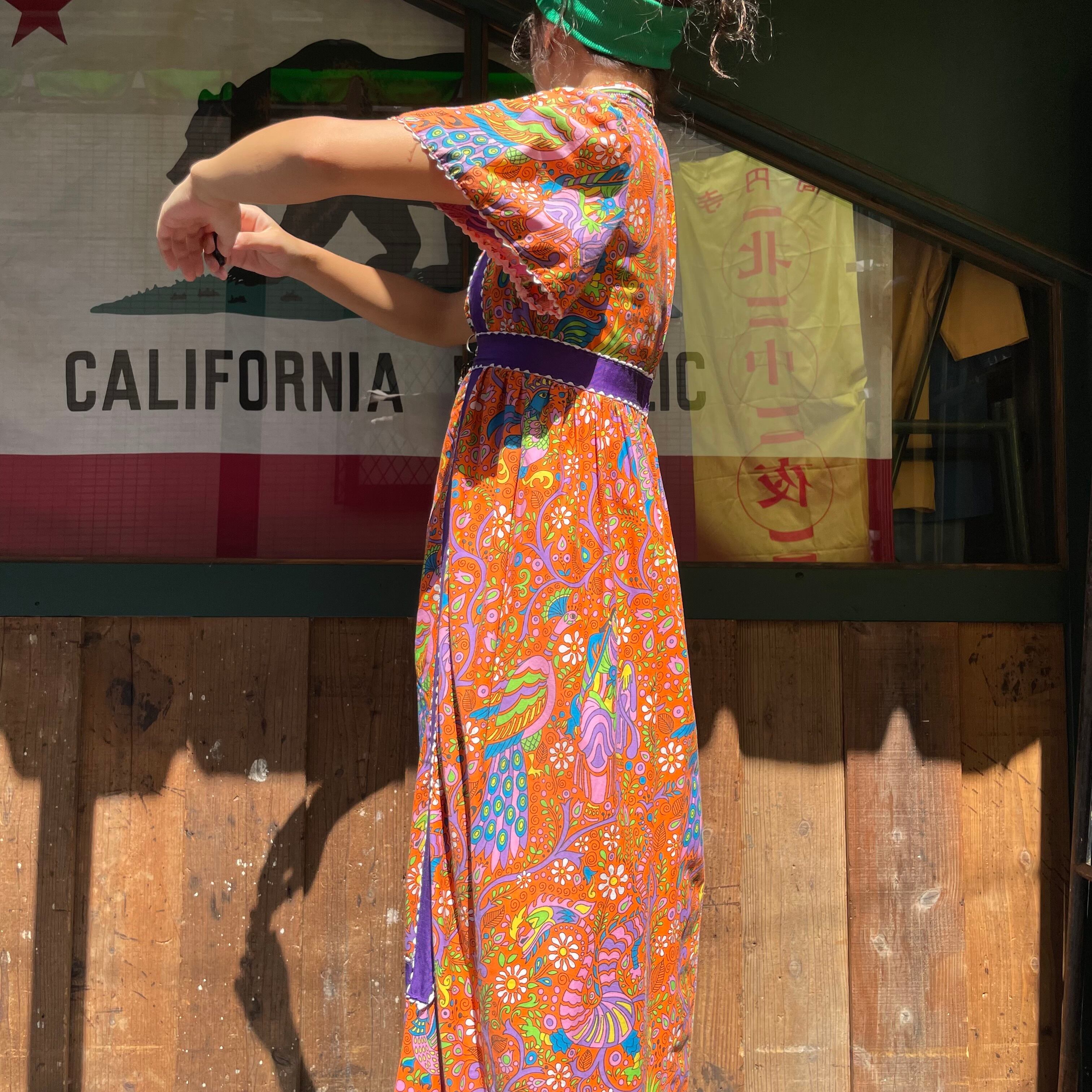 70's bird & flower pattern dress