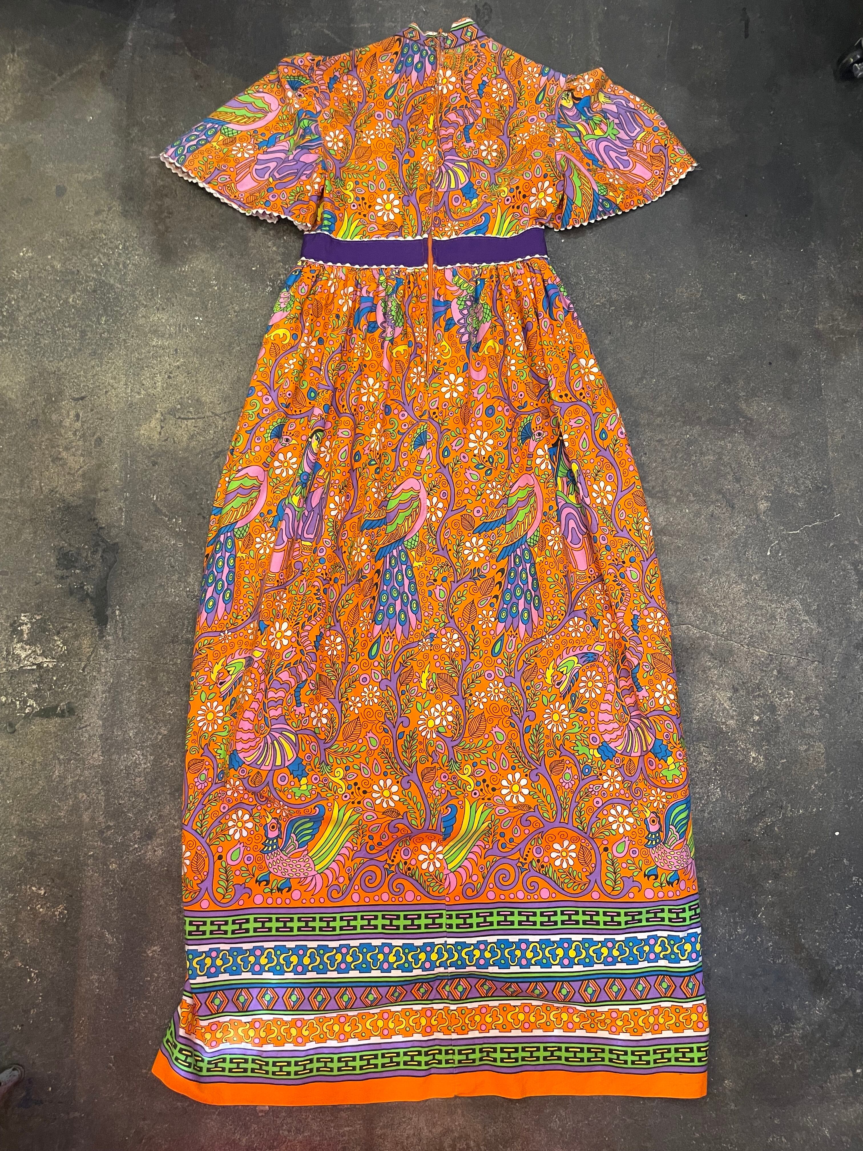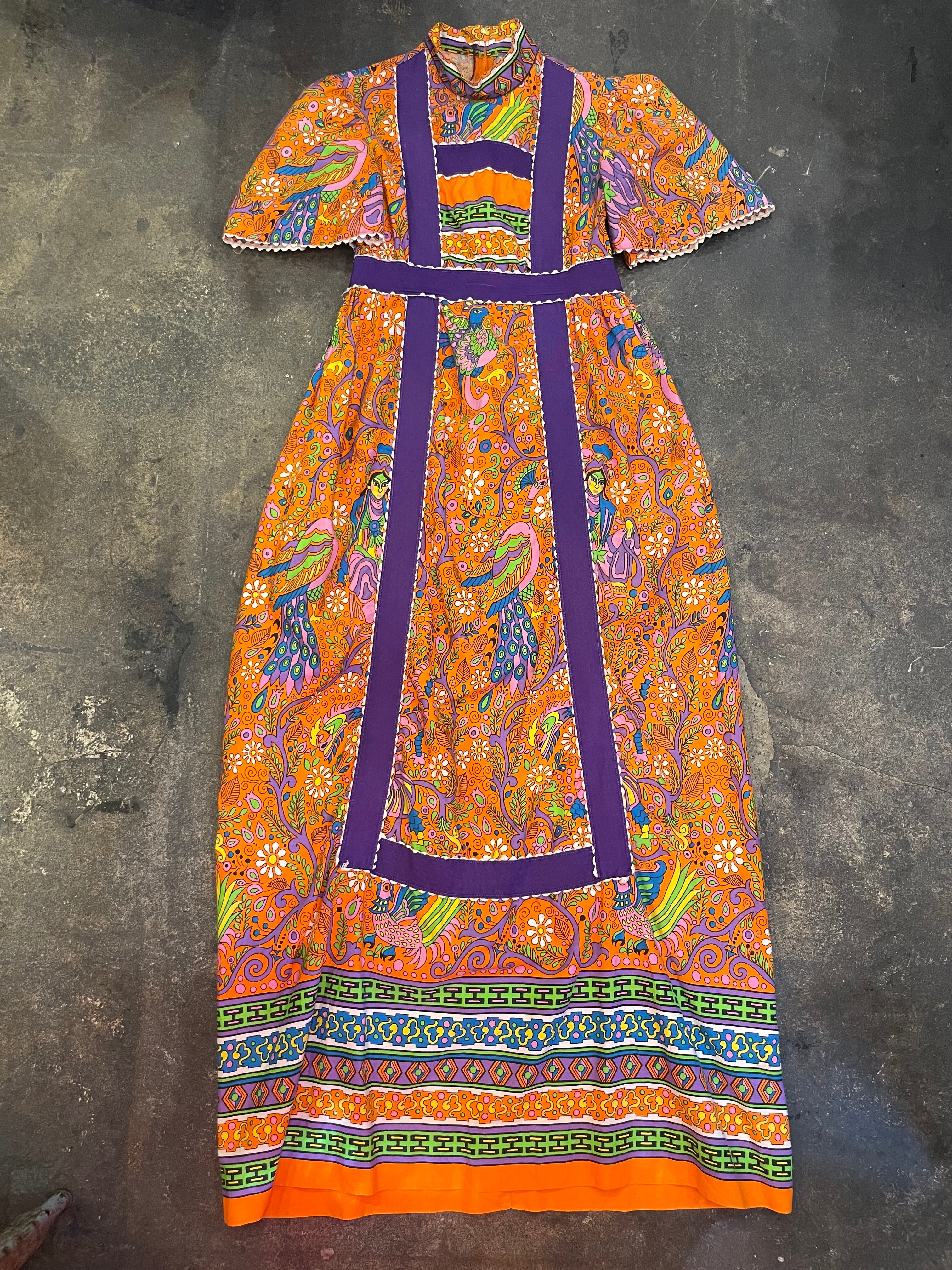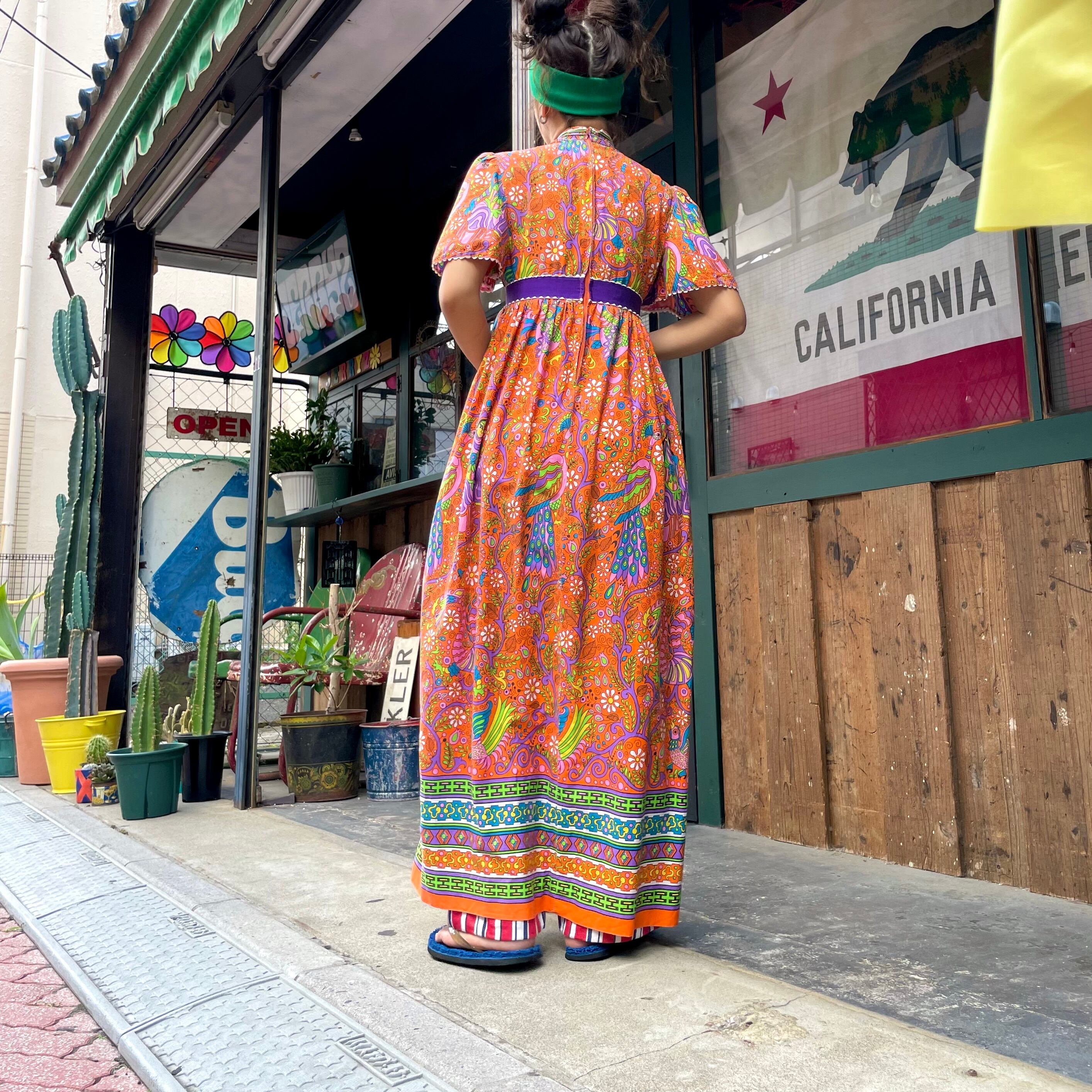 70's bird & flower pattern dress