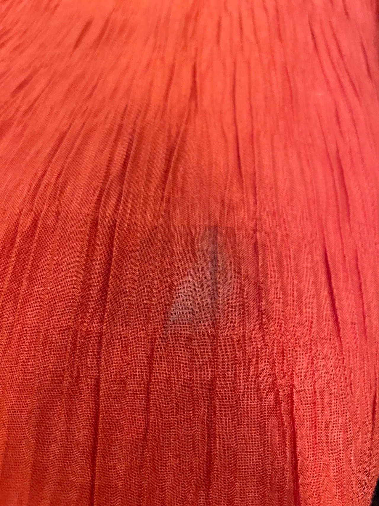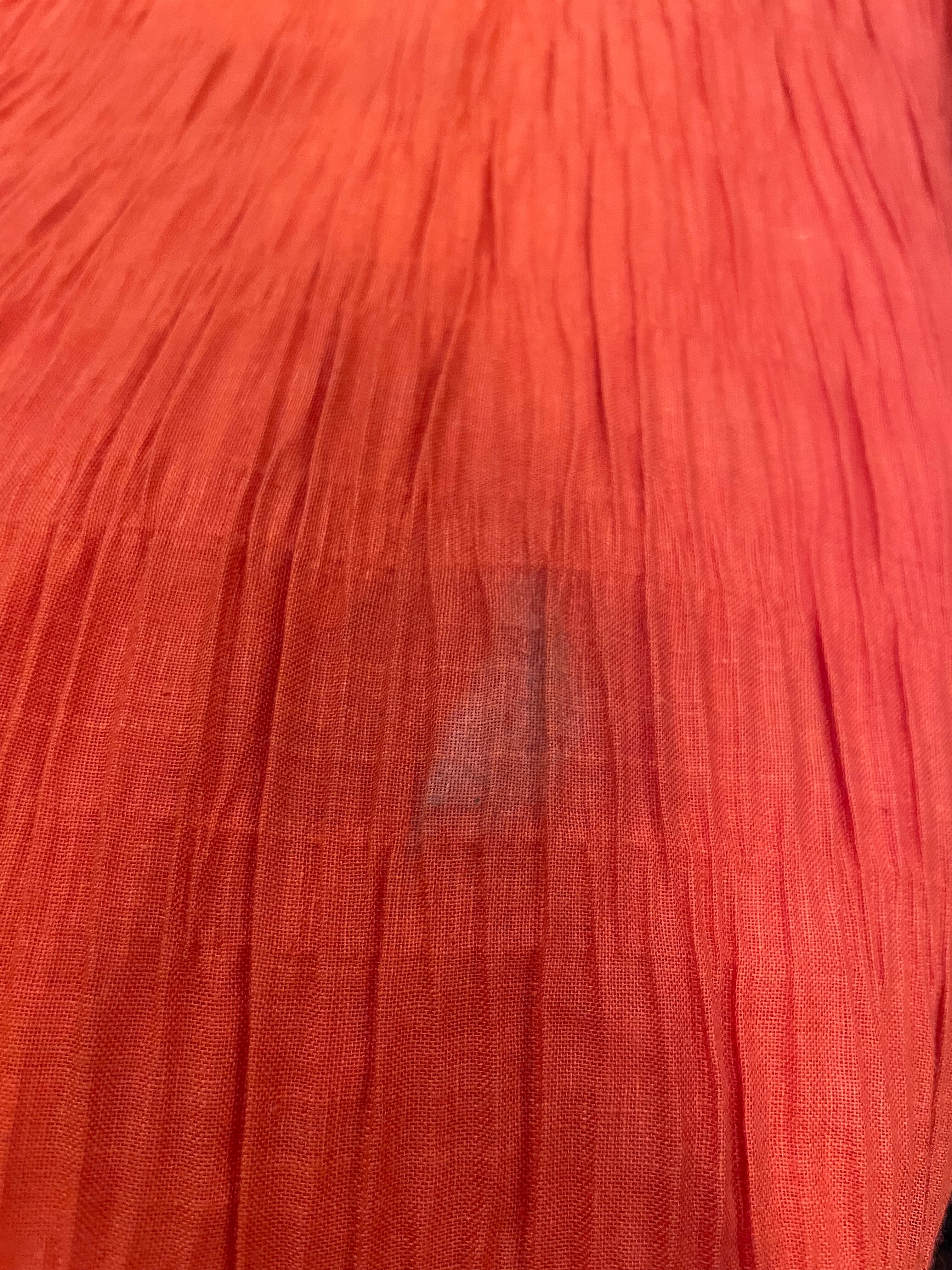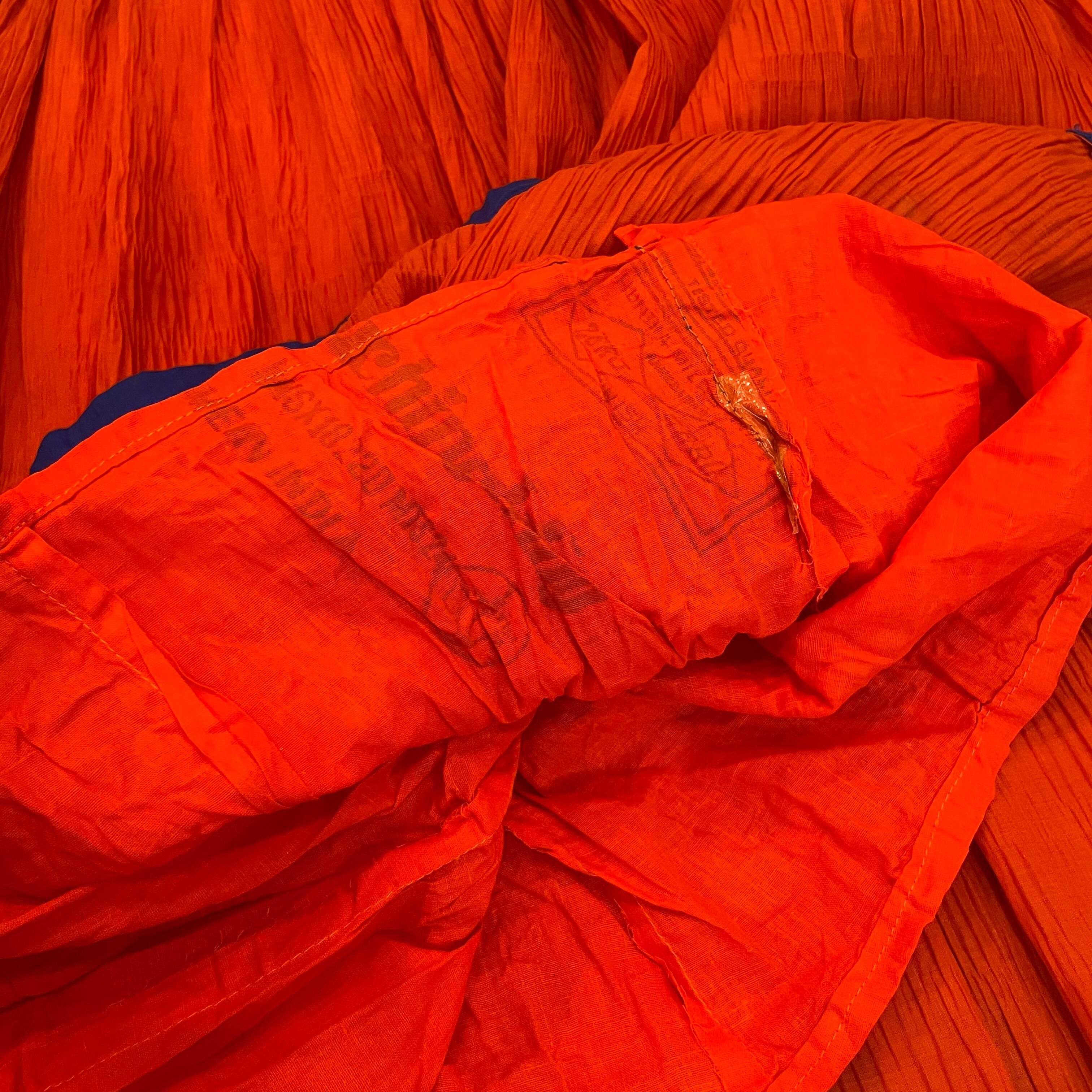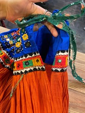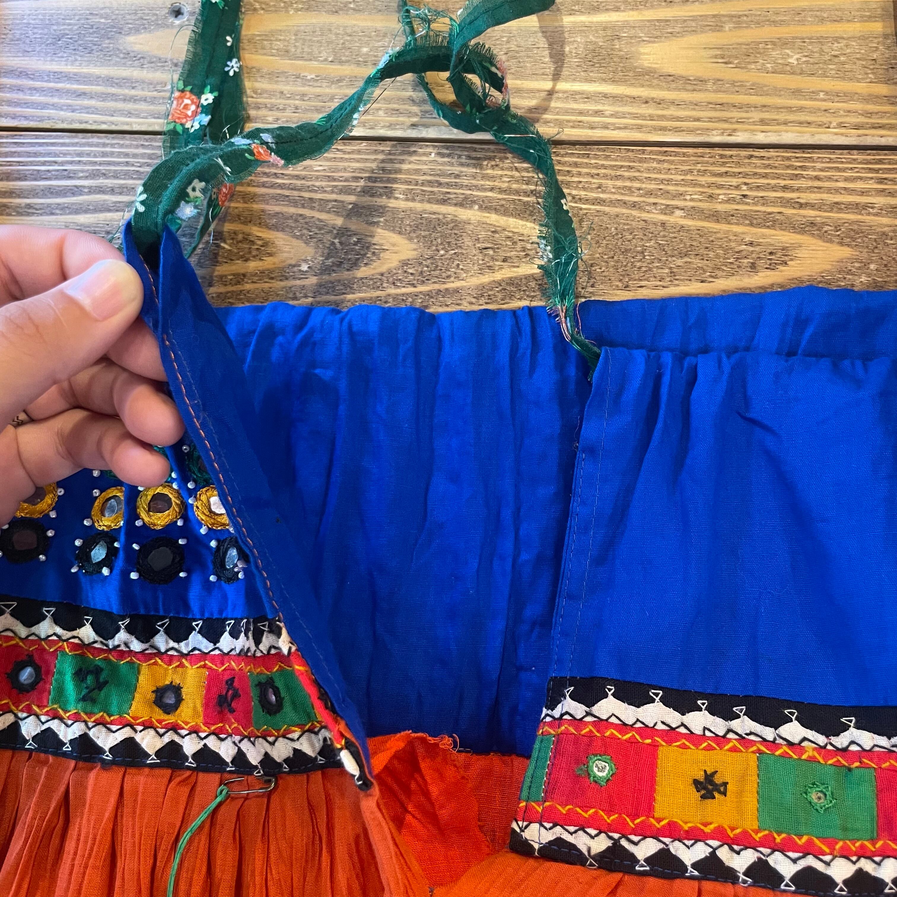 鮮やかなオレンジがかわいいロングスカートです。ウエストにはびっしり細かいミラーワークが施されておりきらきらしていて素敵ですね。