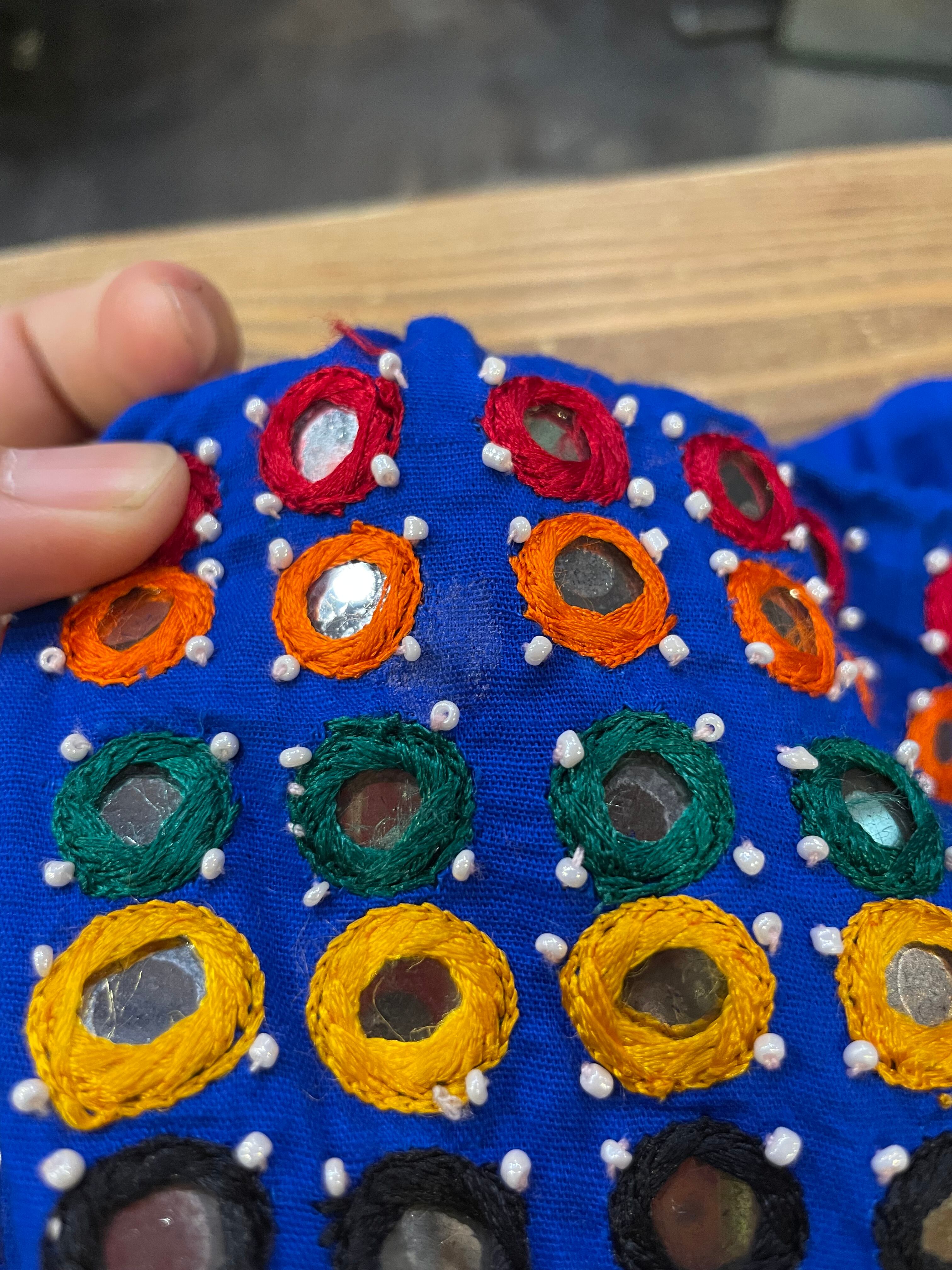 トップスをインしてミラーワークを見せると一気にエスニックな雰囲気になりそうですし、チラッと見えるくらいで着るのもかわいいと思います。